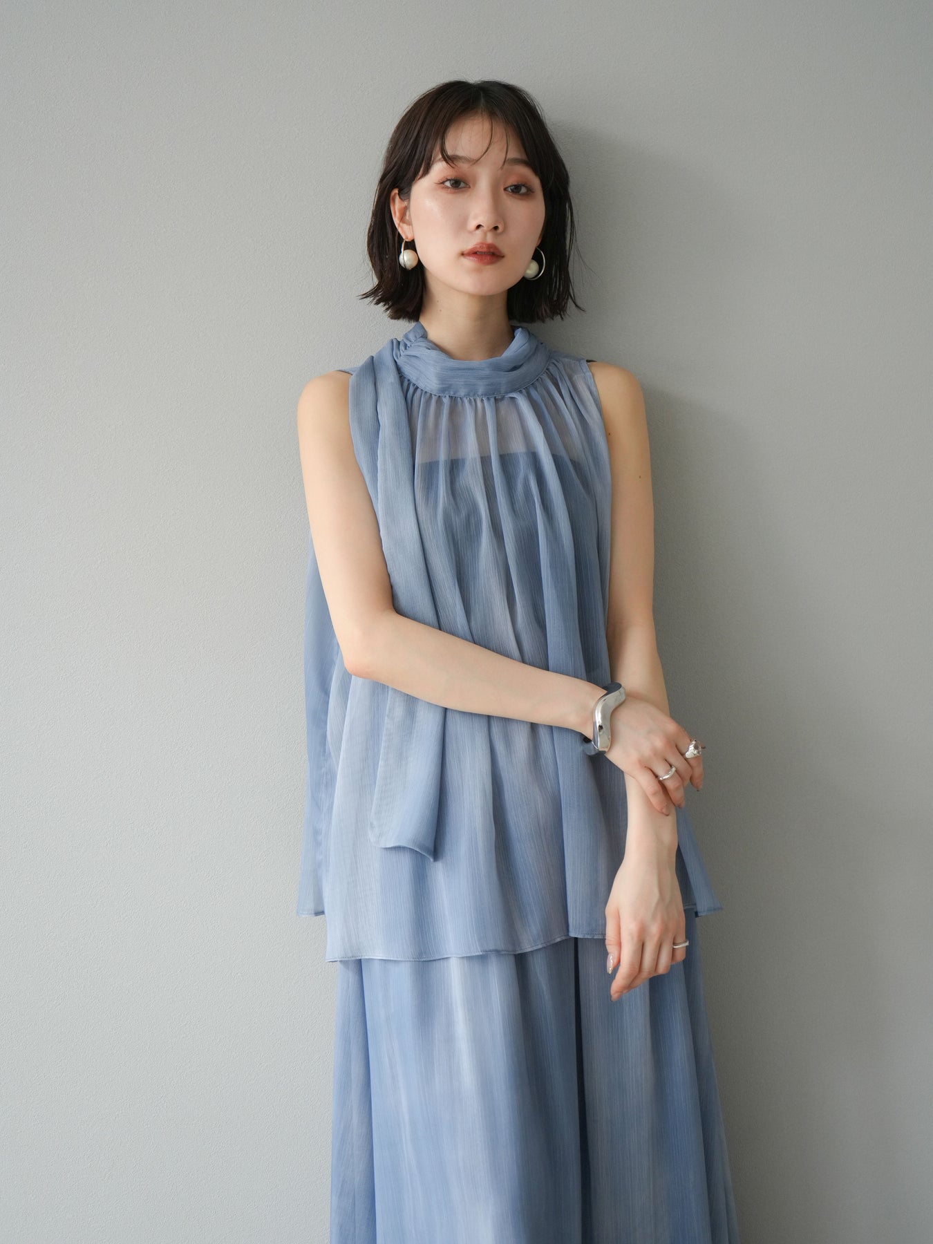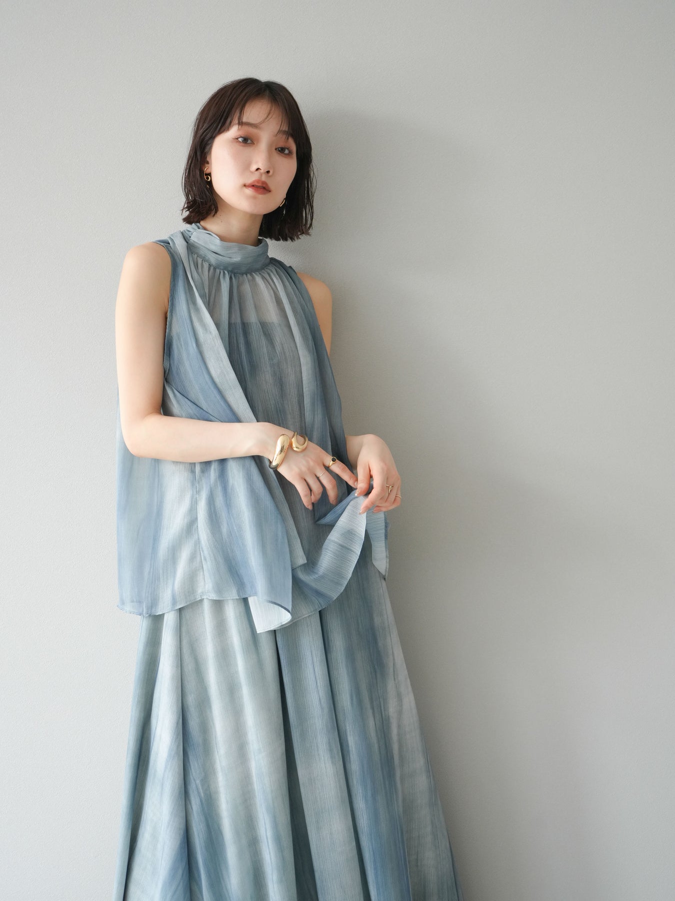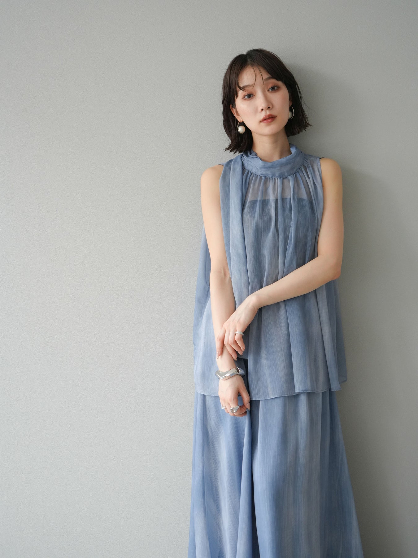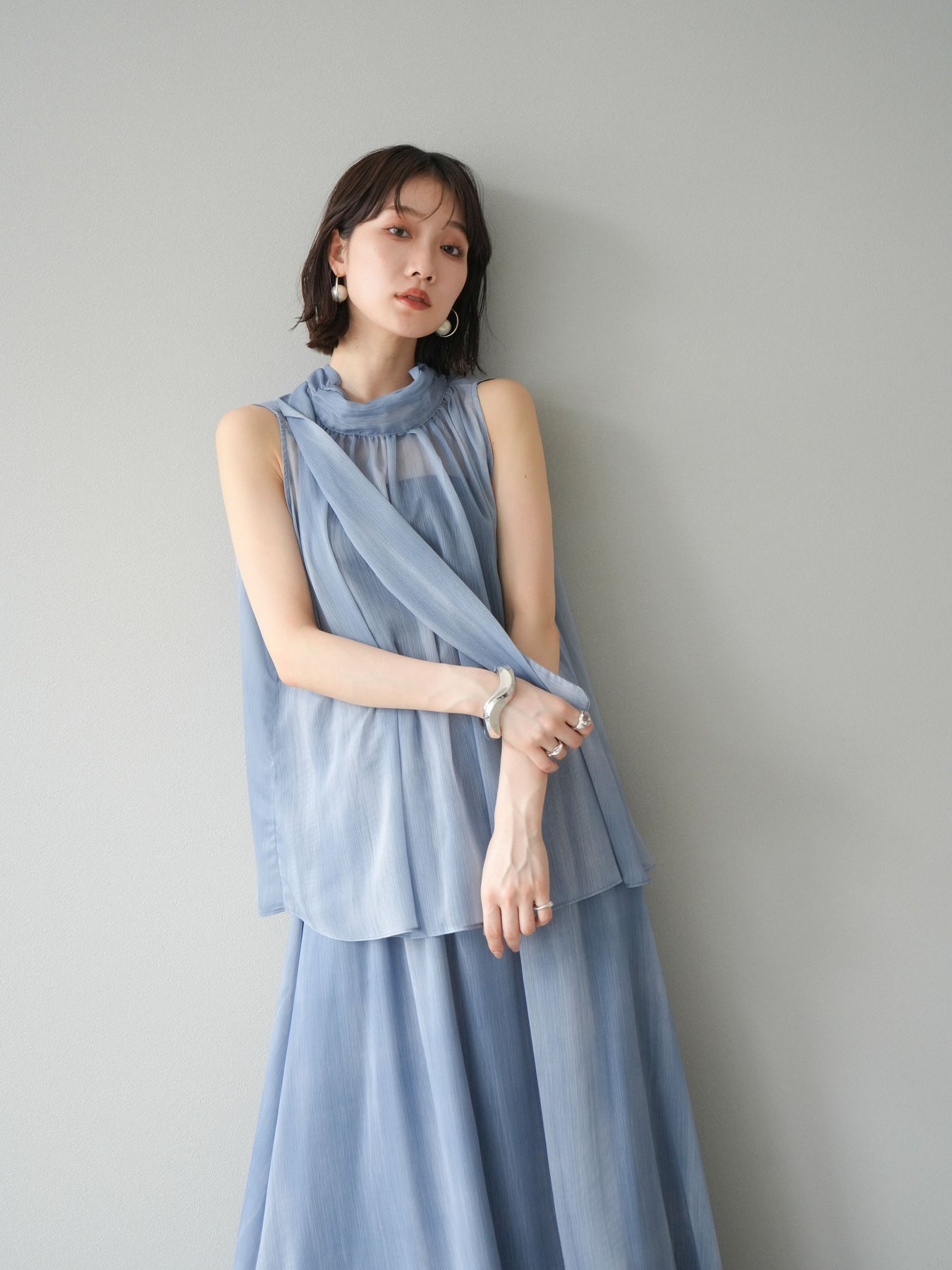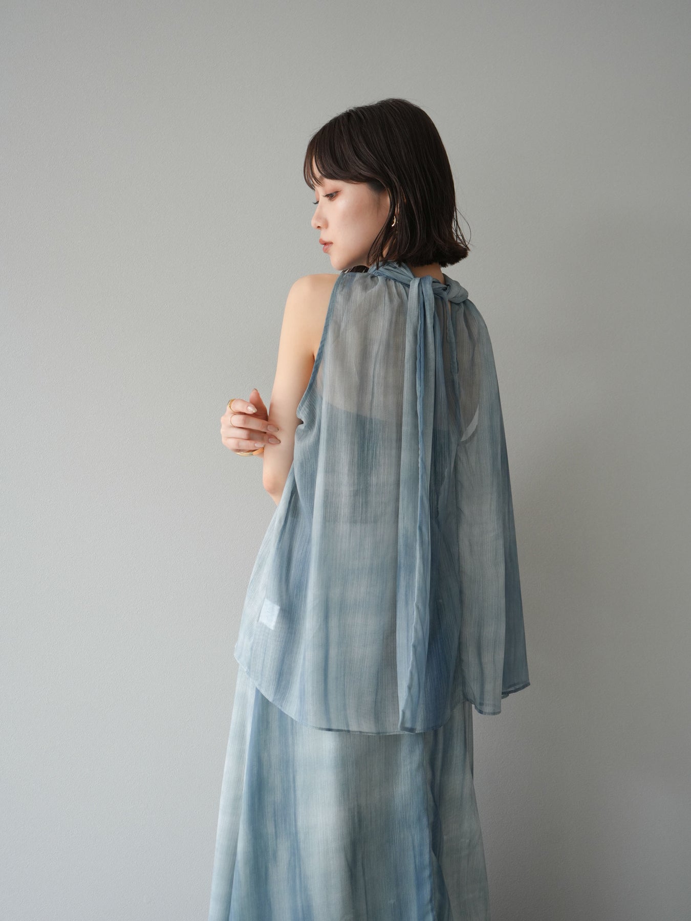 [予約]ニュアンスシアーホルターネックブラウス+[予約]ニュアンスシアーフレアスカート