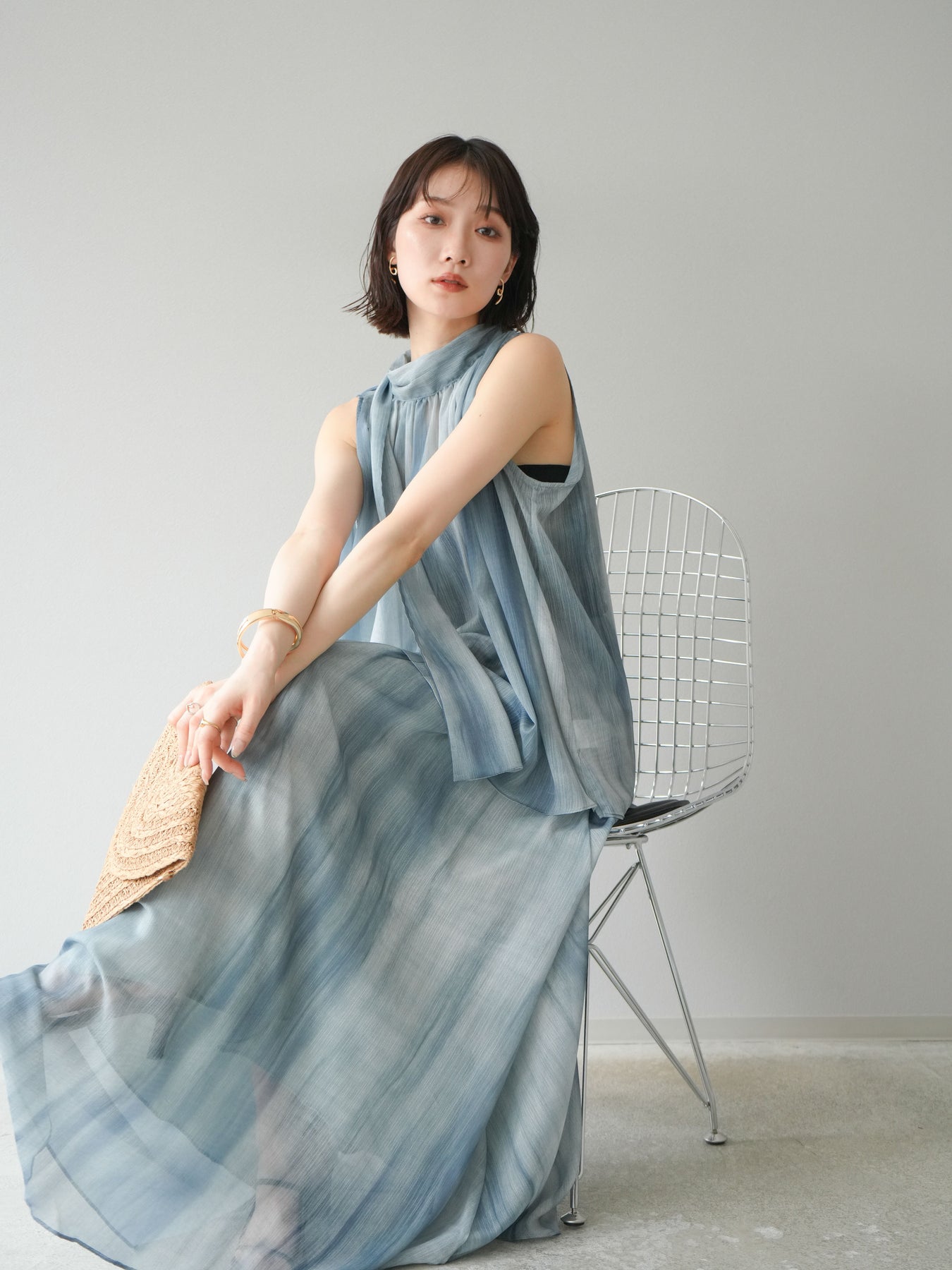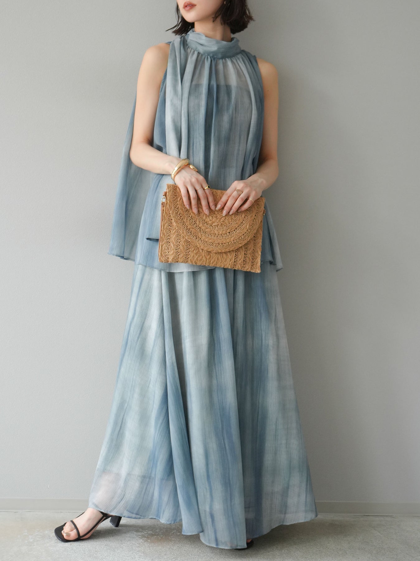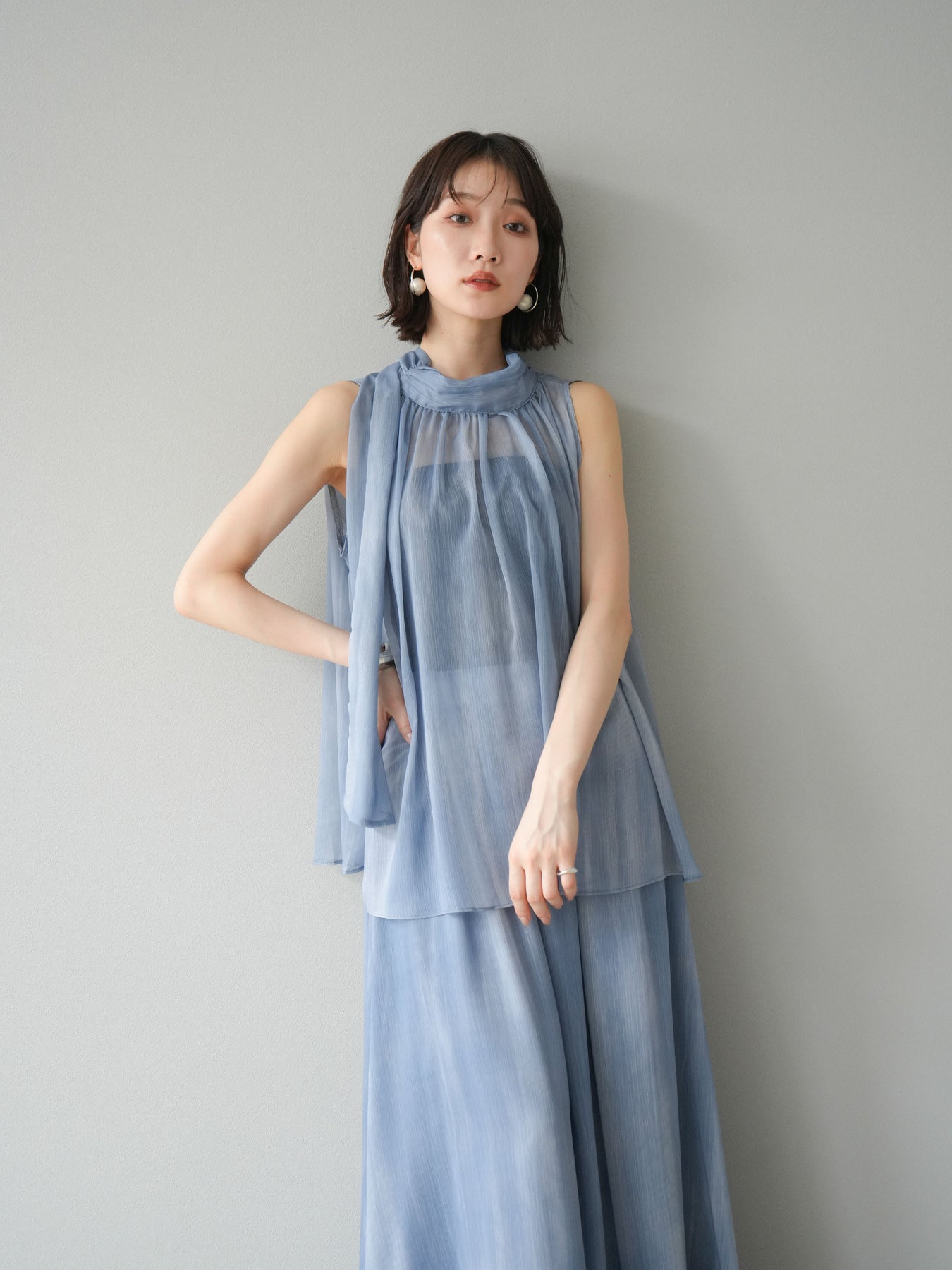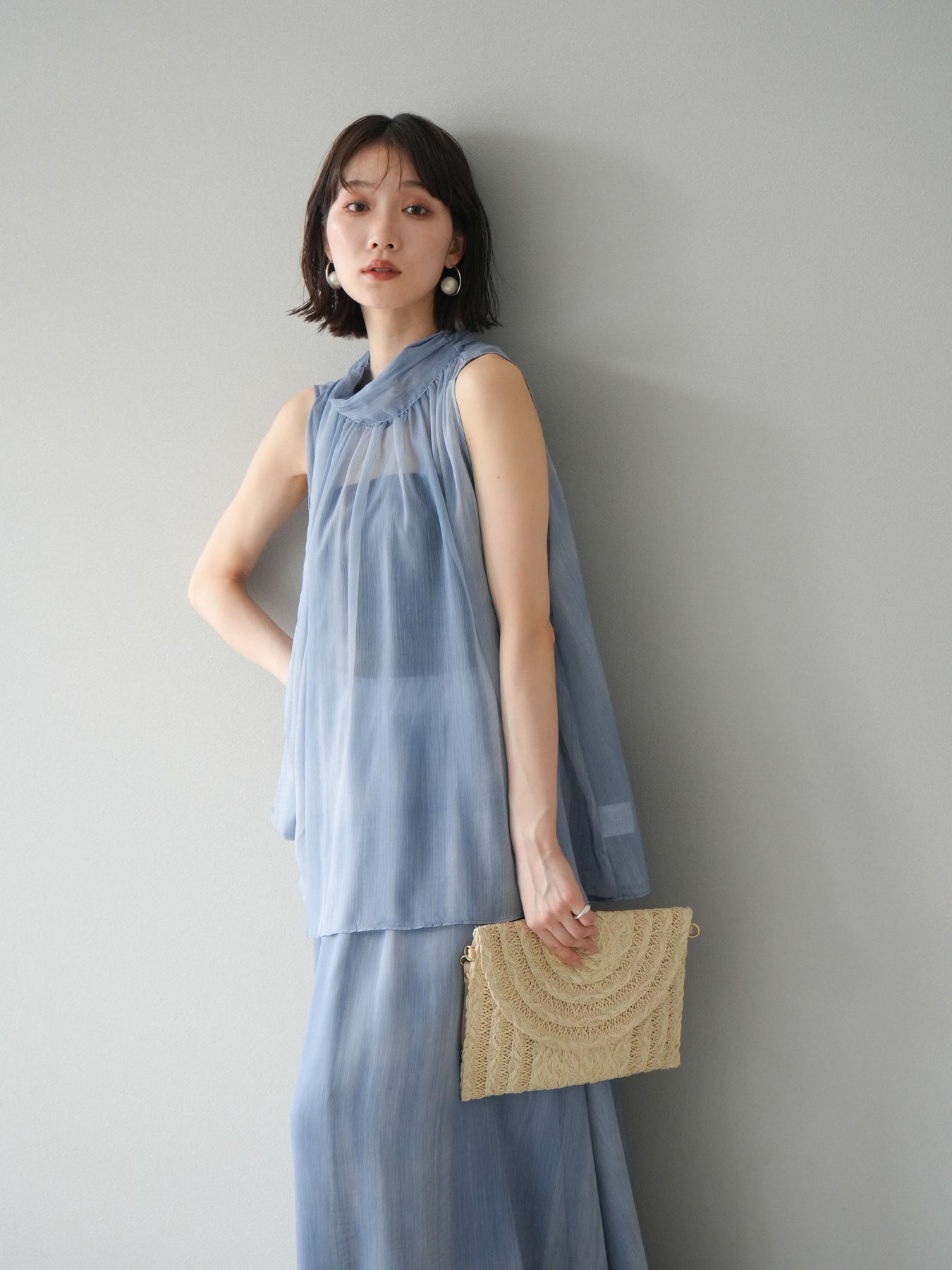 [予約]ニュアンスシアーホルターネックブラウス+[予約]ニュアンスシアーフレアスカート