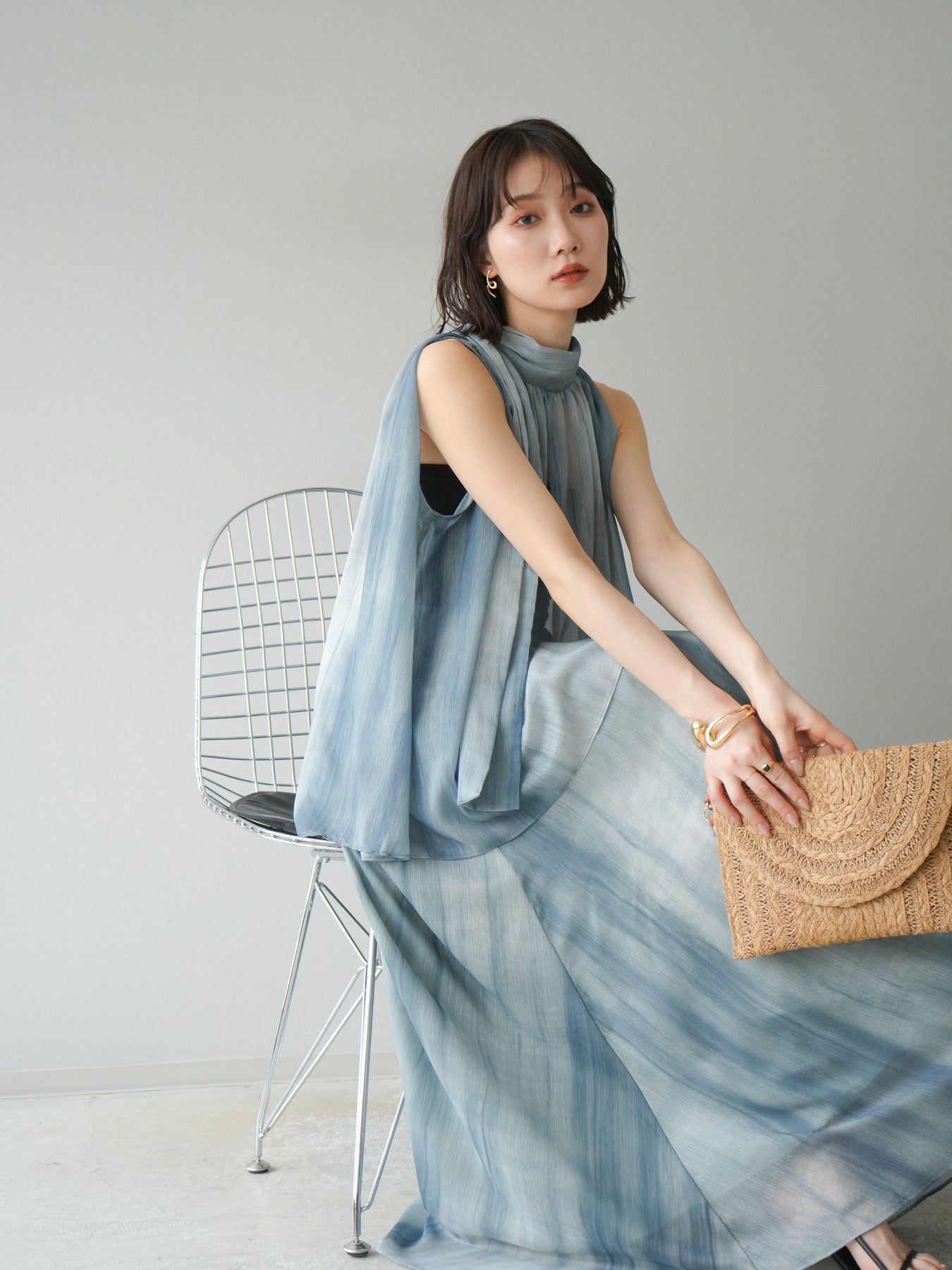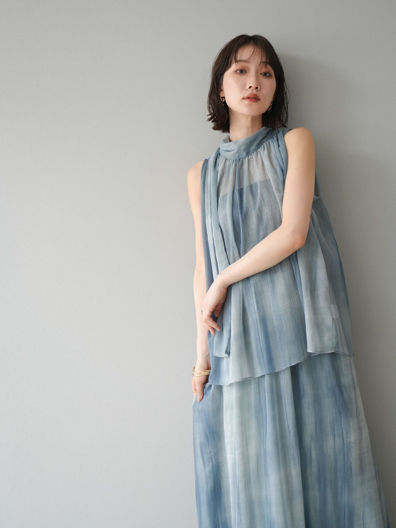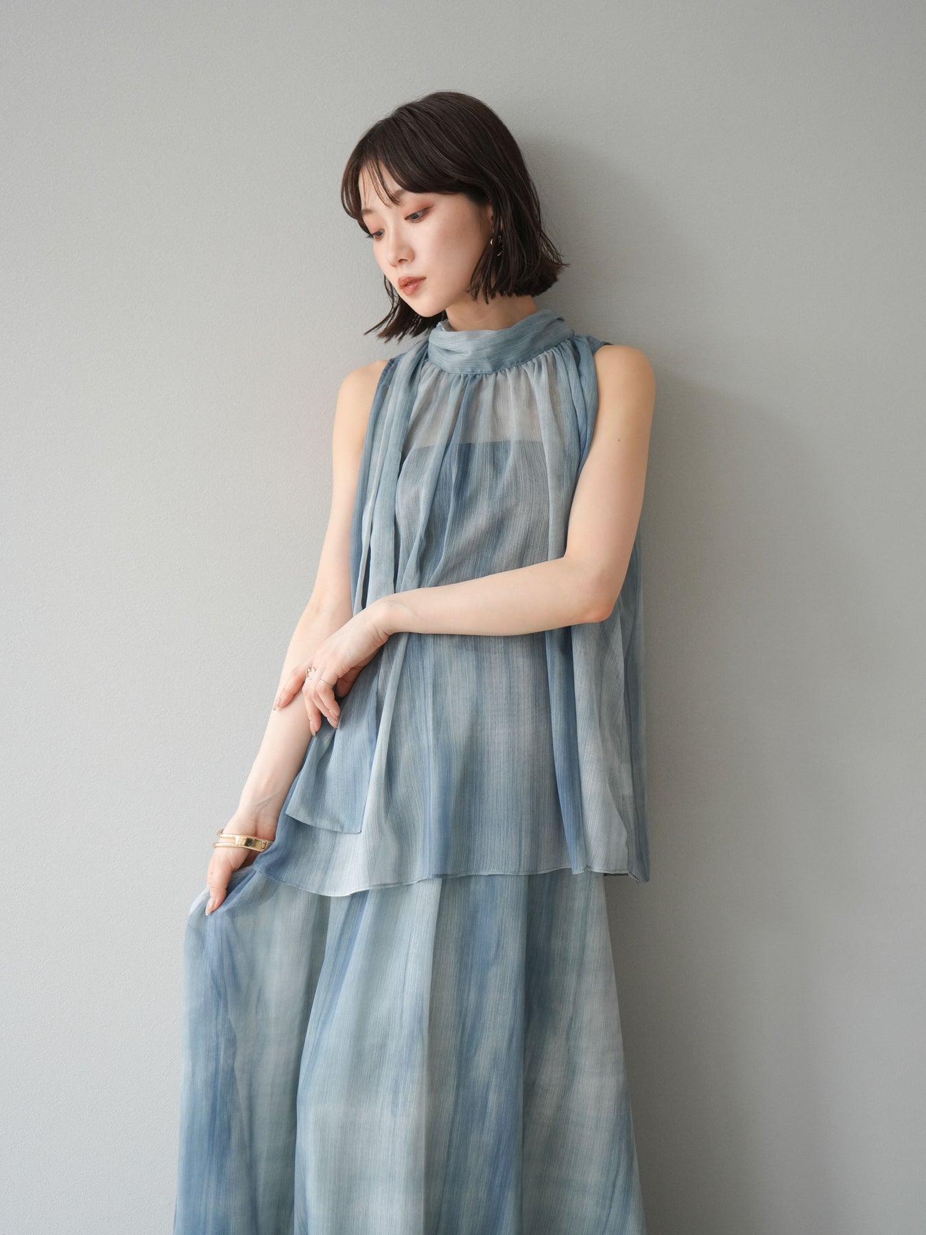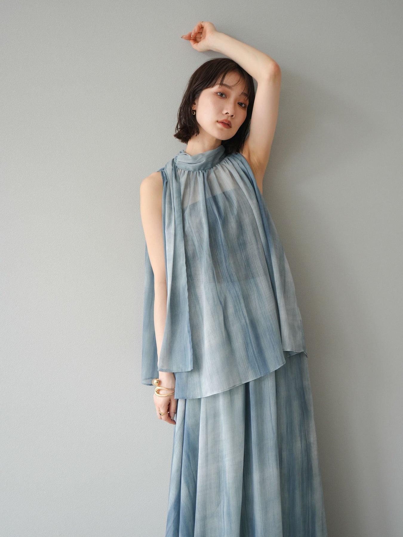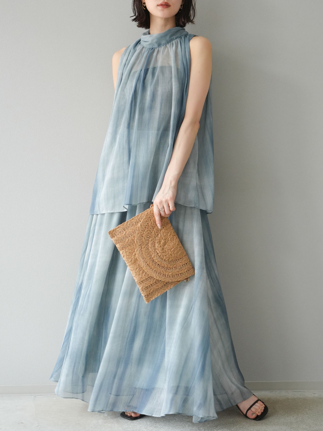 [予約]ニュアンスシアーホルターネックブラウス+[予約]ニュアンスシアーフレアスカート