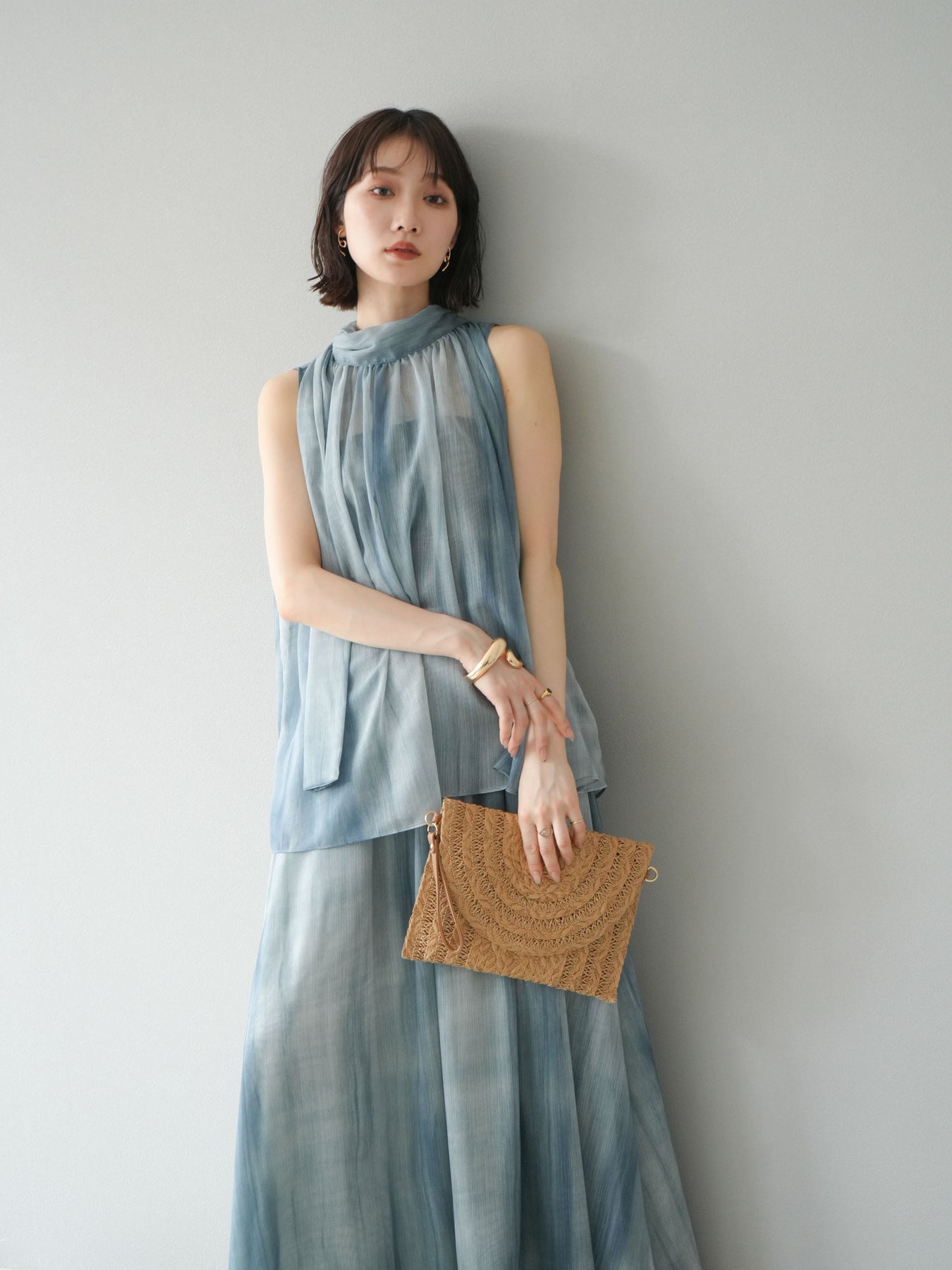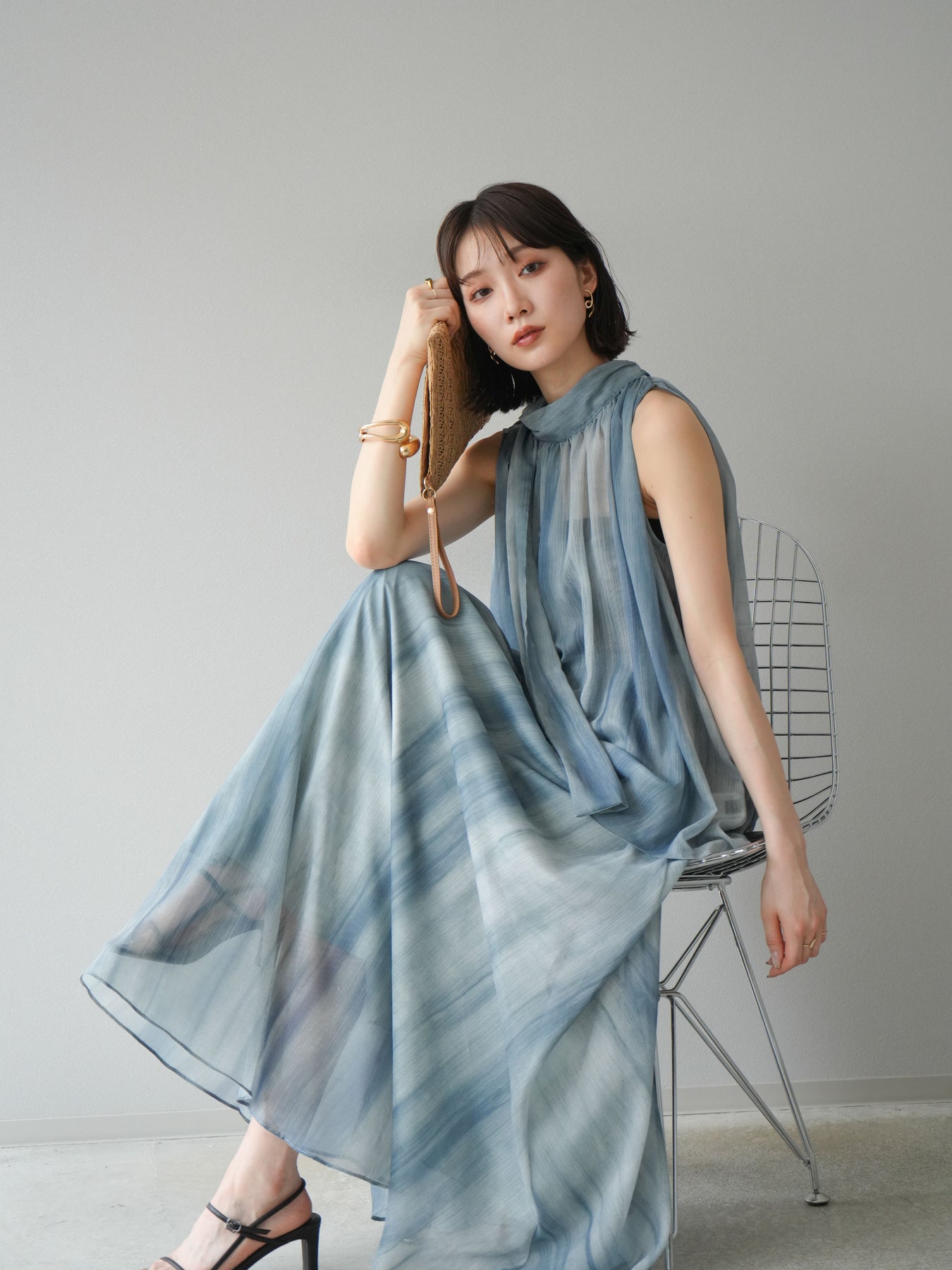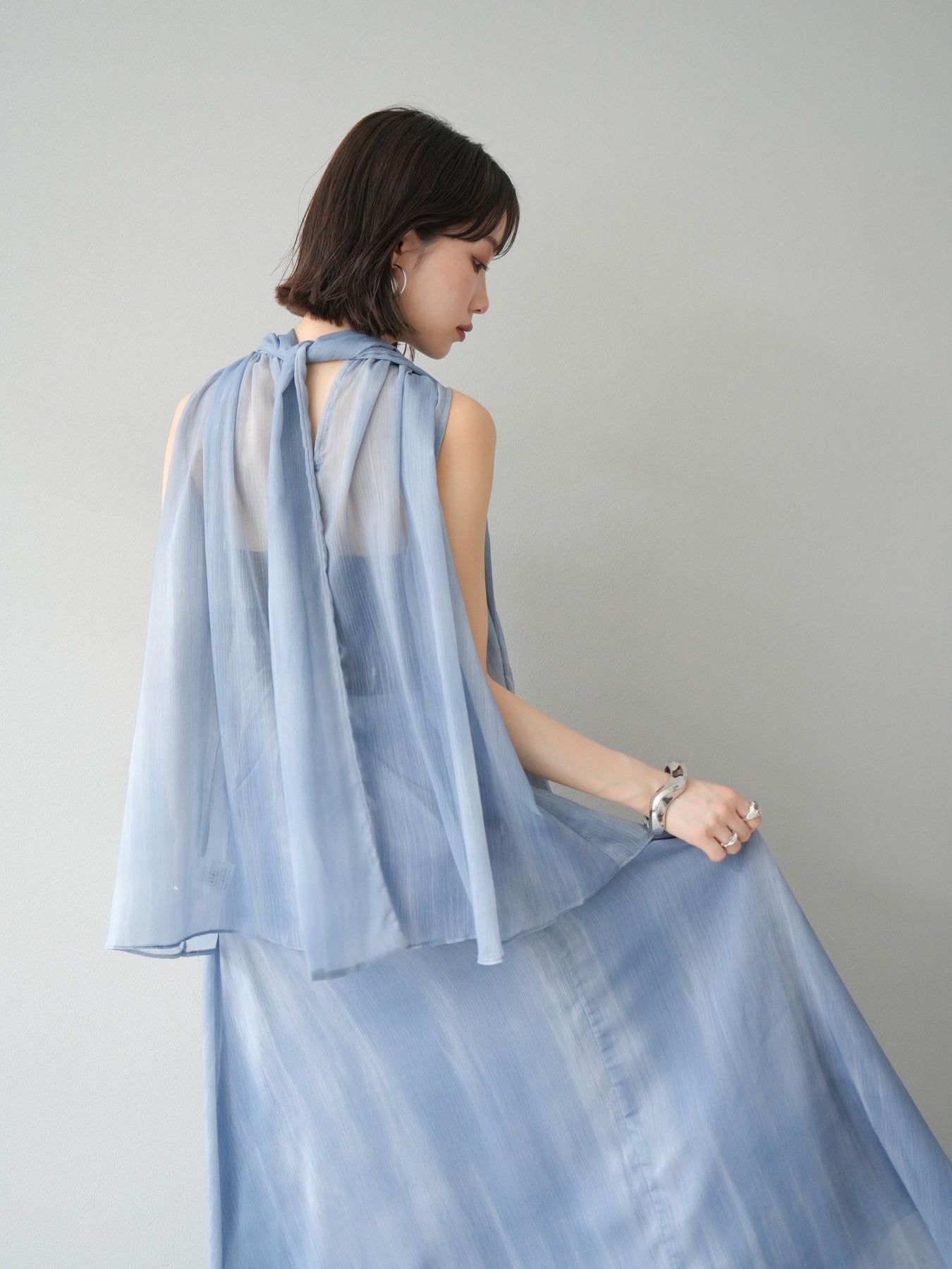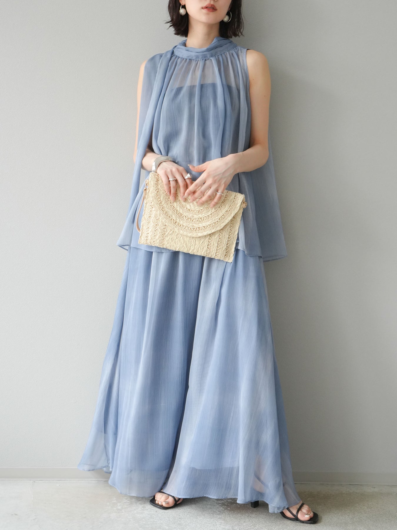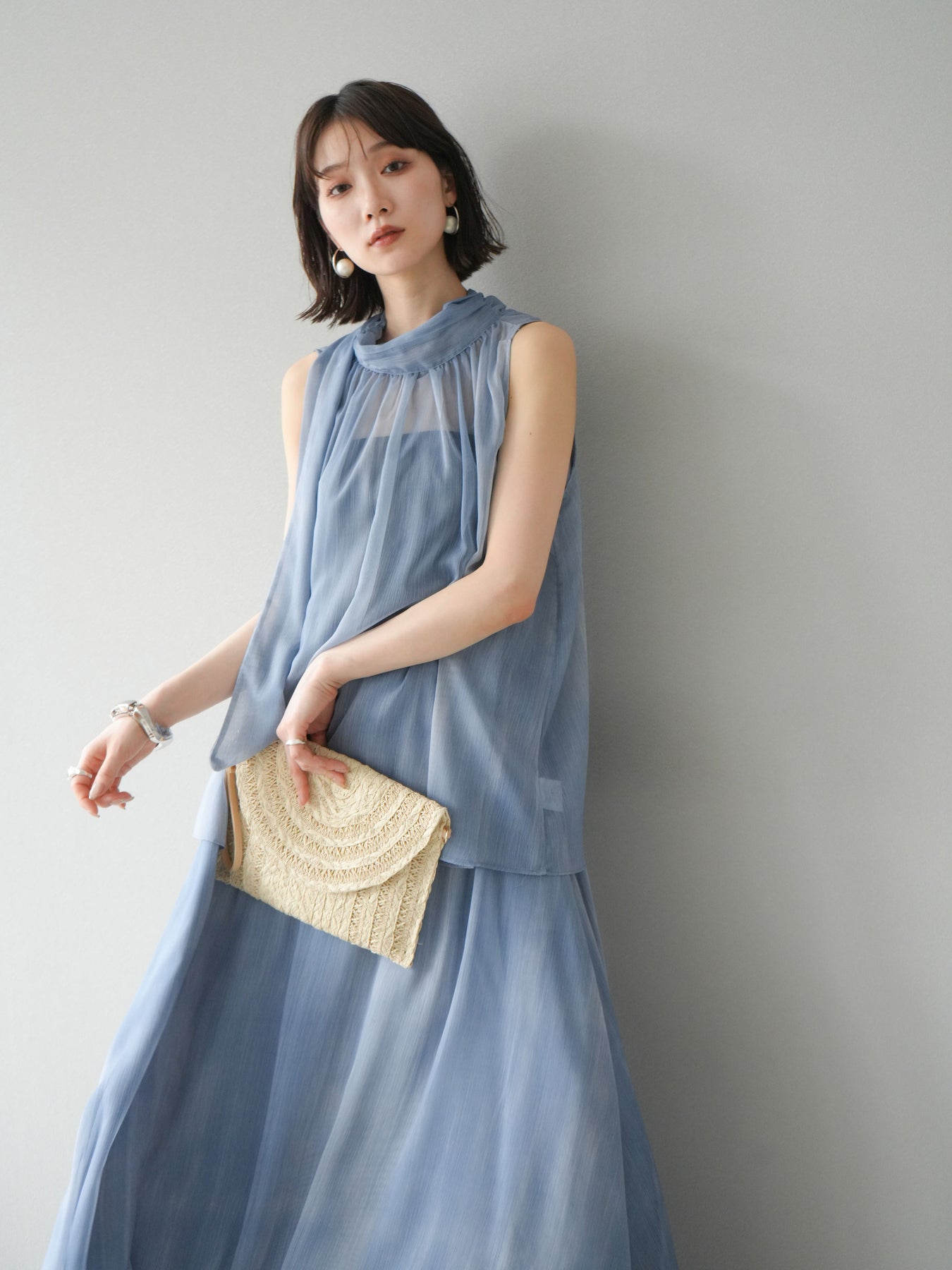 [予約]ニュアンスシアーホルターネックブラウス+[予約]ニュアンスシアーフレアスカート