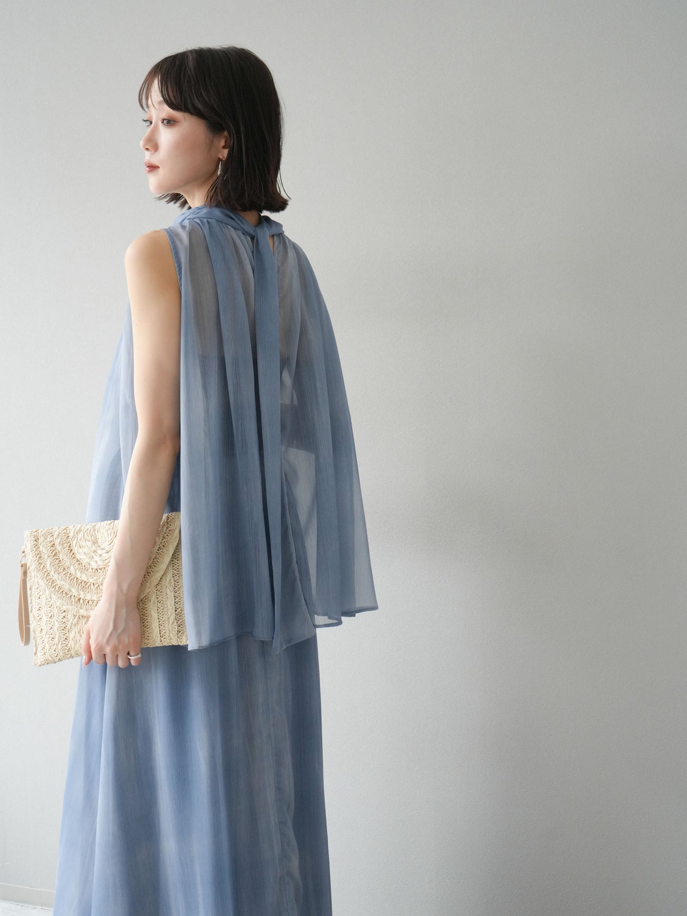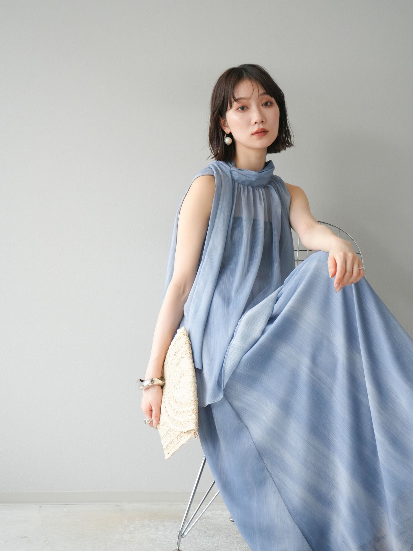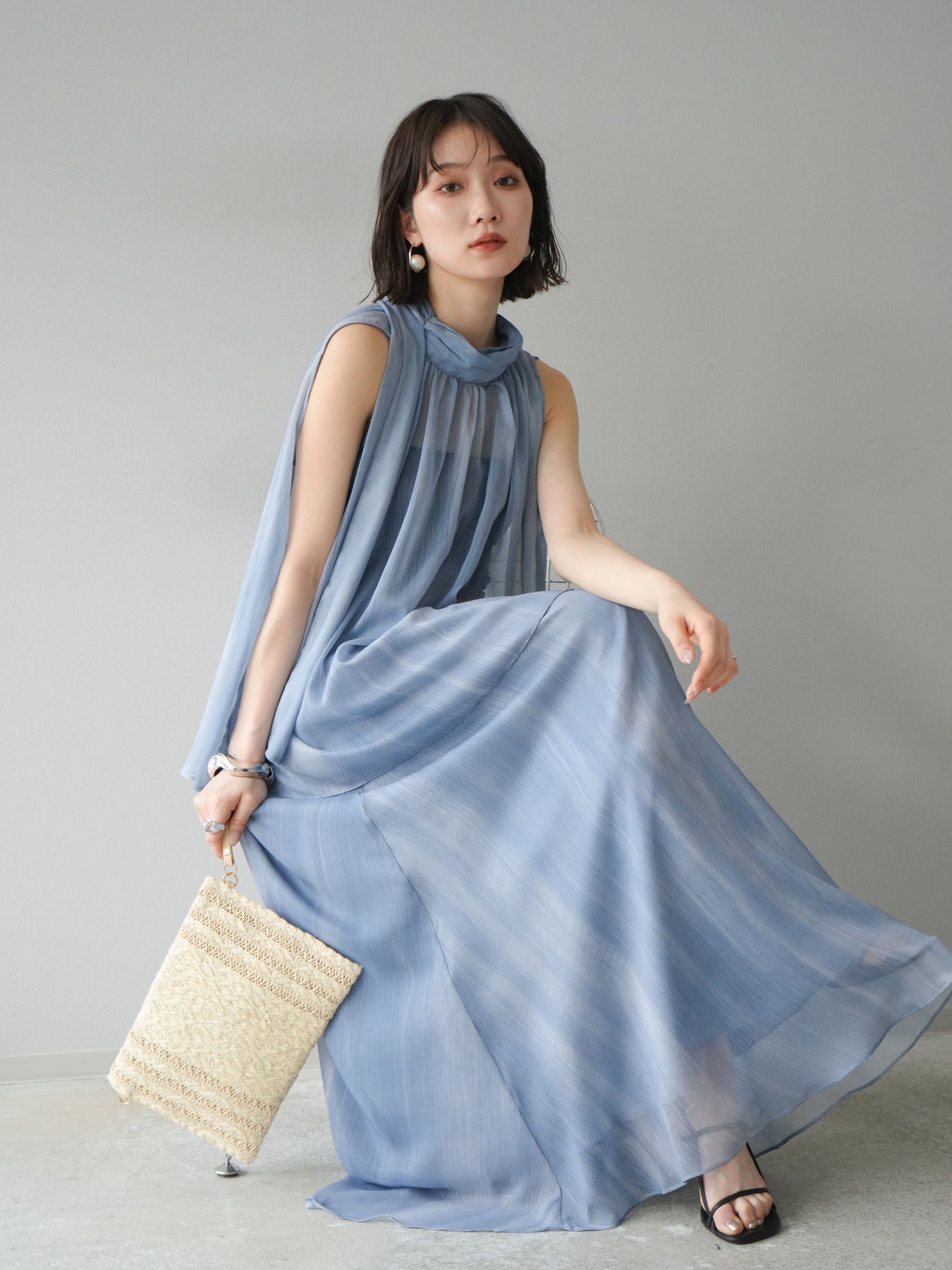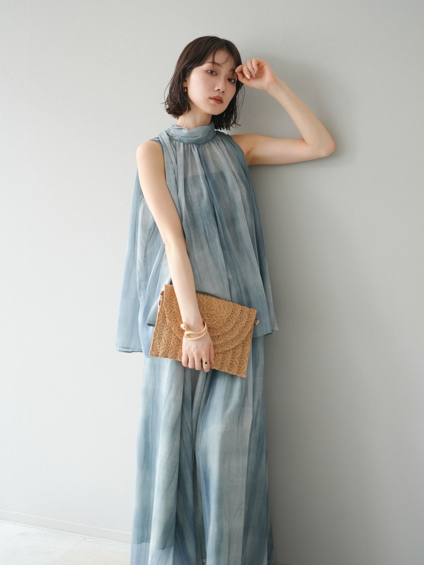 [予約]ニュアンスシアーホルターネックブラウス+[予約]ニュアンスシアーフレアスカート