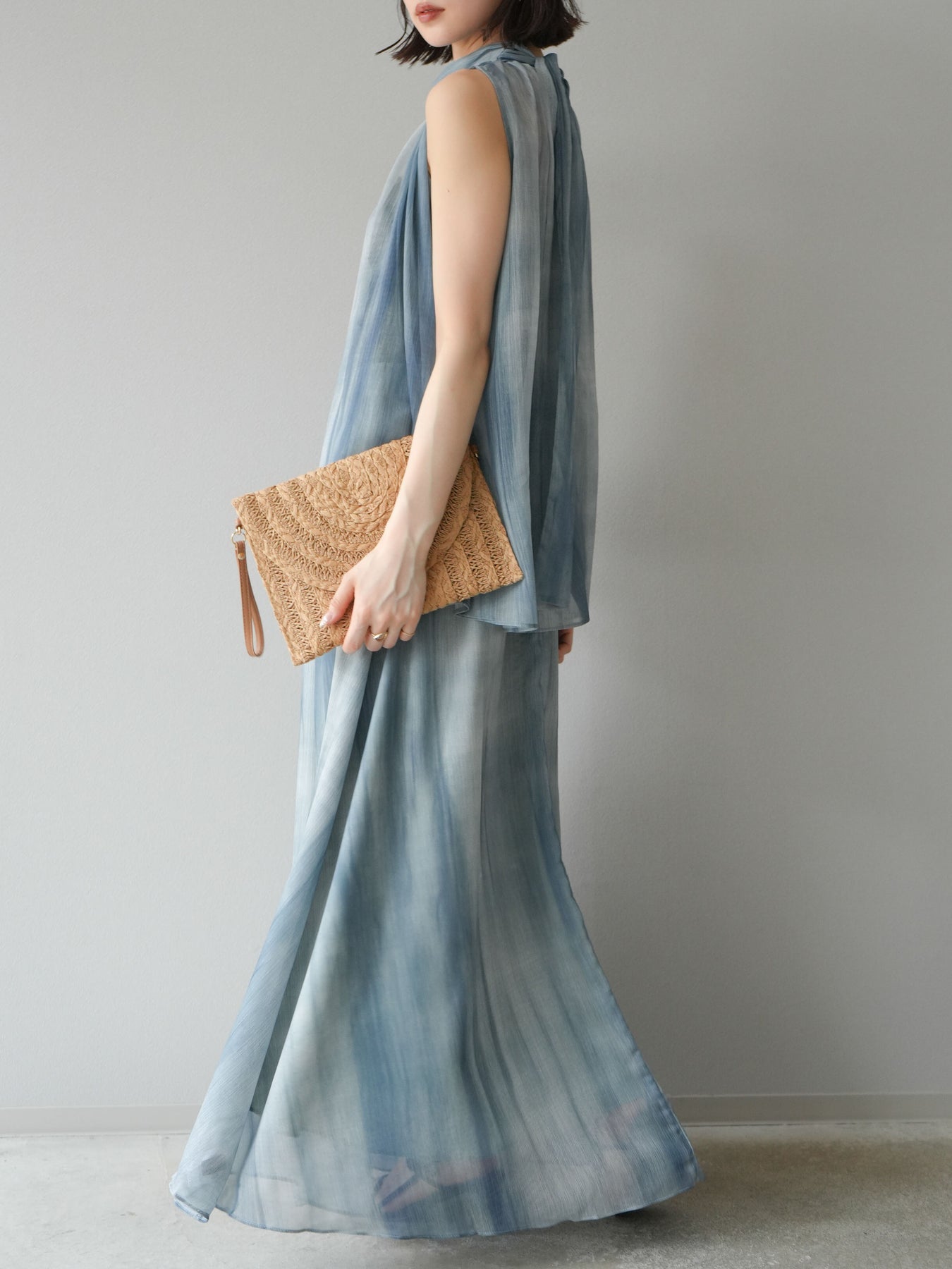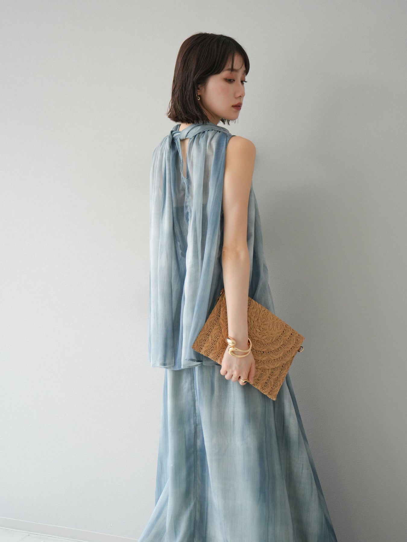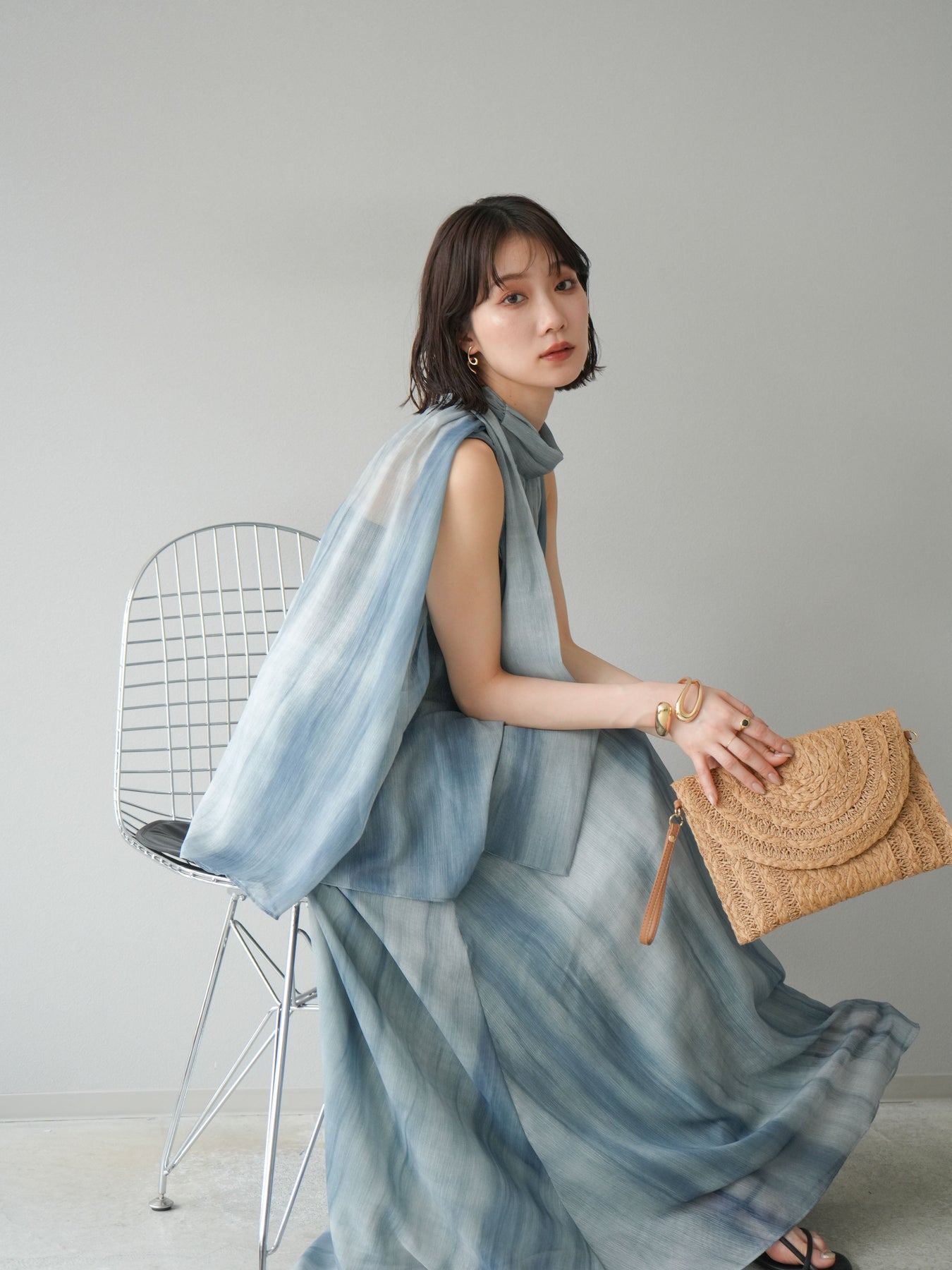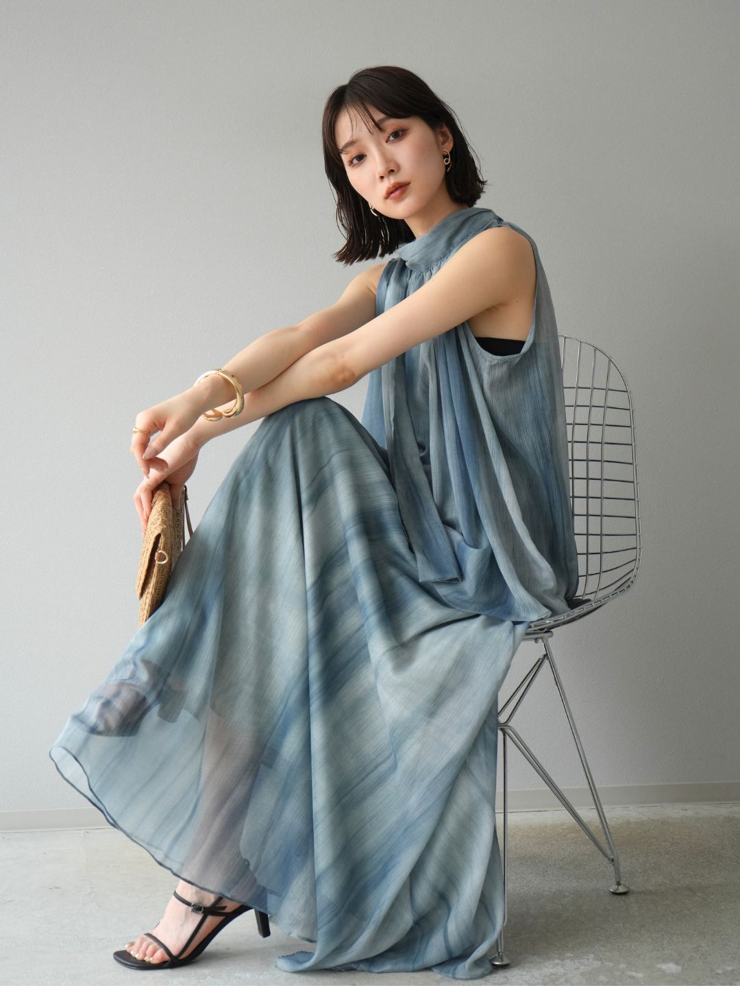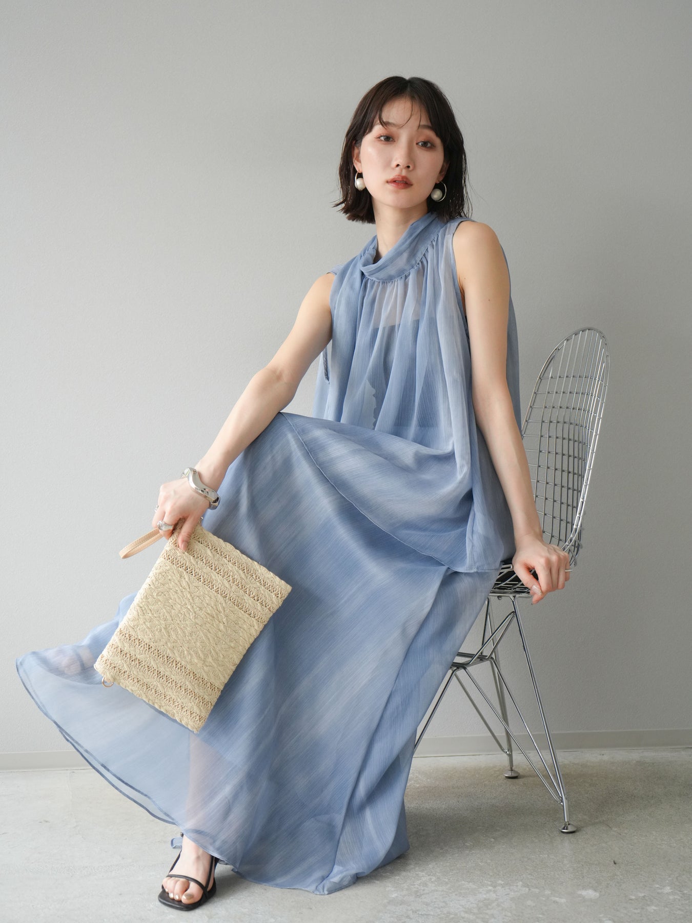 [予約]ニュアンスシアーホルターネックブラウス+[予約]ニュアンスシアーフレアスカート