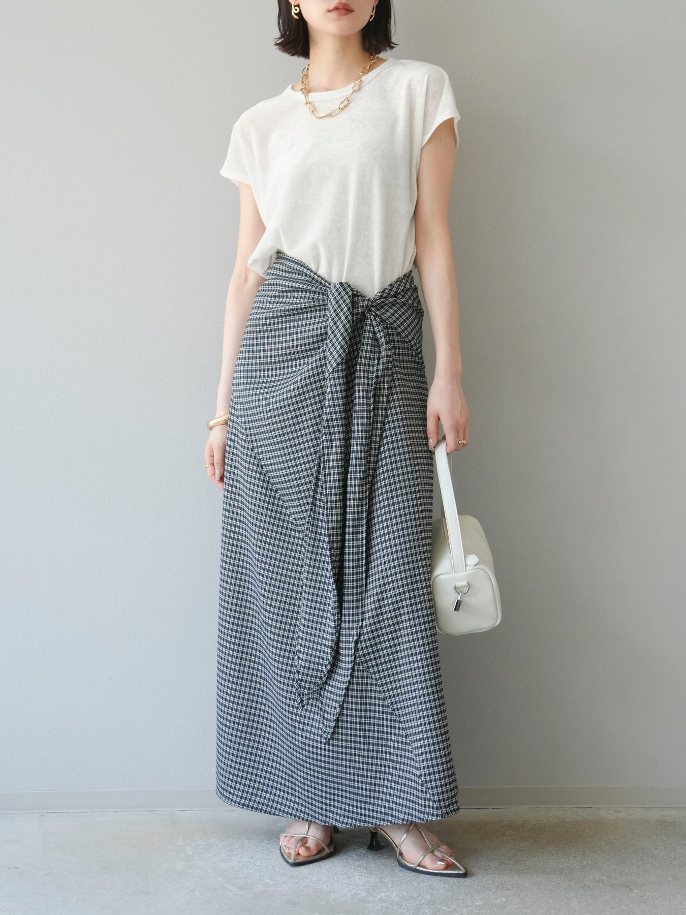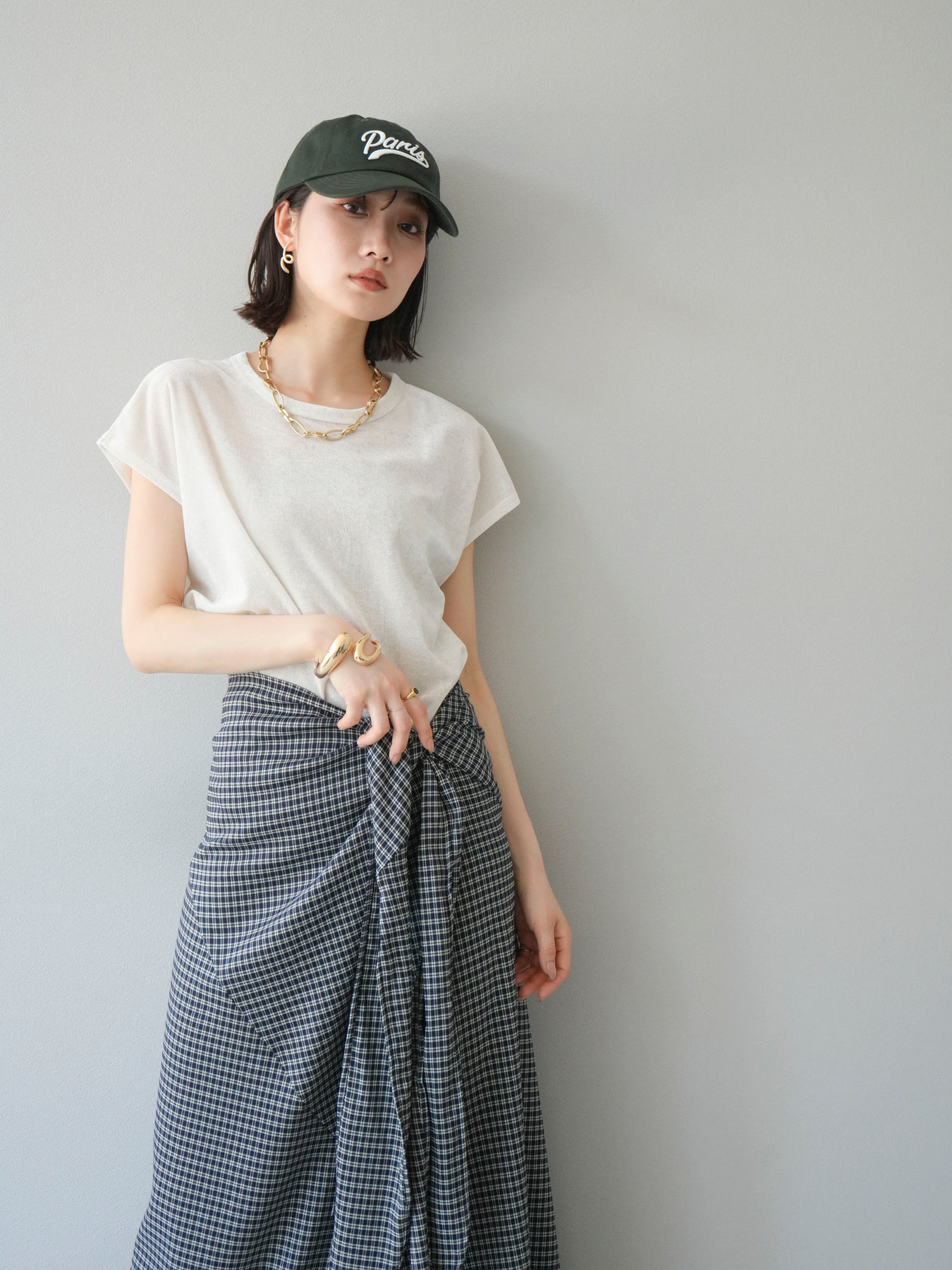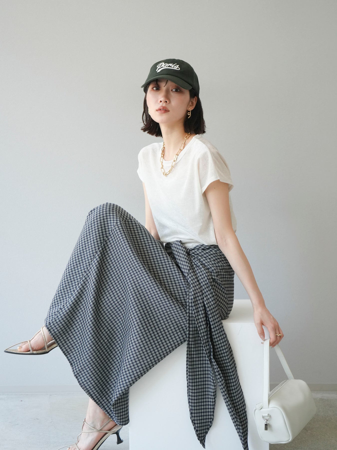 立体的な巻きデザインが目を惹く、サイドタイ仕様のツイルスカート。ややハリ感のあるしなやかなツイル素材が、シルエットに美しい落ち感を与えてくれます。ウエスト部分の結び目がアクセントとなり、シンプルなトップスと合わせるだけでこなれたスタイリングが完成。程よく広がるロング丈で、体型カバーも叶えてくれる優秀アイテムです。カジュアルからきれいめまで幅広く活躍する、着回し力の高い一着。