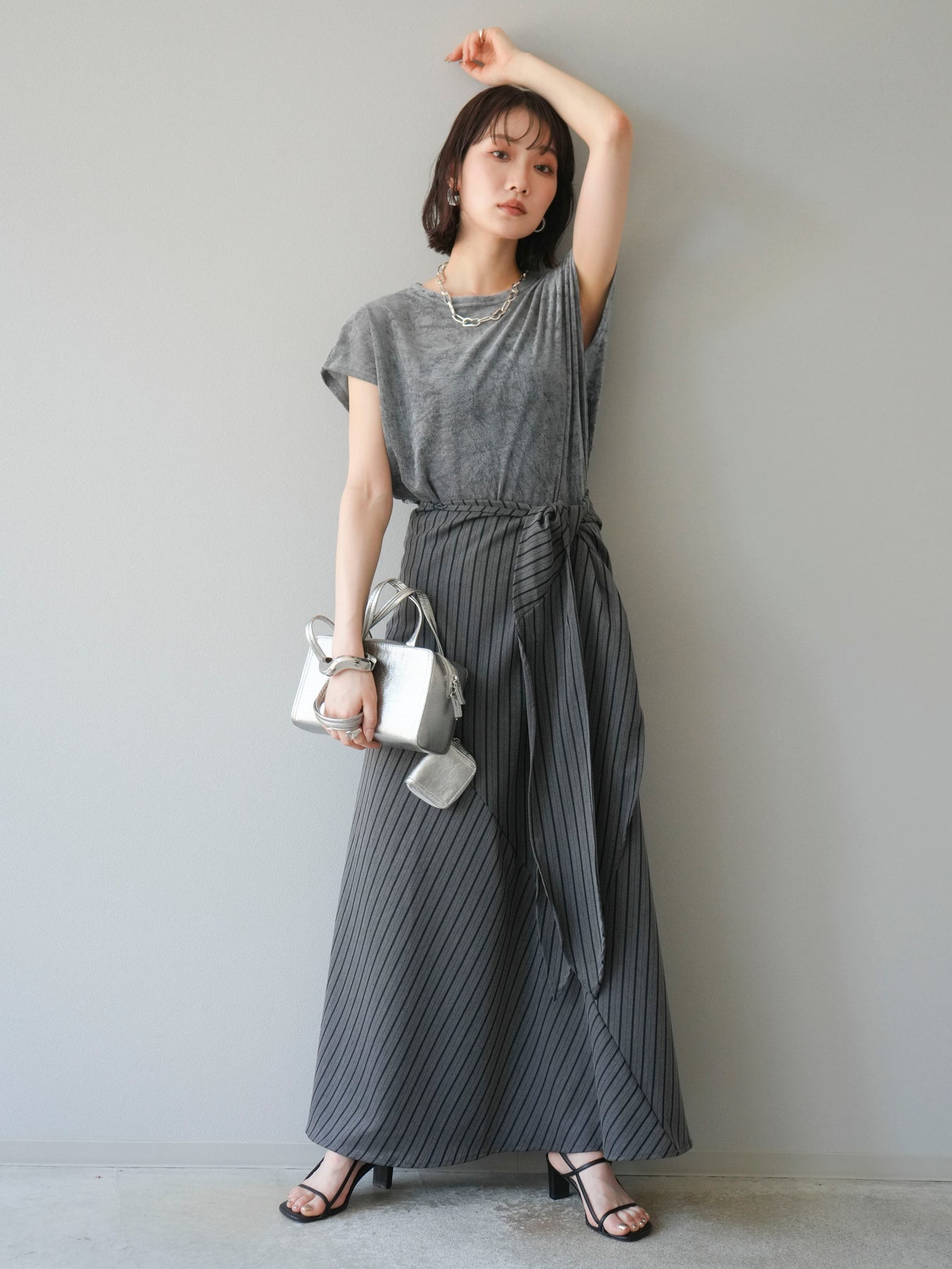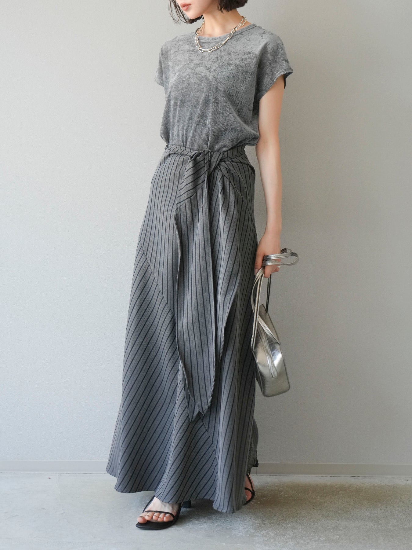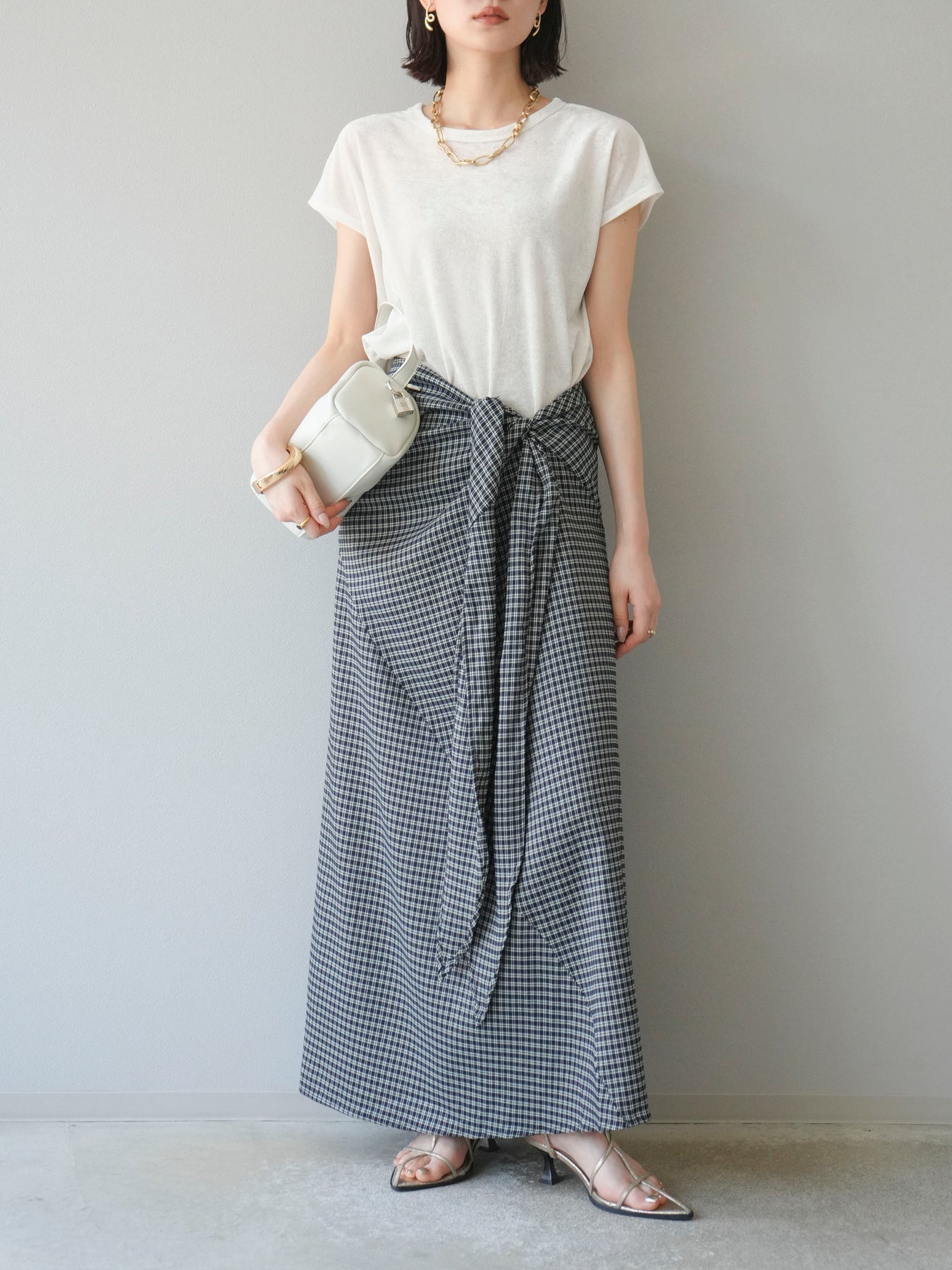 立体的な巻きデザインが目を惹く、サイドタイ仕様のツイルスカート。ややハリ感のあるしなやかなツイル素材が、シルエットに美しい落ち感を与えてくれます。ウエスト部分の結び目がアクセントとなり、シンプルなトップスと合わせるだけでこなれたスタイリングが完成。程よく広がるロング丈で、体型カバーも叶えてくれる優秀アイテムです。カジュアルからきれいめまで幅広く活躍する、着回し力の高い一着。