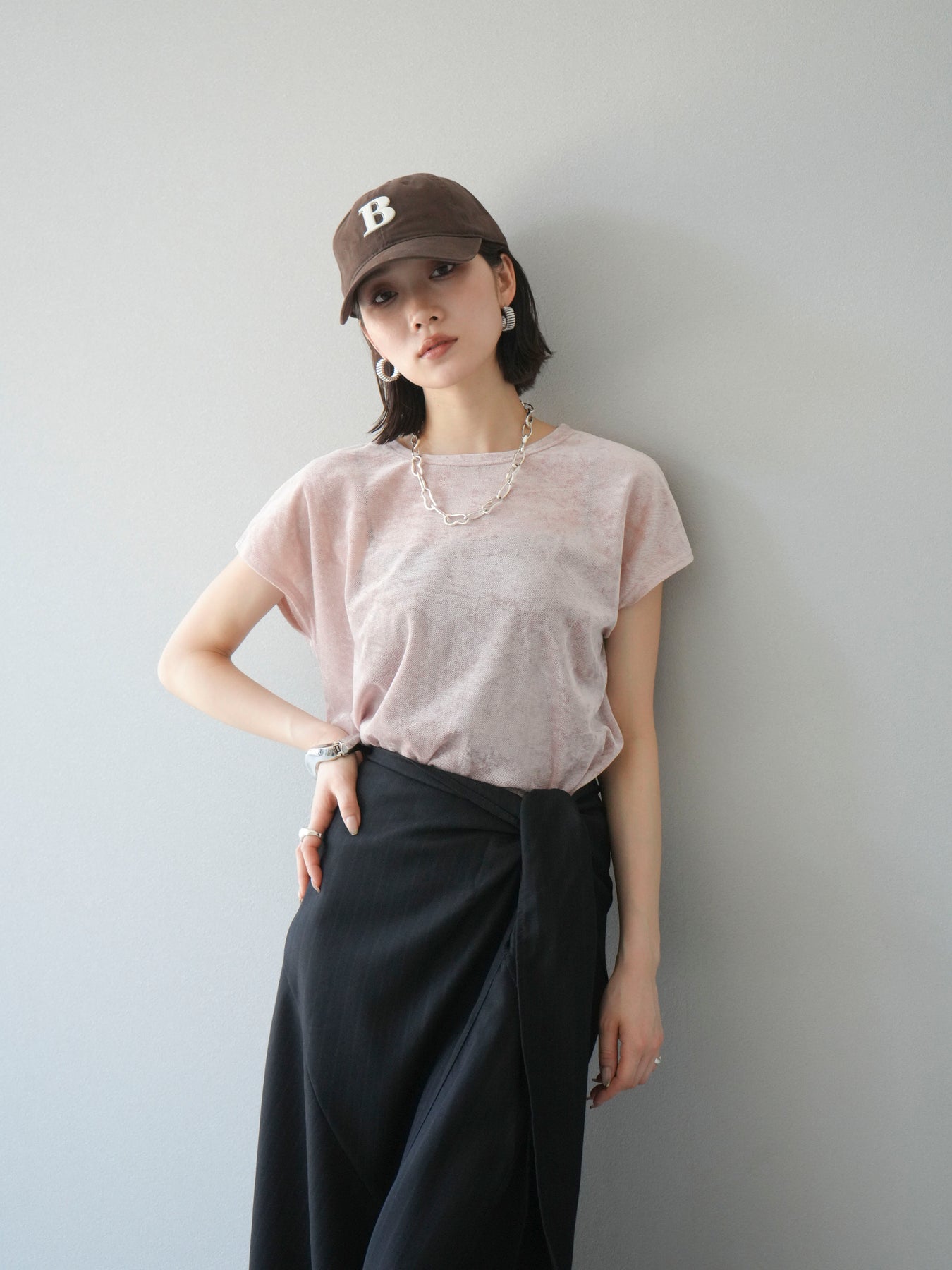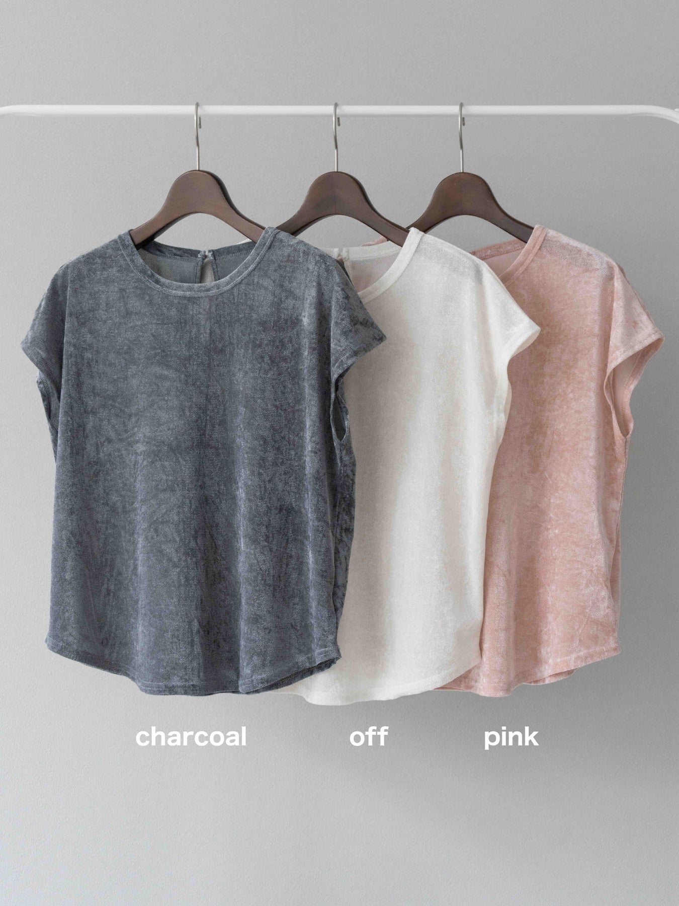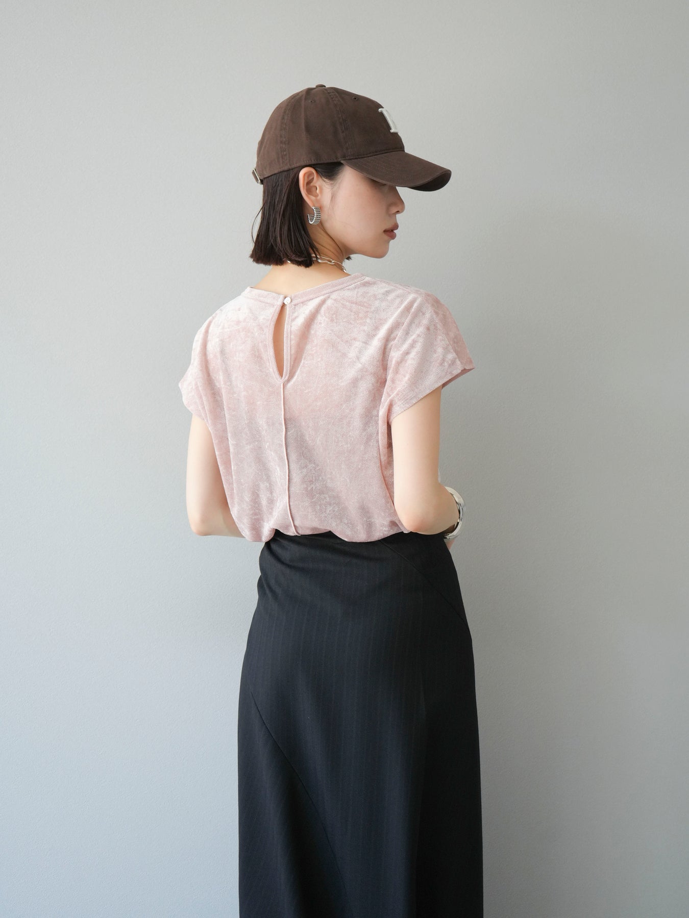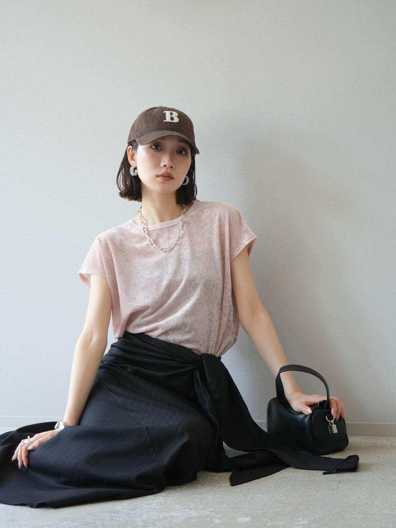 ほんのりとした光沢感と透け感が魅力の、シアーベロア素材を使用したプルオーバー。上品さとカジュアルさを兼ね備えた素材感で、シンプルなシルエットながらもこなれ感を演出してくれる一枚です。落ち感のある柔らかな風合いで着心地も抜群。インナーとのレイヤードで表情を変えられるのもポイントです。デニムやスカートに合わせるだけで、旬なスタイリングが完成する万能トップス。 ※ボトムス、キャミソール(インナー)以外の商品は一律でインナーは付属していません。