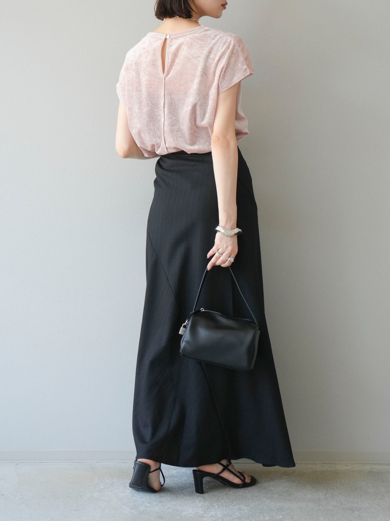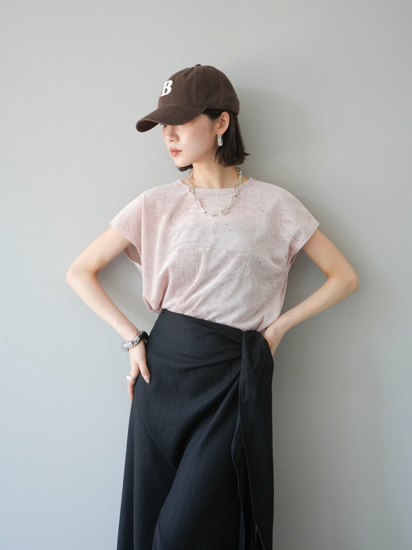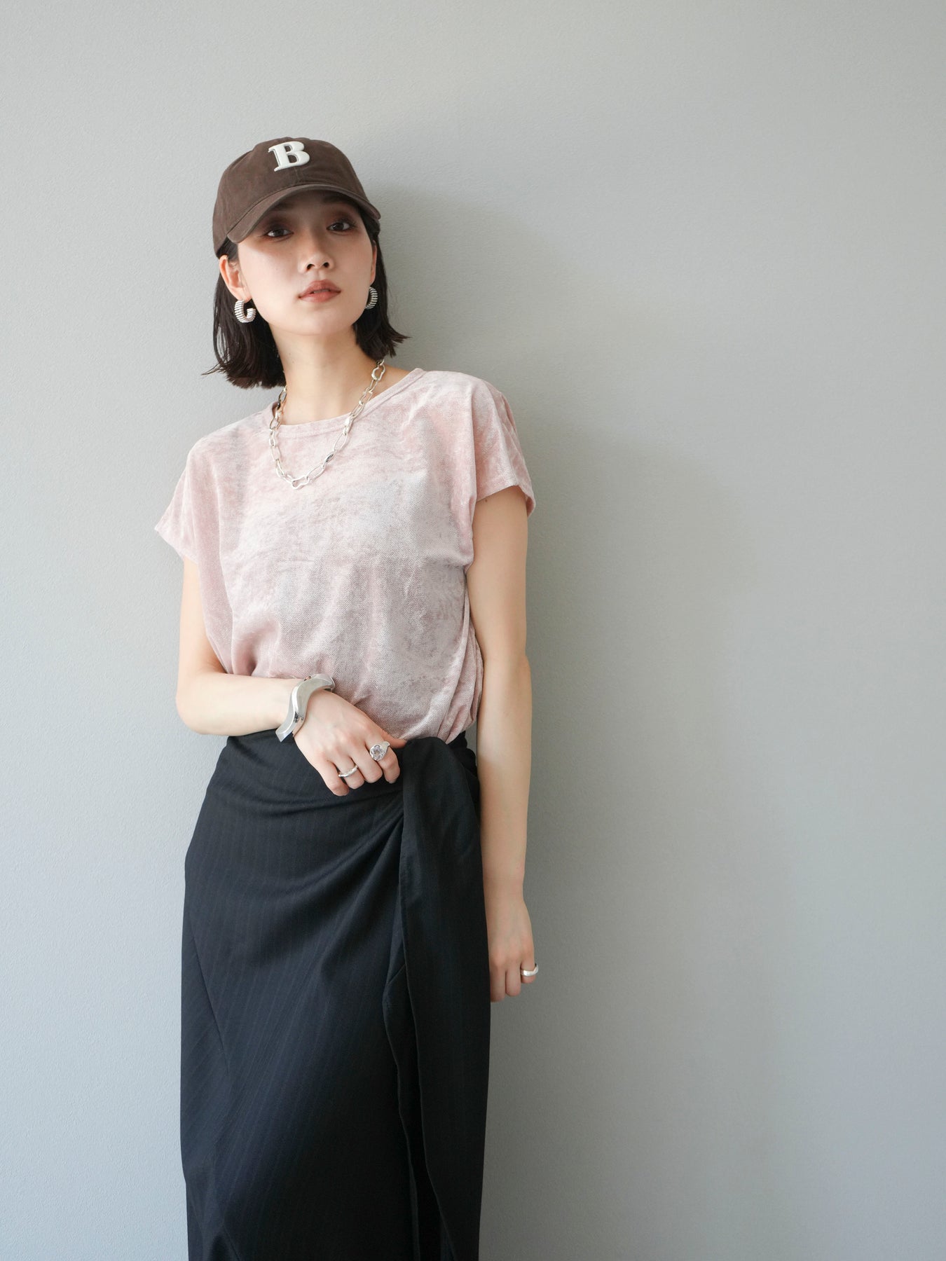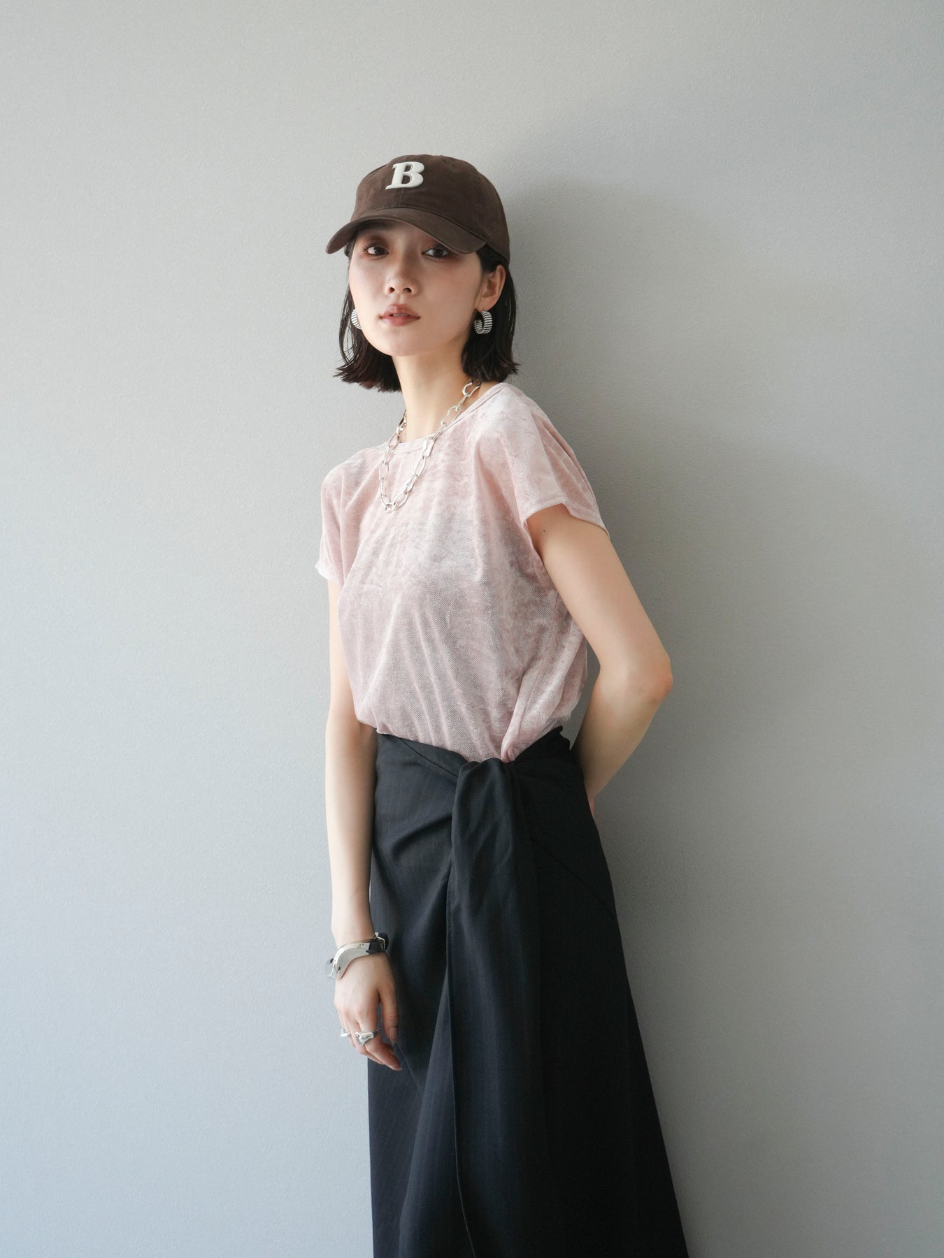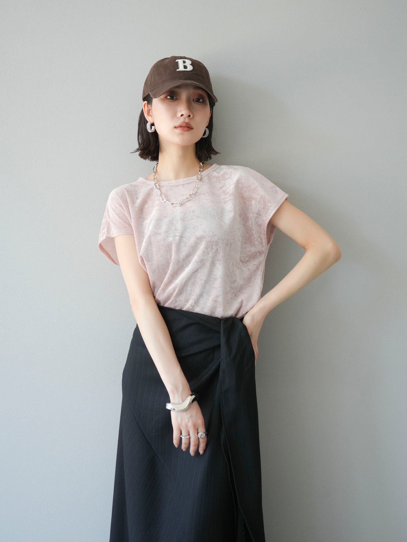 ほんのりとした光沢感と透け感が魅力の、シアーベロア素材を使用したプルオーバー。上品さとカジュアルさを兼ね備えた素材感で、シンプルなシルエットながらもこなれ感を演出してくれる一枚です。落ち感のある柔らかな風合いで着心地も抜群。インナーとのレイヤードで表情を変えられるのもポイントです。デニムやスカートに合わせるだけで、旬なスタイリングが完成する万能トップス。 ※ボトムス、キャミソール(インナー)以外の商品は一律でインナーは付属していません。