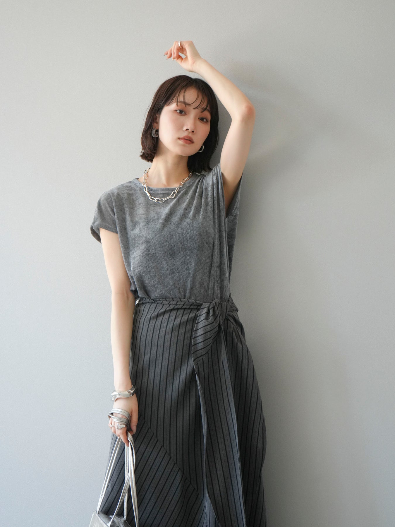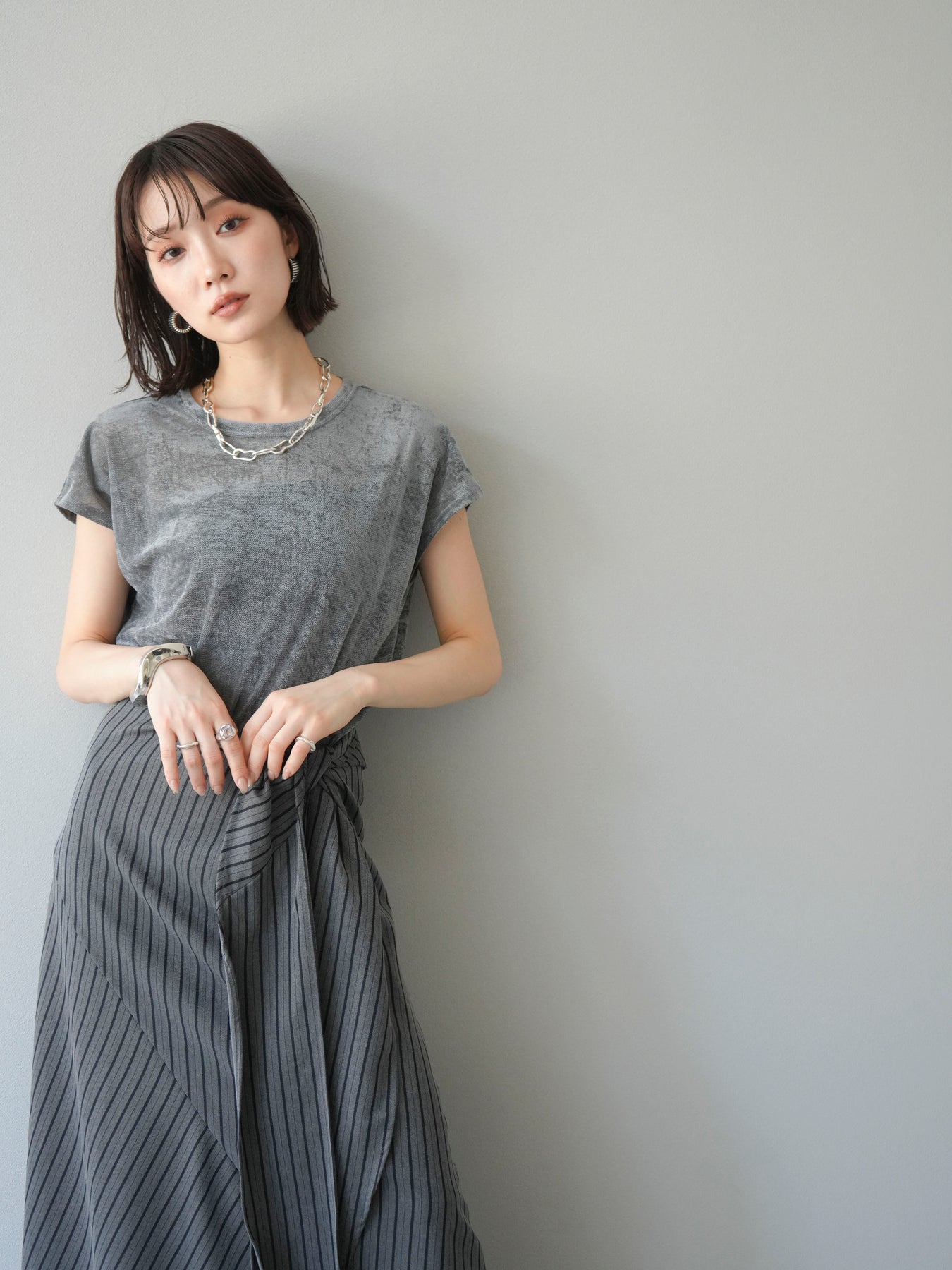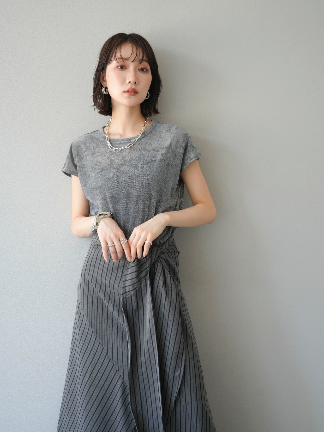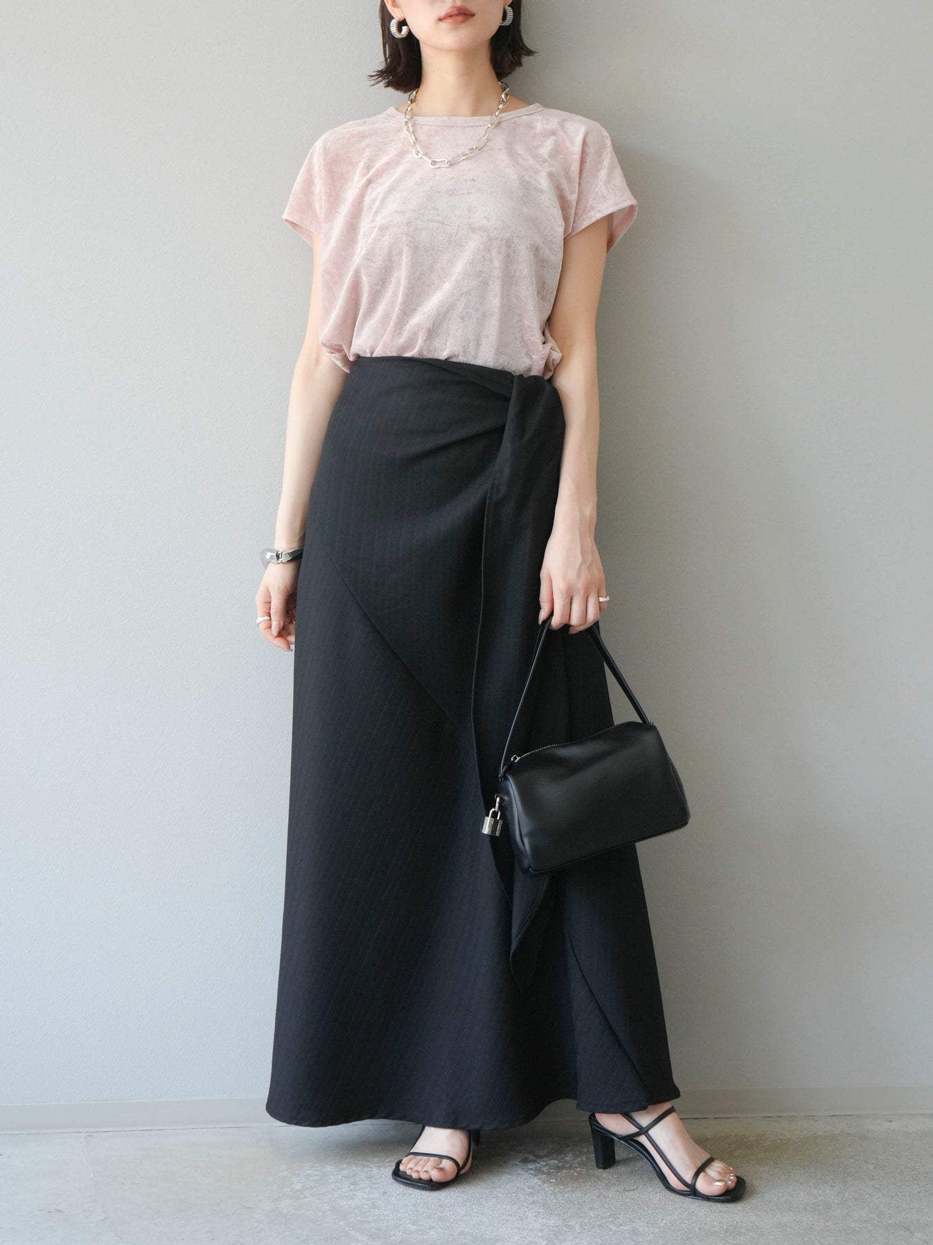 [SET]シアーベロアプルオーバー+サイド巻きツイルスカート(2set)