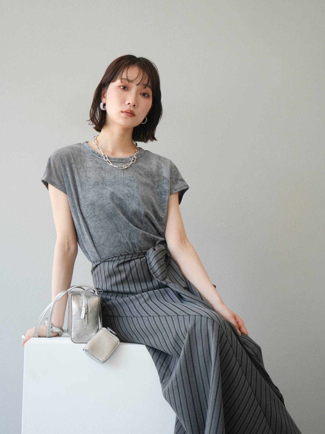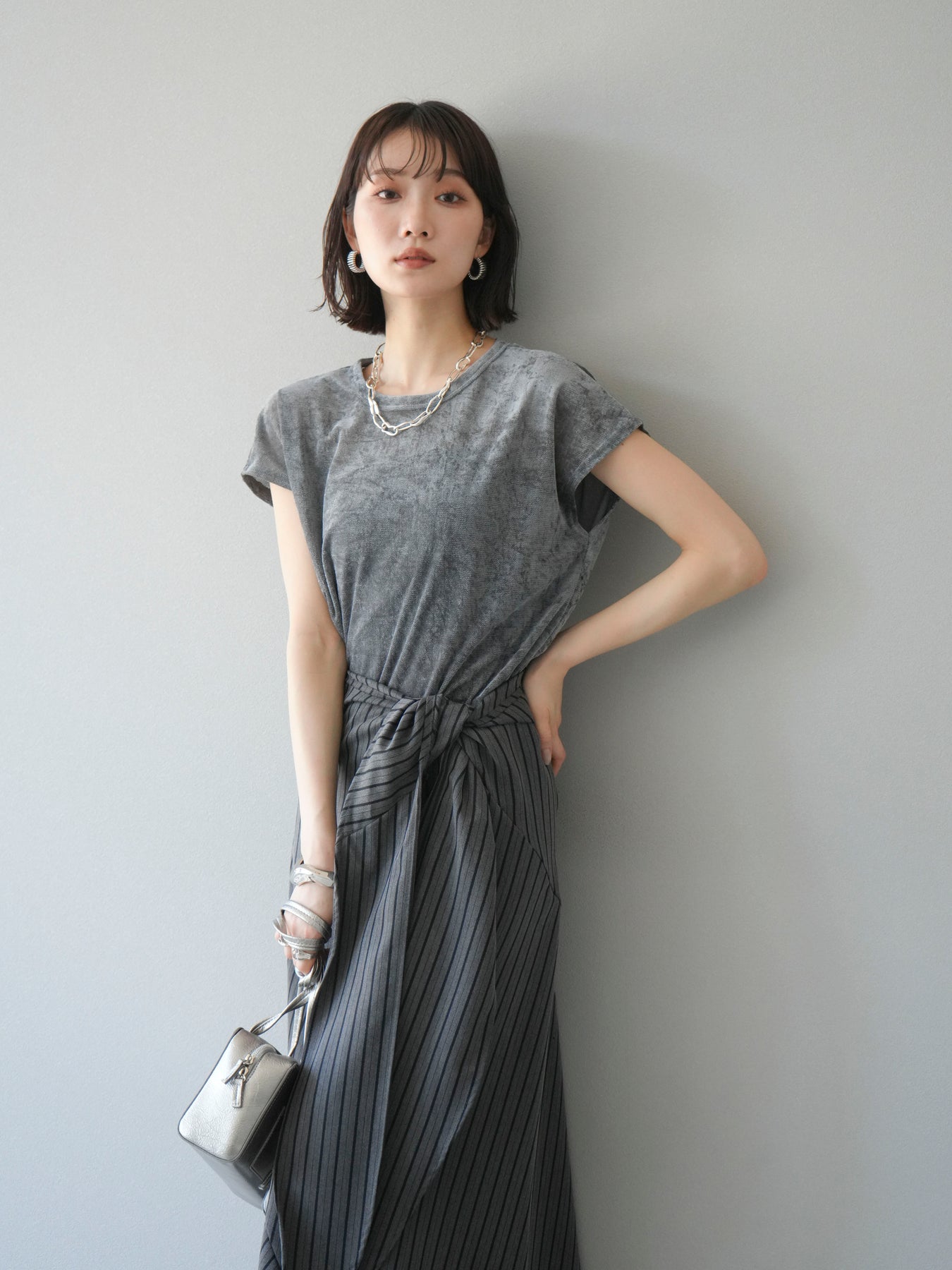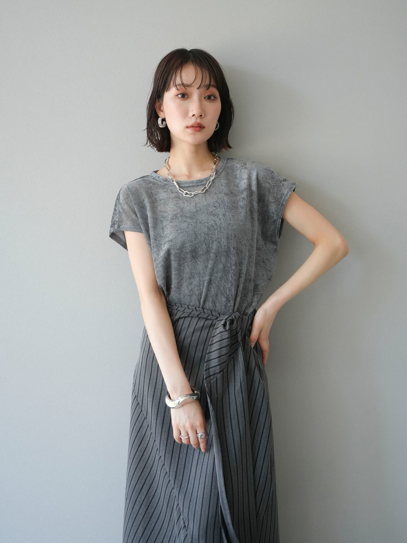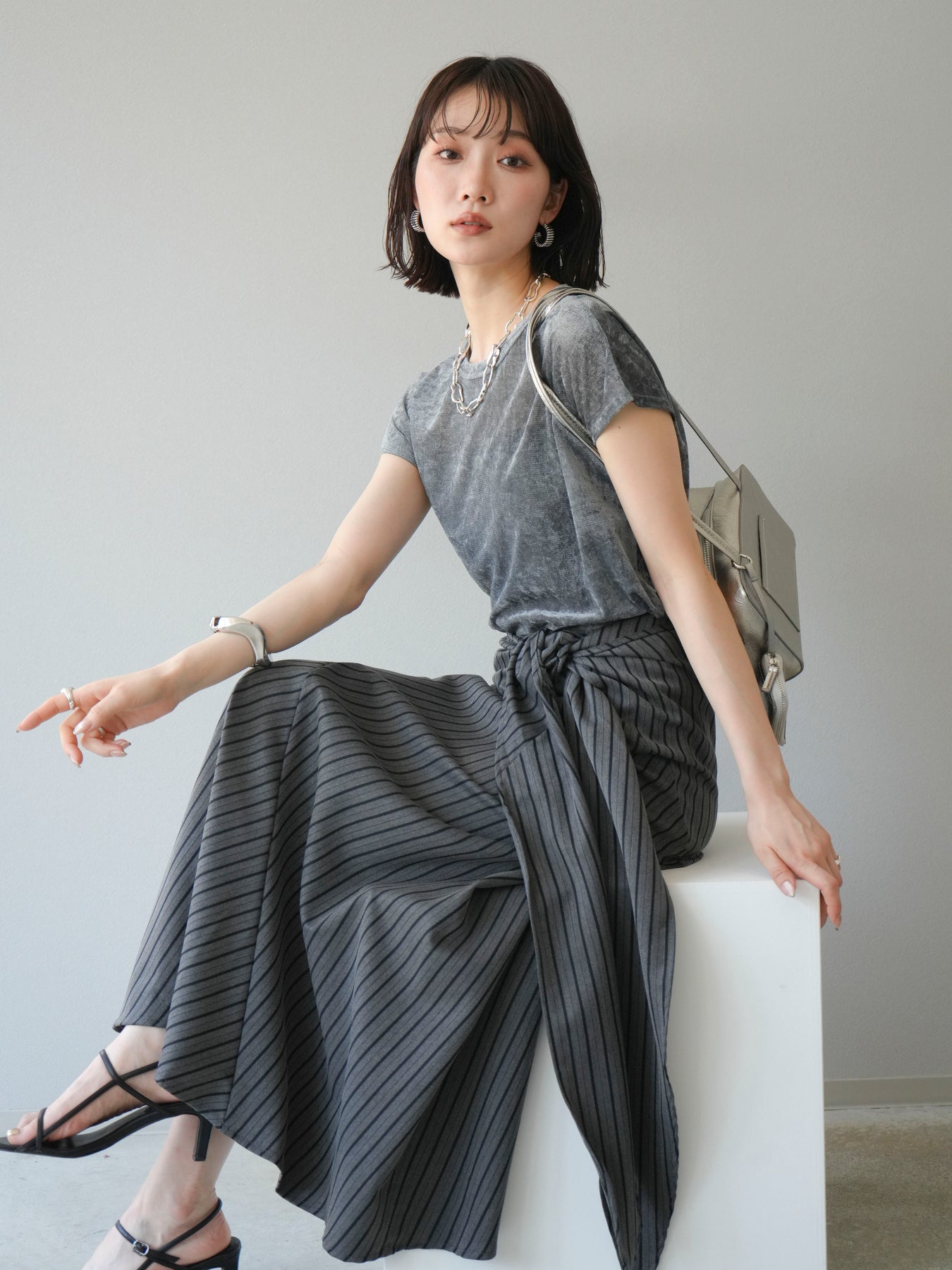 [SET]シアーベロアプルオーバー+サイド巻きツイルスカート(2set)