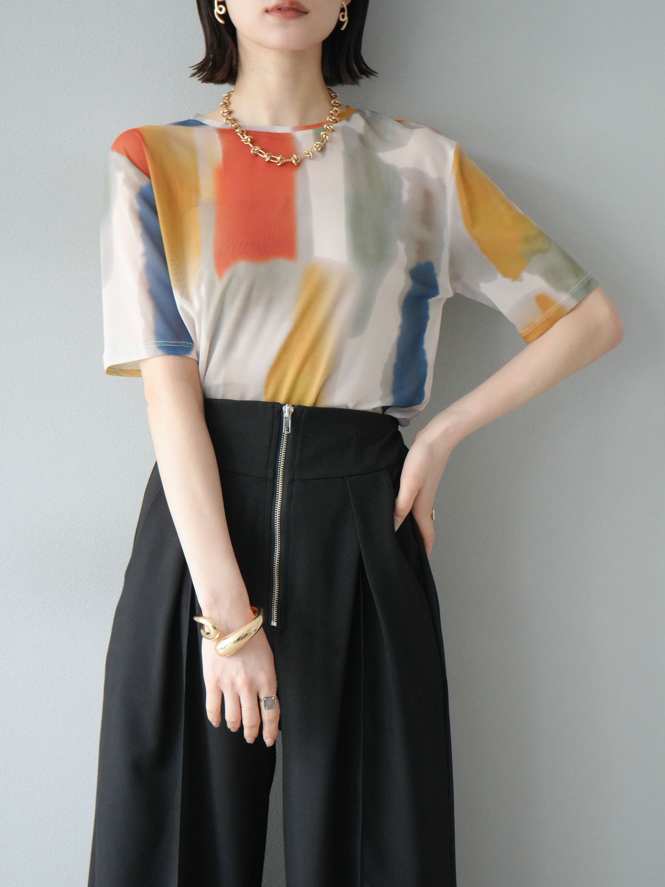 [SET]水彩アートシアーTシャツ+水彩アートシアーTシャツ(2set)