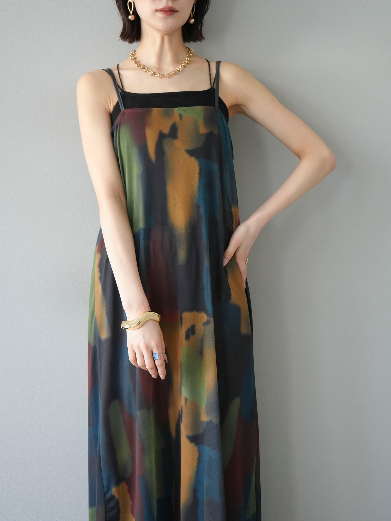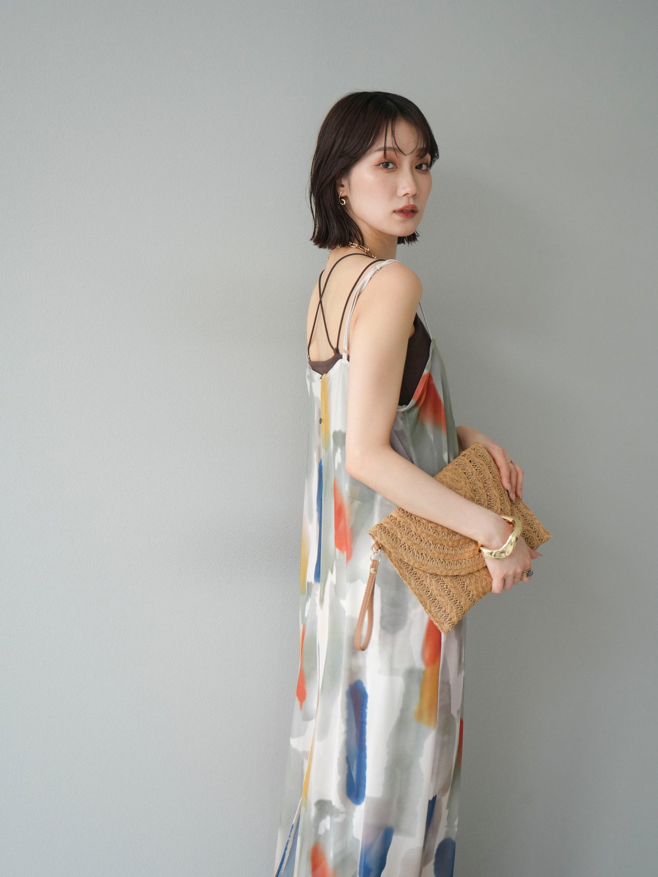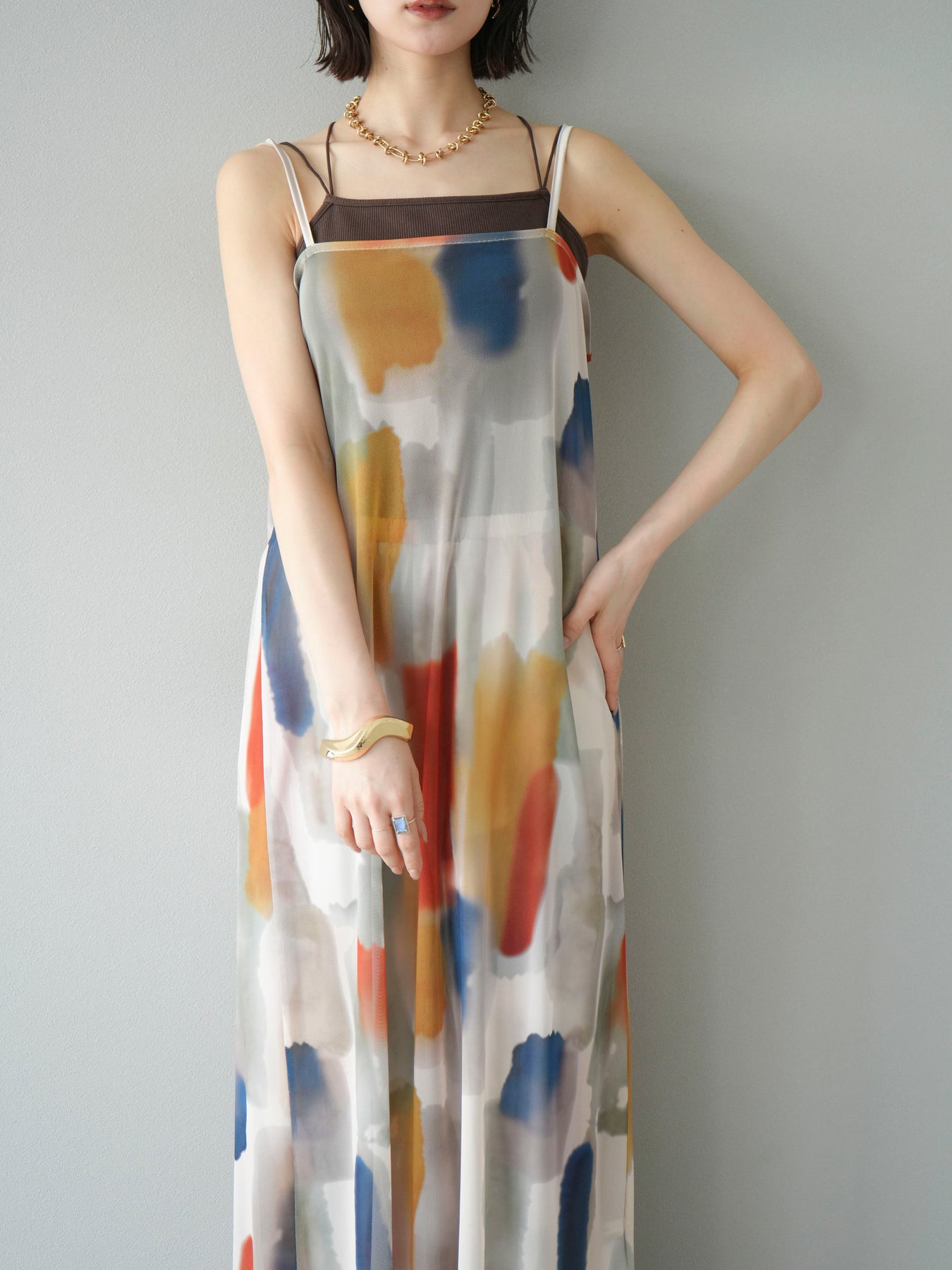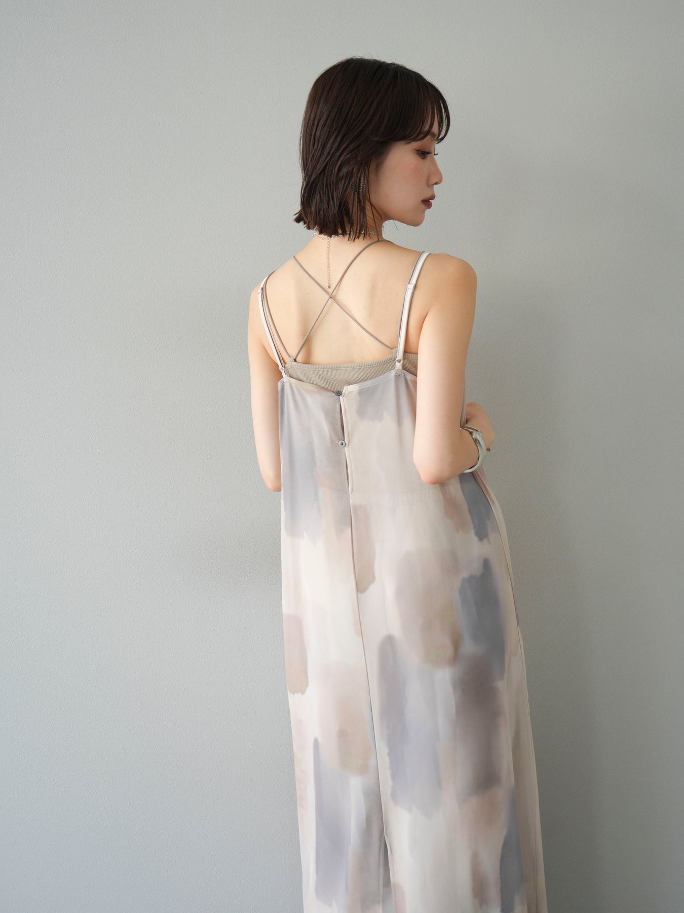 [SET]水彩アートシアーキャミワンピース+カップ付きバッククロスキャミソール(2set)