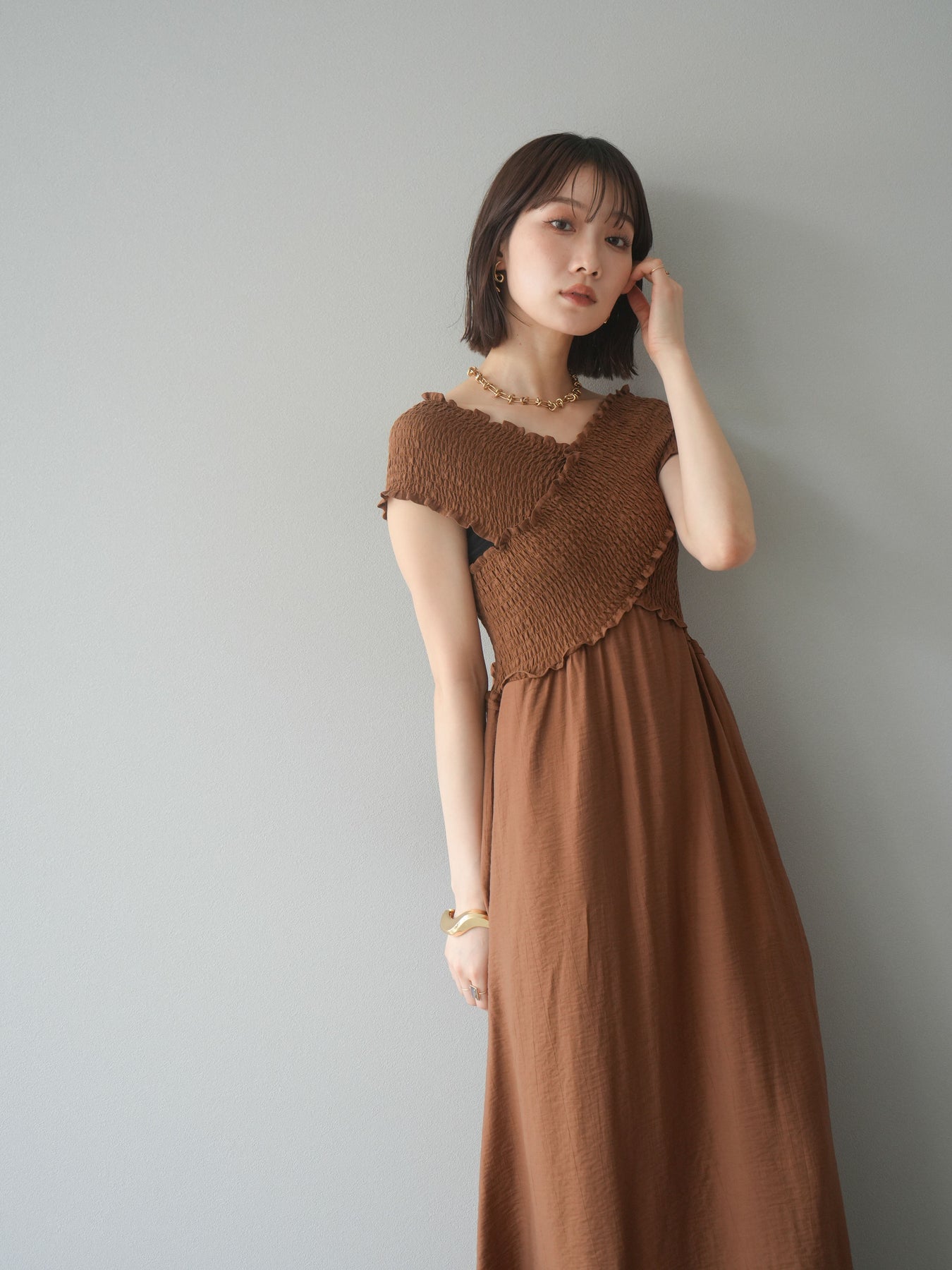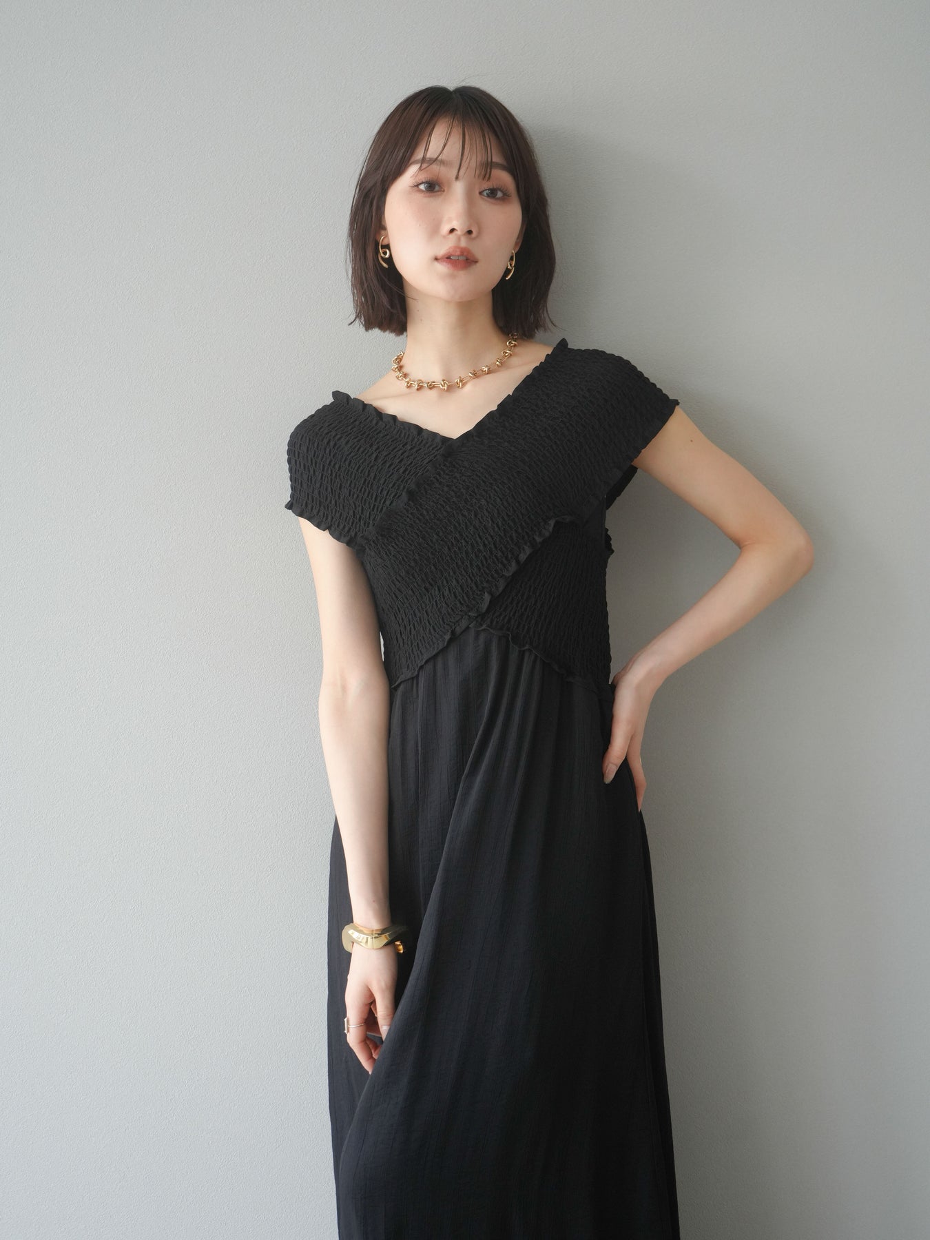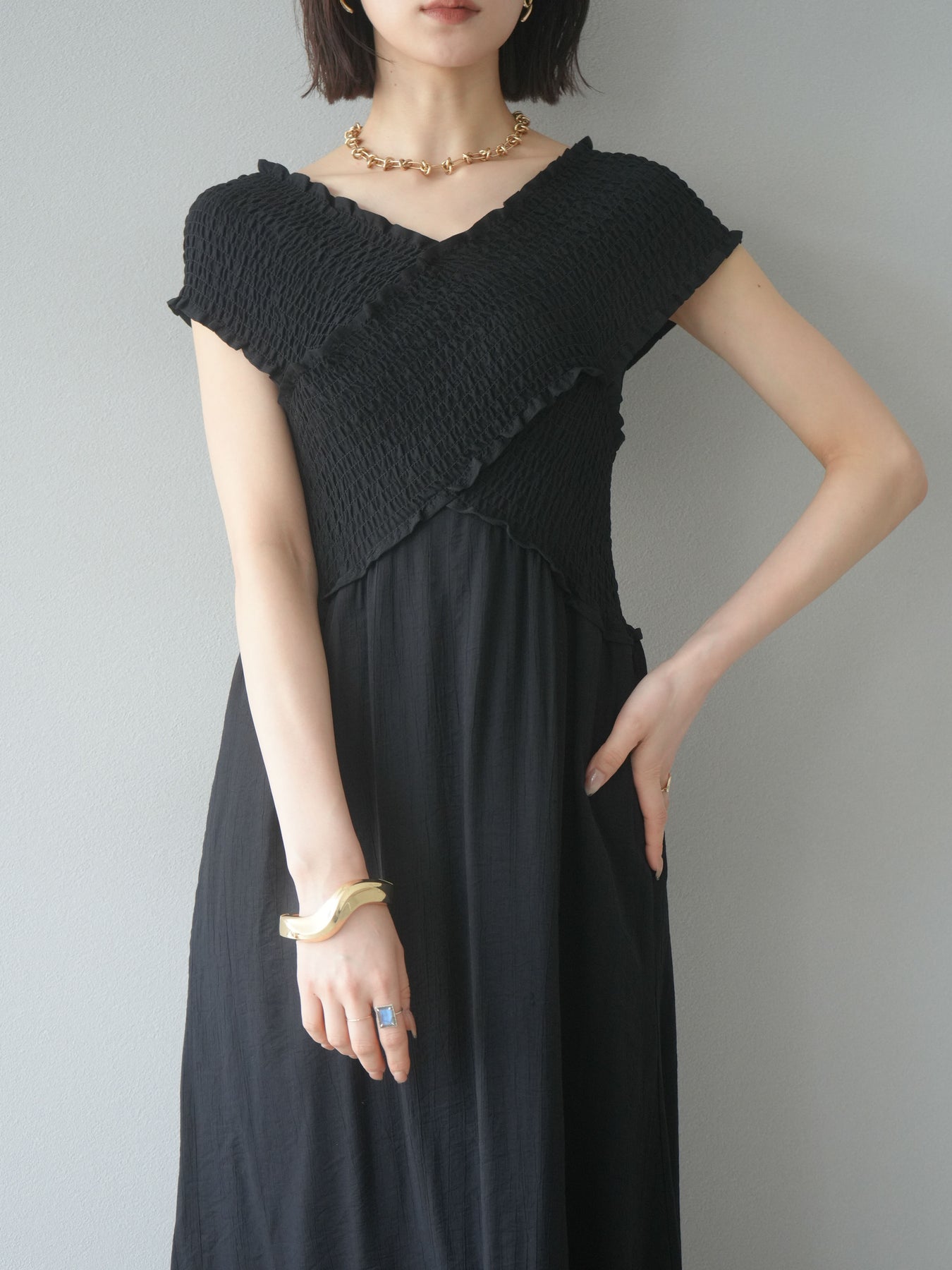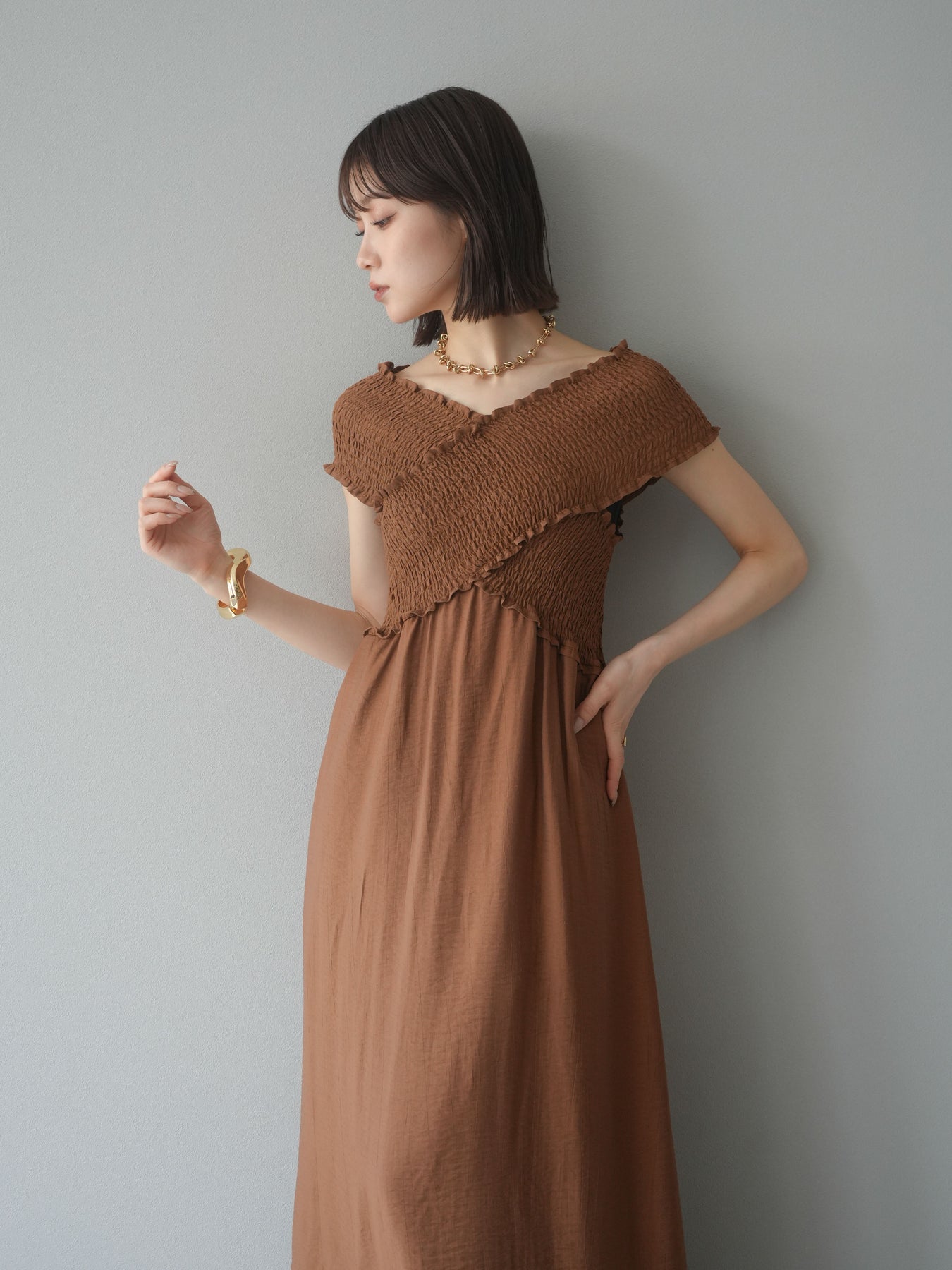 ◆ [予約]シャーリングクロスワンピース