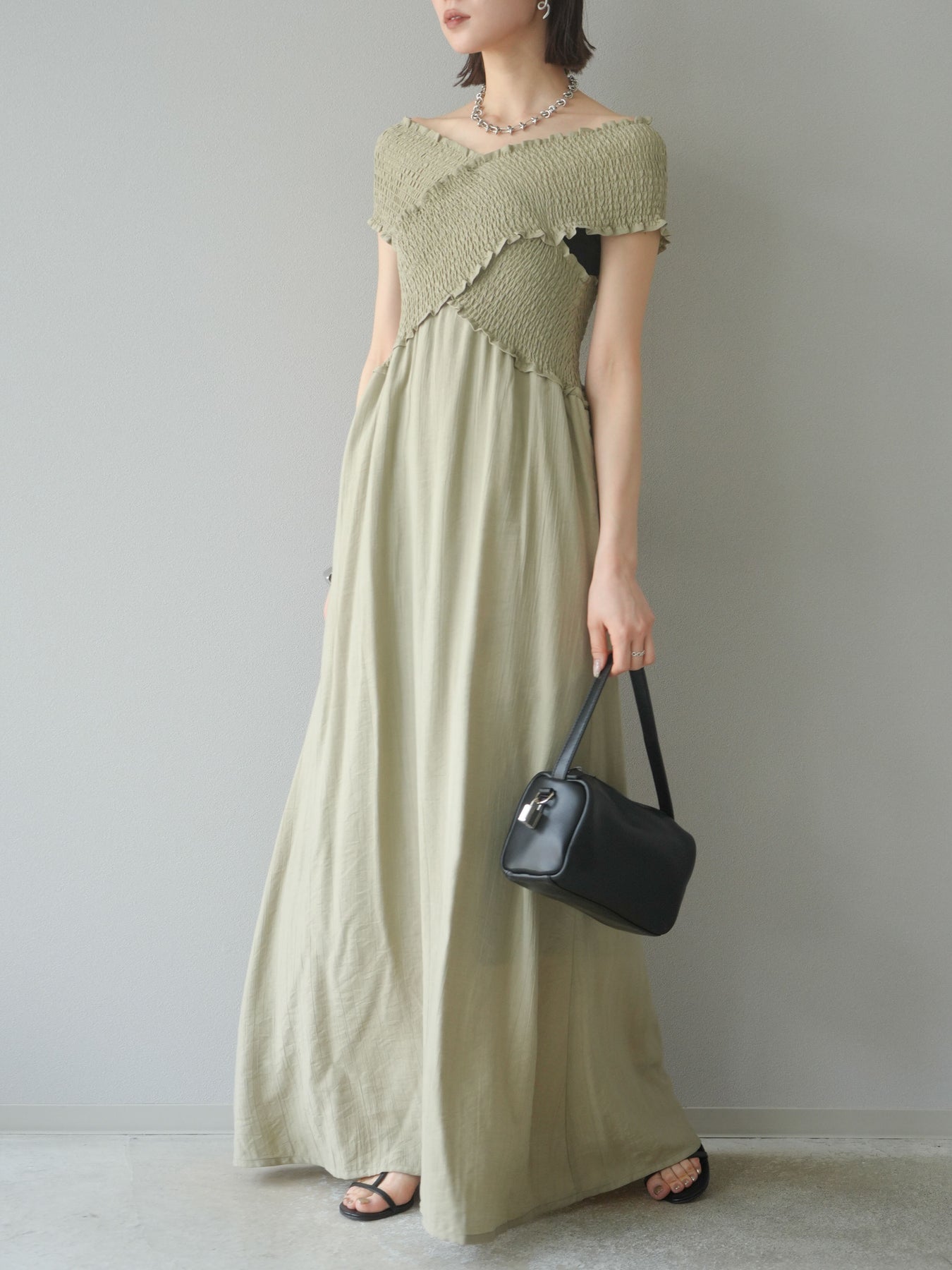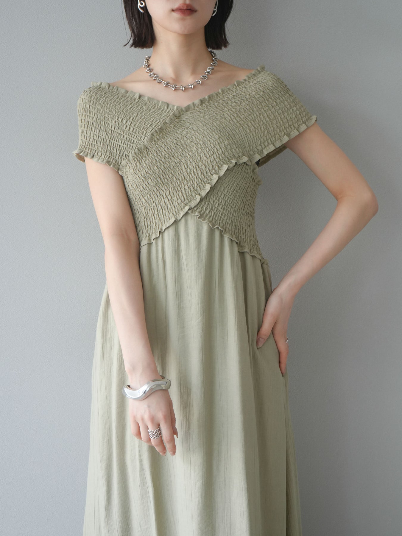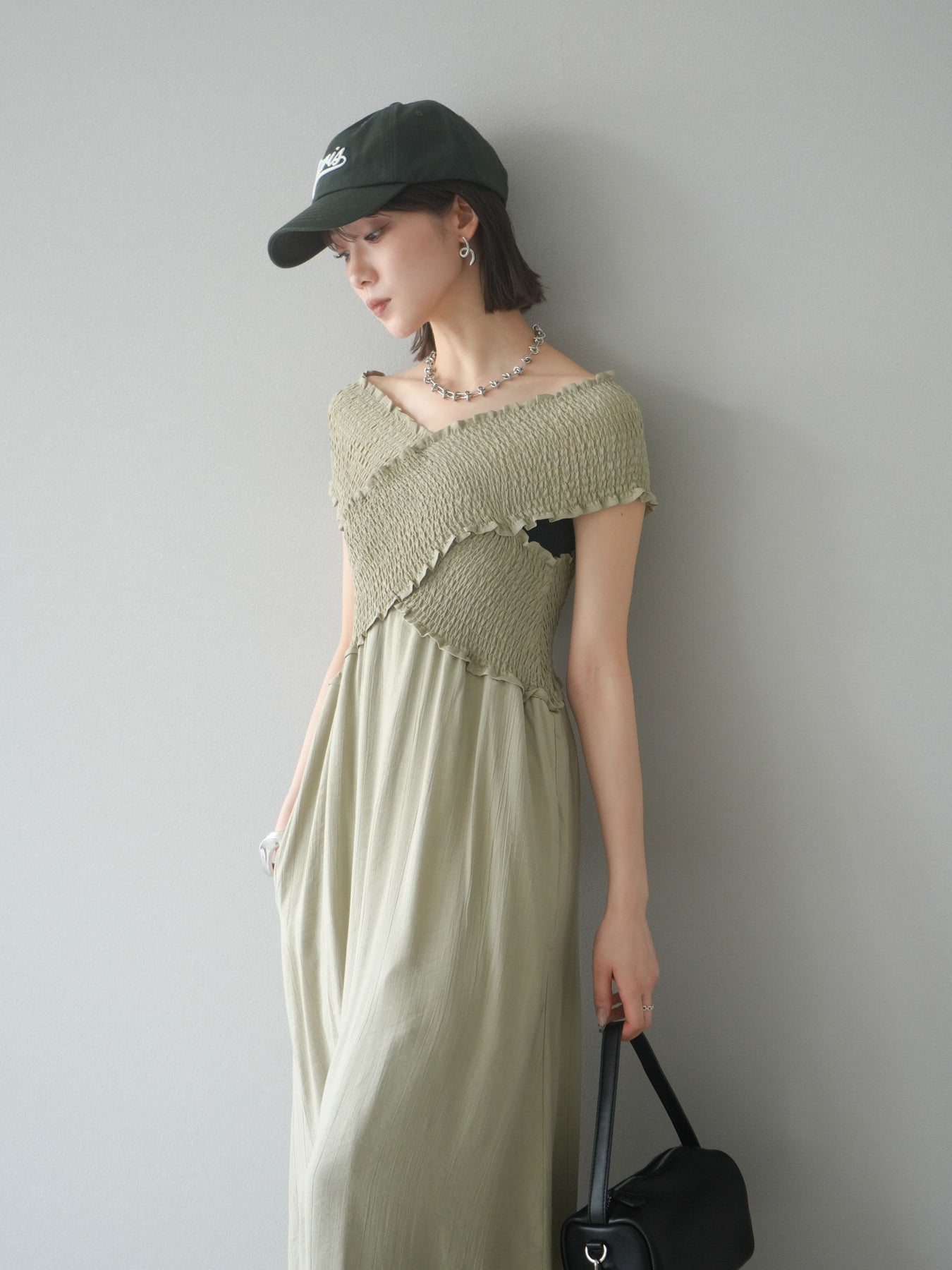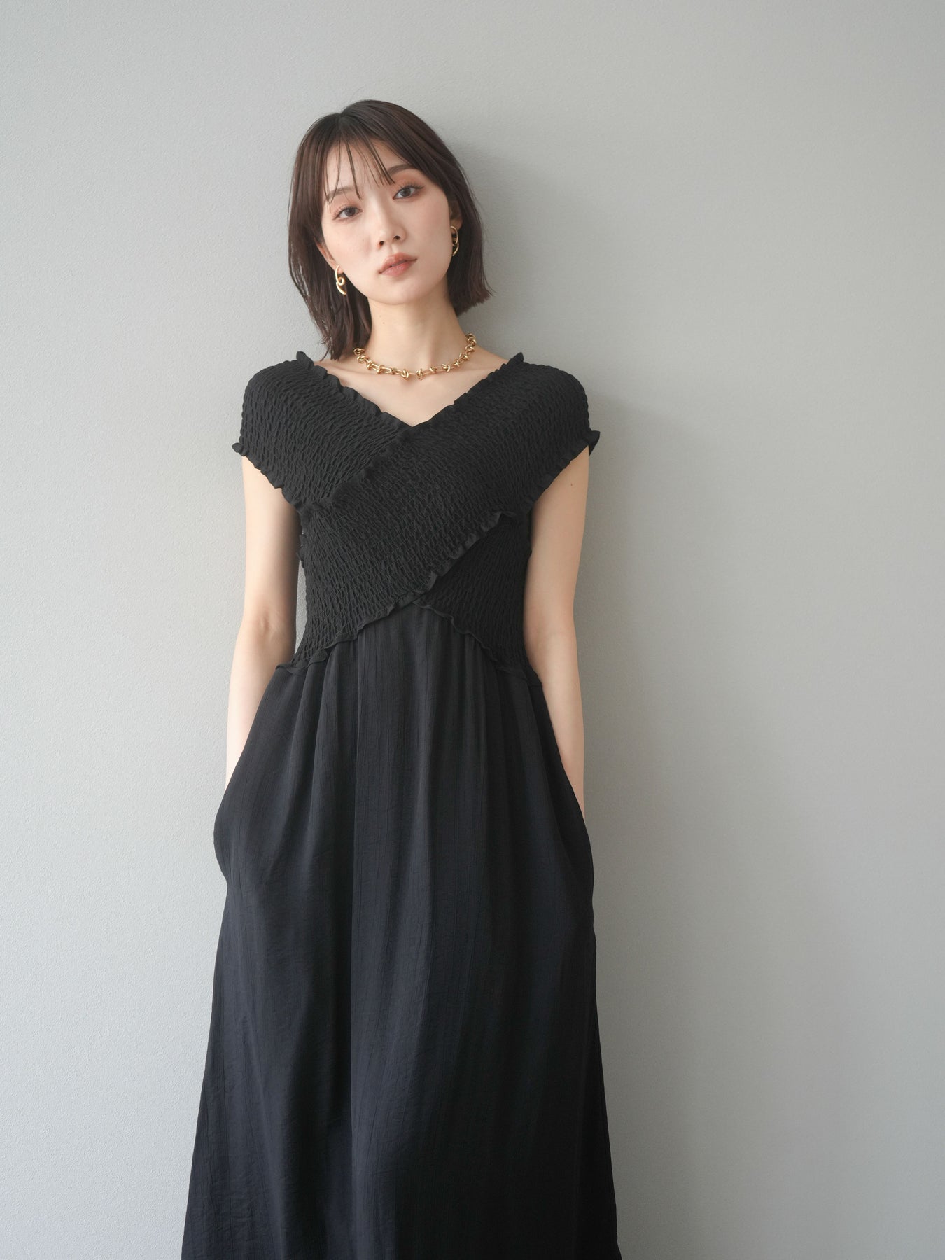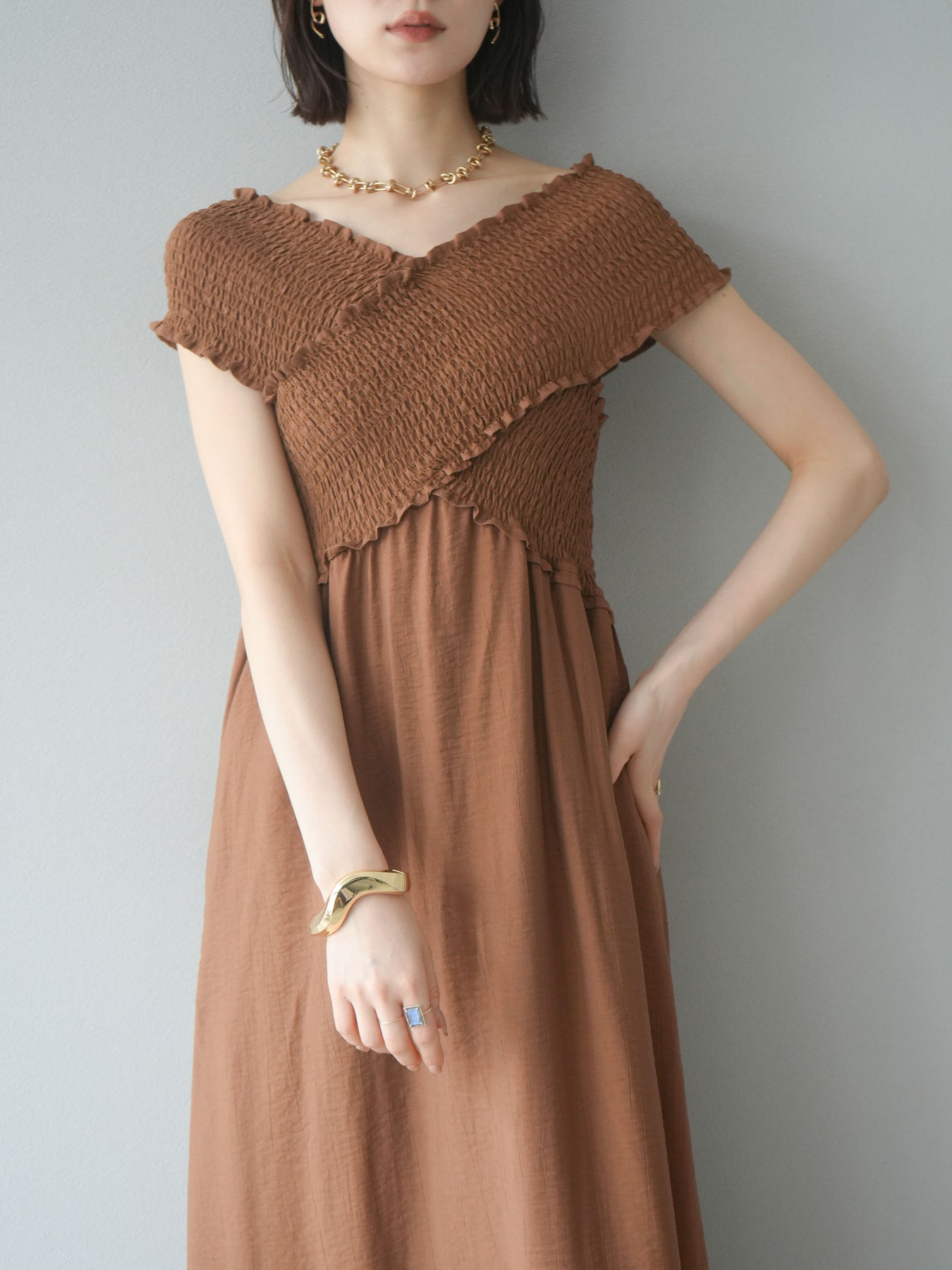 ◆ [予約]シャーリングクロスワンピース