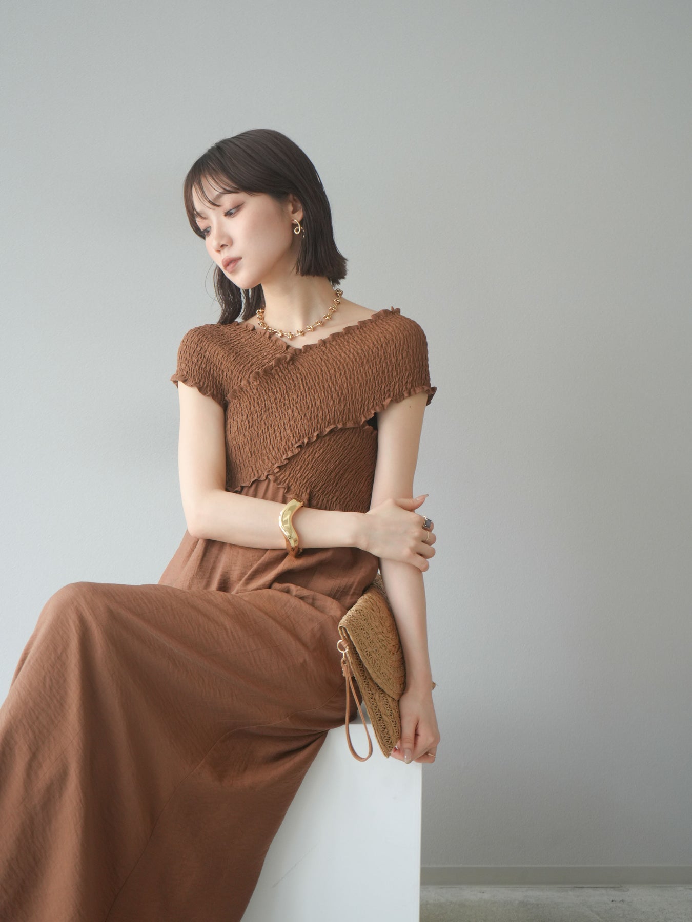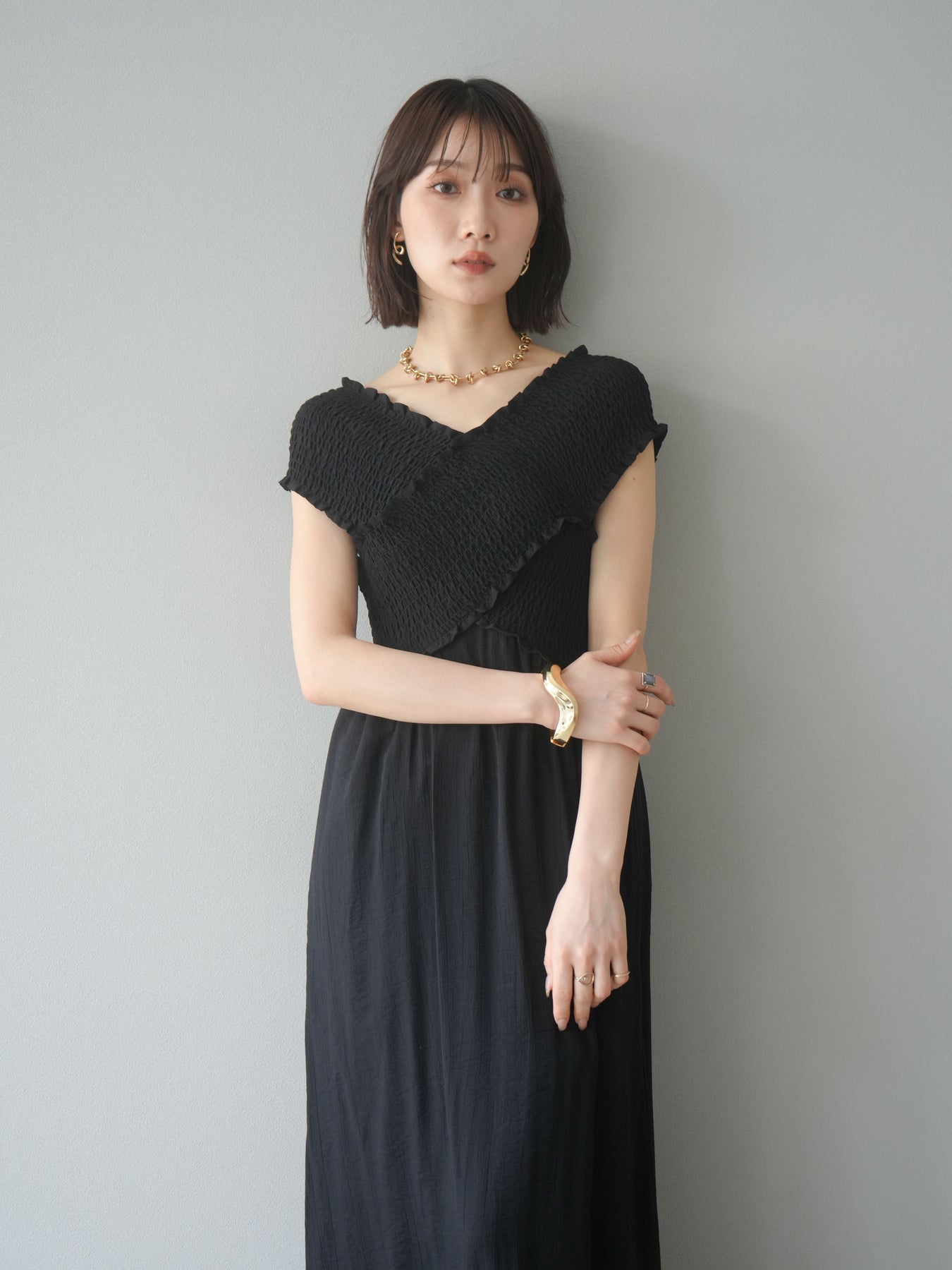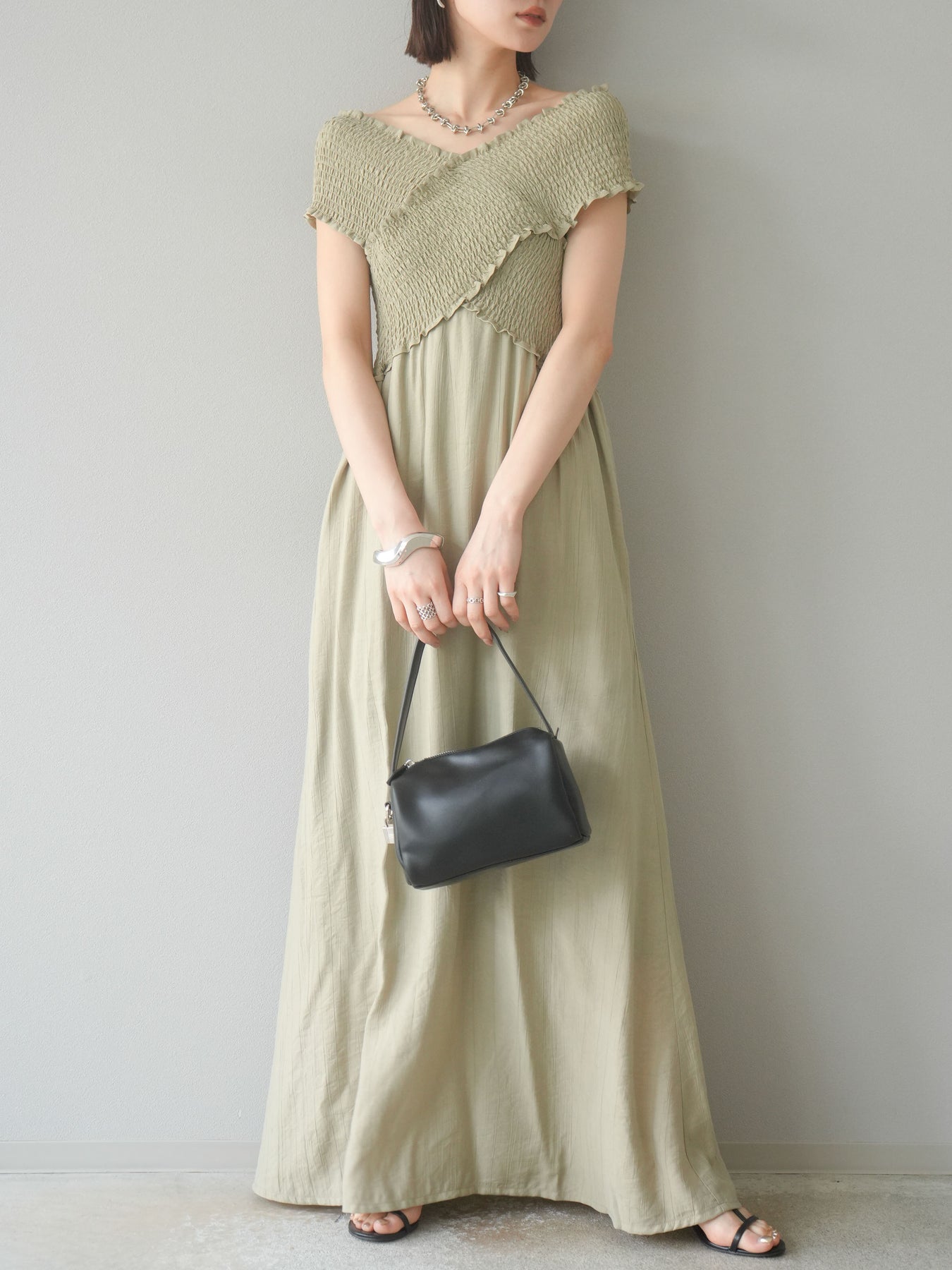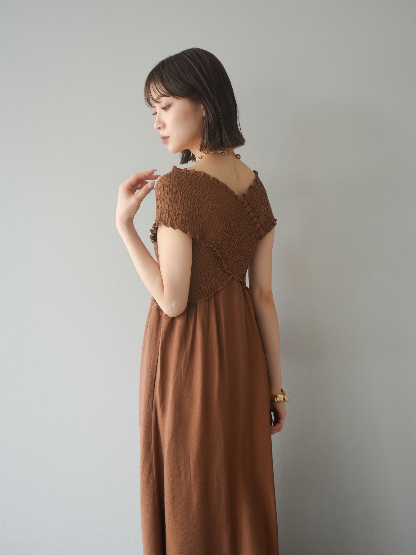 ◆ [予約]シャーリングクロスワンピース