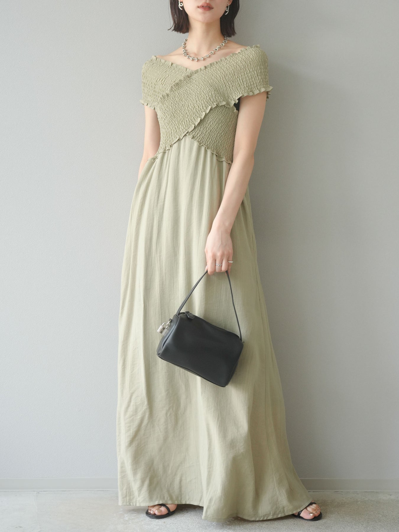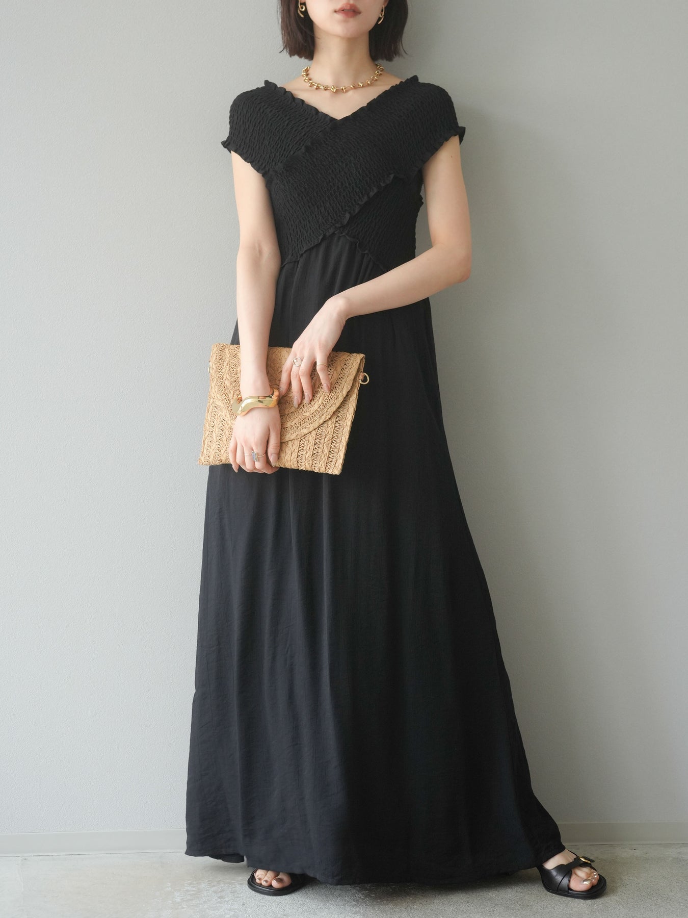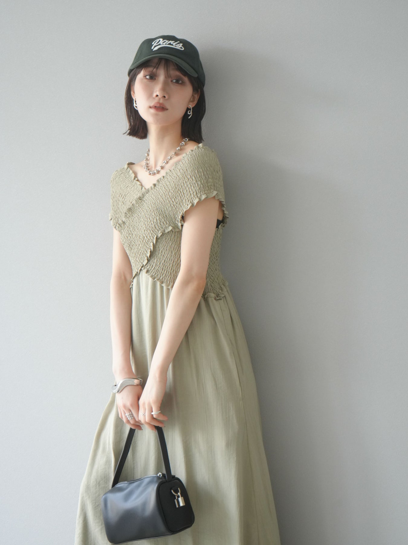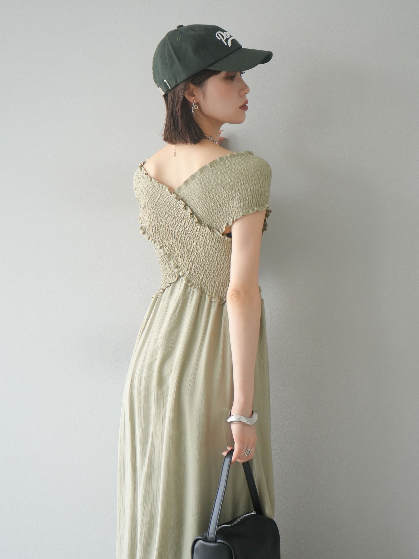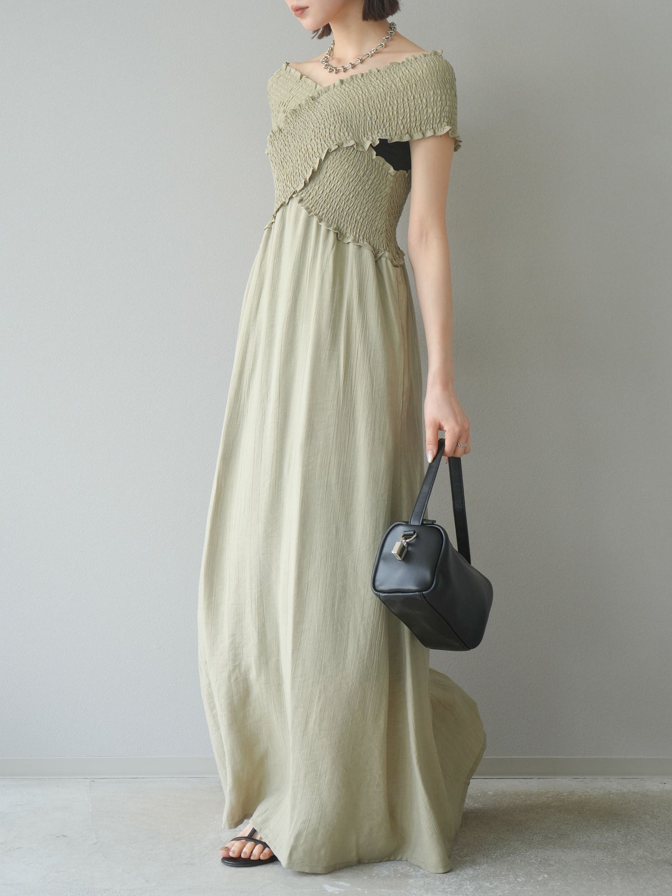 ◆ [予約]シャーリングクロスワンピース