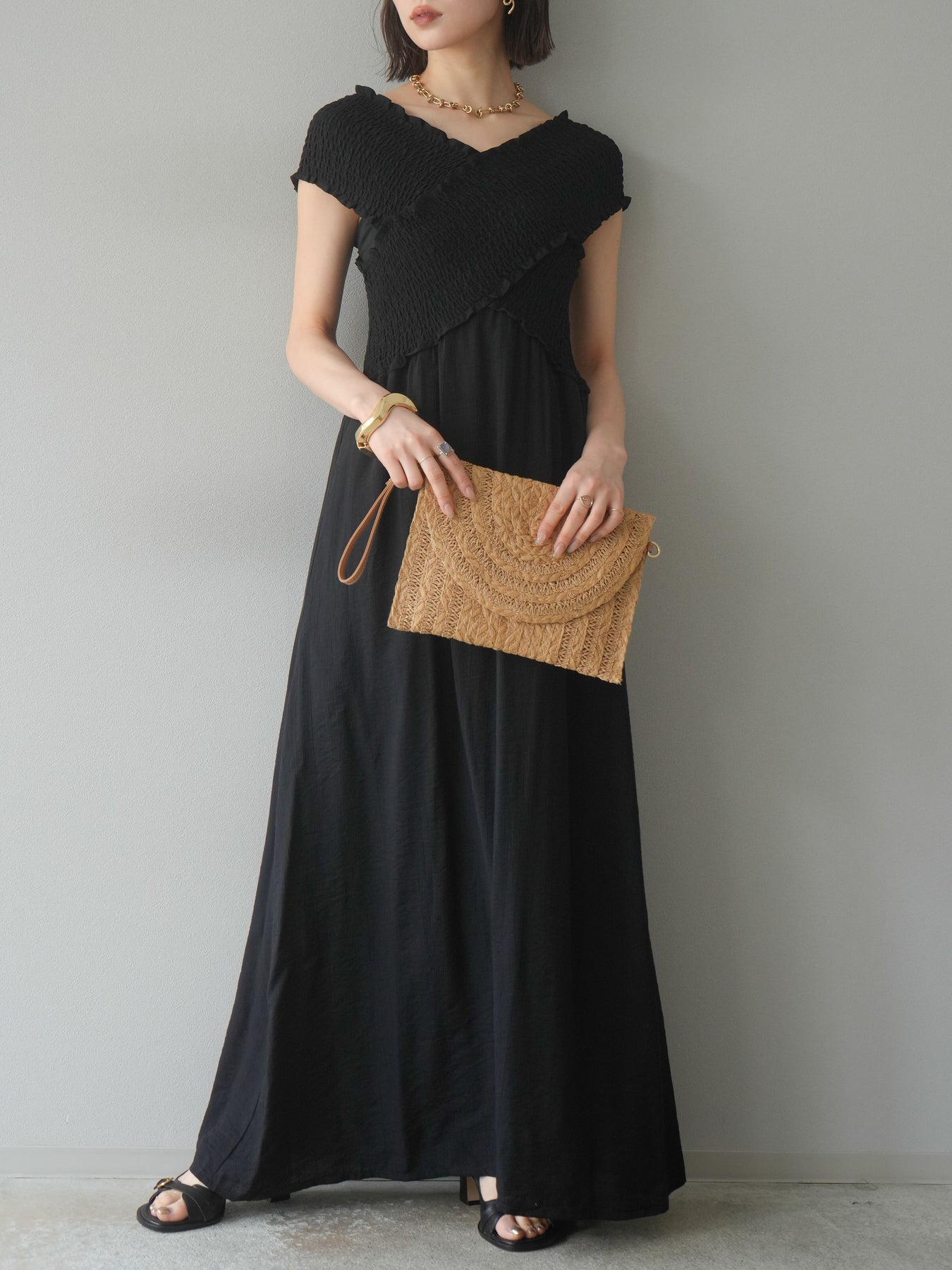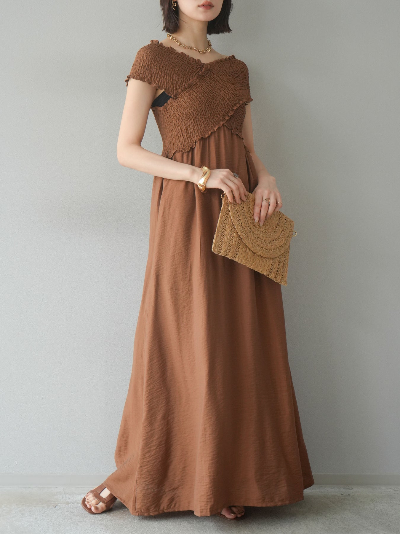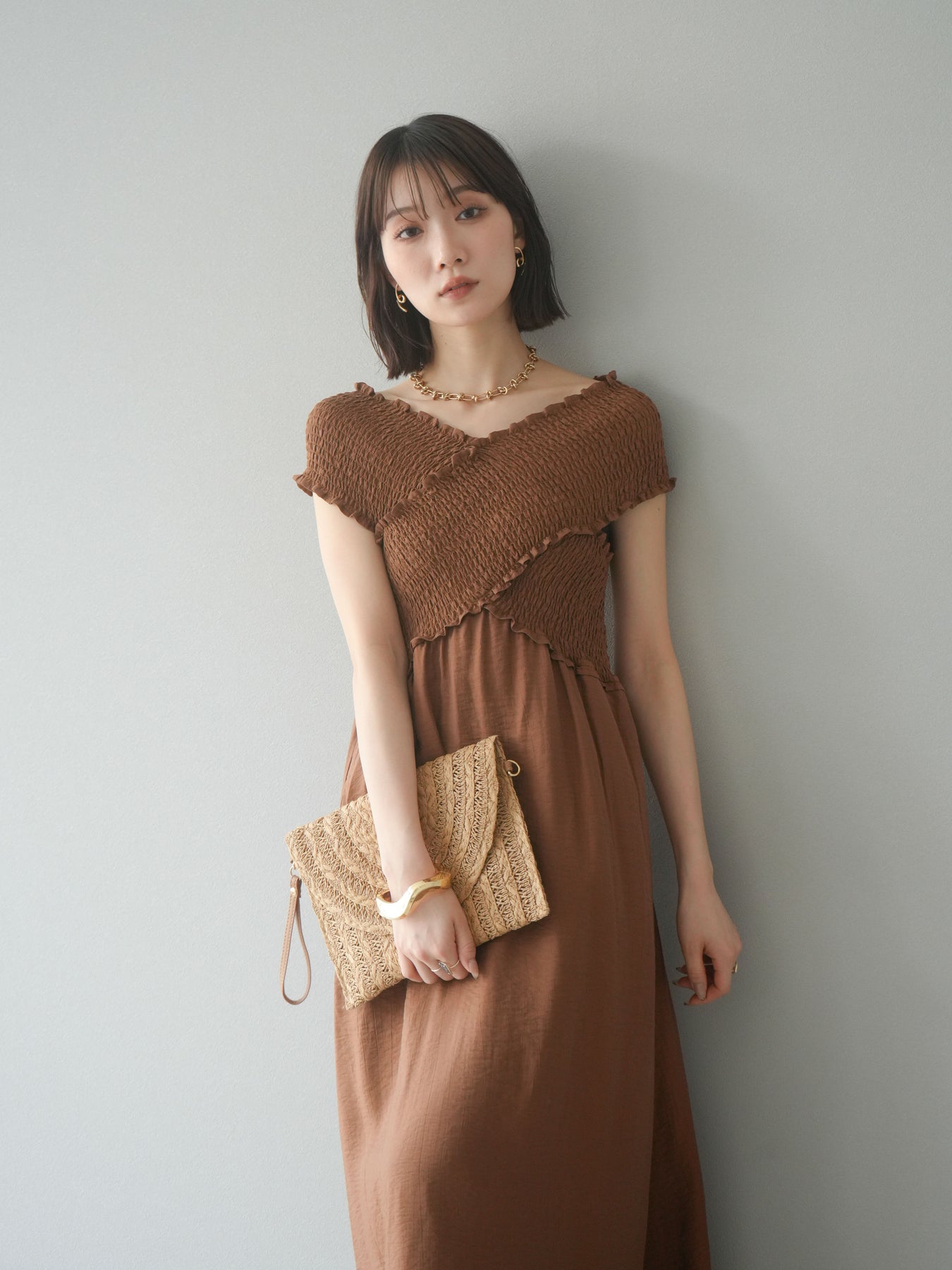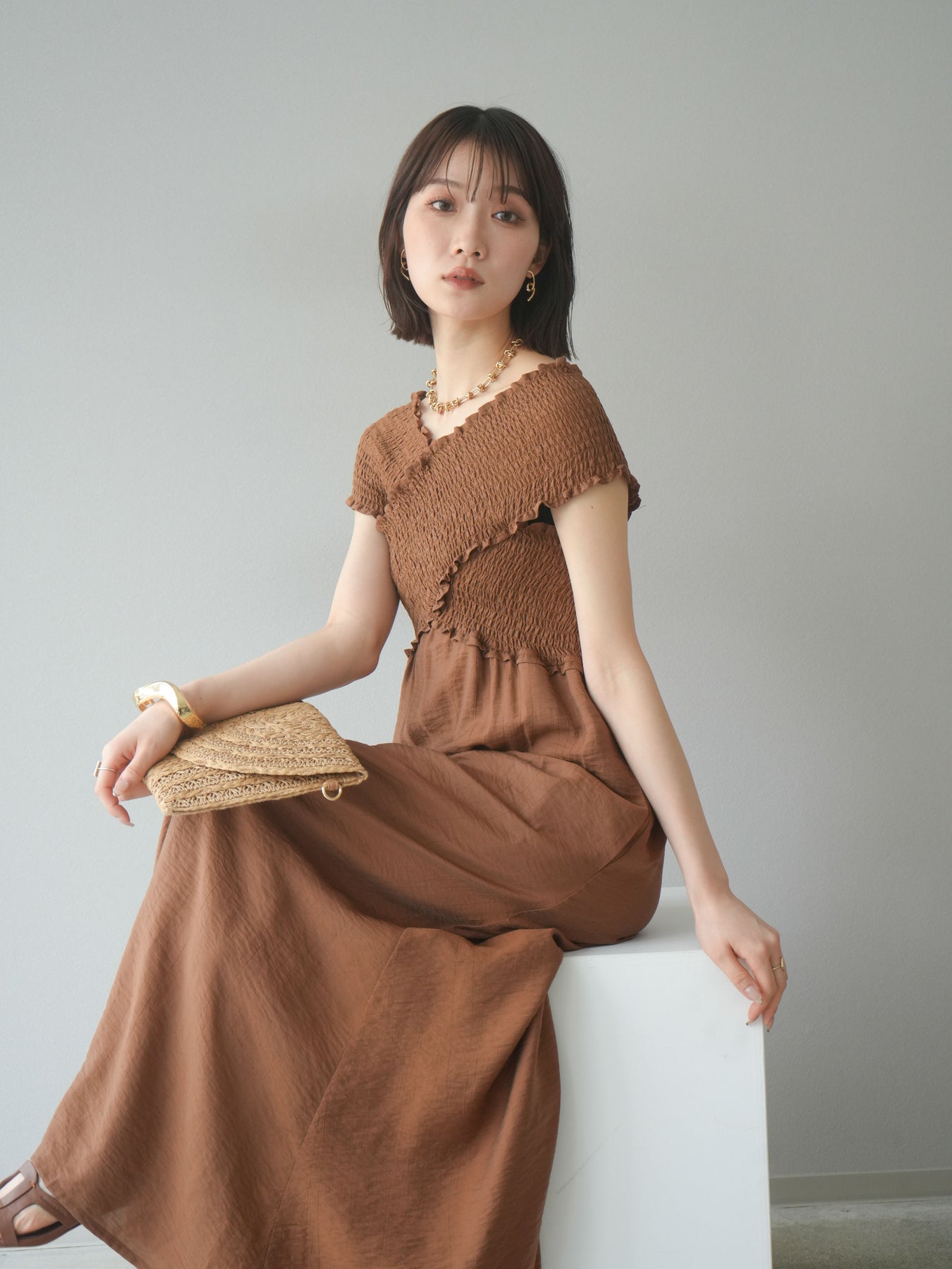 ◆ [予約]シャーリングクロスワンピース