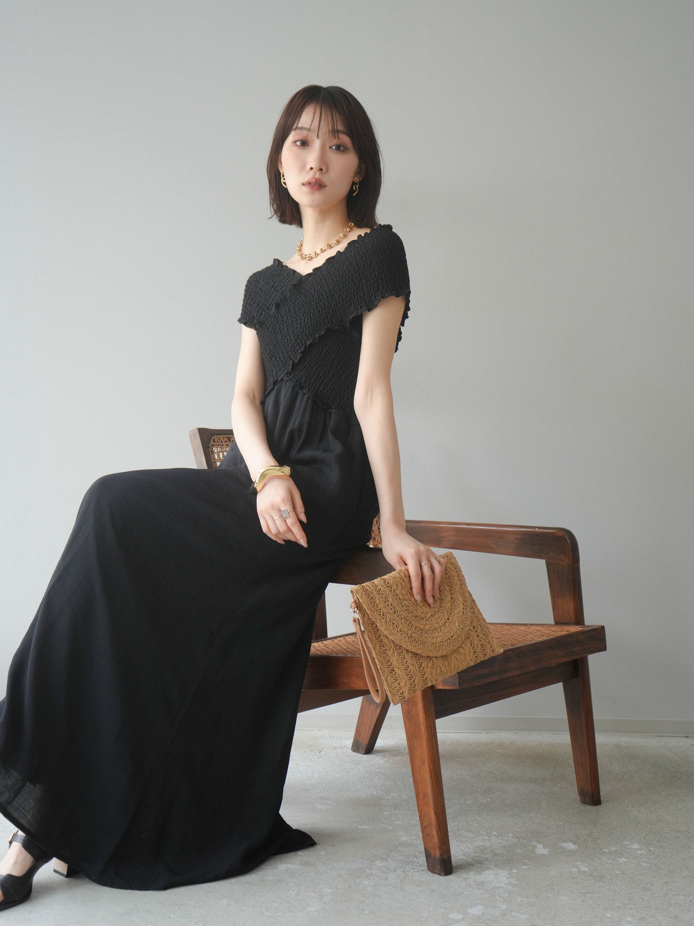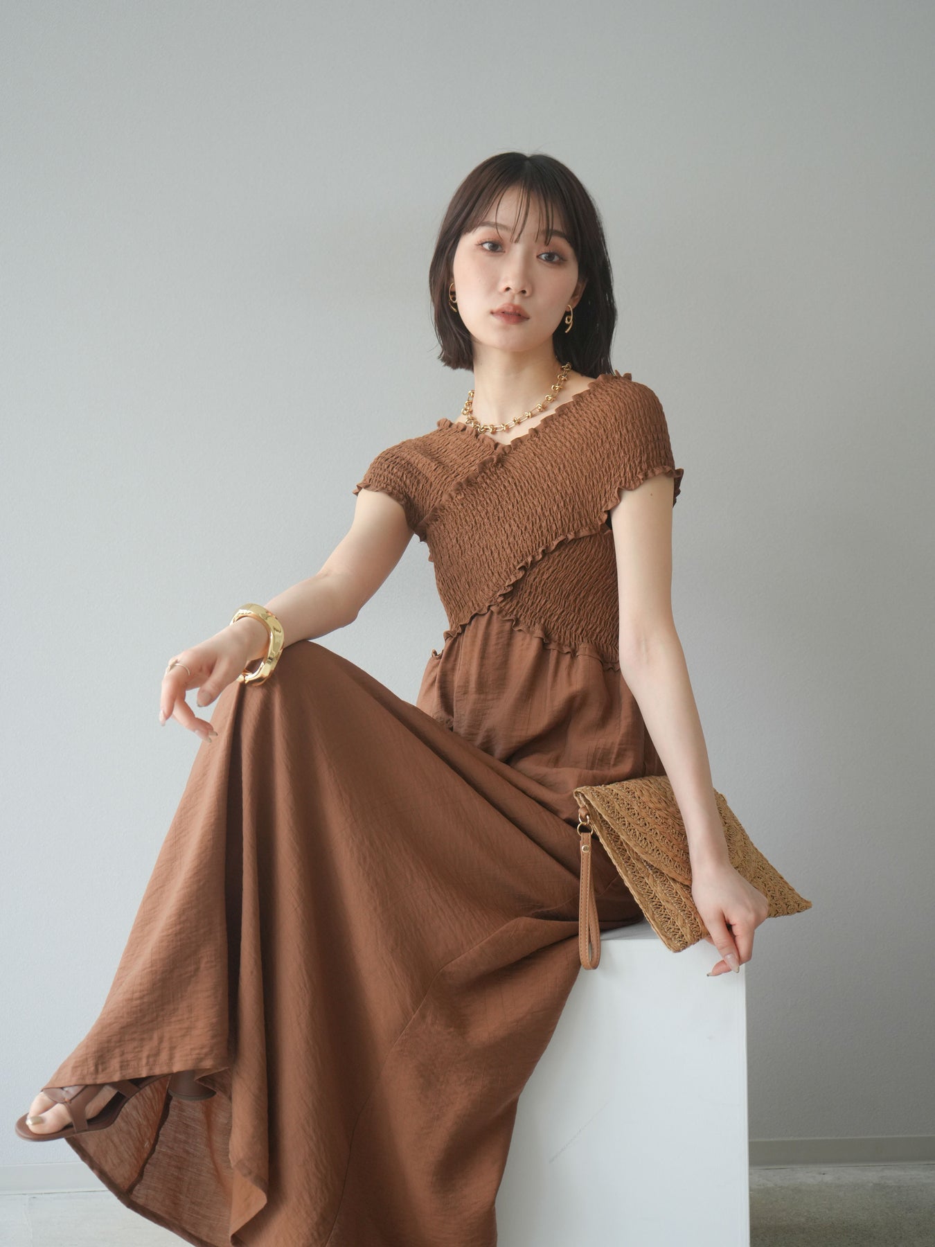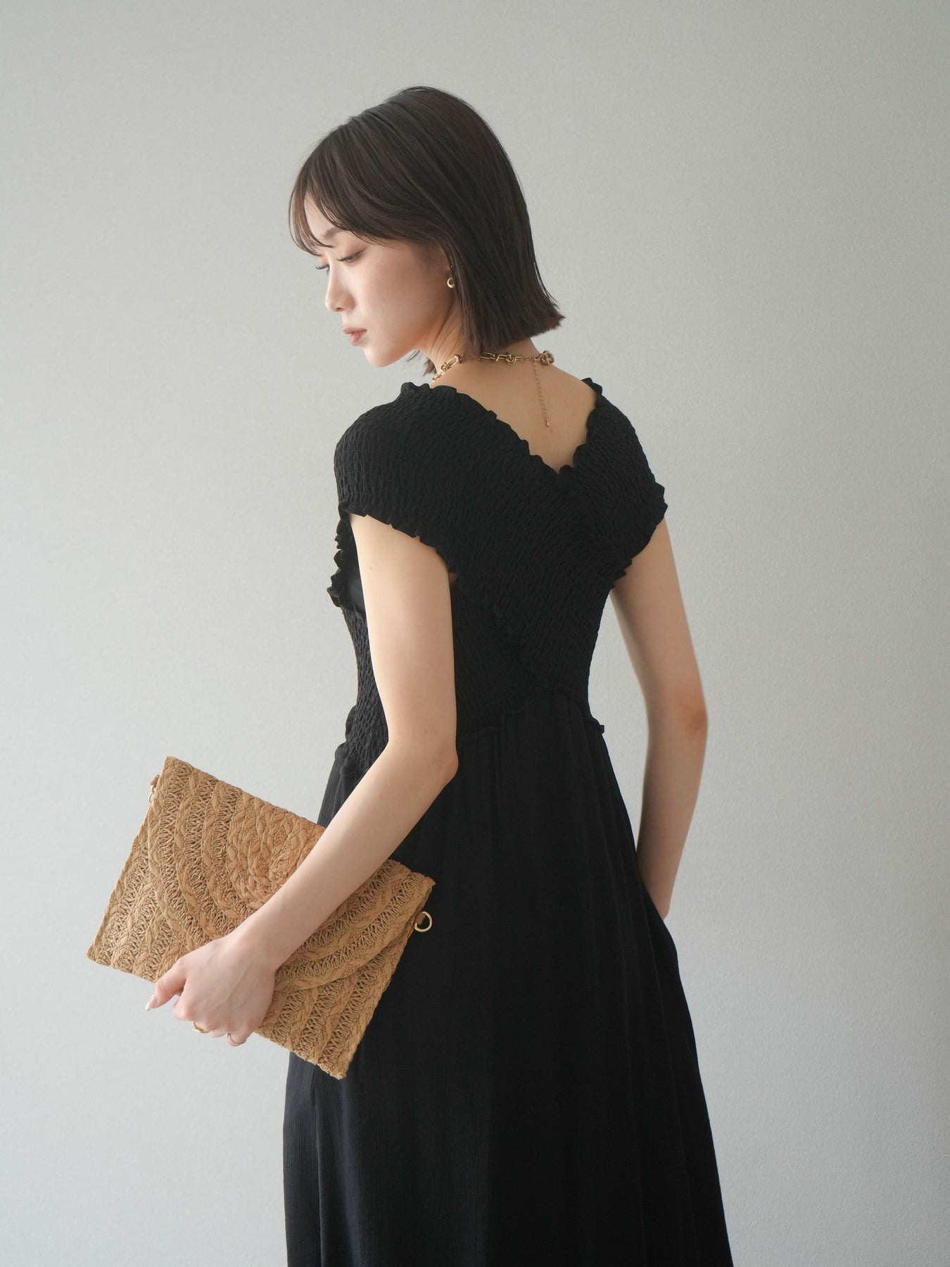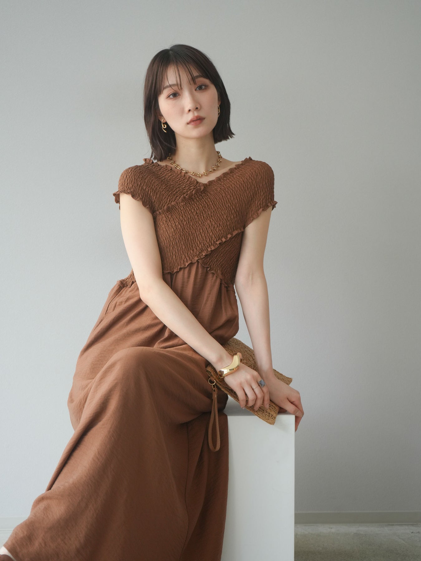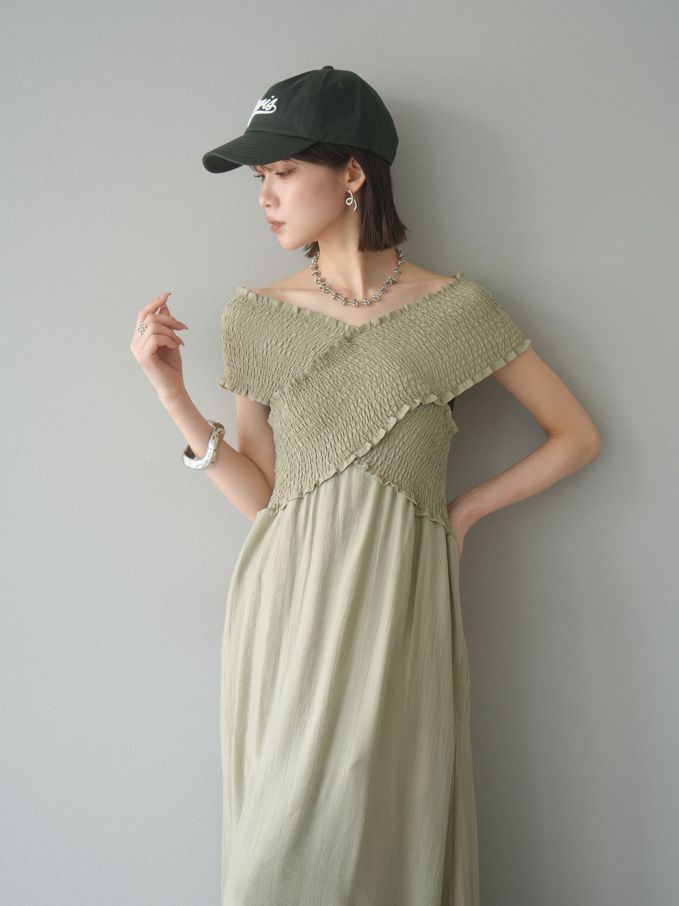 ◆ [予約]シャーリングクロスワンピース