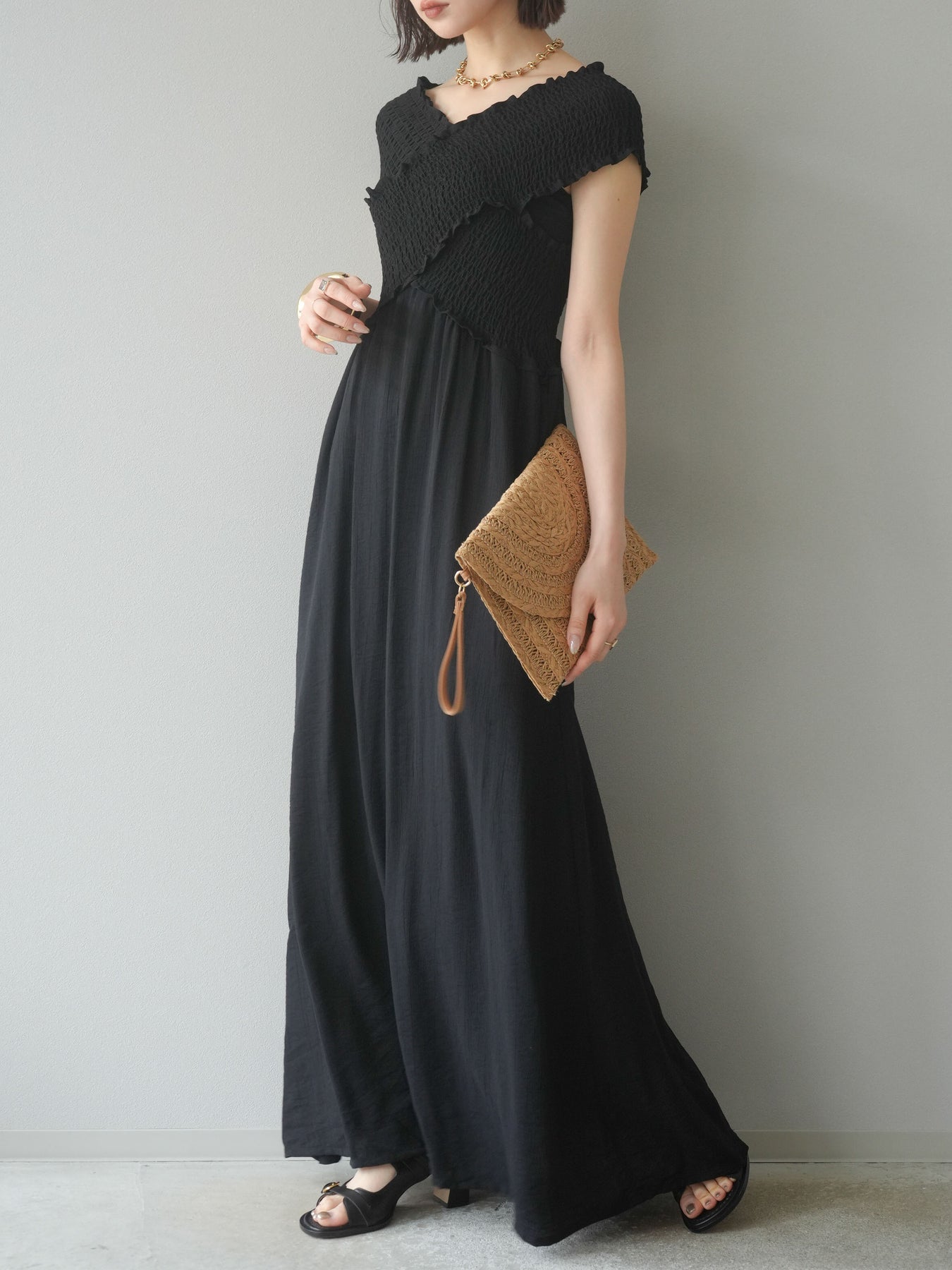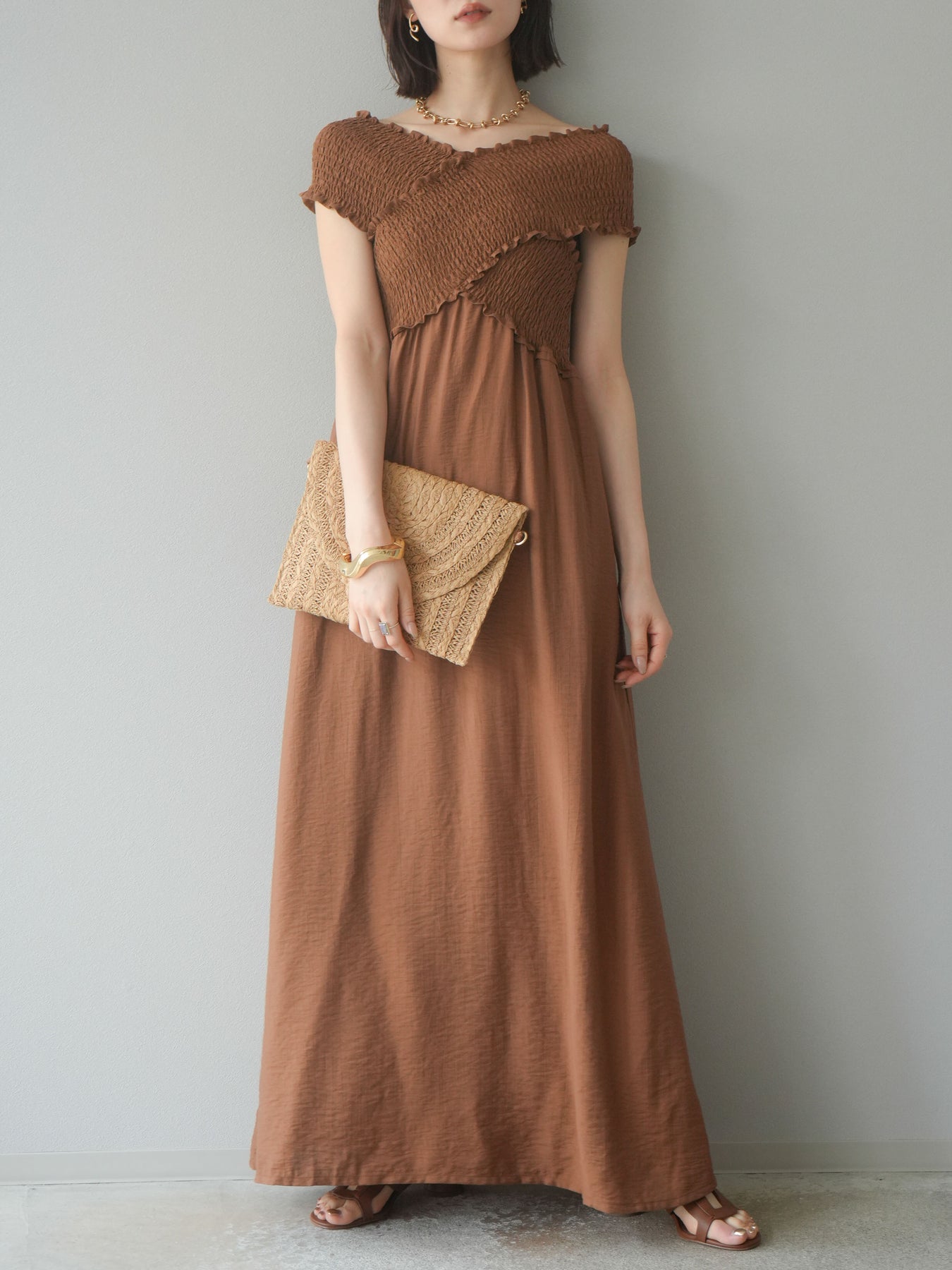 [SET]シャーリングクロスワンピース+シャーリングクロスワンピース(2set)