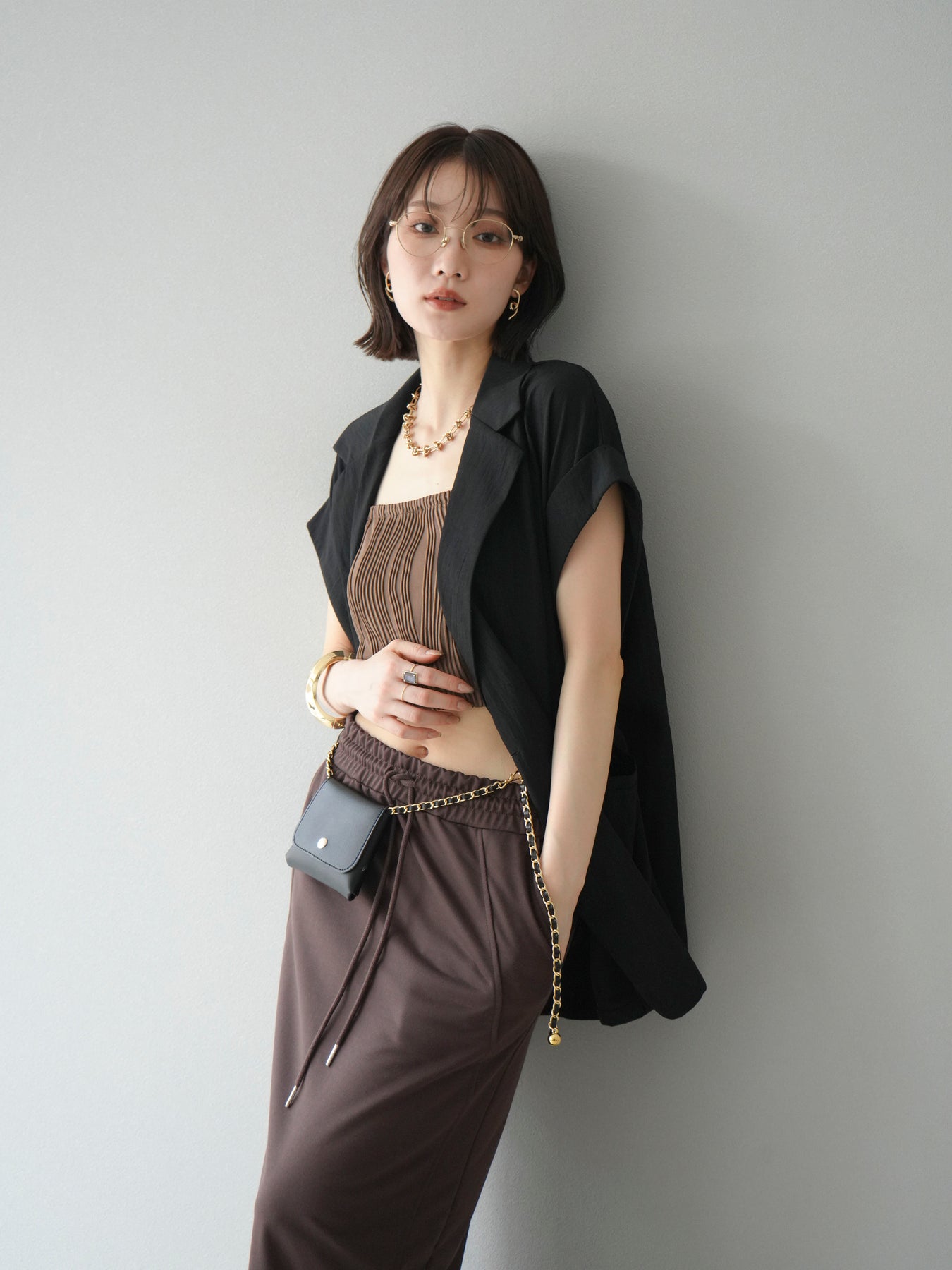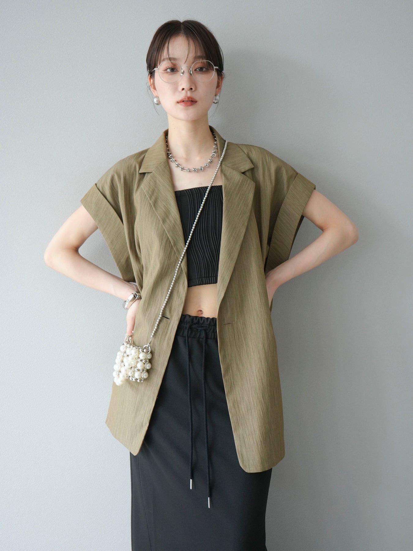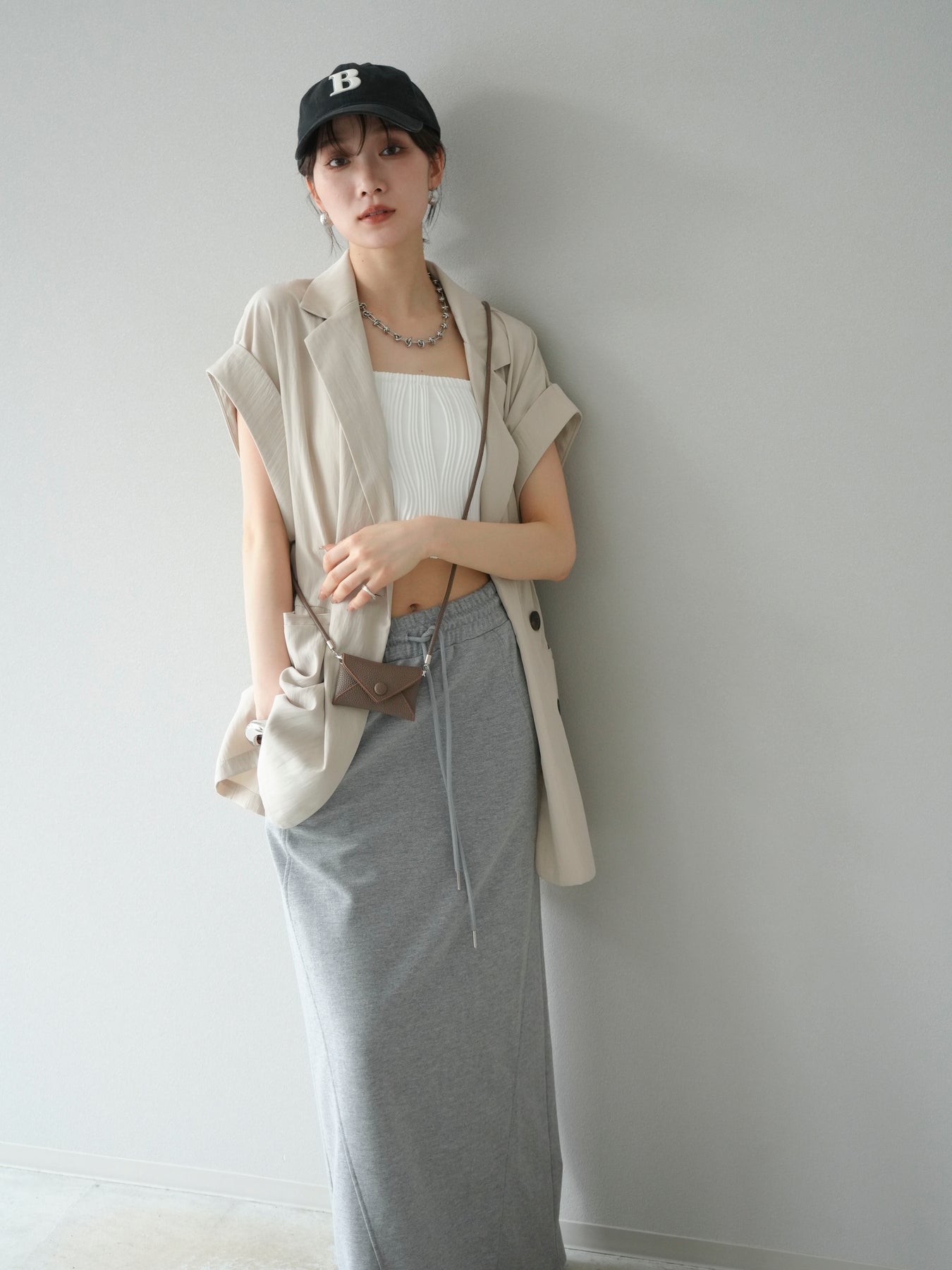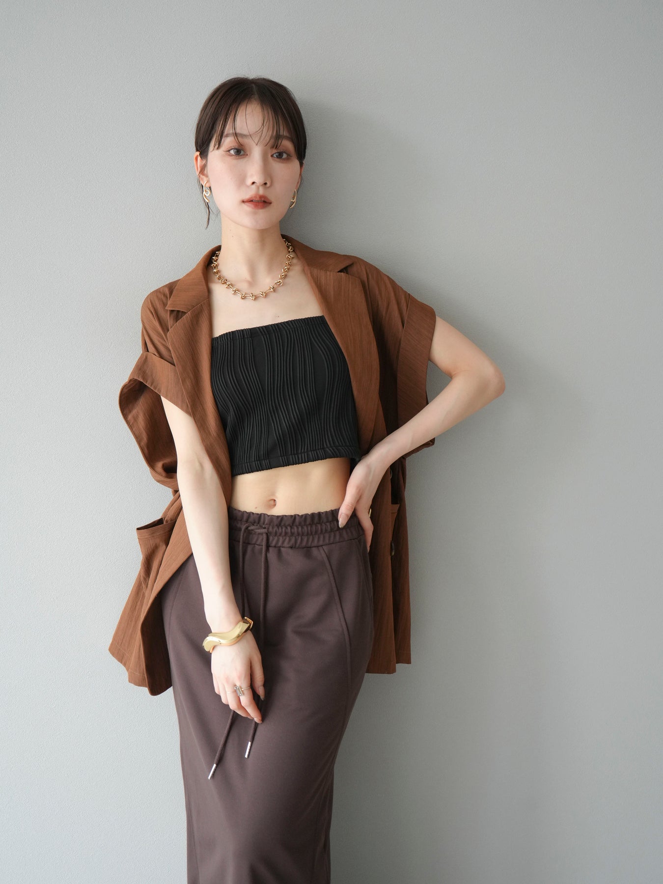 [SET]リネンライクノースリーブダブルジレ+ウェーブパイピングカップ付ベアキャミソール(2set)