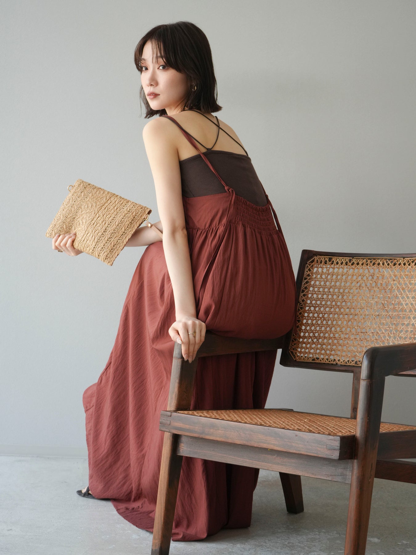 [SET]レーヨンシャーリングキャミワンピース+カップ付きバッククロスキャミソール(2set)