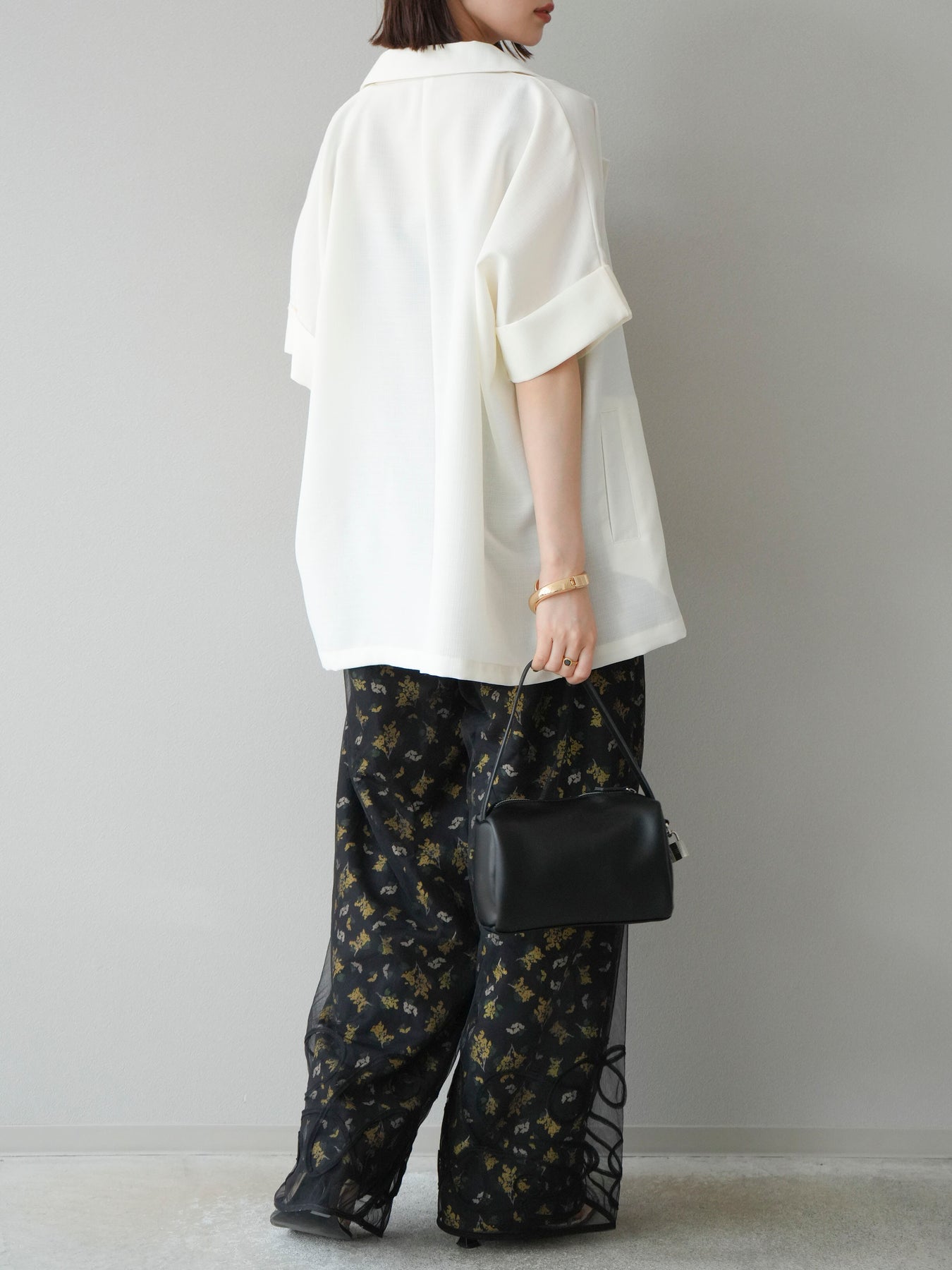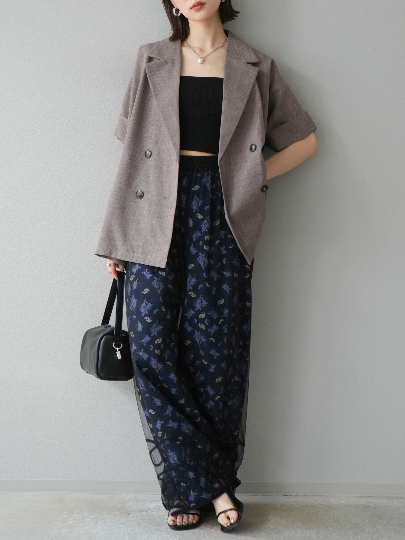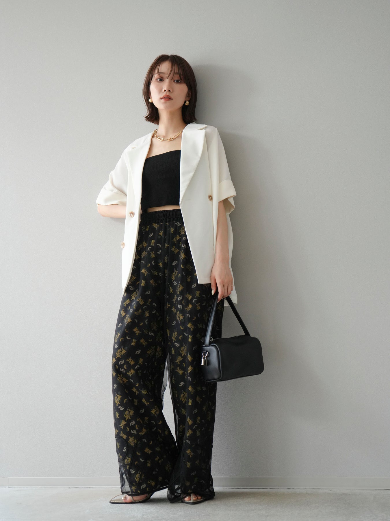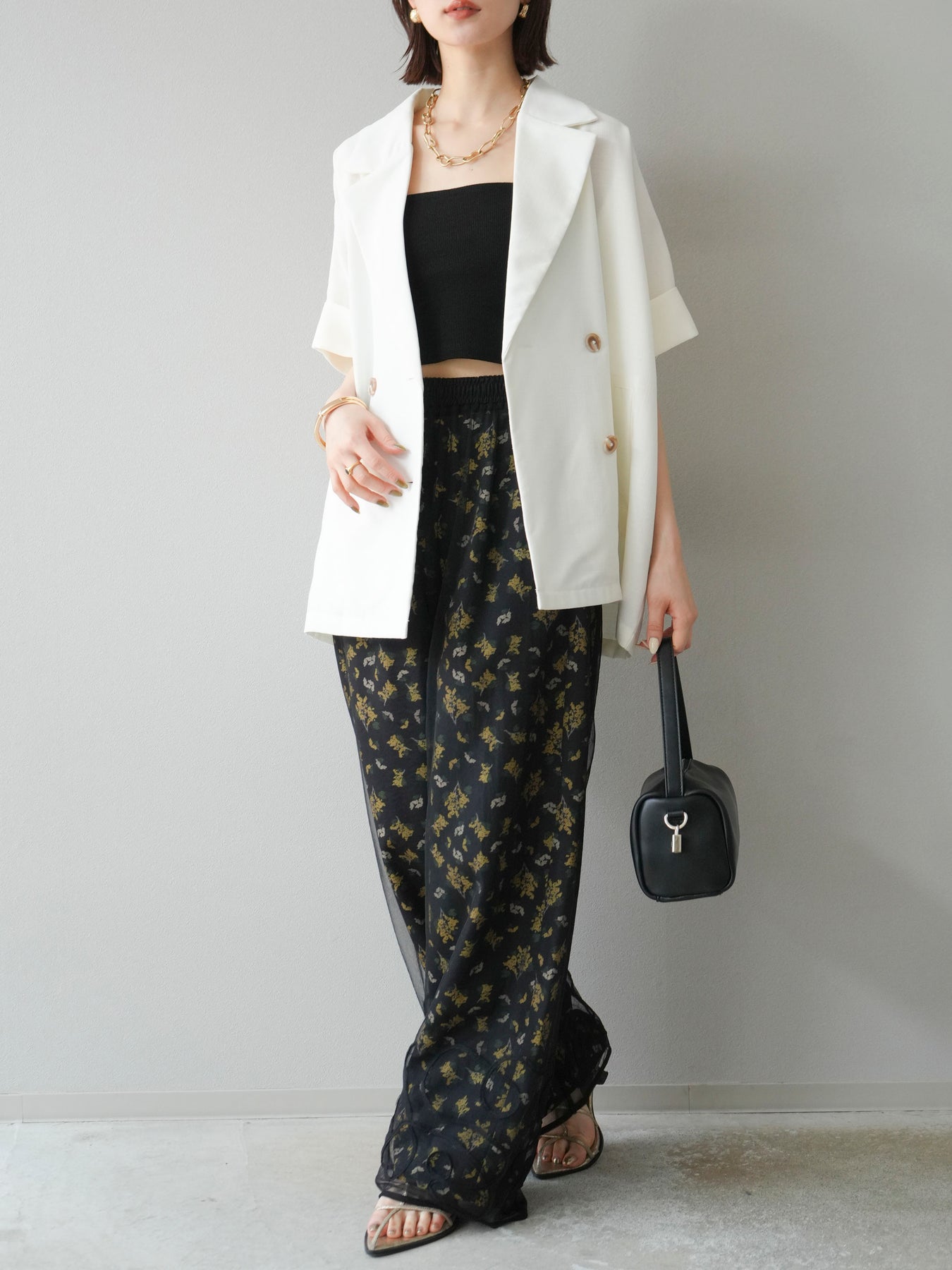 [SET]コード刺繍チュールレイヤードパンツ+ブーケプリントタックパンツ(2set)
