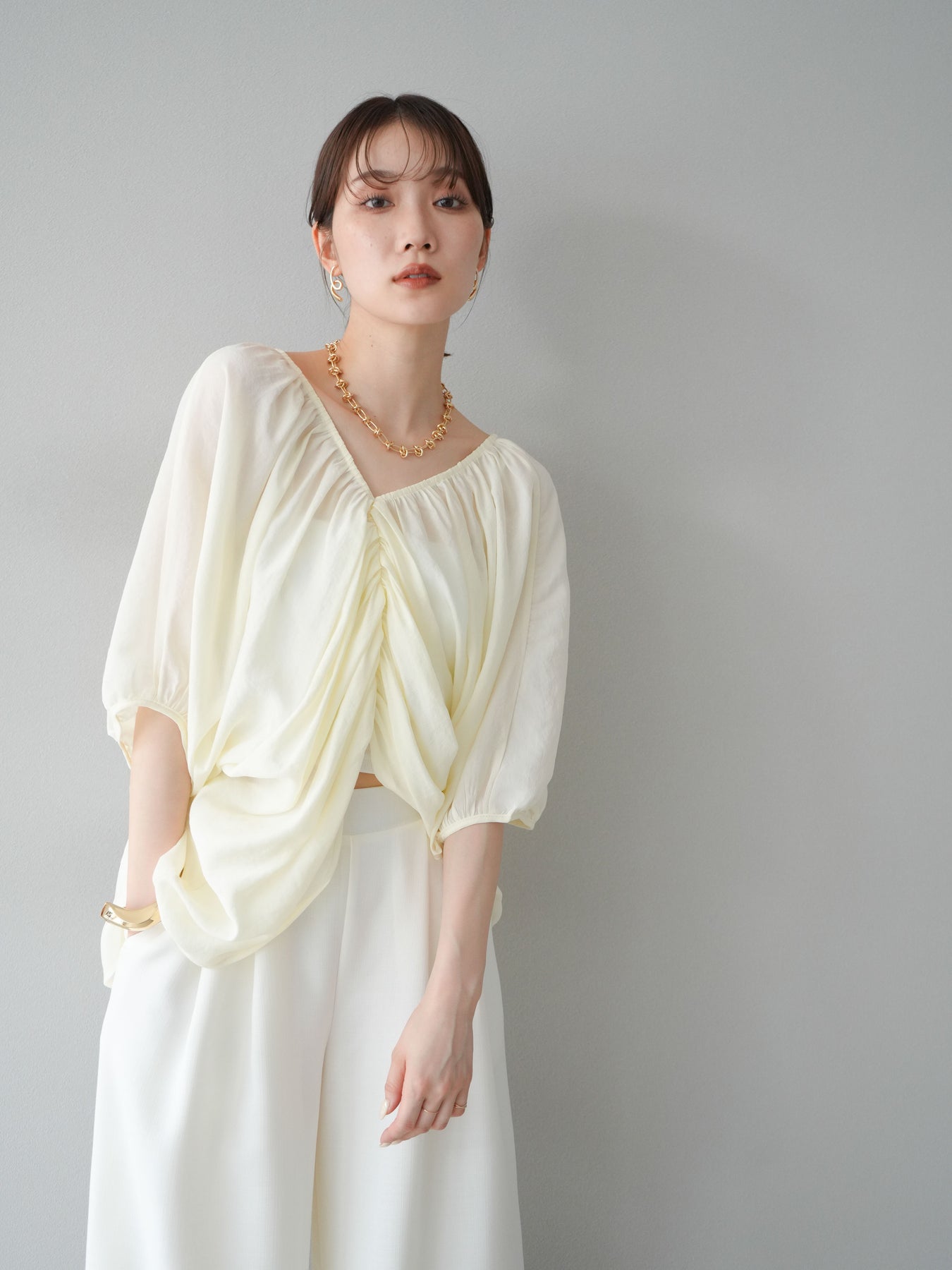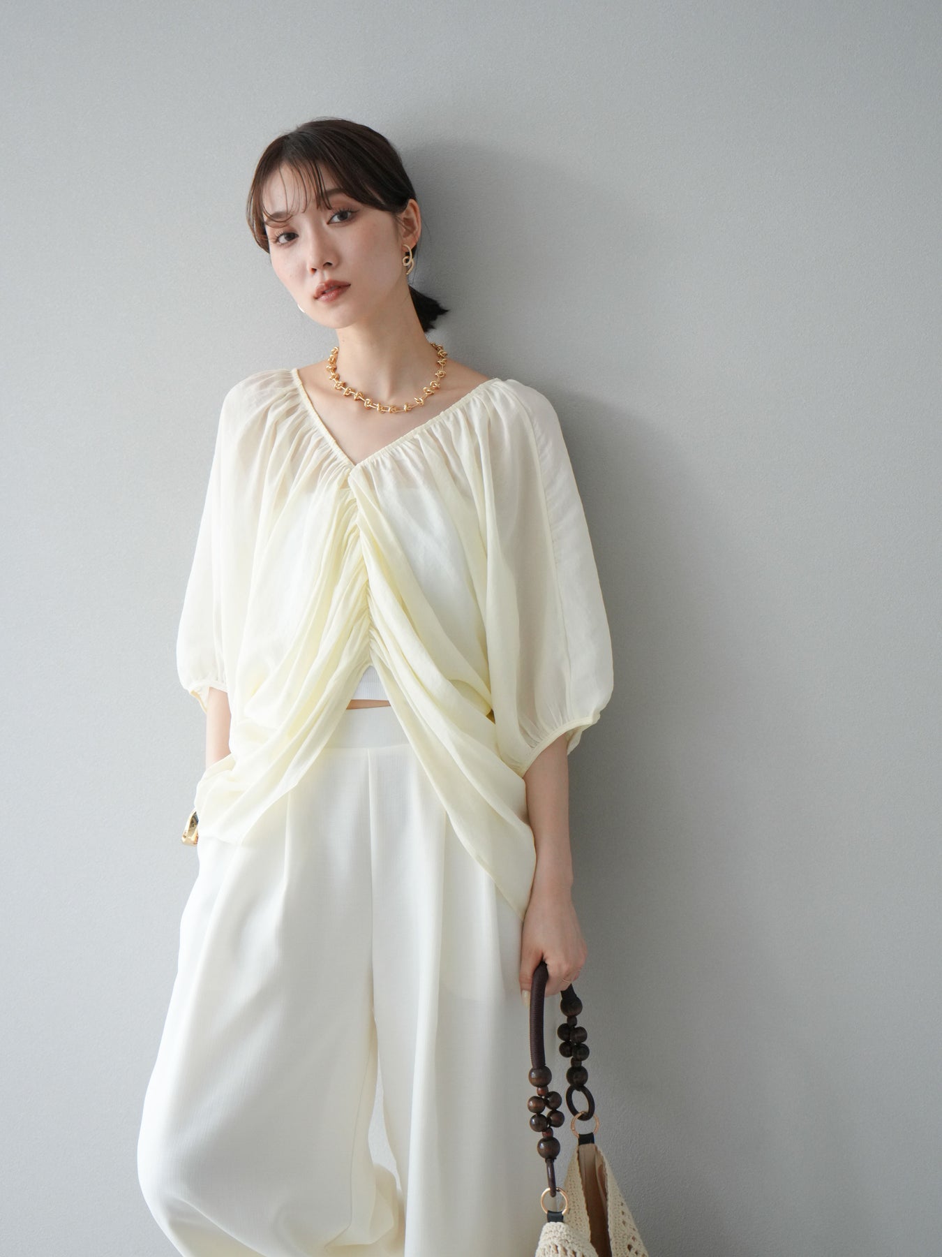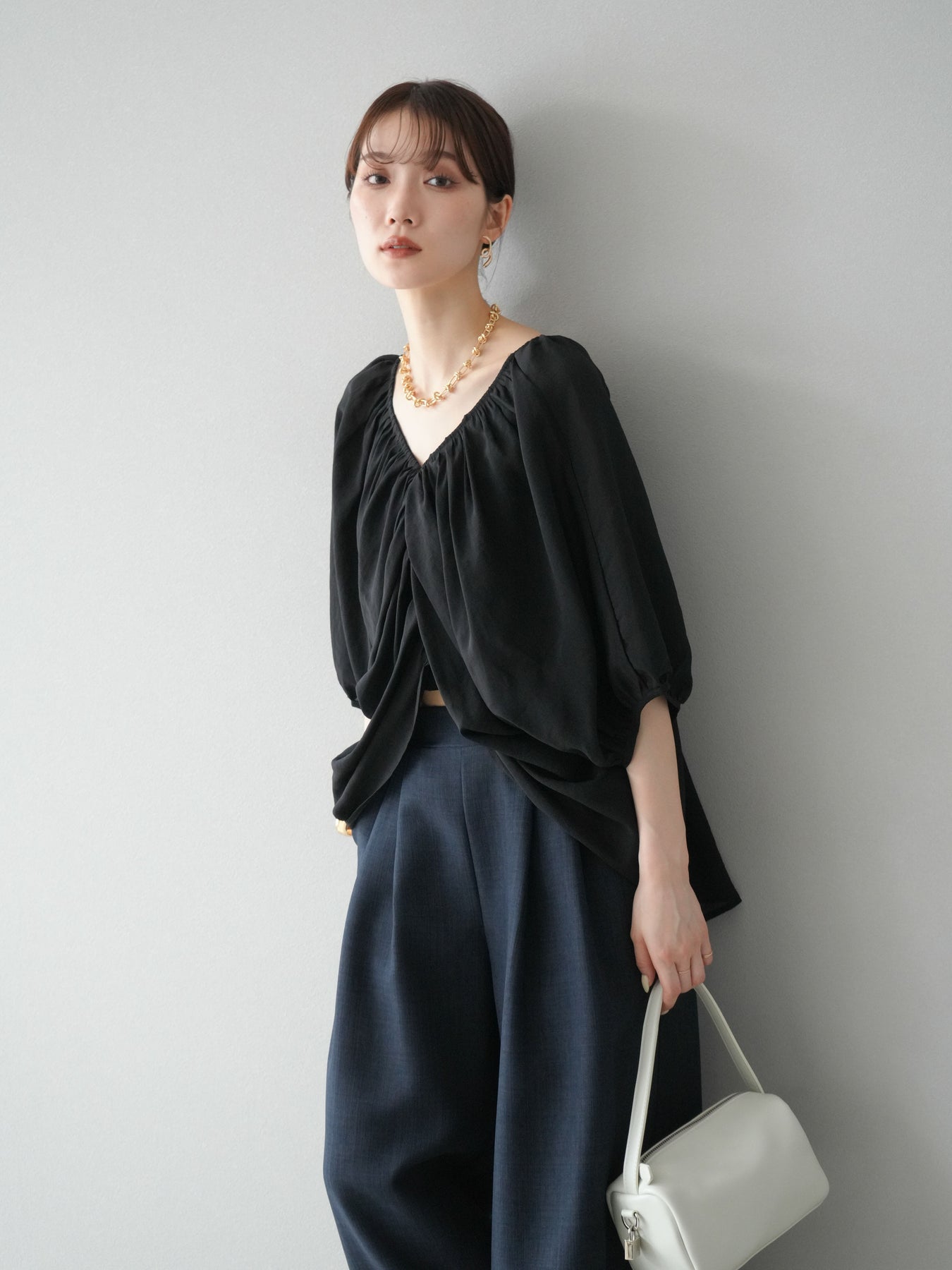 ◆ [予約]ボリュームスリーブシアータックブラウス