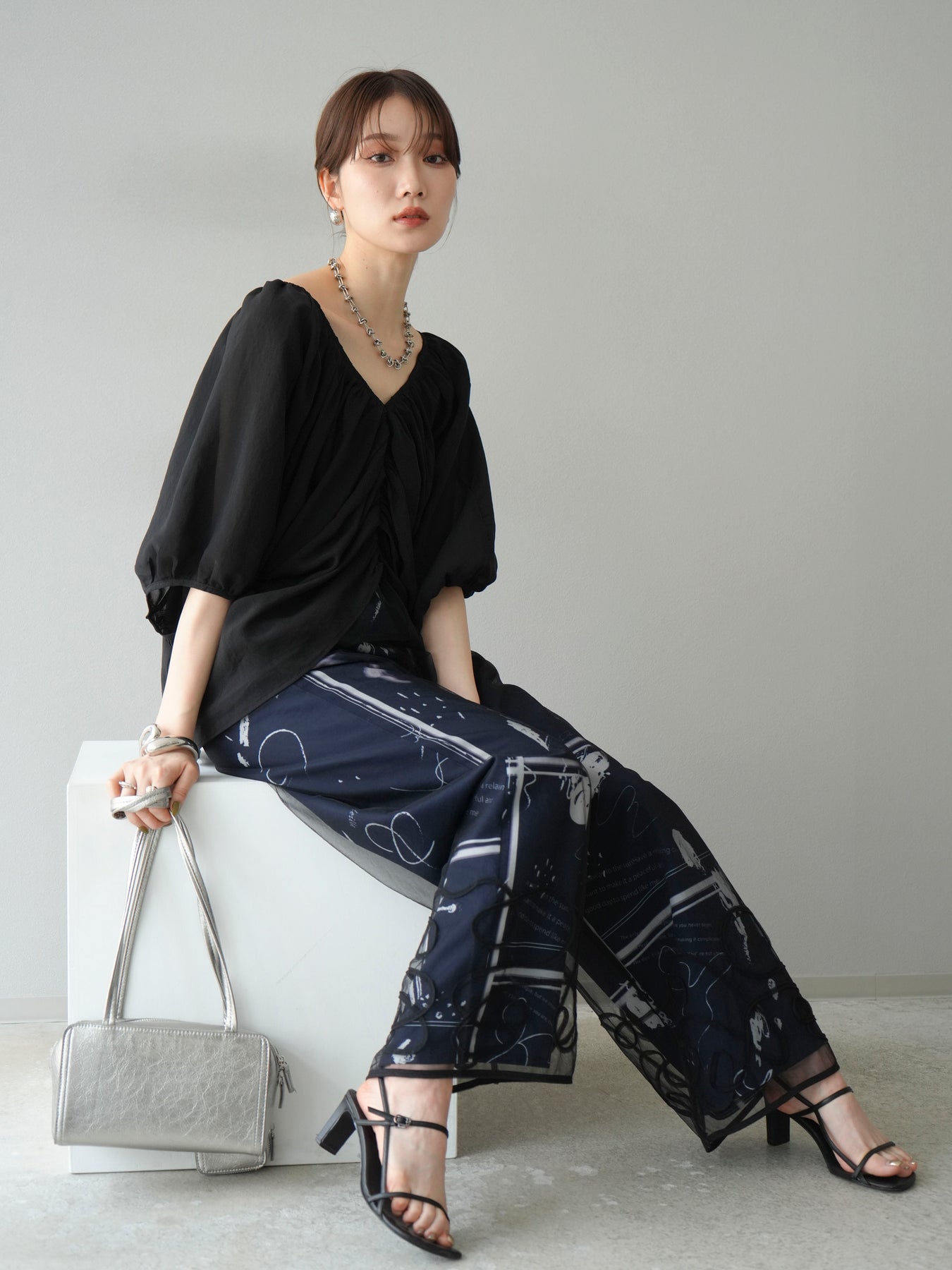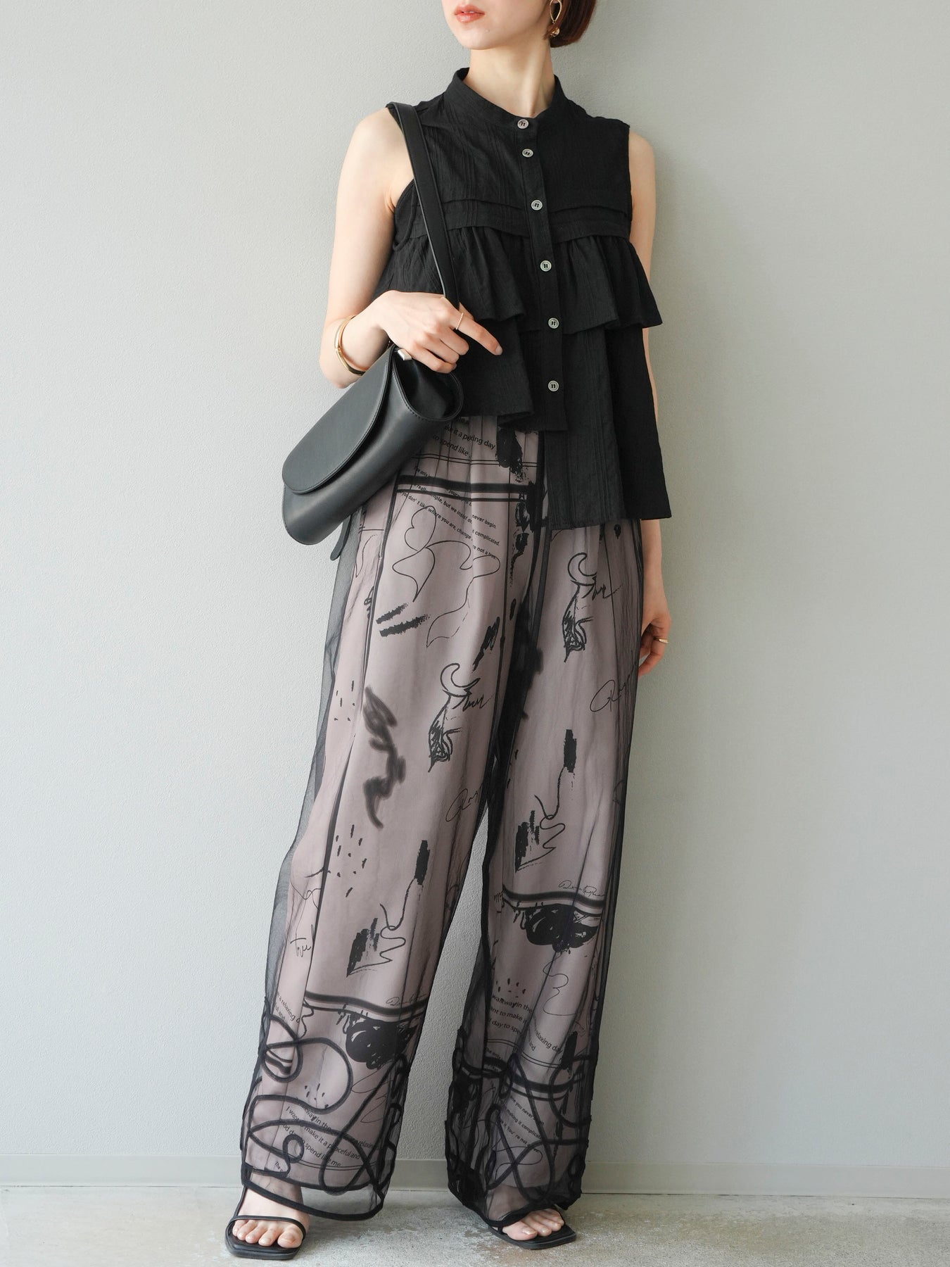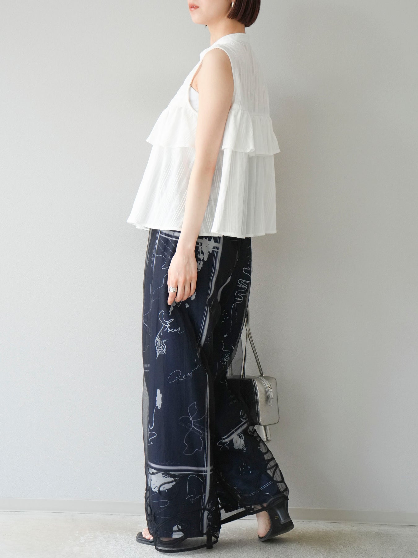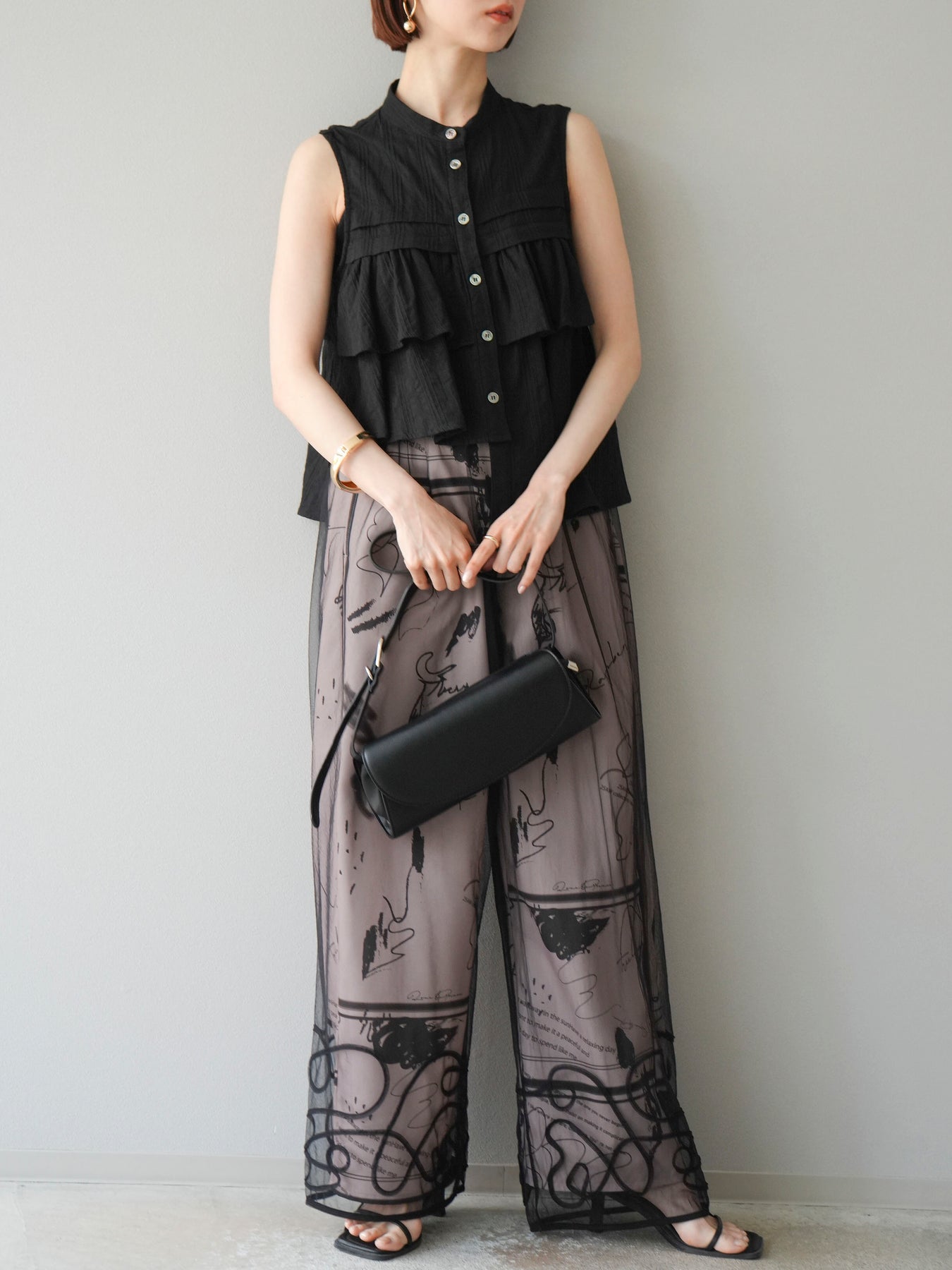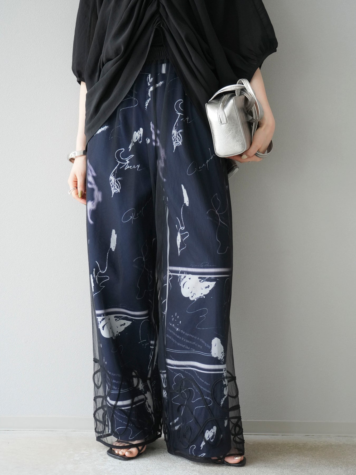 ◆ [予約]コード刺繍チュールレイヤードパンツ