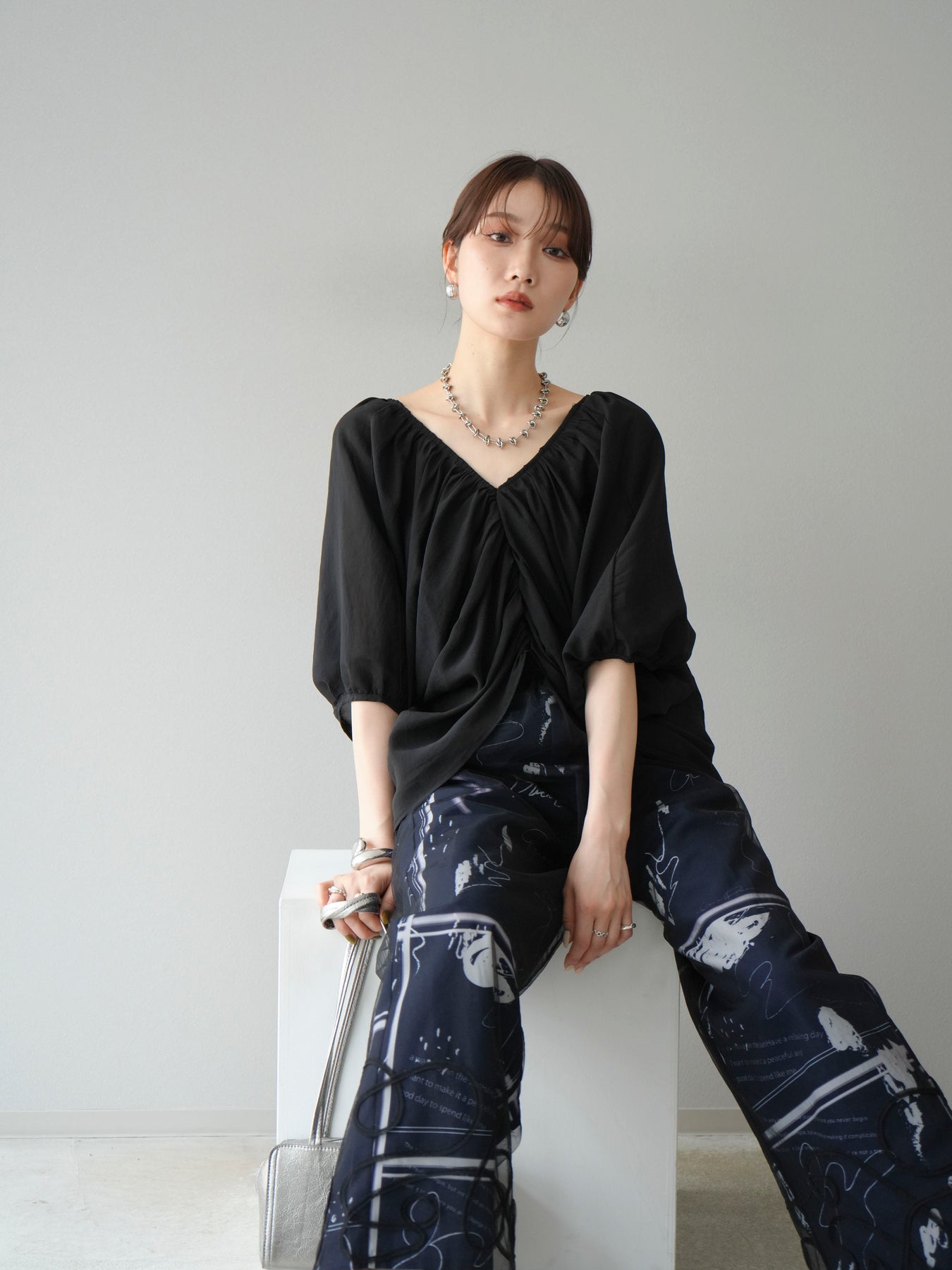 アーティスティックなペイント柄が目を惹く、感度高めなキャミソールトップス。 細めのストラップと切り替えギャザーで、女性らしさとリラックス感を兼ね備えたデザインに仕上げました。 目を引くグラフィックながらも、モノトーン配色でコーディネートに取り入れやすいバランス感が魅力。 フロントの直線的なカットが個性を加えつつ、裾のふんわり広がるシルエットで軽やかさも演出します。 セットアップのボトムとの着用はもちろん、デニムやワイドパンツ、スラックスとも好相性。 1枚でトレンド感を取り入れられる、夏の主役トップスです。