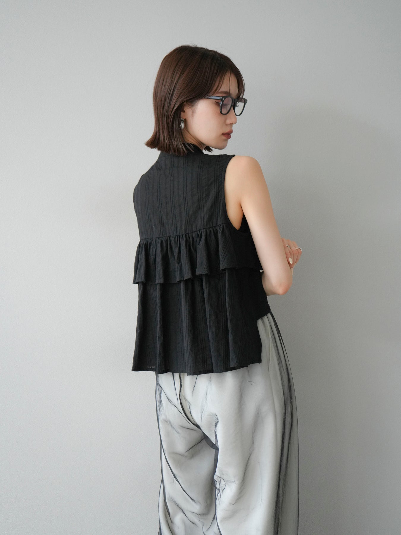 [予約]ドビーストライプアシンメトリーフリルノースリブラウス