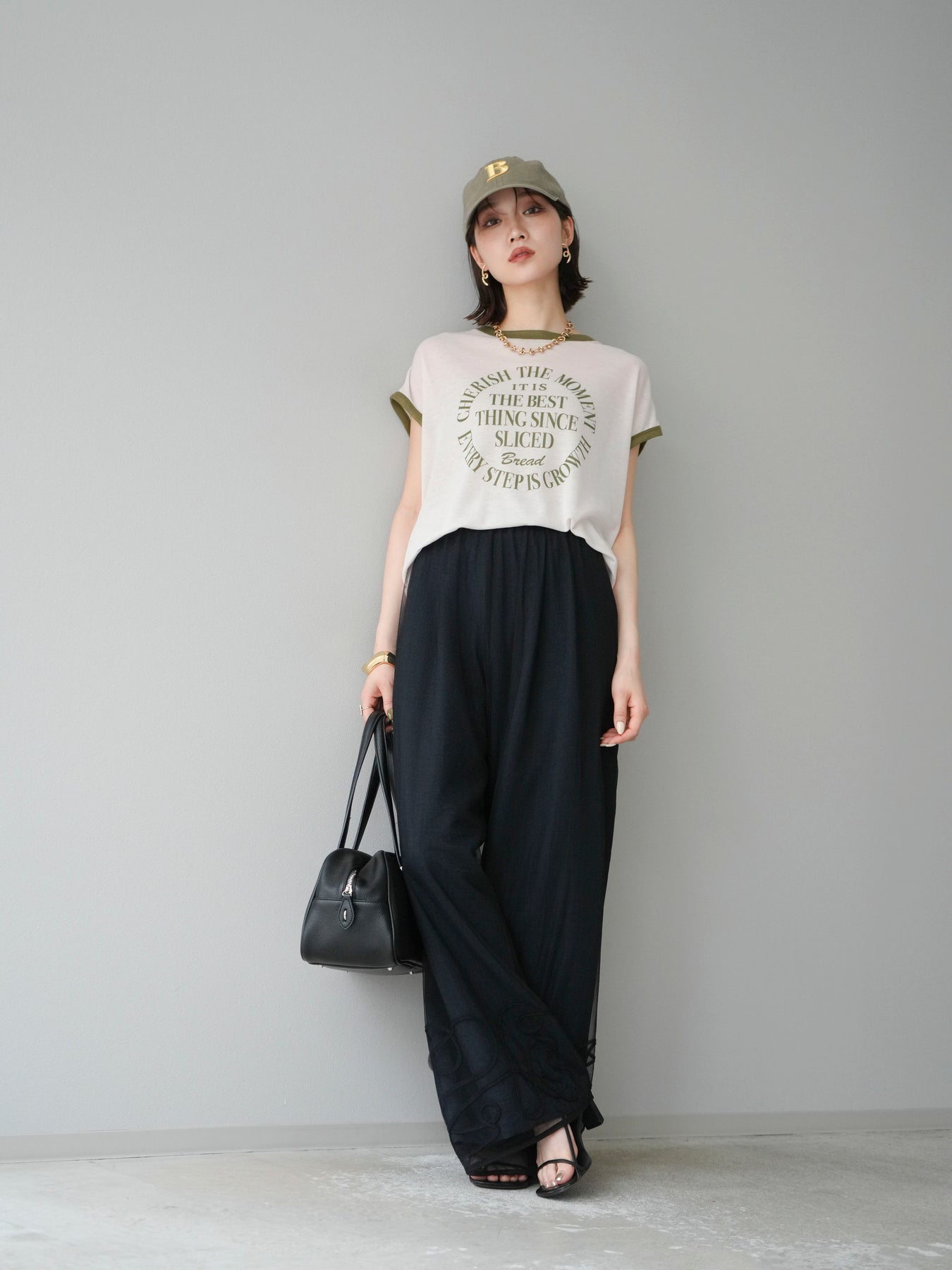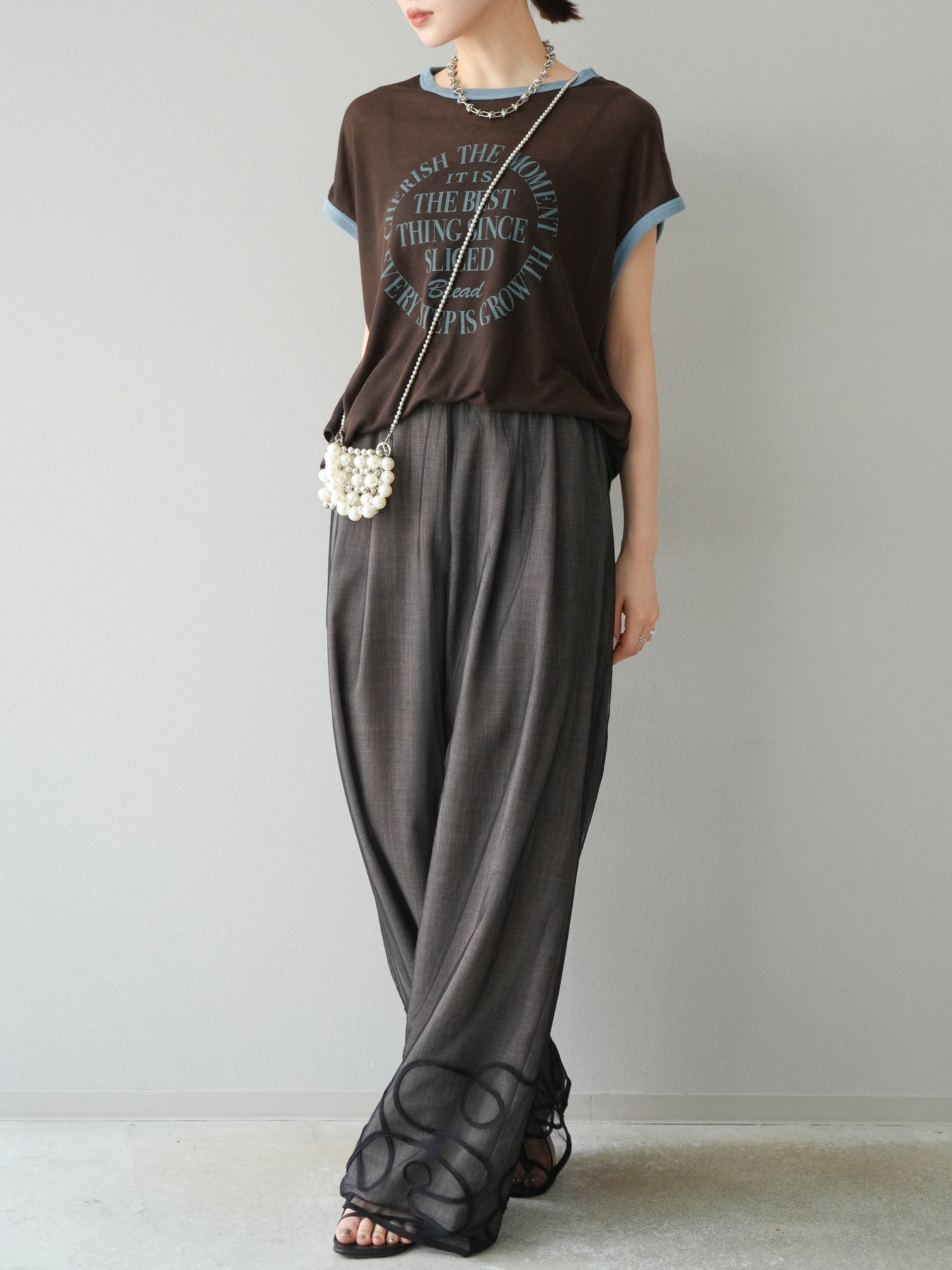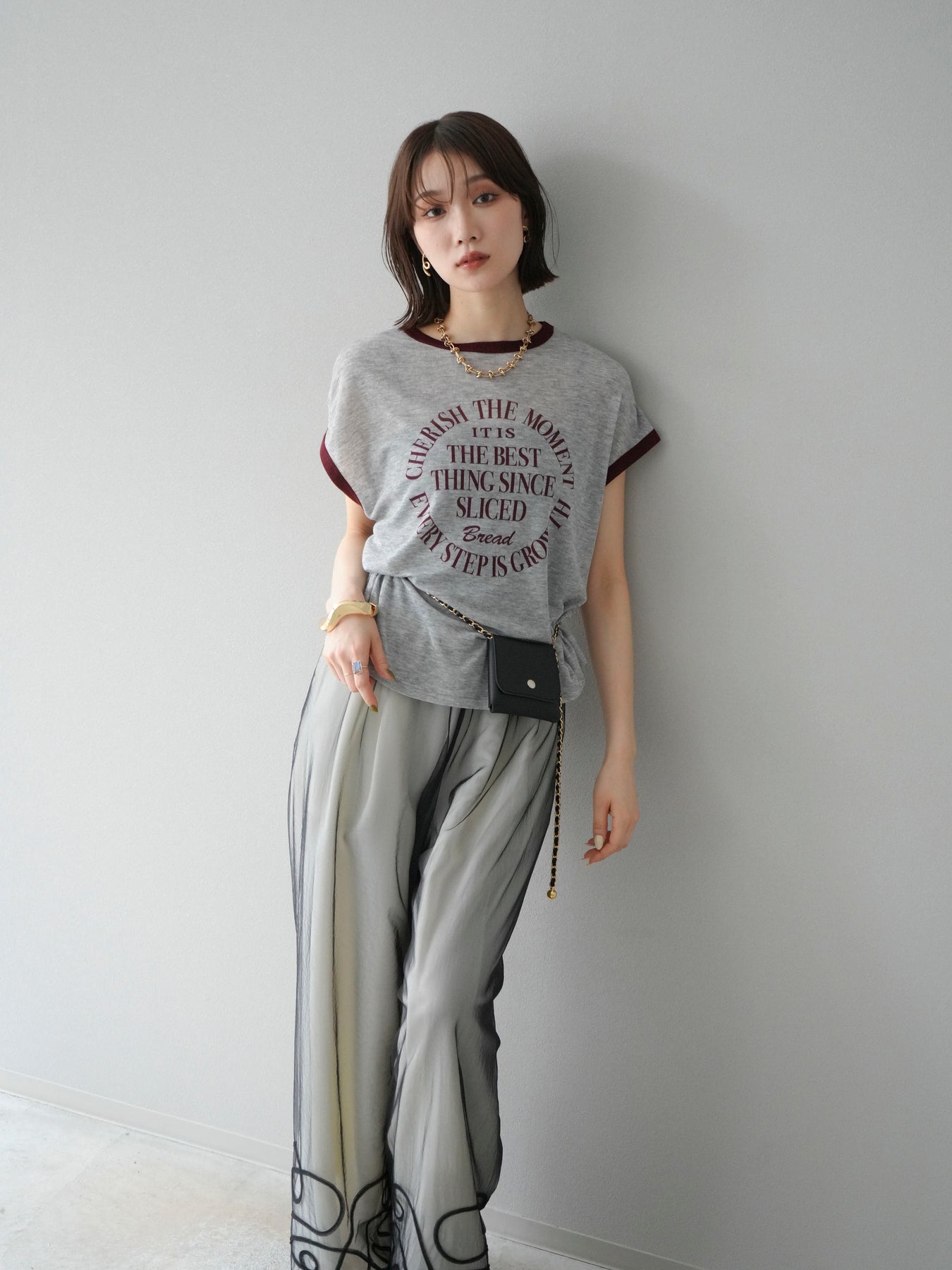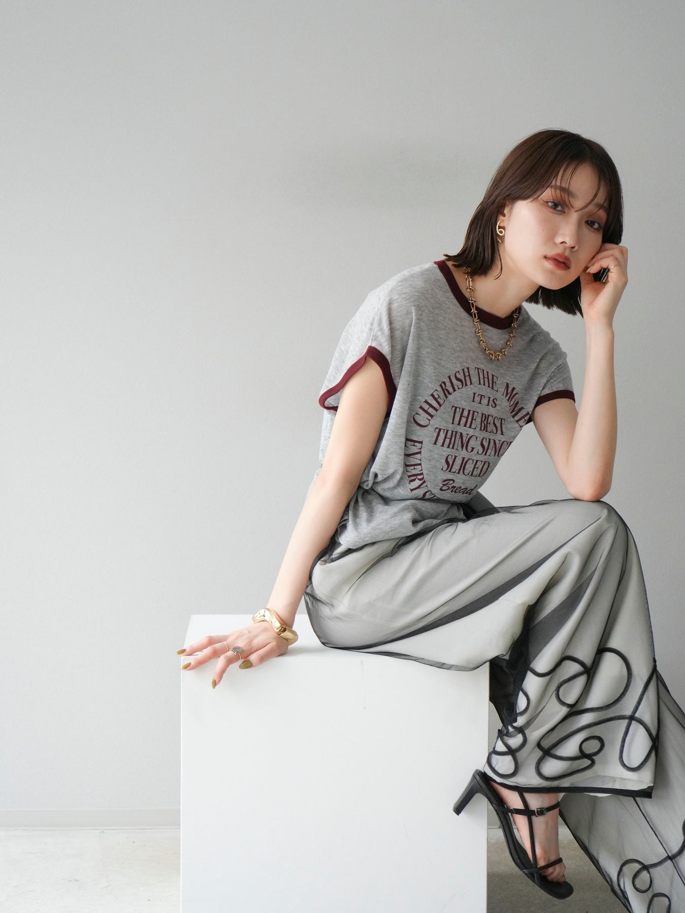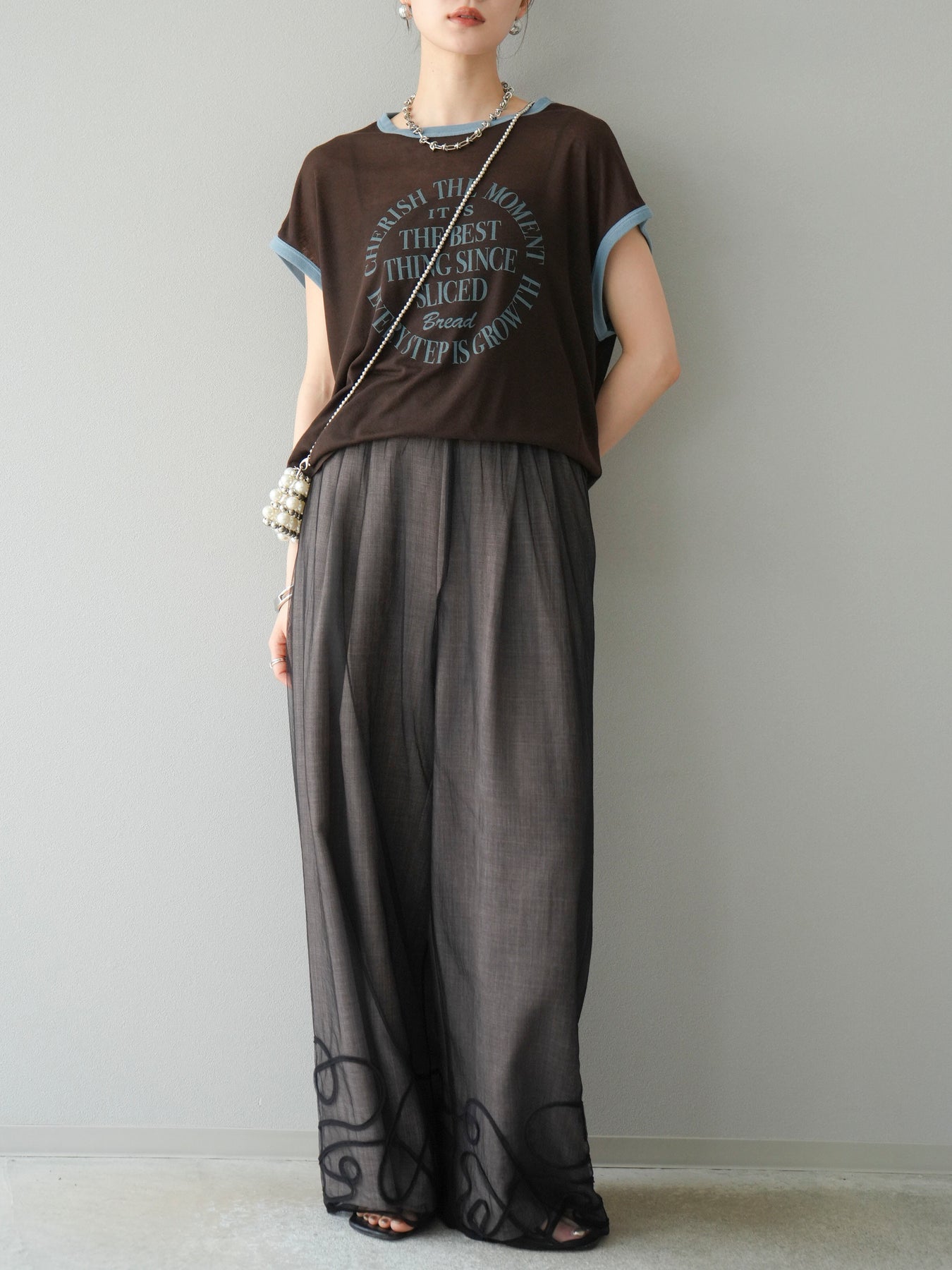 [SET]シアーフライス ロゴプリントT +コード刺繍チュールレイヤードパンツ(2set)