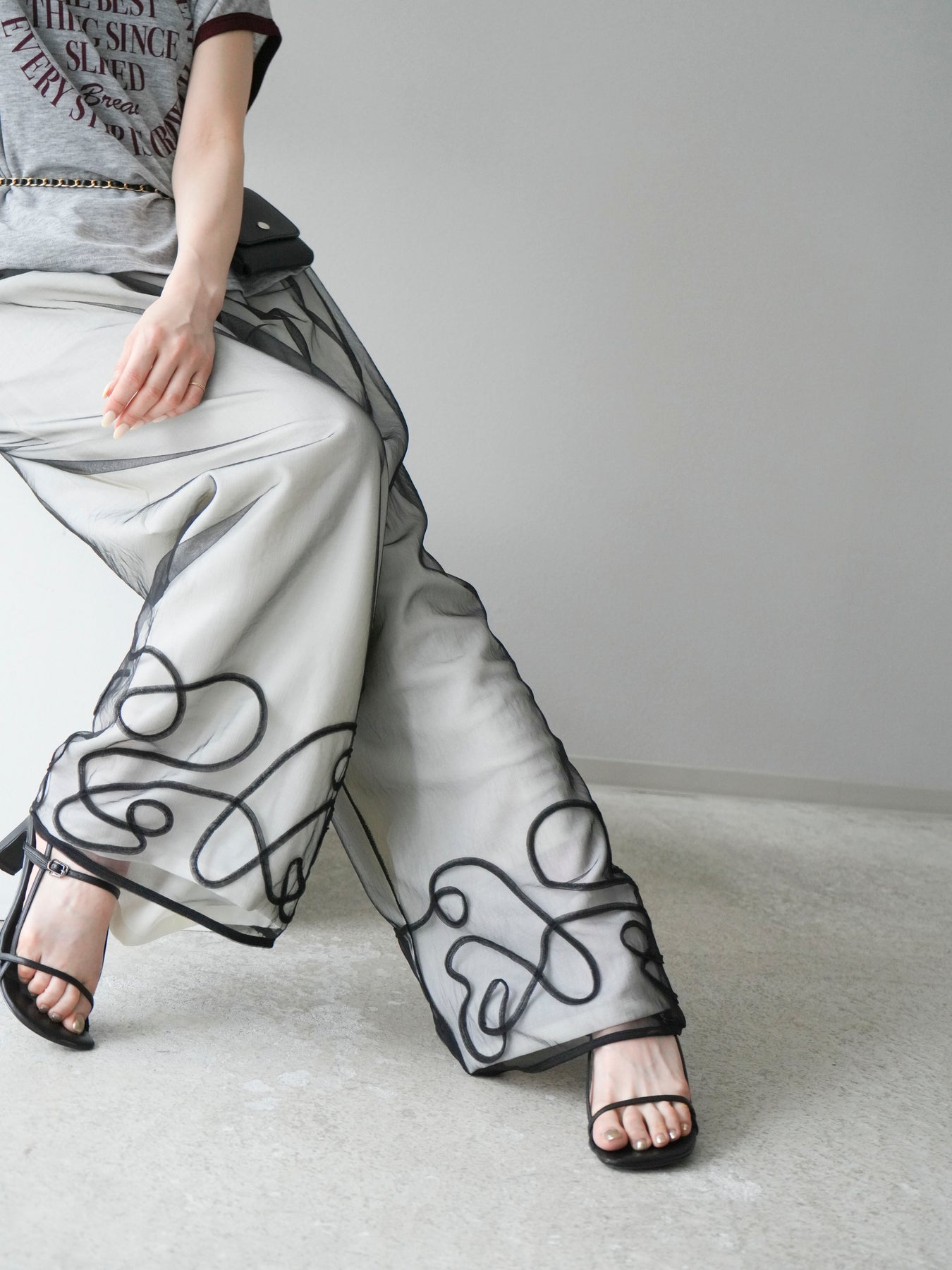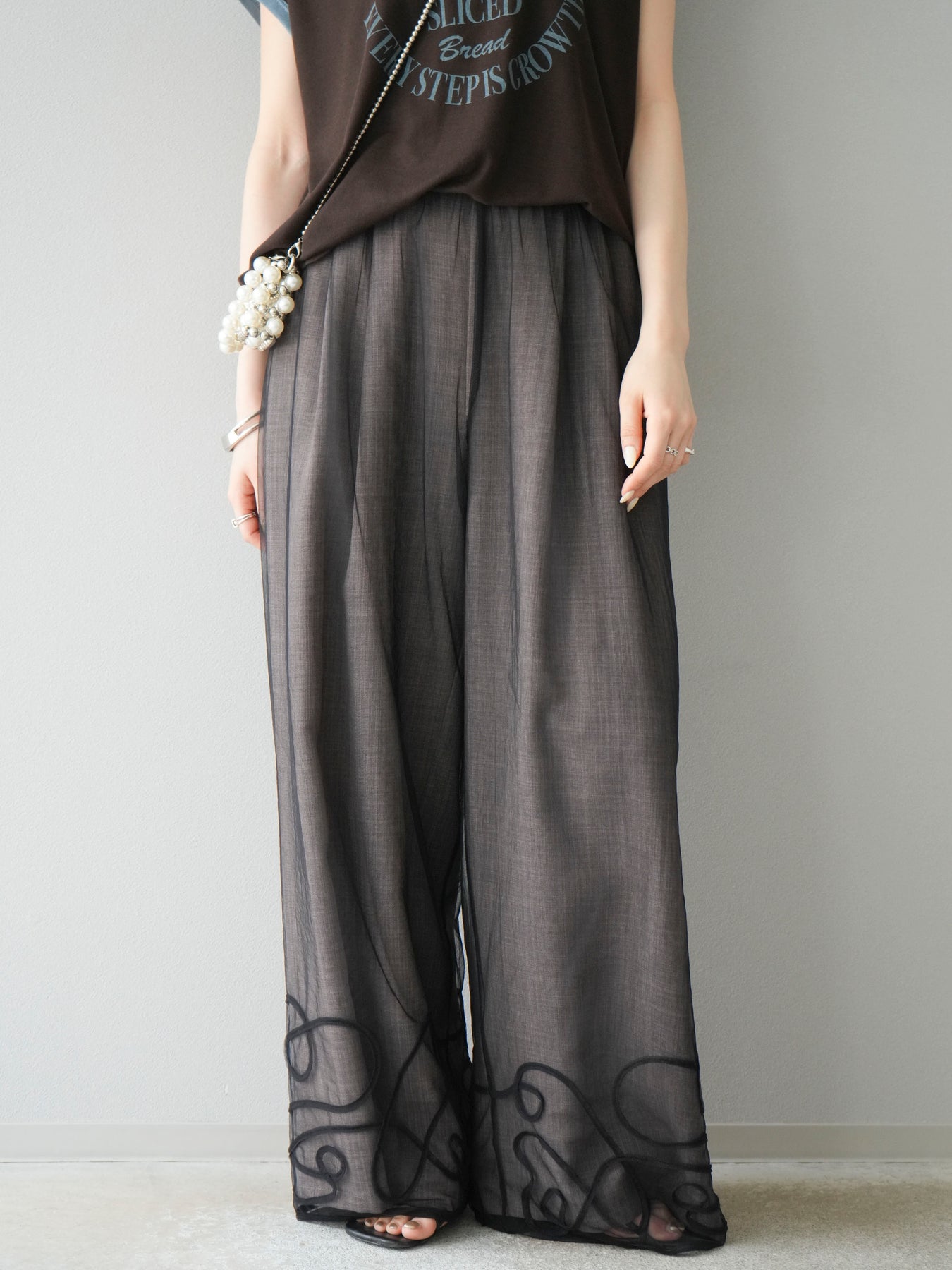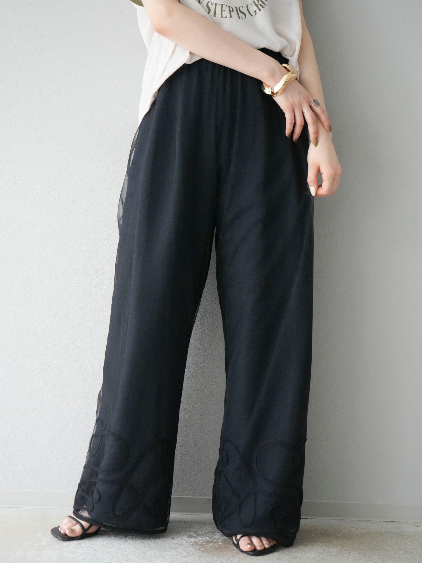 ◆ [予約]コード刺繍チュールレイヤードパンツ