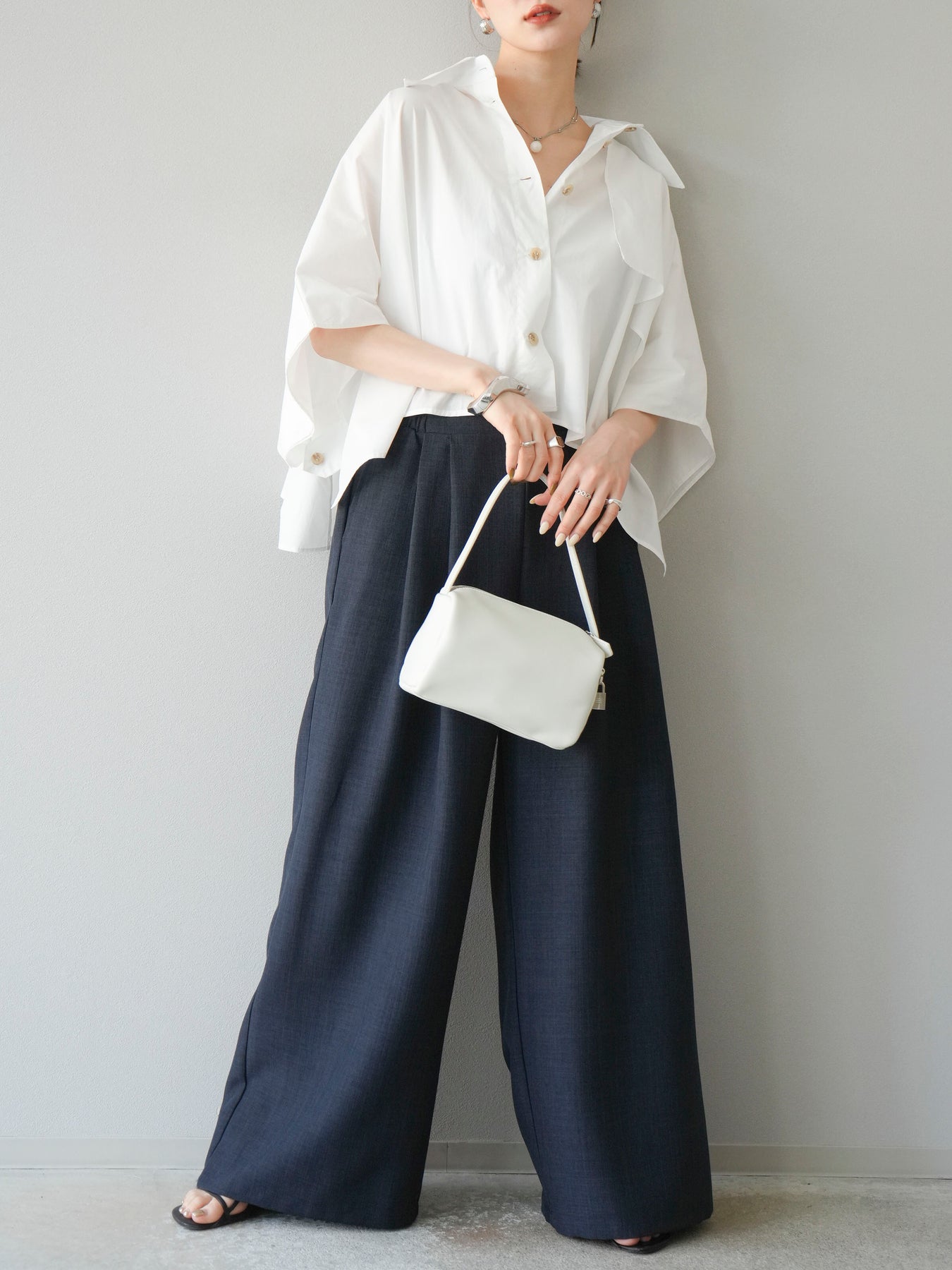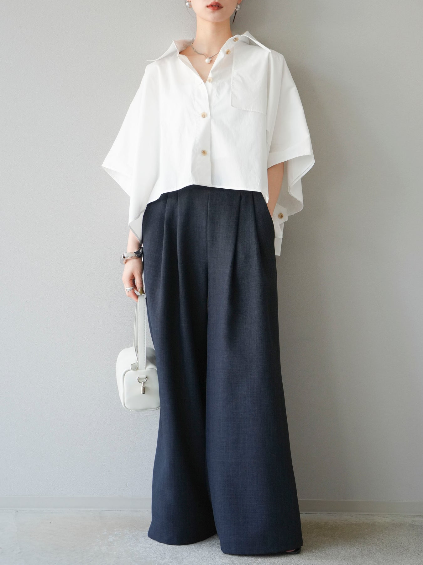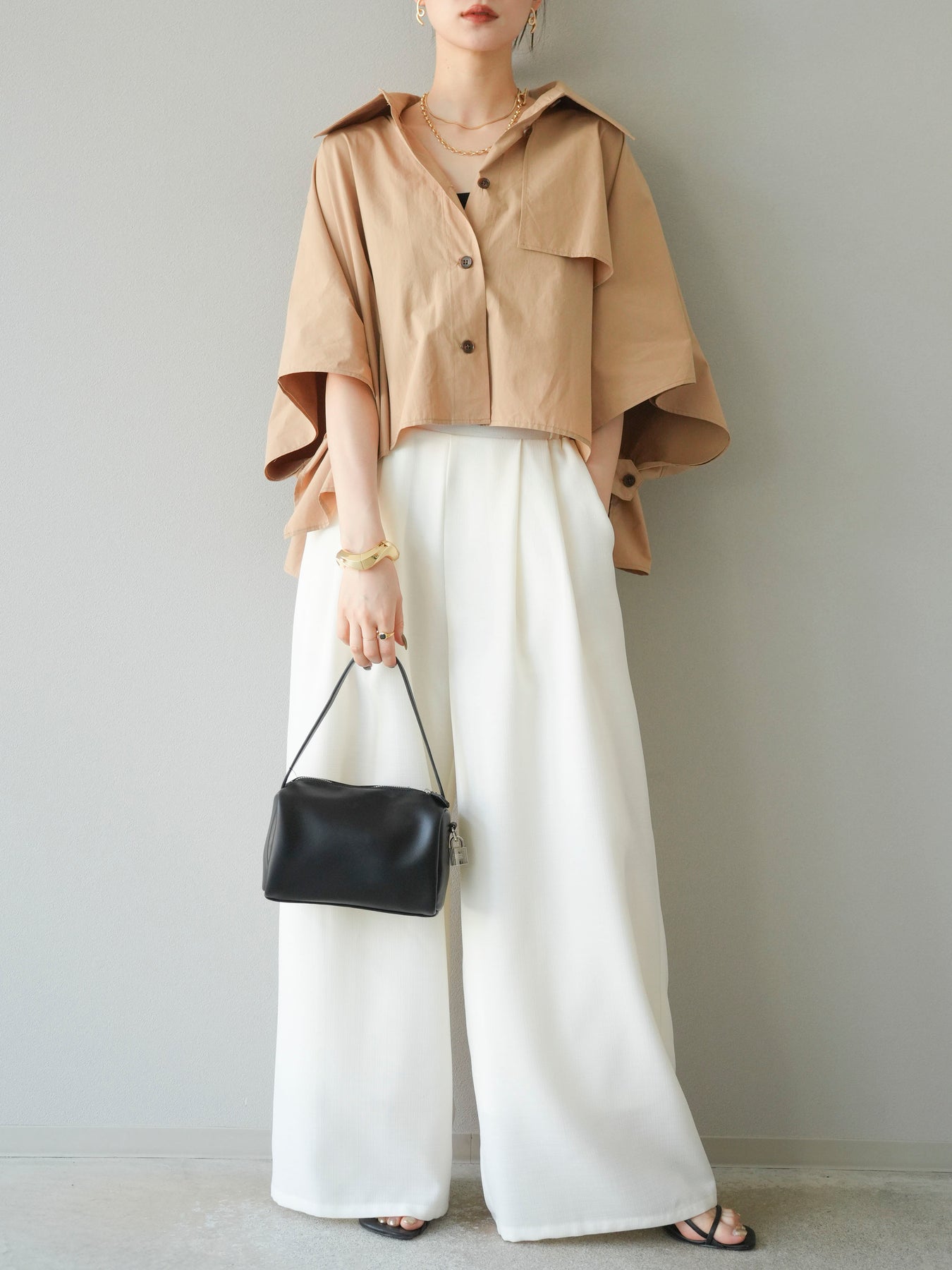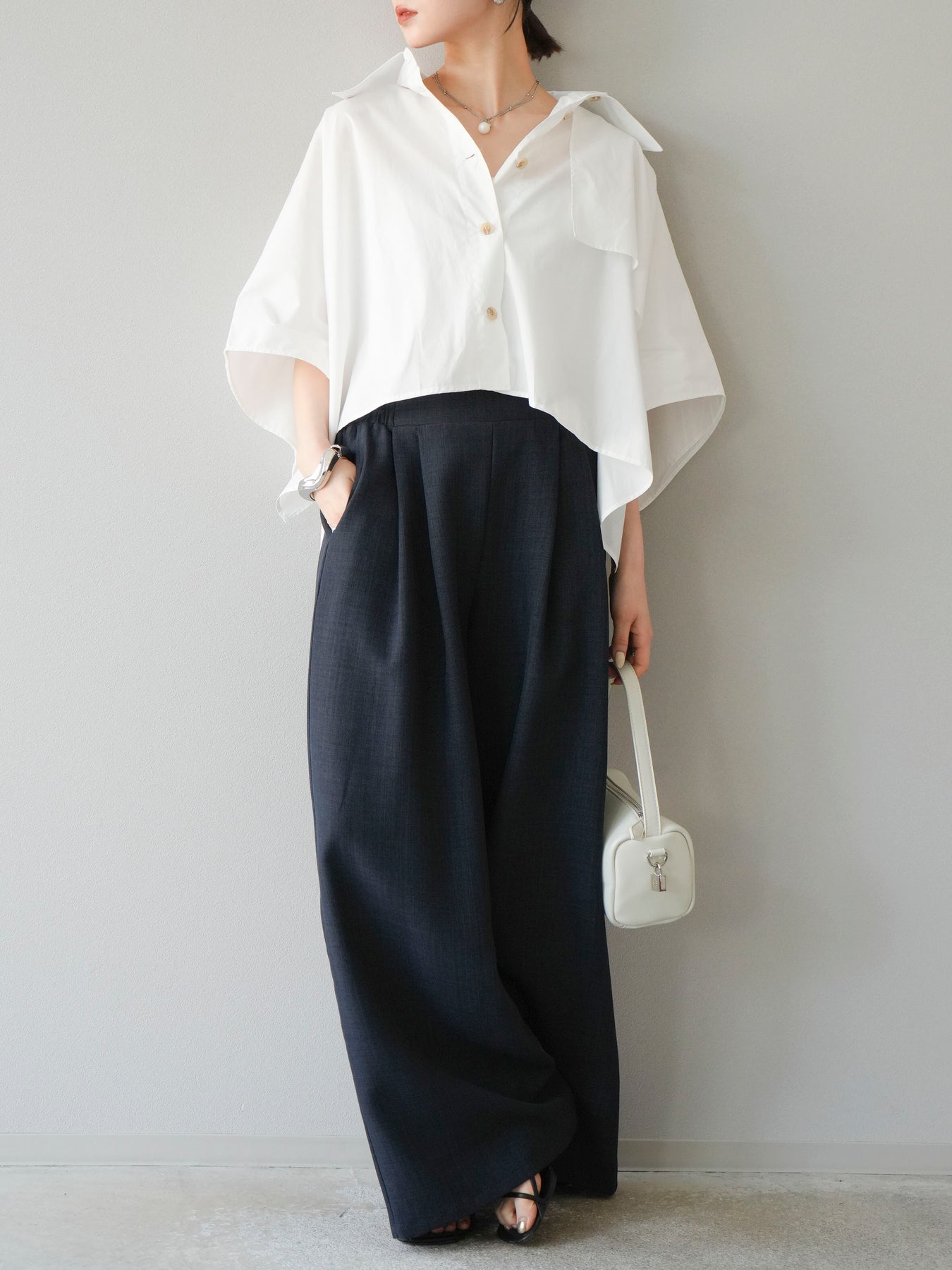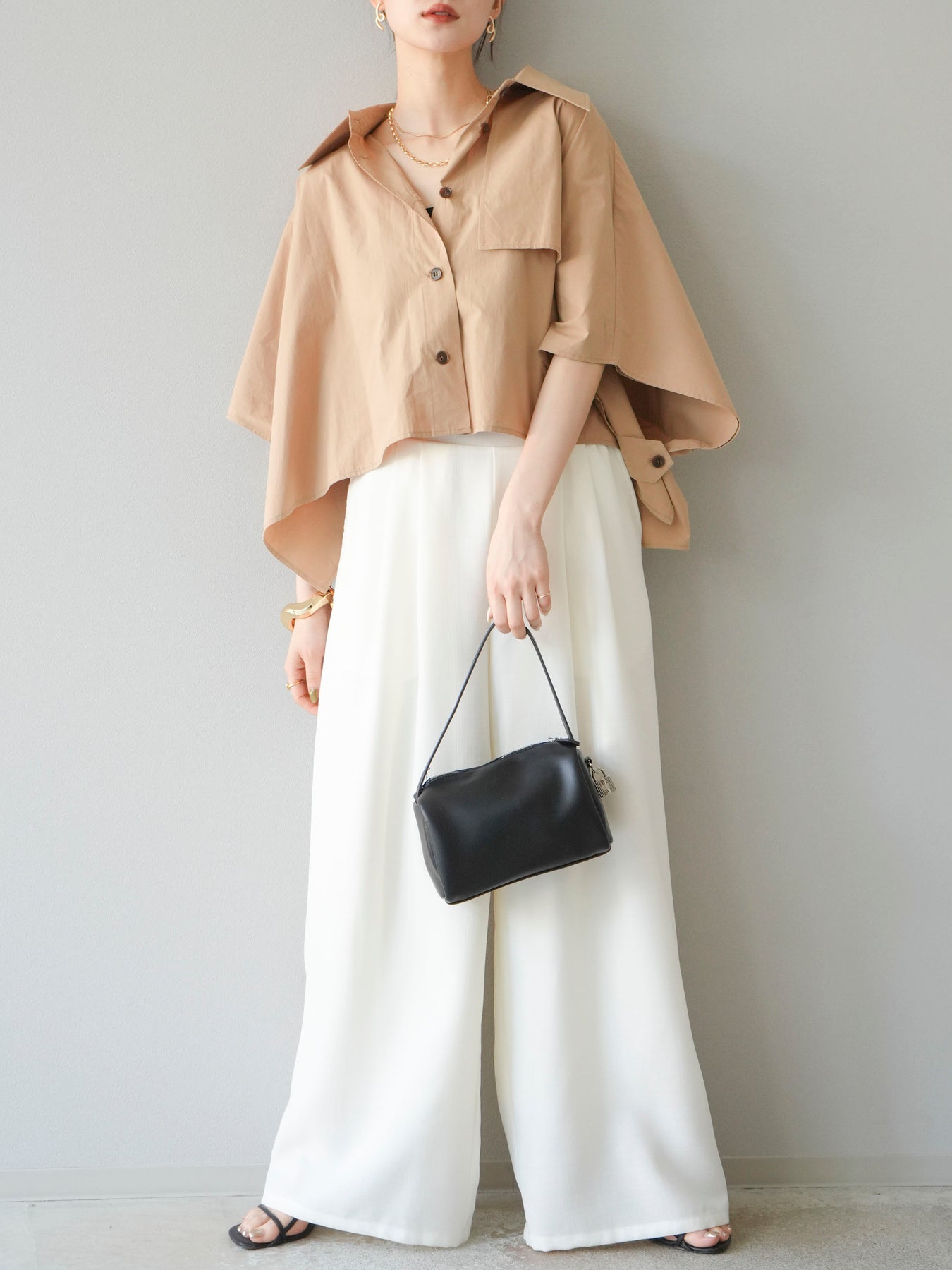 [SET]ポンチョショートシャツ+リネンライクイージーワイドパンツ(2set)