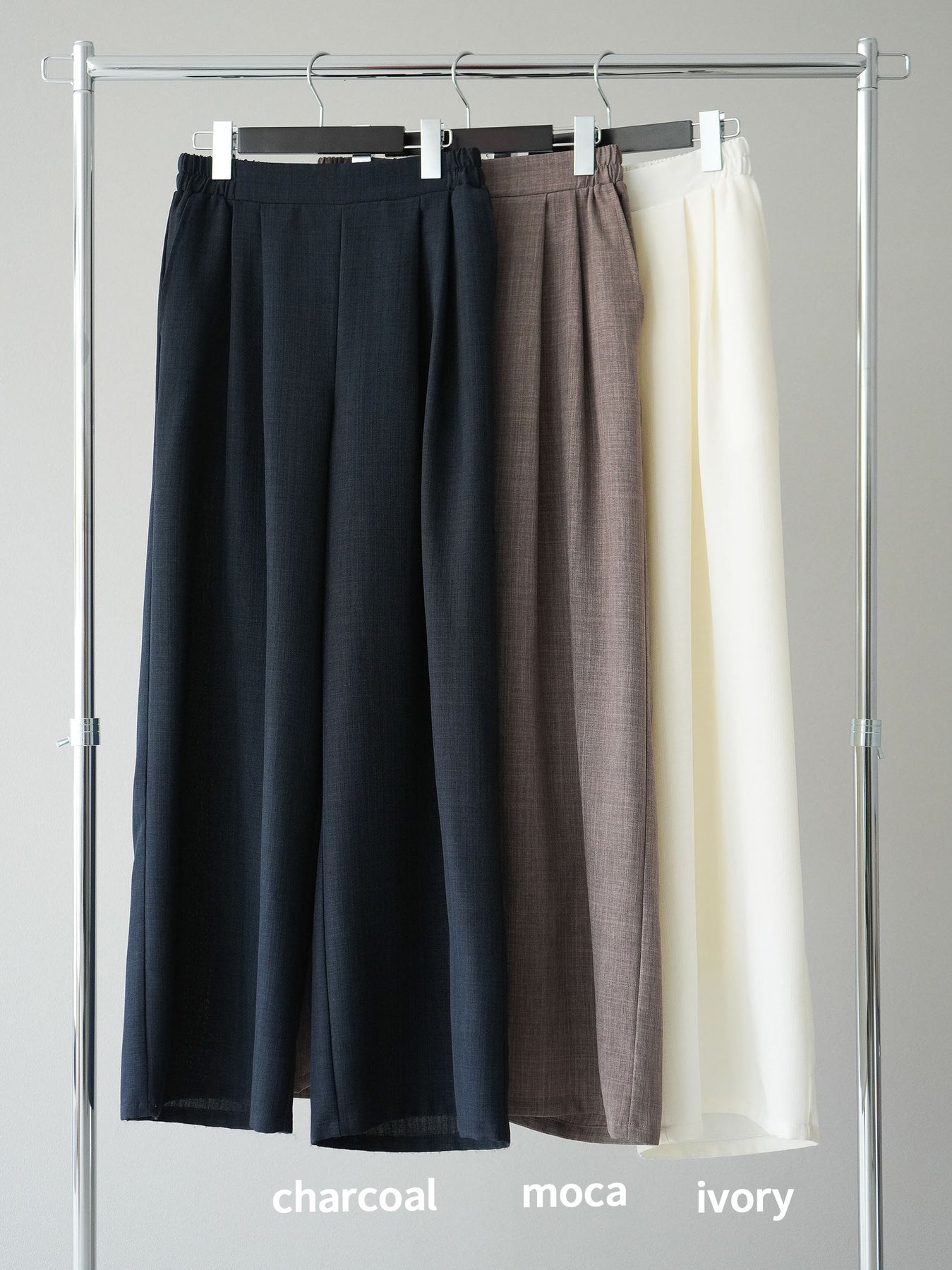 さらりとした肌触りとナチュラルな風合いが魅力の、リネンライク素材を使用したワイドパンツ。 上品な落ち感と程よいハリのあるシルエットで、リラックス感がありながらもきちんと見えを叶えてくれます。 ウエストは総ゴム仕様でストレスフリーな穿き心地。 ワイドすぎない絶妙なボリューム感で、脚のラインを美しくカバーしてくれるのも嬉しいポイントです。 Tシャツやブラウス、ノースリーブなど、合わせるトップスを選ばず幅広く着回し可能。 オフィスにもデイリーにも対応できる、洗練された大人のための一本です。