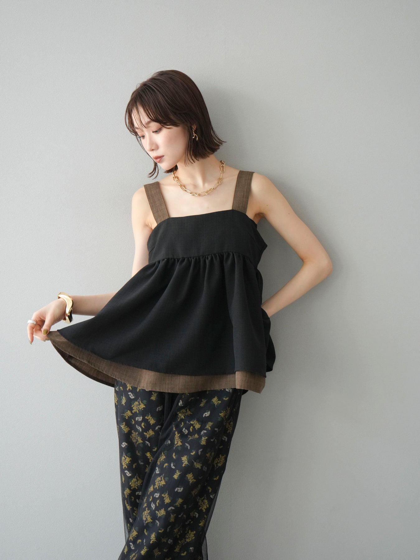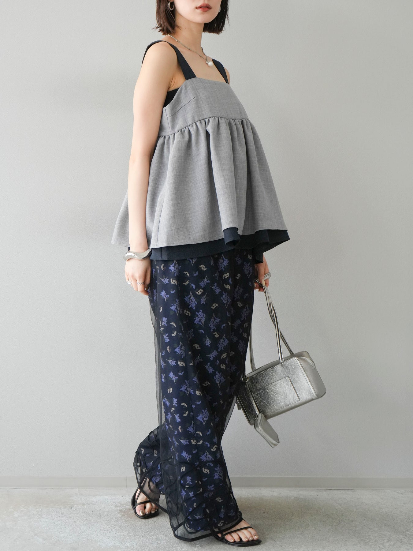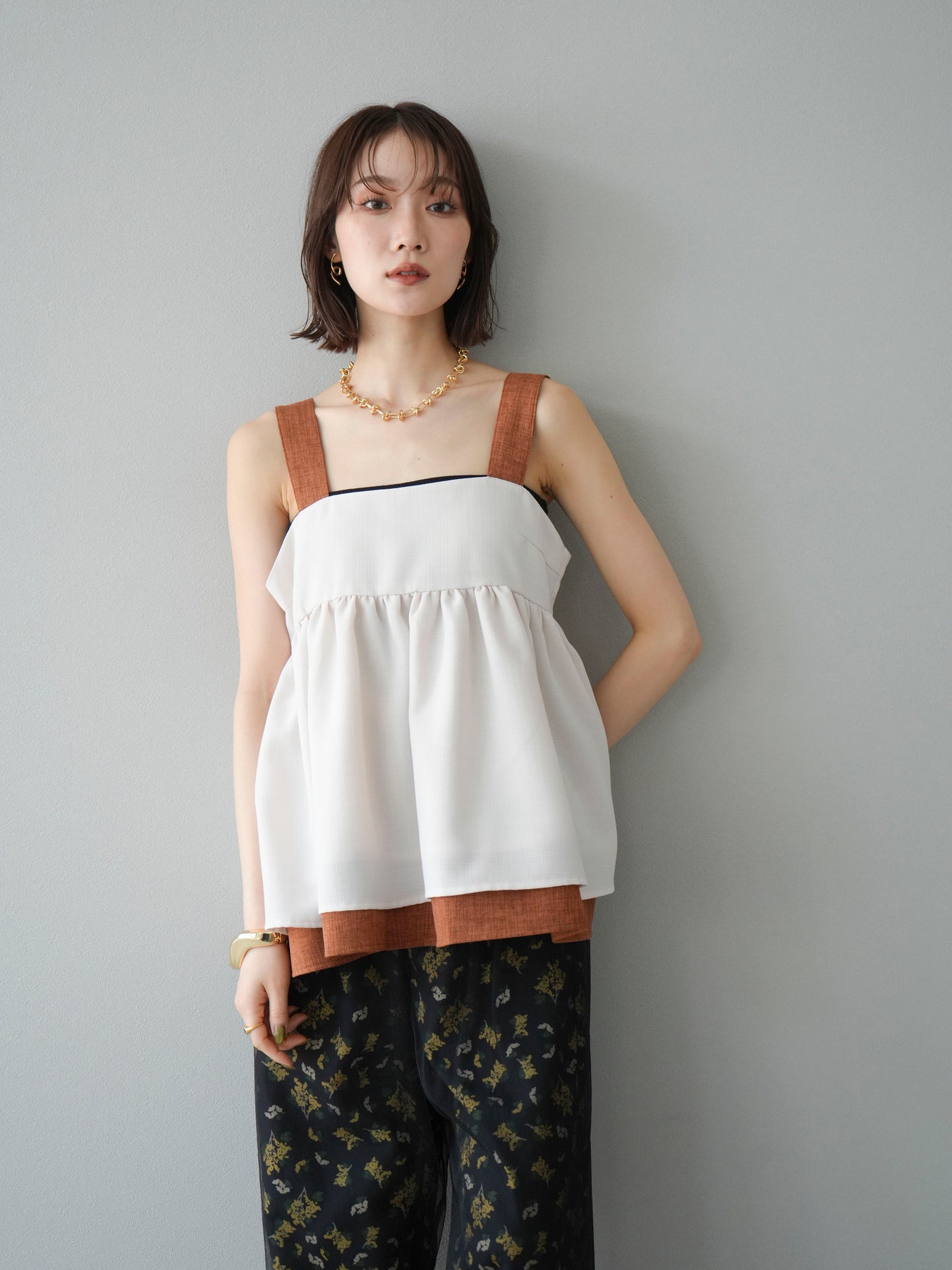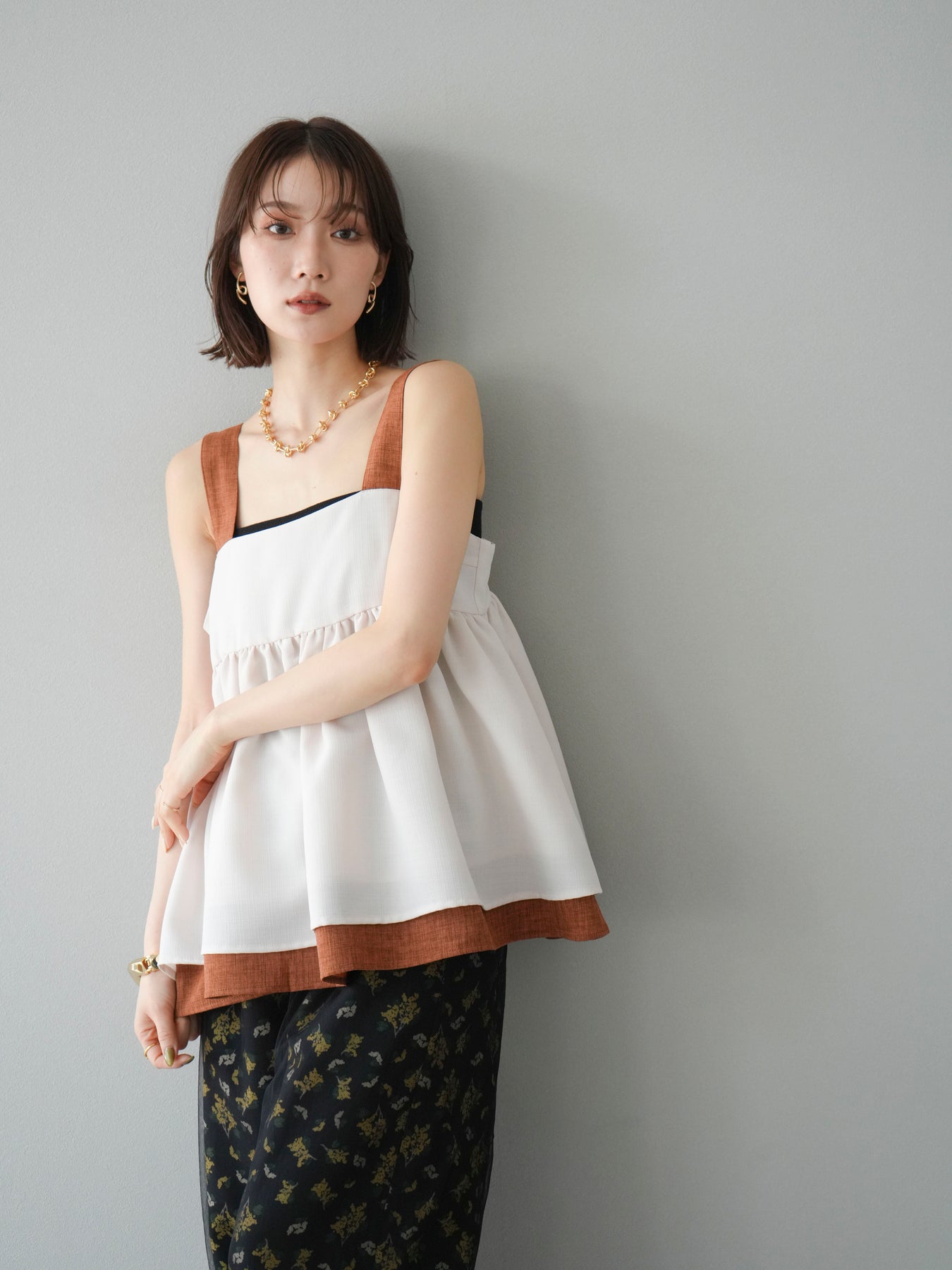[SET]リネンライク配色フレアタンクトップ+ブーケプリントタックパンツ(2set)