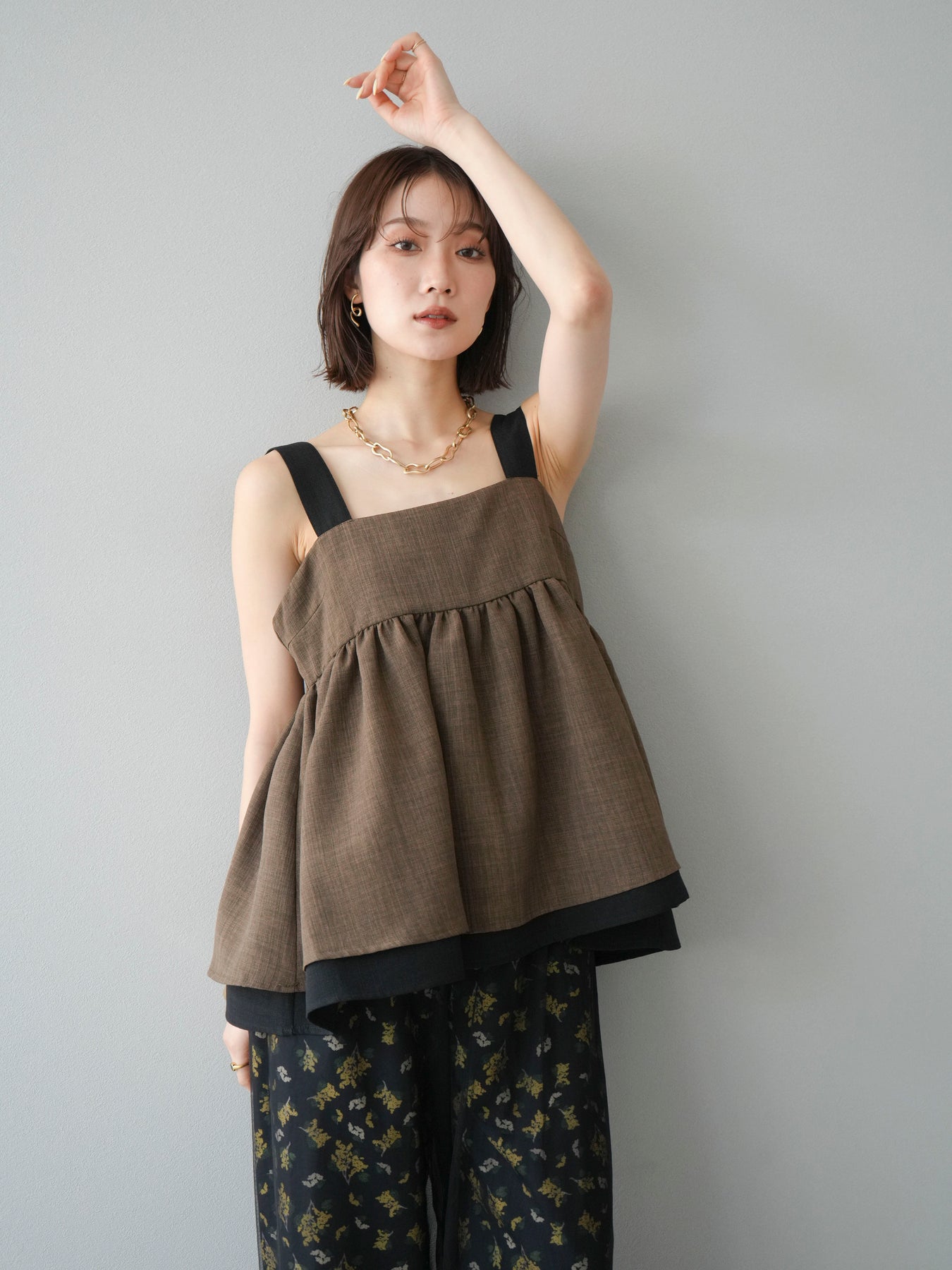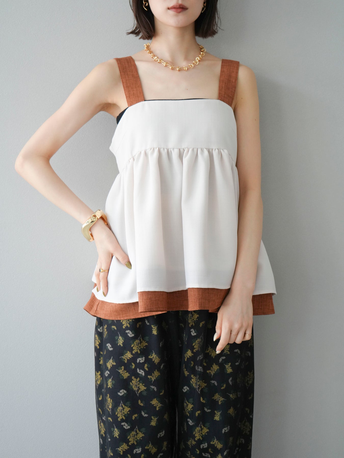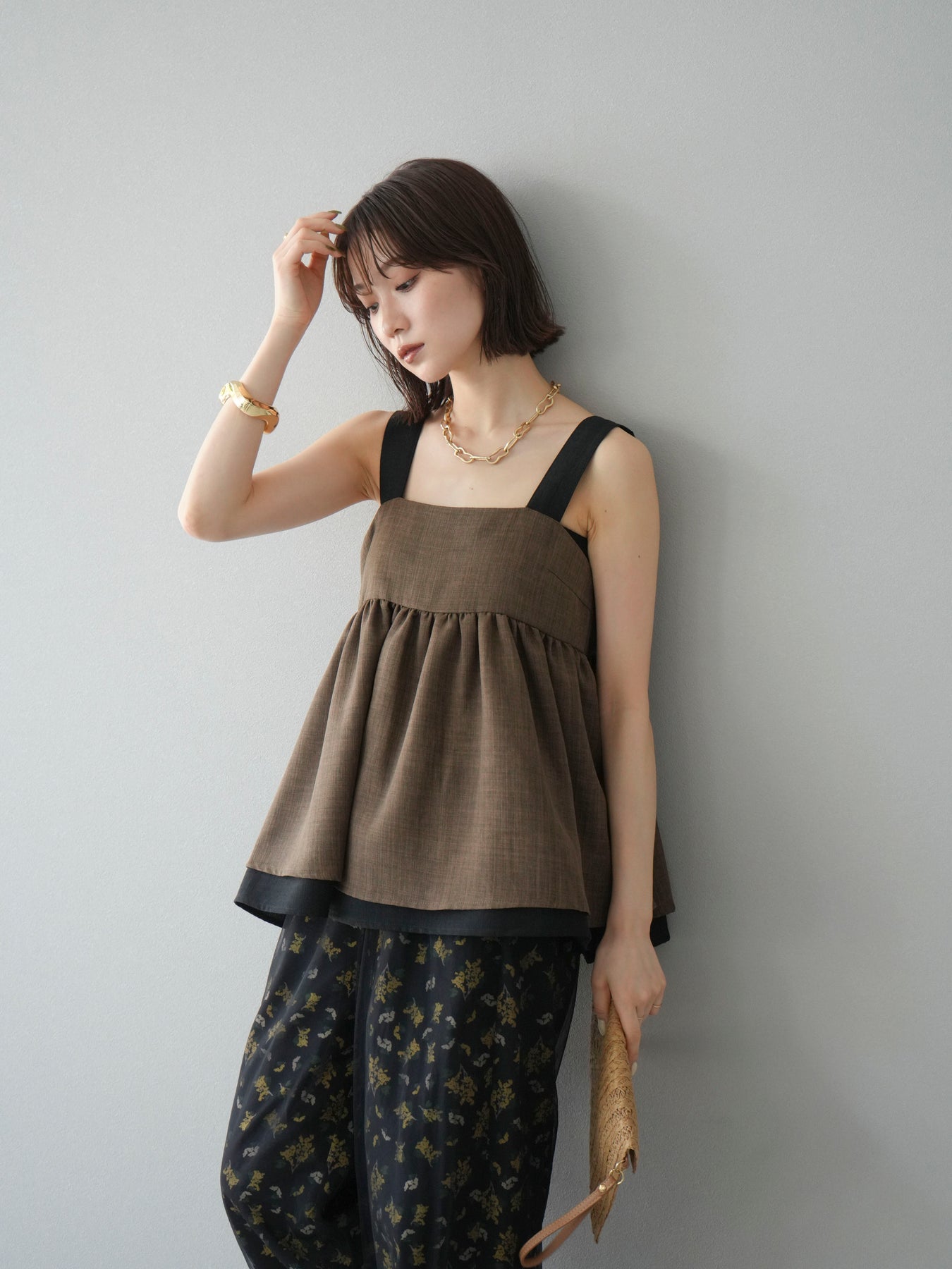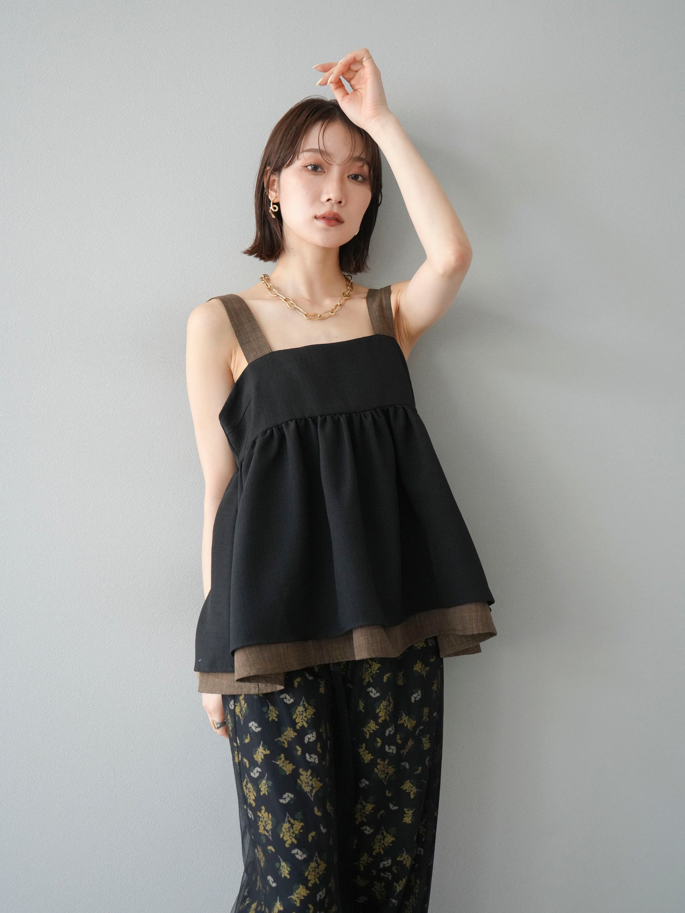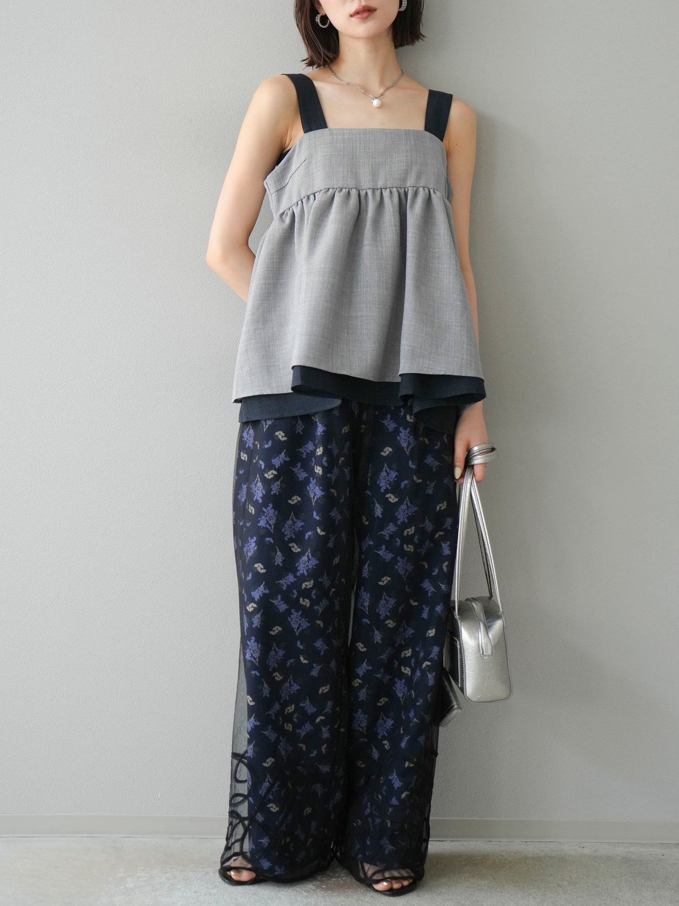 [SET]リネンライク配色フレアタンクトップ+ブーケプリントタックパンツ(2set)