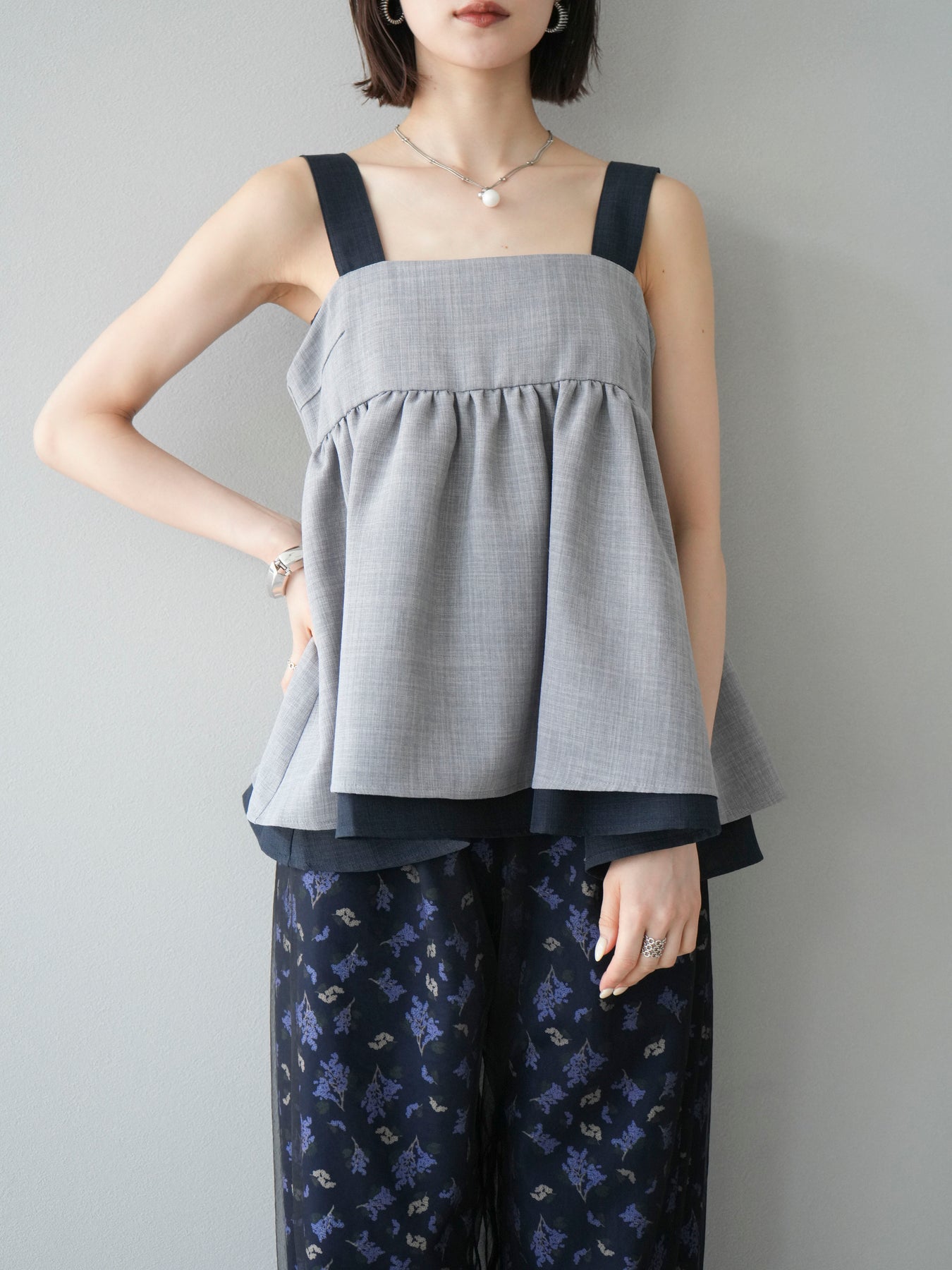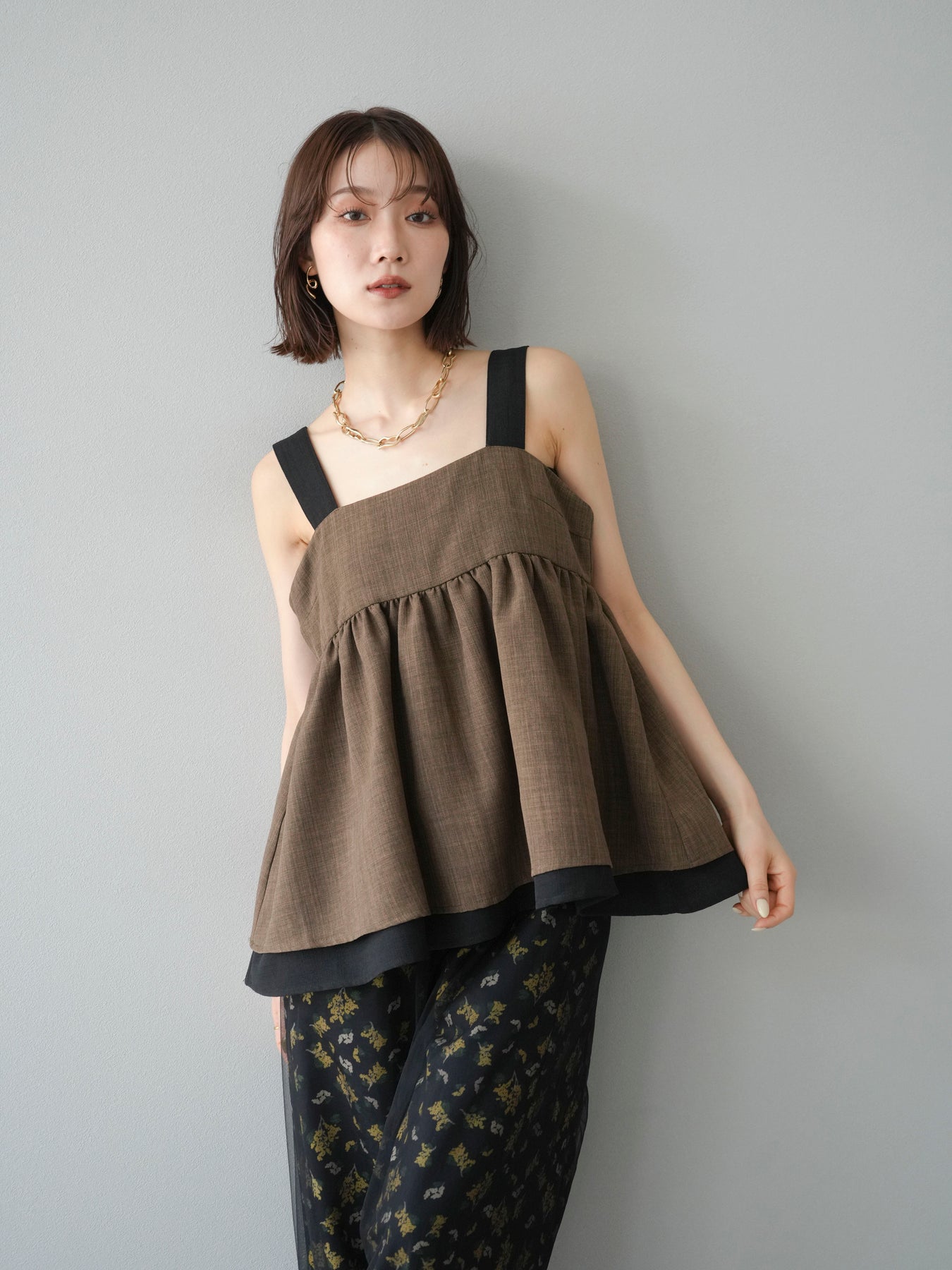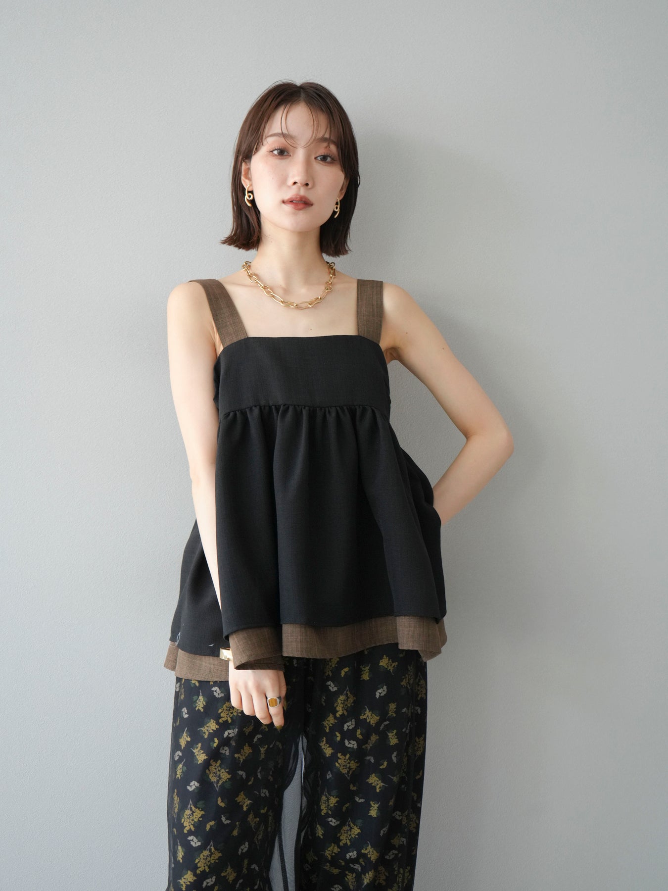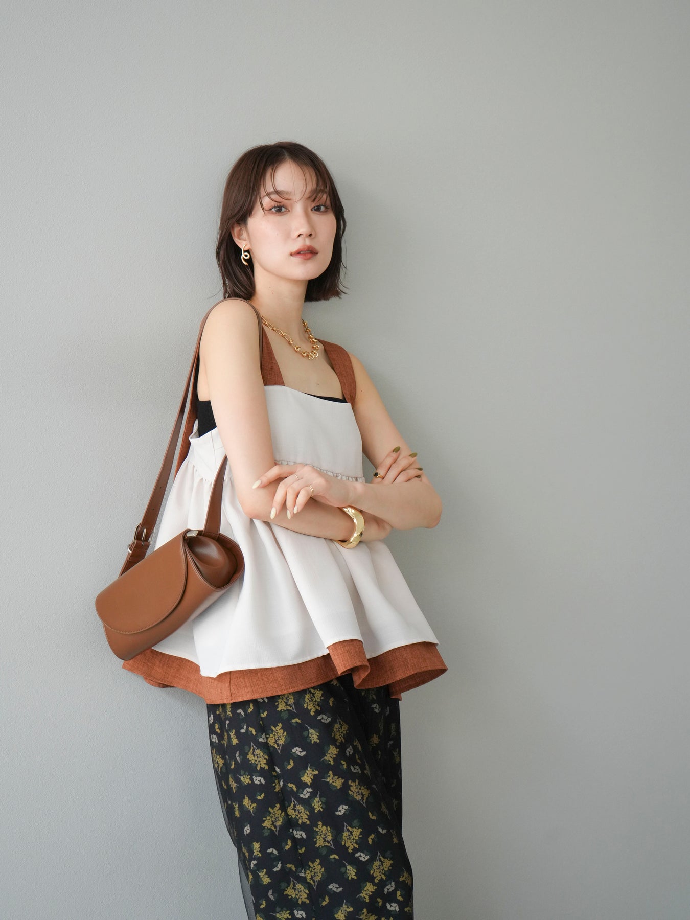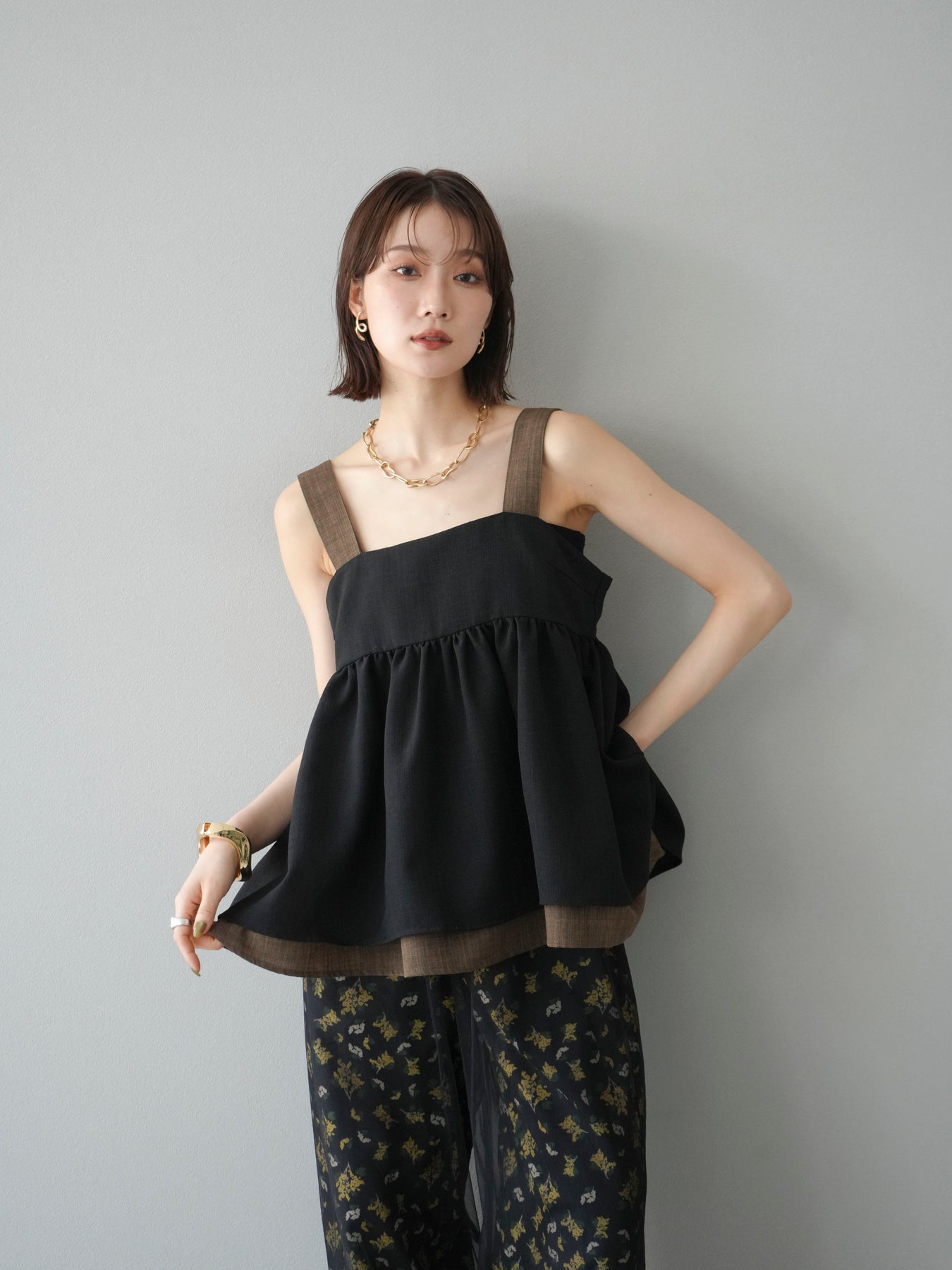 [SET]リネンライク配色フレアタンクトップ+ブーケプリントタックパンツ(2set)