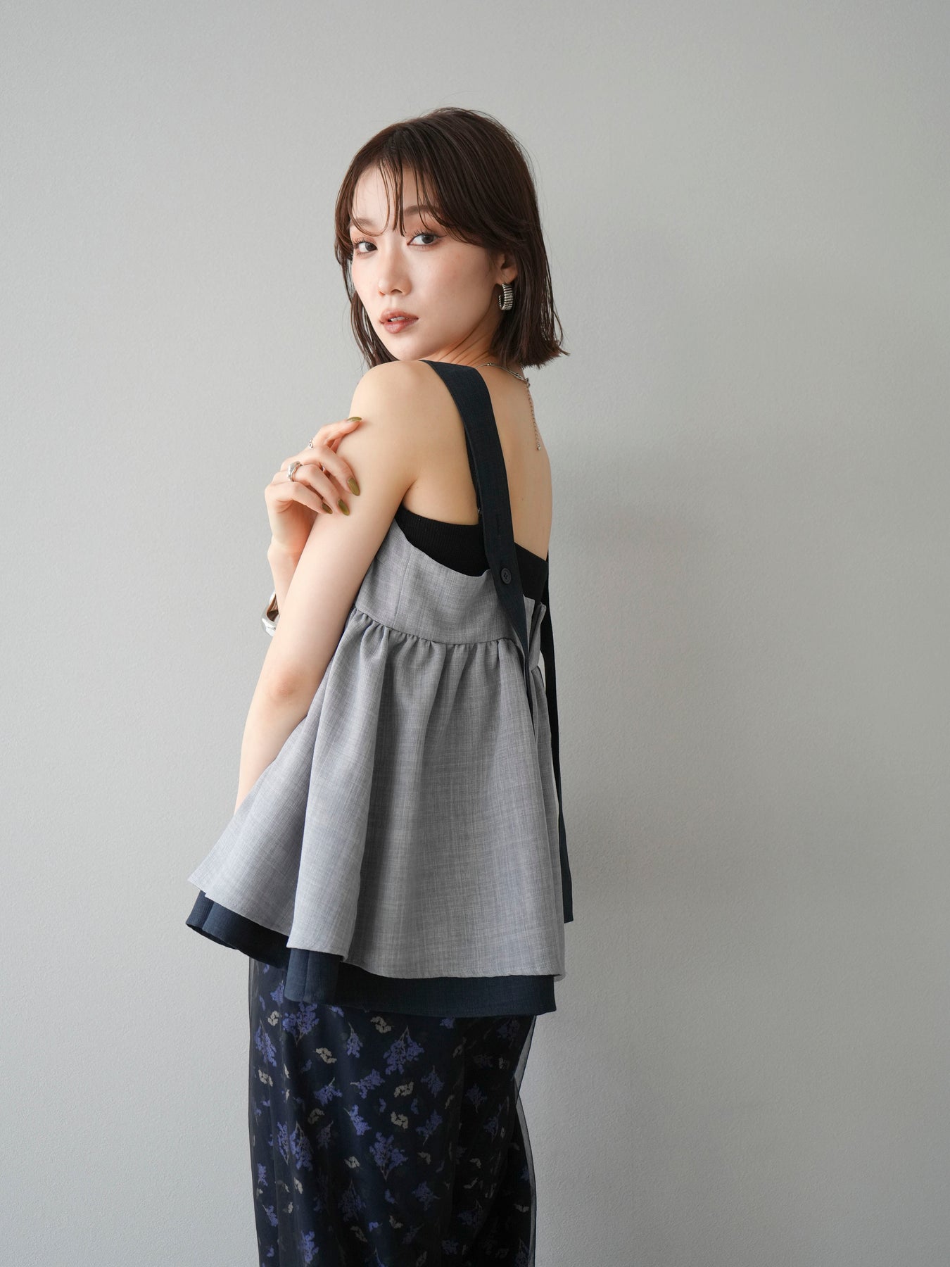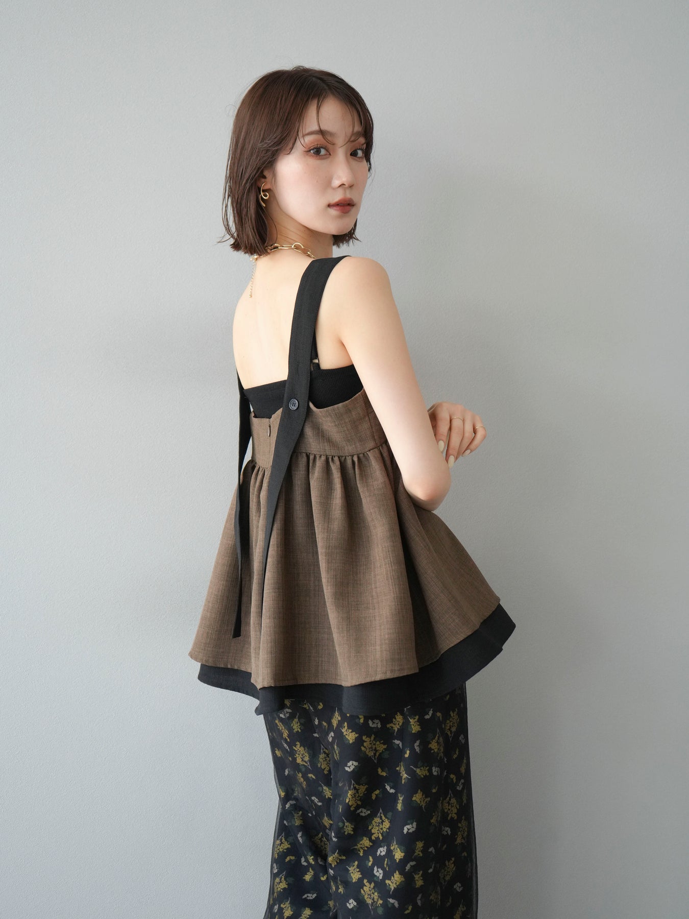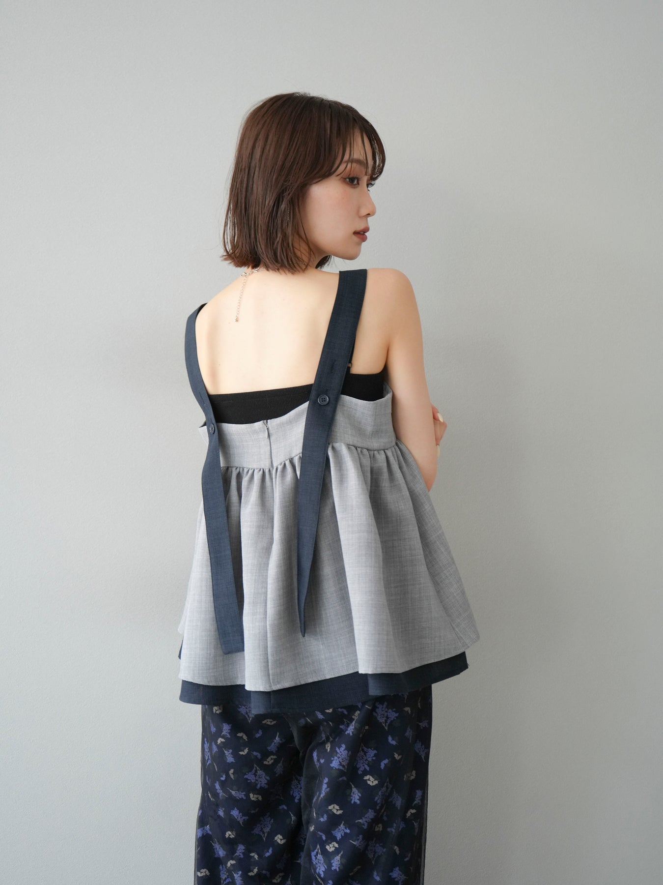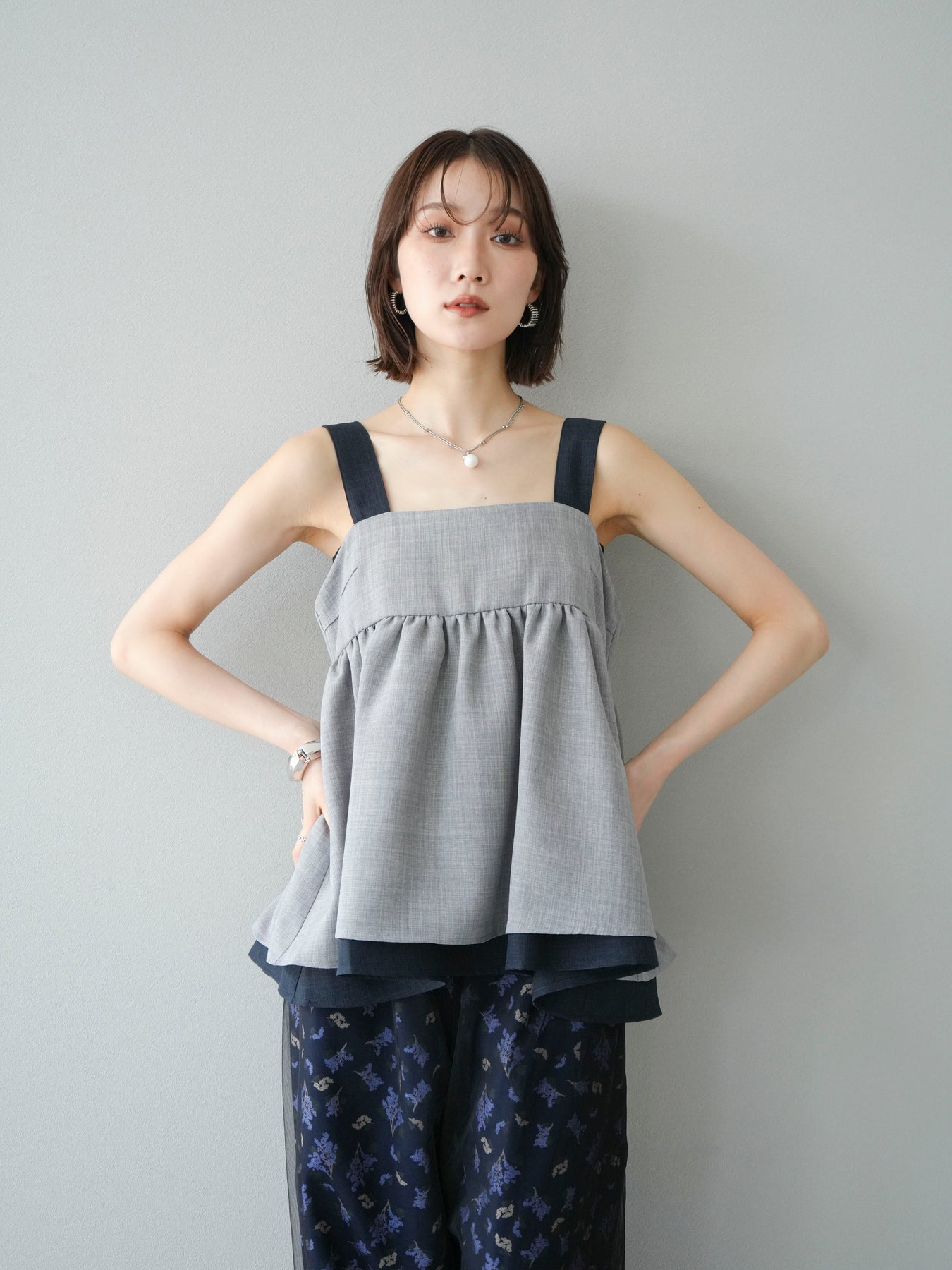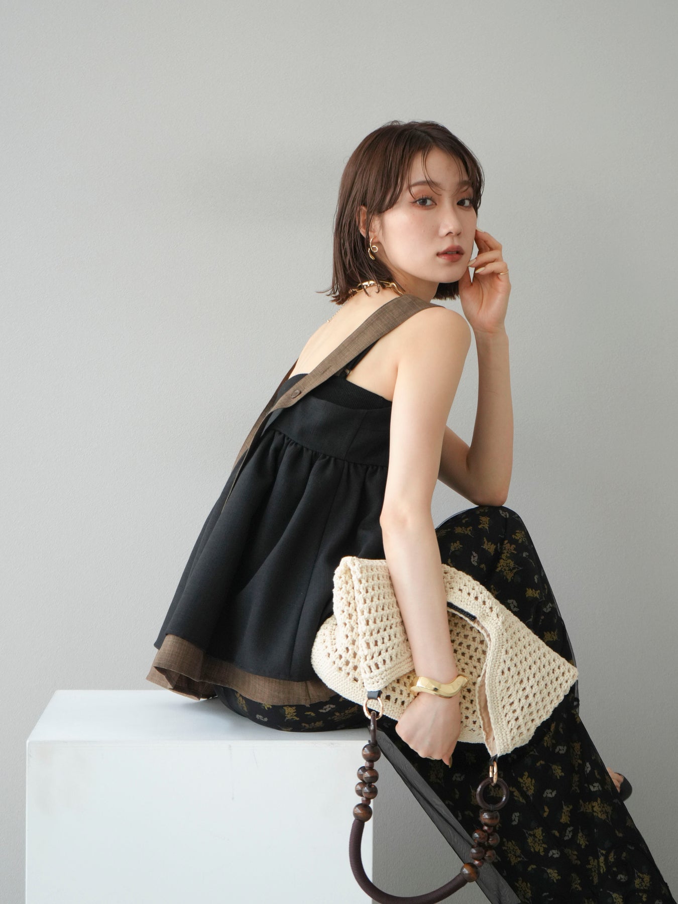 [SET]リネンライク配色フレアタンクトップ+ブーケプリントタックパンツ(2set)
