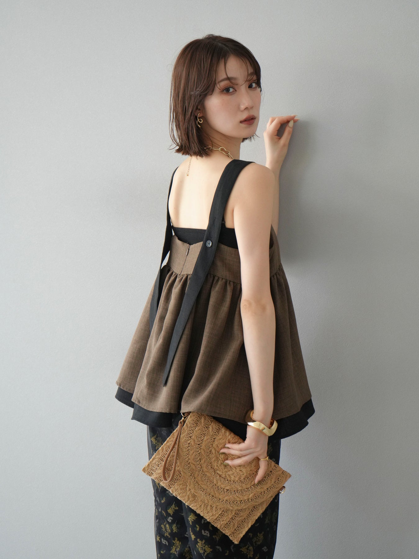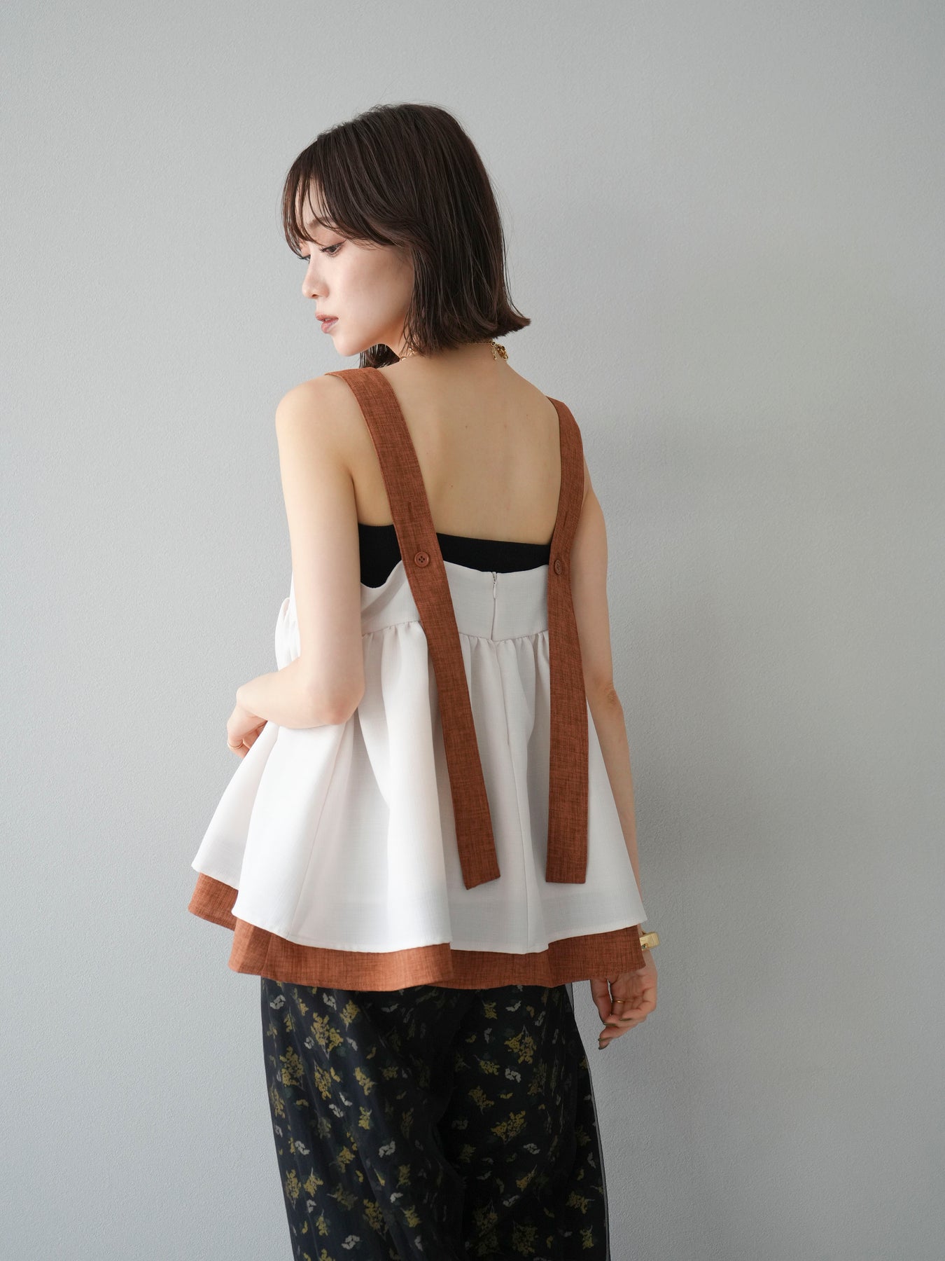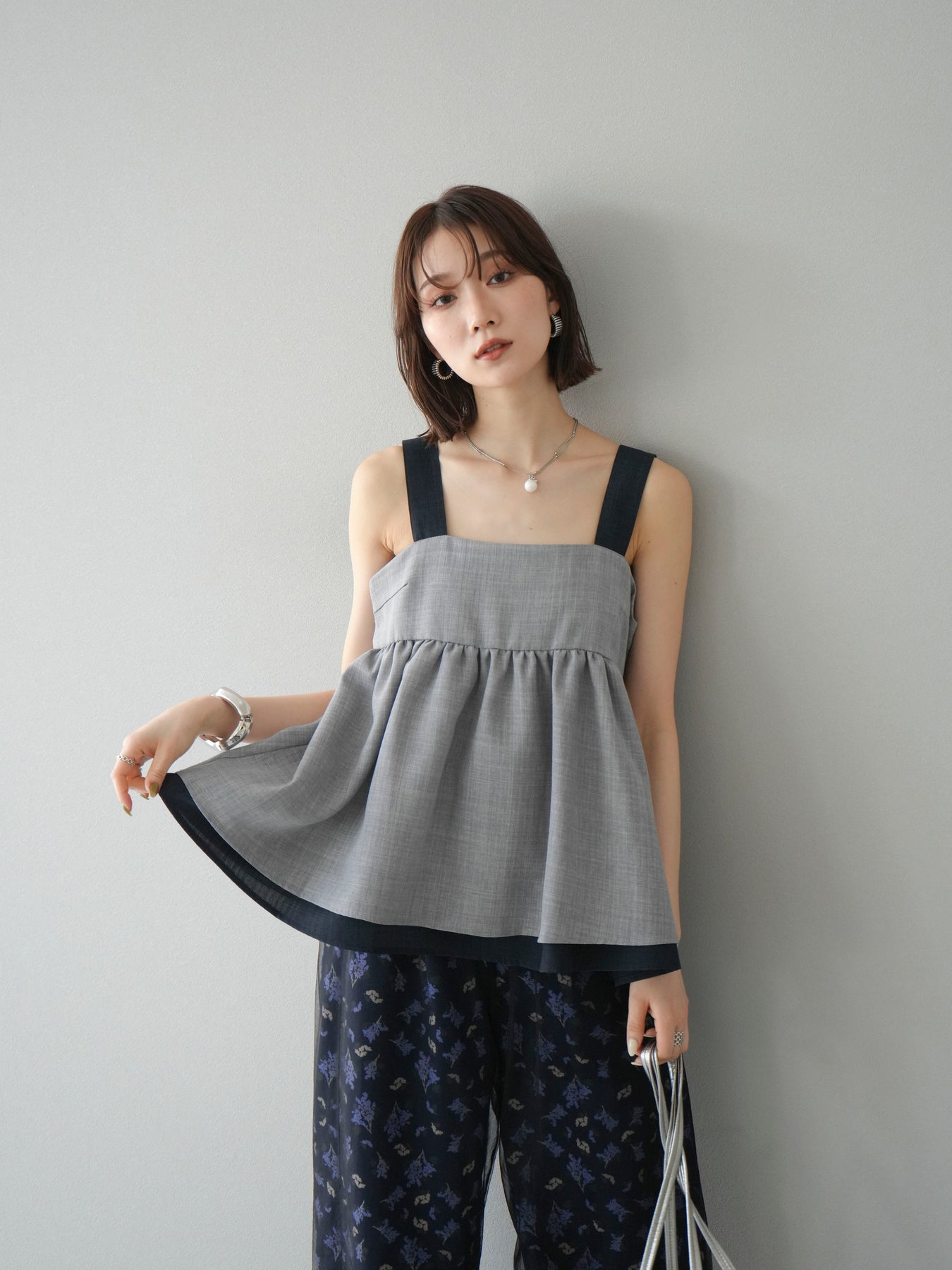 ナチュラルな風合いのリネンライク素材に、絶妙な配色デザインを効かせたフレアタンクトップ。 胸元からふんわり広がるシルエットが女性らしく、軽やかで涼しげな印象を演出します。 肩紐と裾にあしらわれた異素材のバイカラーデザインがアクセントとなり、シンプルながらもこなれ感のある仕上がりに。 ボディラインを拾わないAラインシルエットで、体型カバーにも◎。 パンツにもスカートにも合わせやすく、デイリー使いはもちろんリゾートシーンにもぴったり。 1枚で着映えする、夏のワードローブに加えたい主役トップスです。 ※こちらは予約商品です。発送予定日については商品ページをご確認ください。