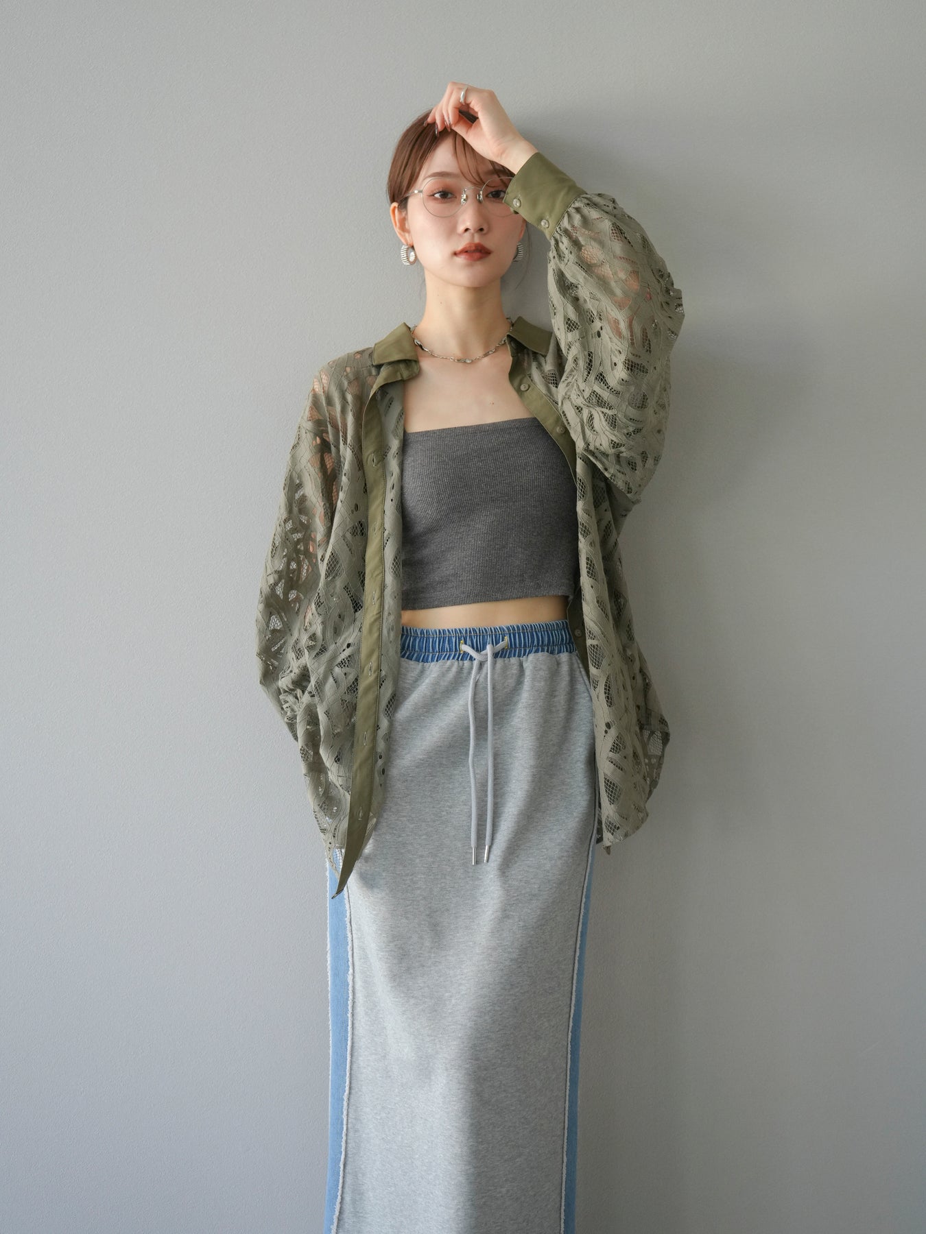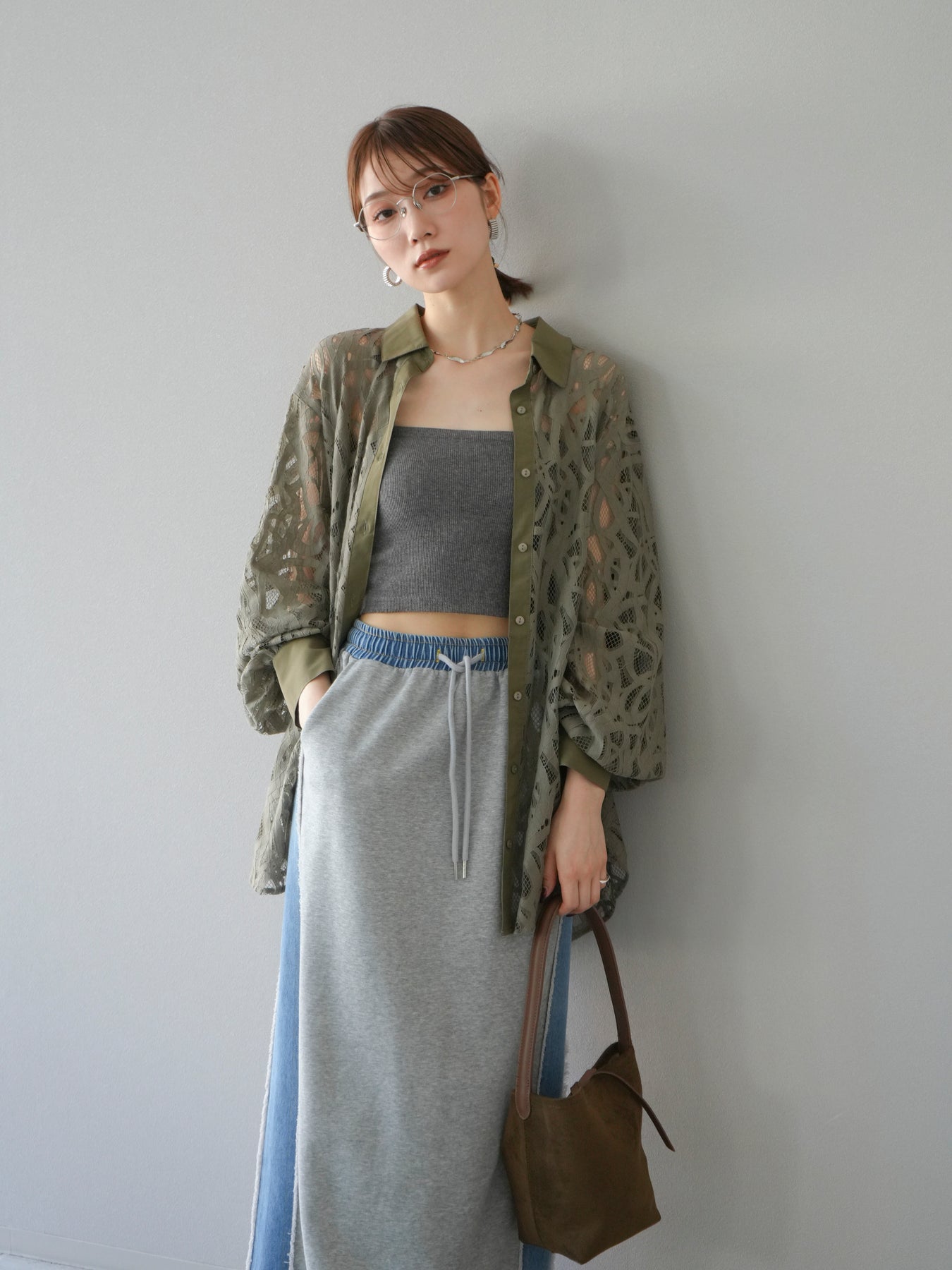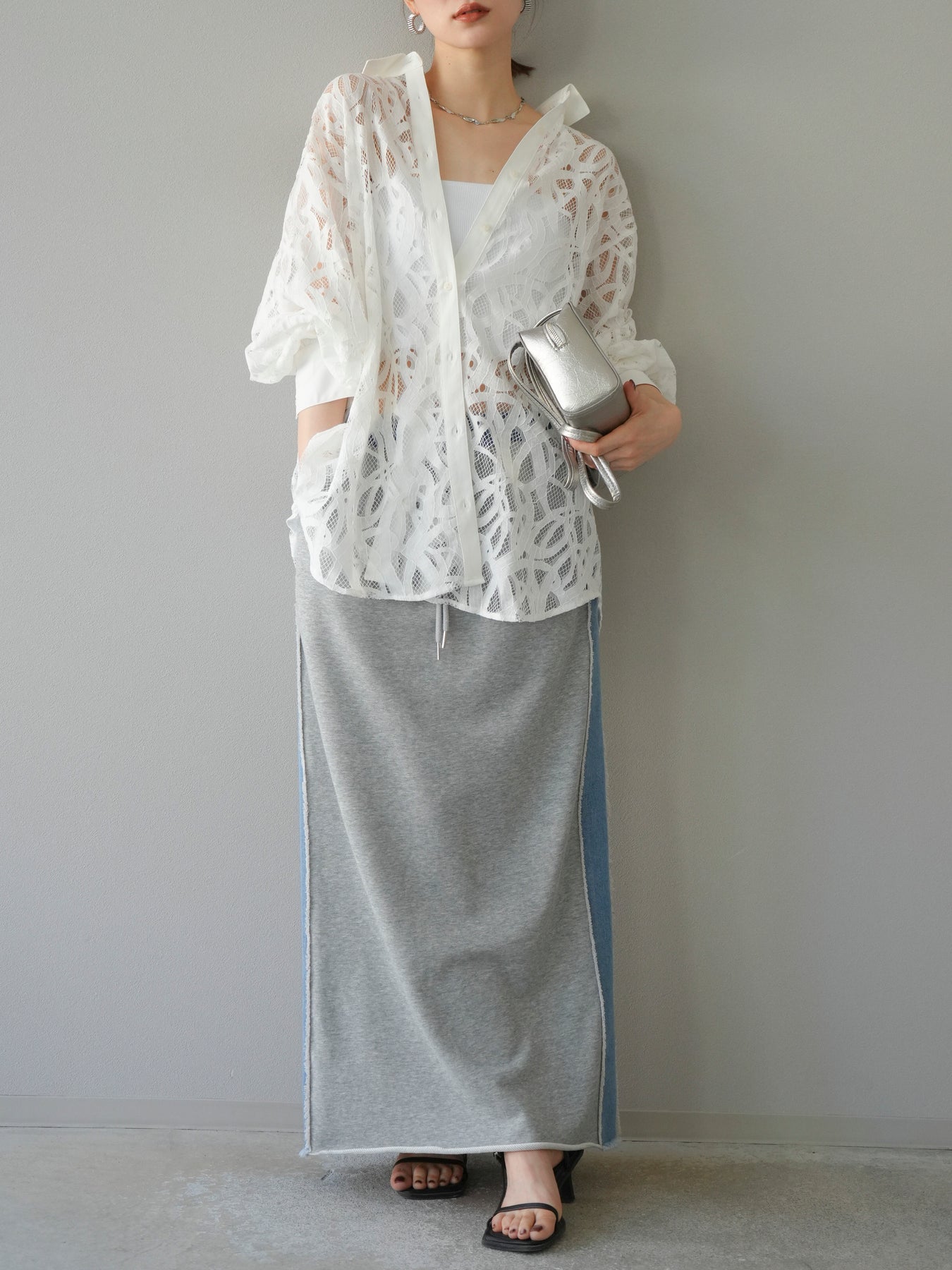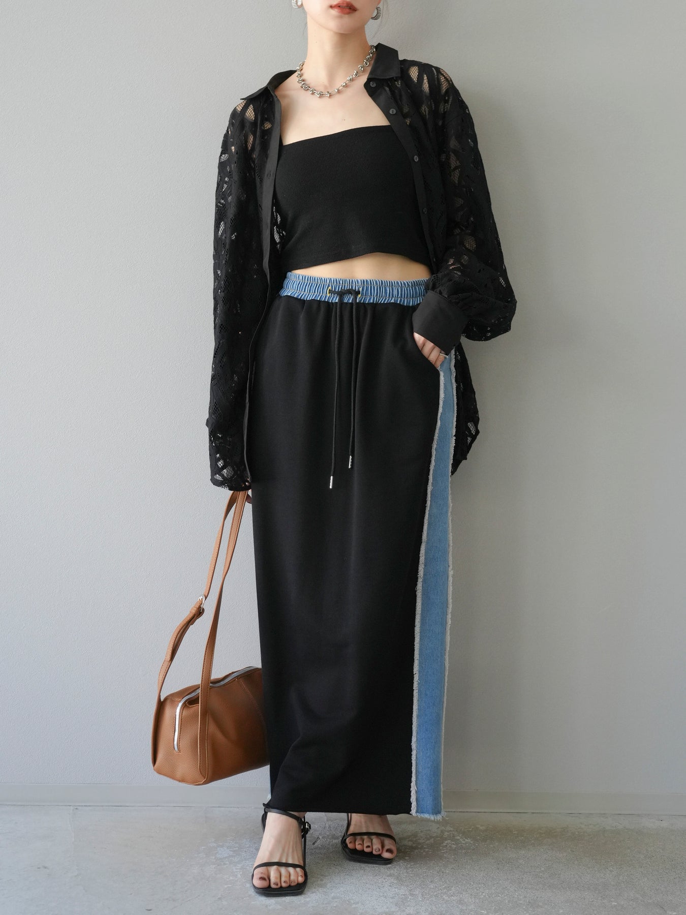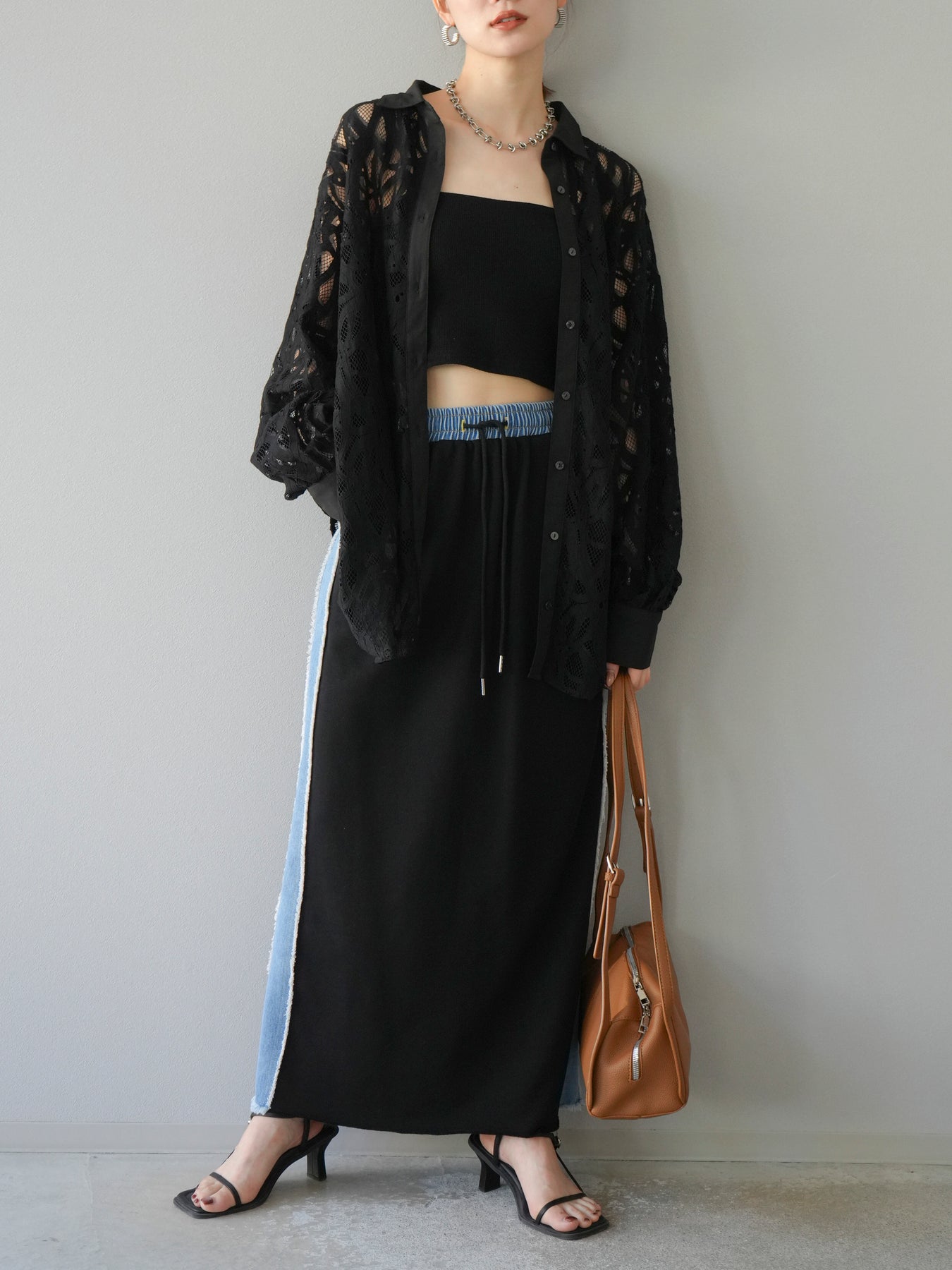 [SET]コードレースオーバーシャツ+デニムドッキングスウェットスカート(2set)