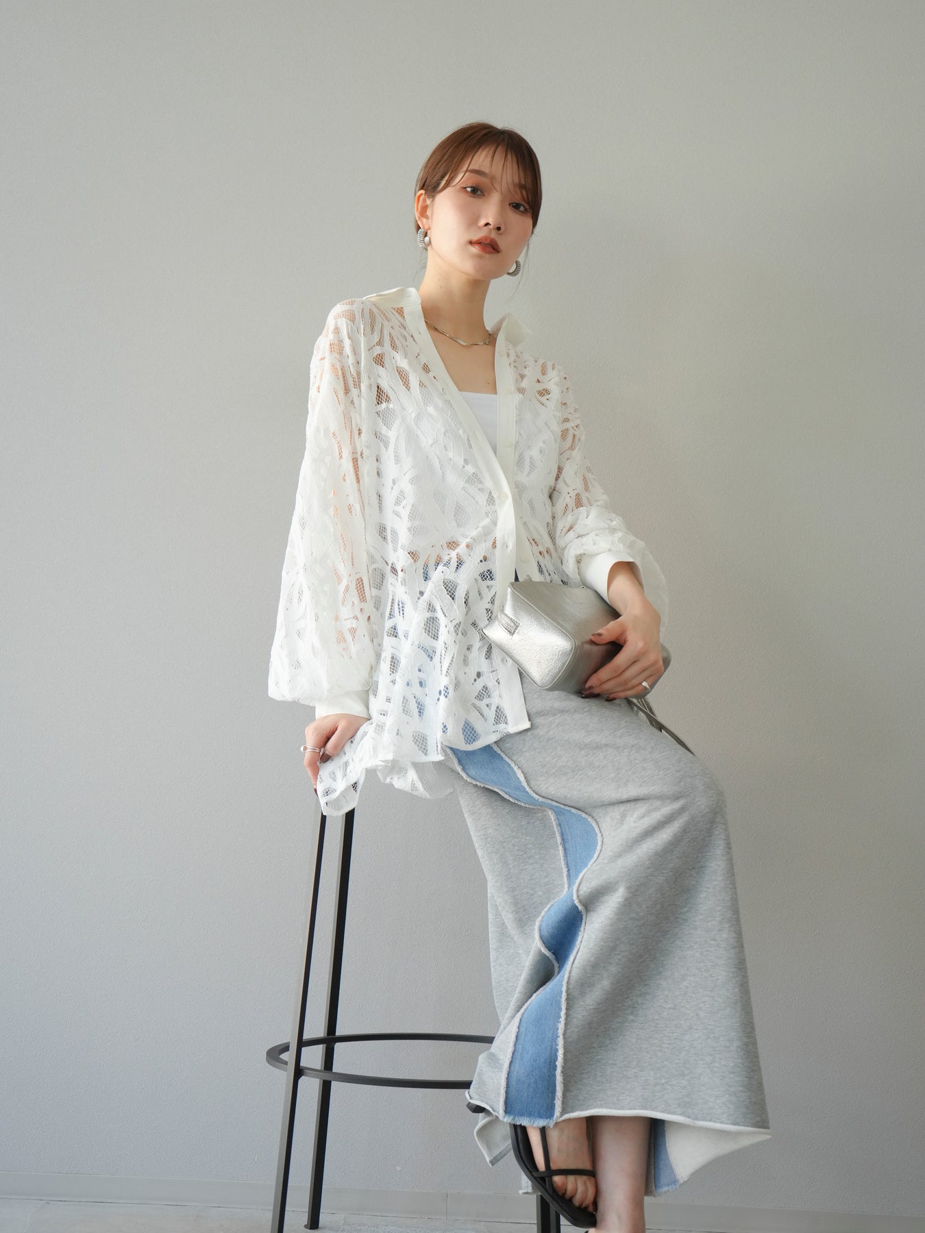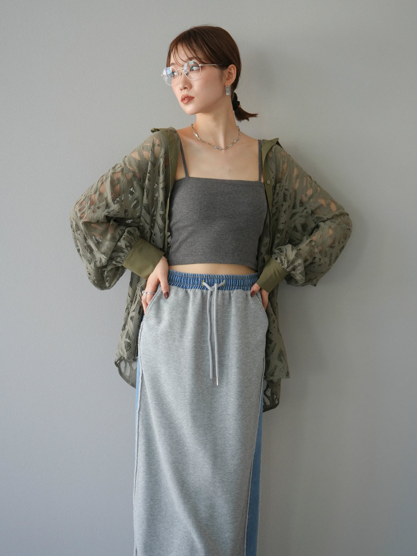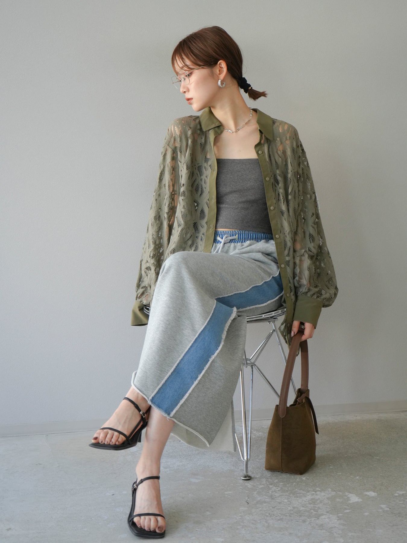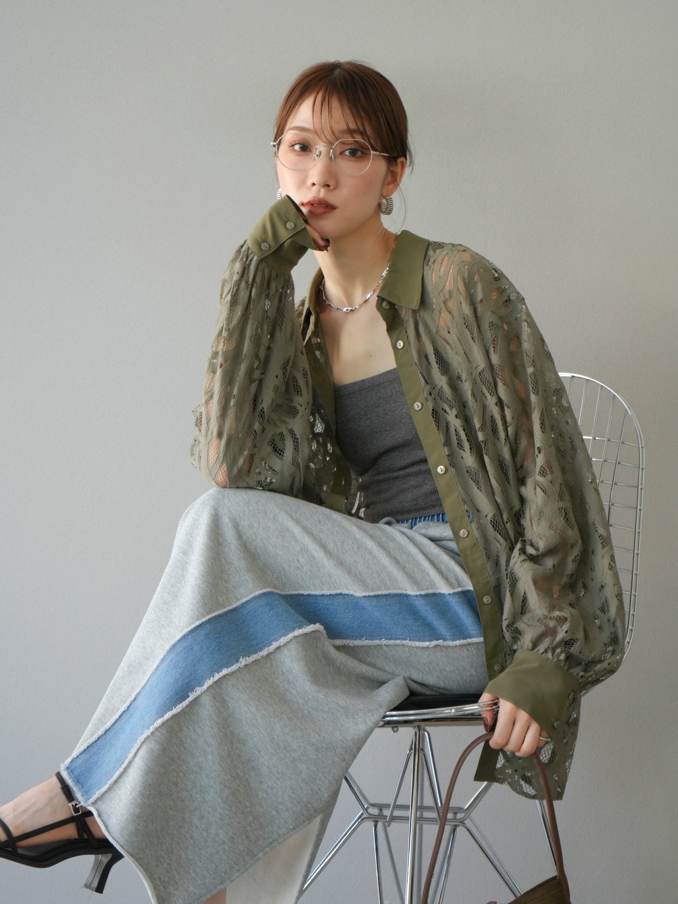 [SET]コードレースオーバーシャツ+デニムドッキングスウェットスカート(2set)