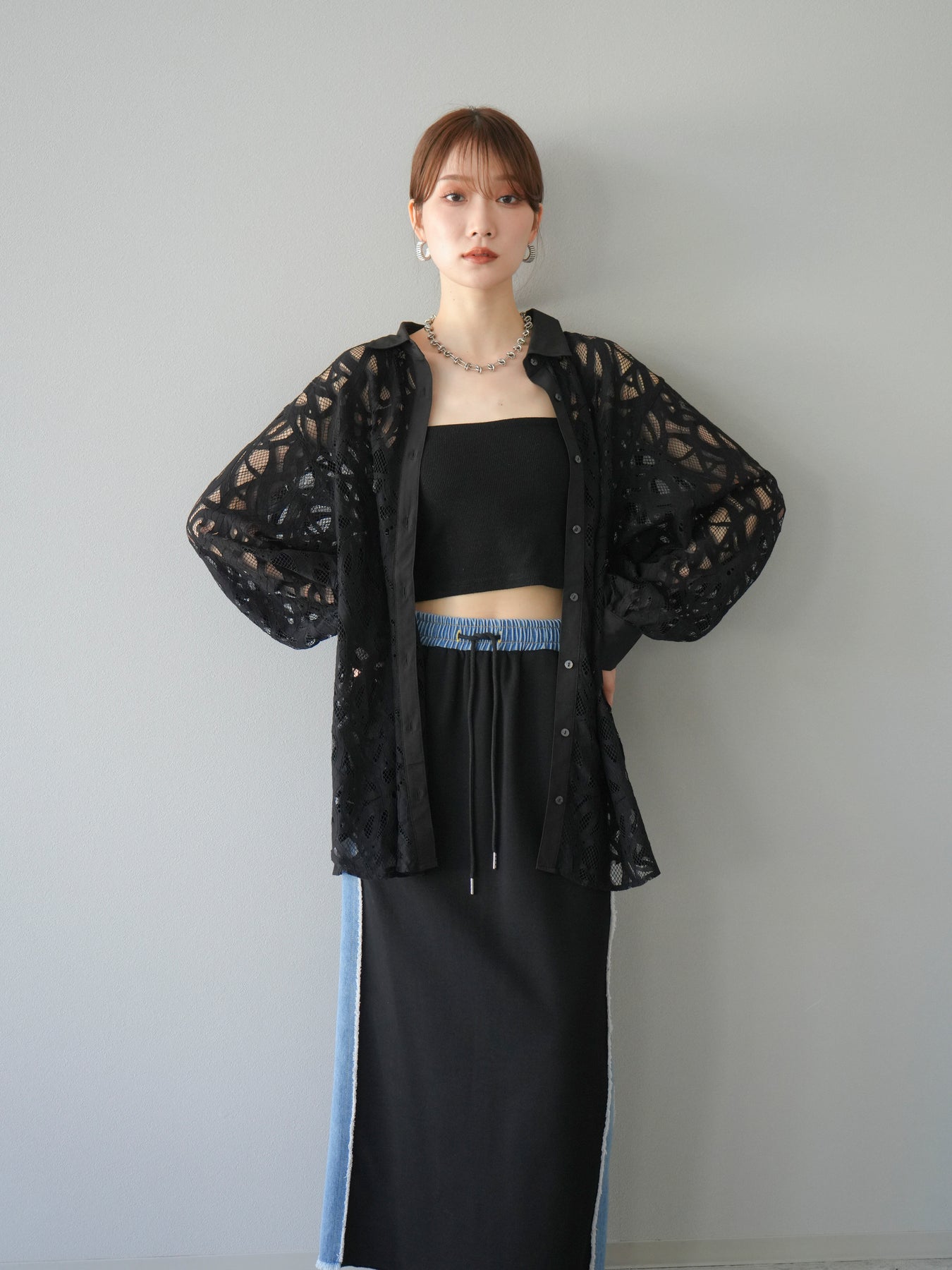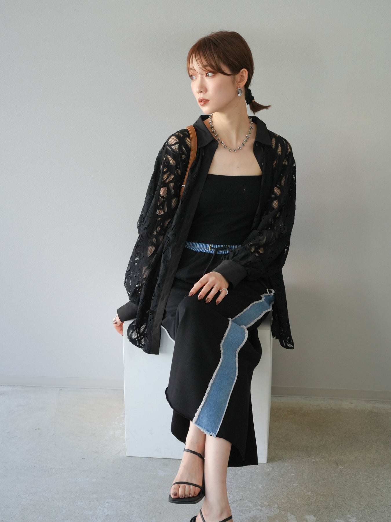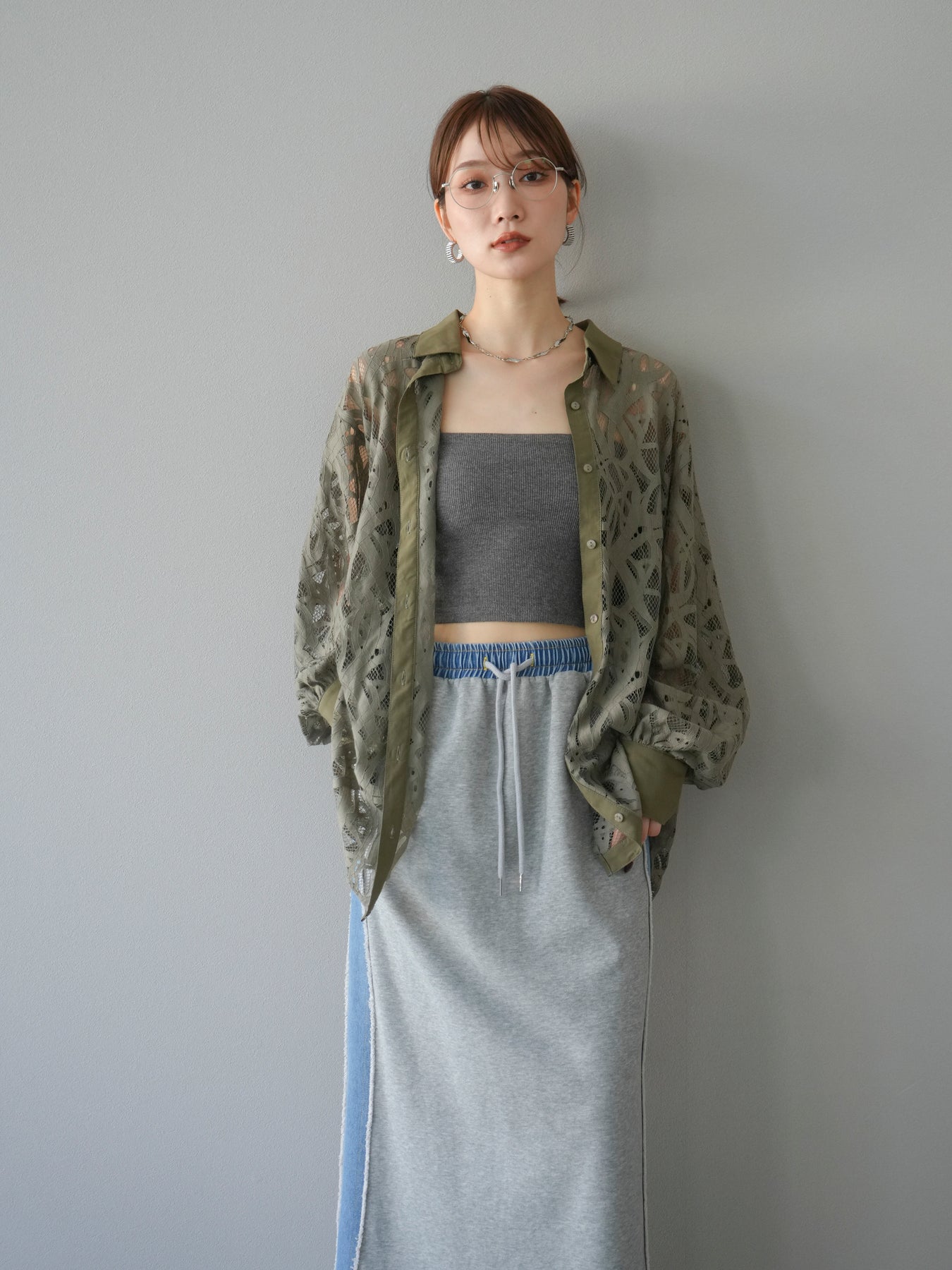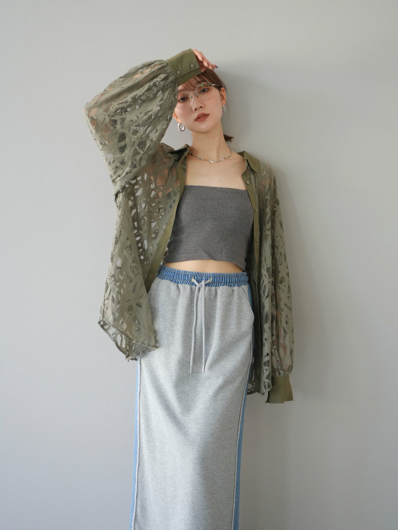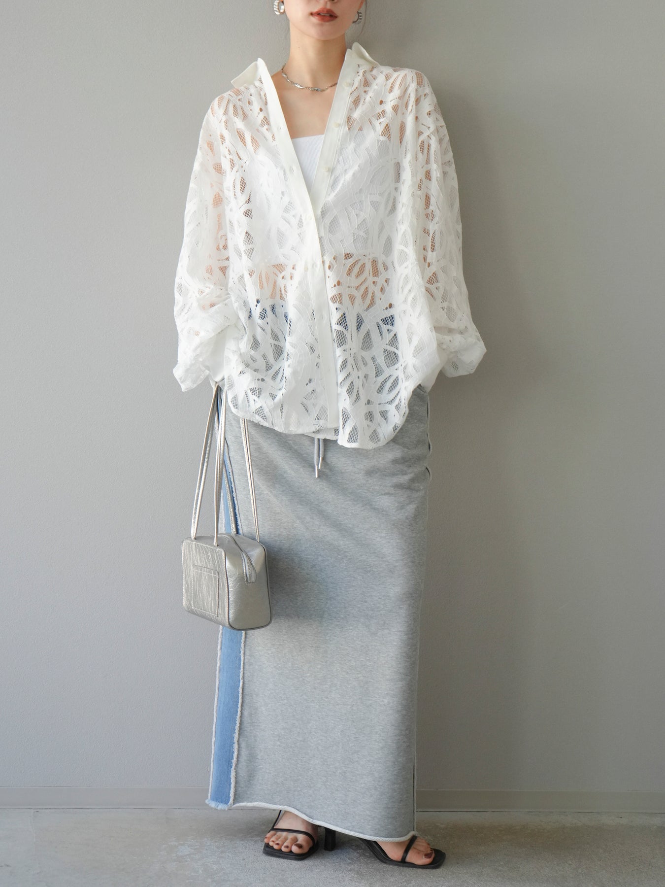 [SET]コードレースオーバーシャツ+デニムドッキングスウェットスカート(2set)