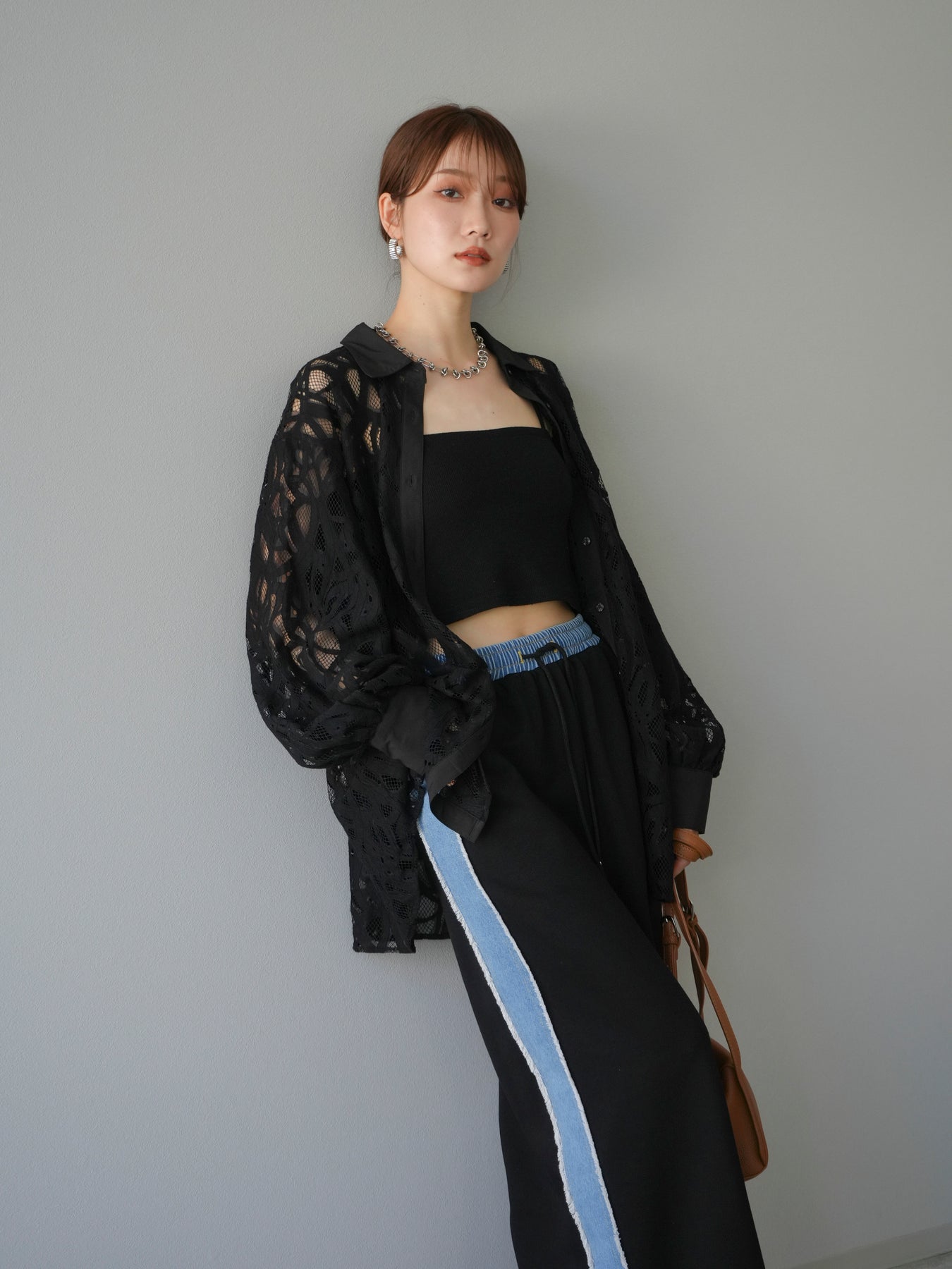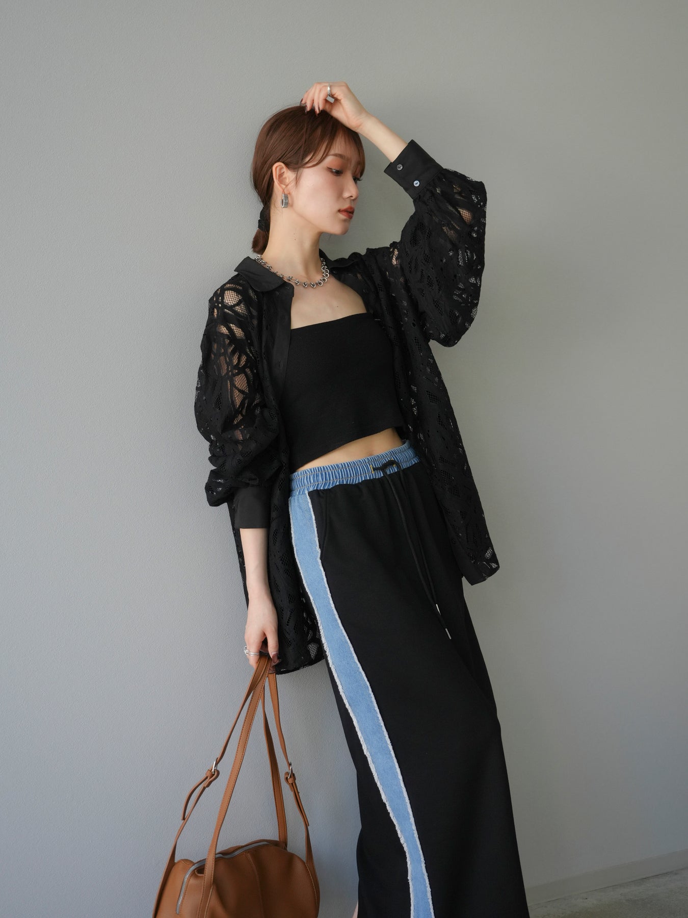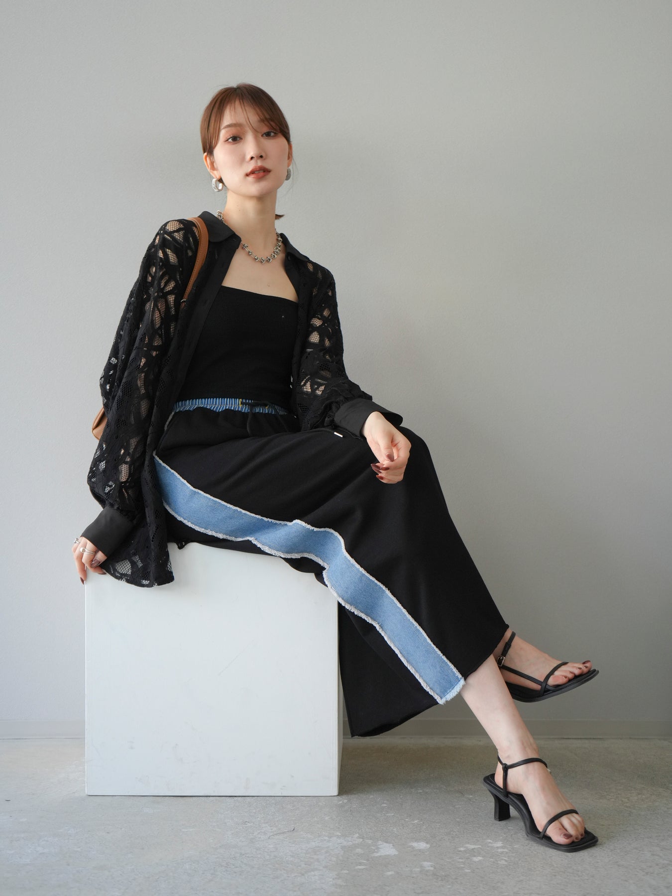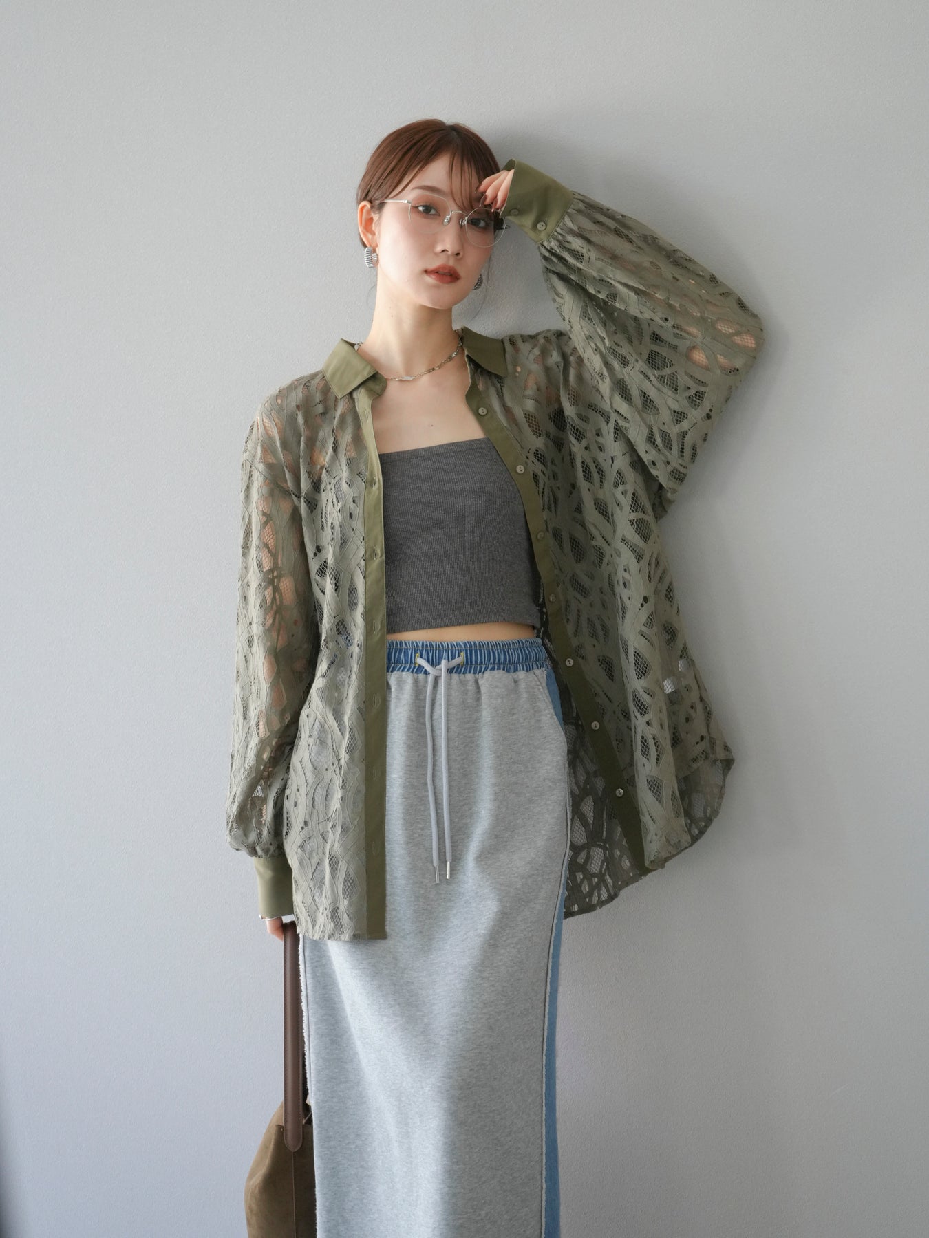 [SET]コードレースオーバーシャツ+デニムドッキングスウェットスカート(2set)