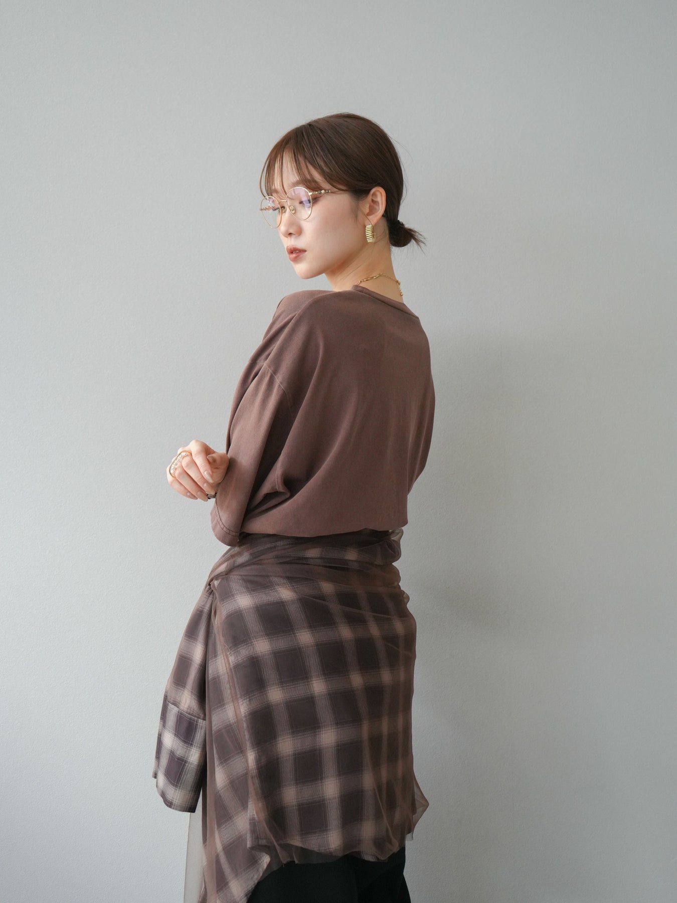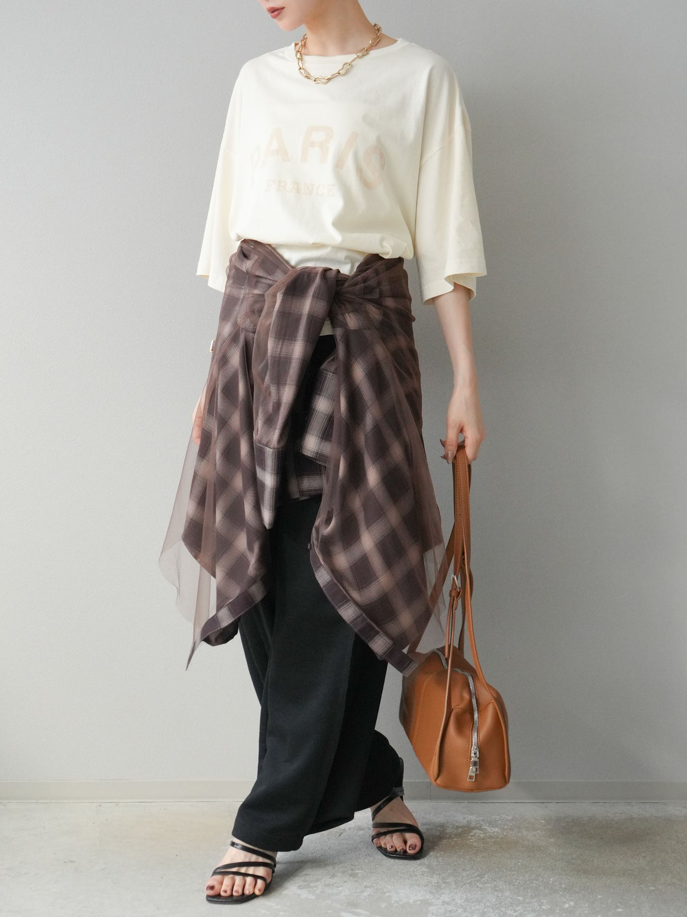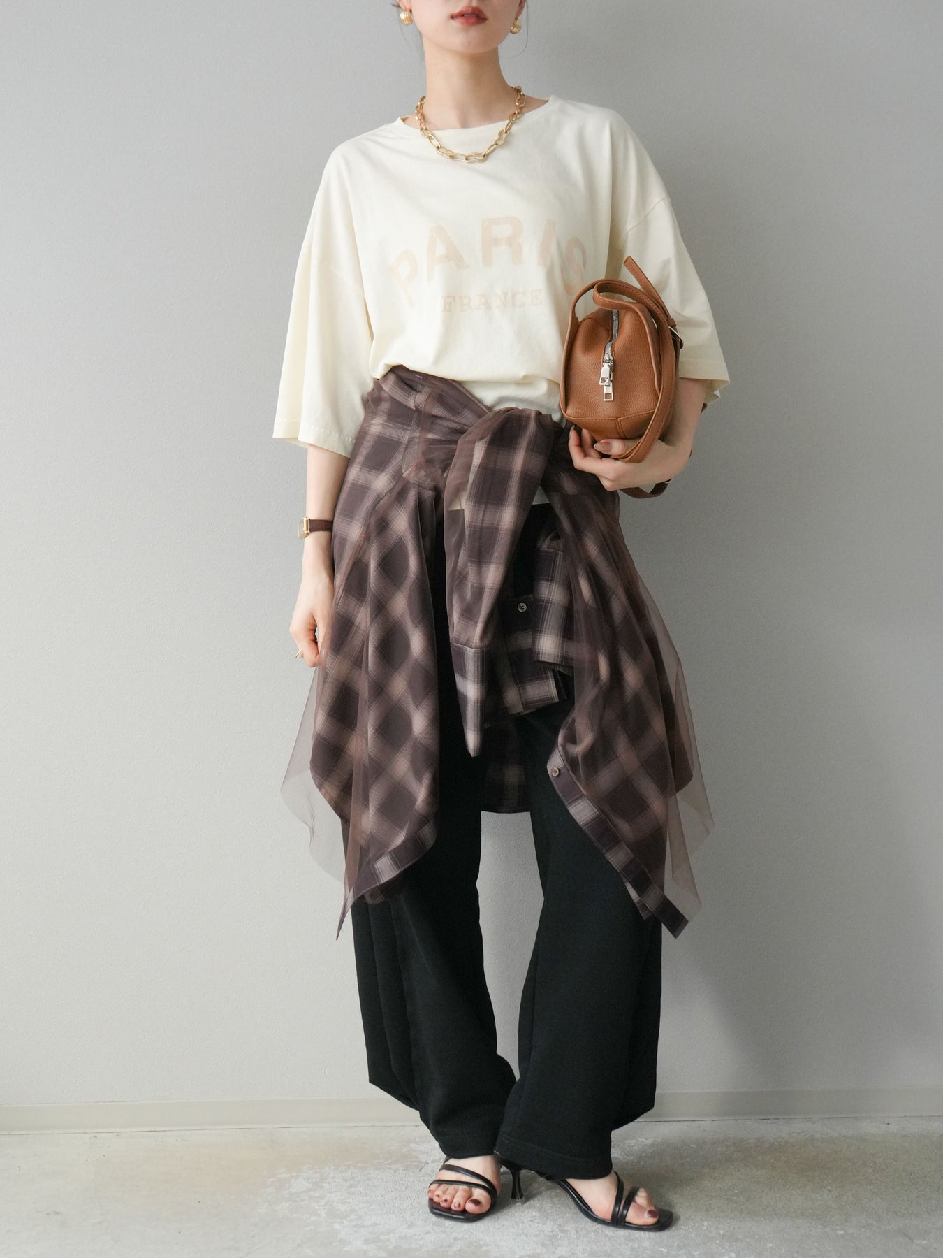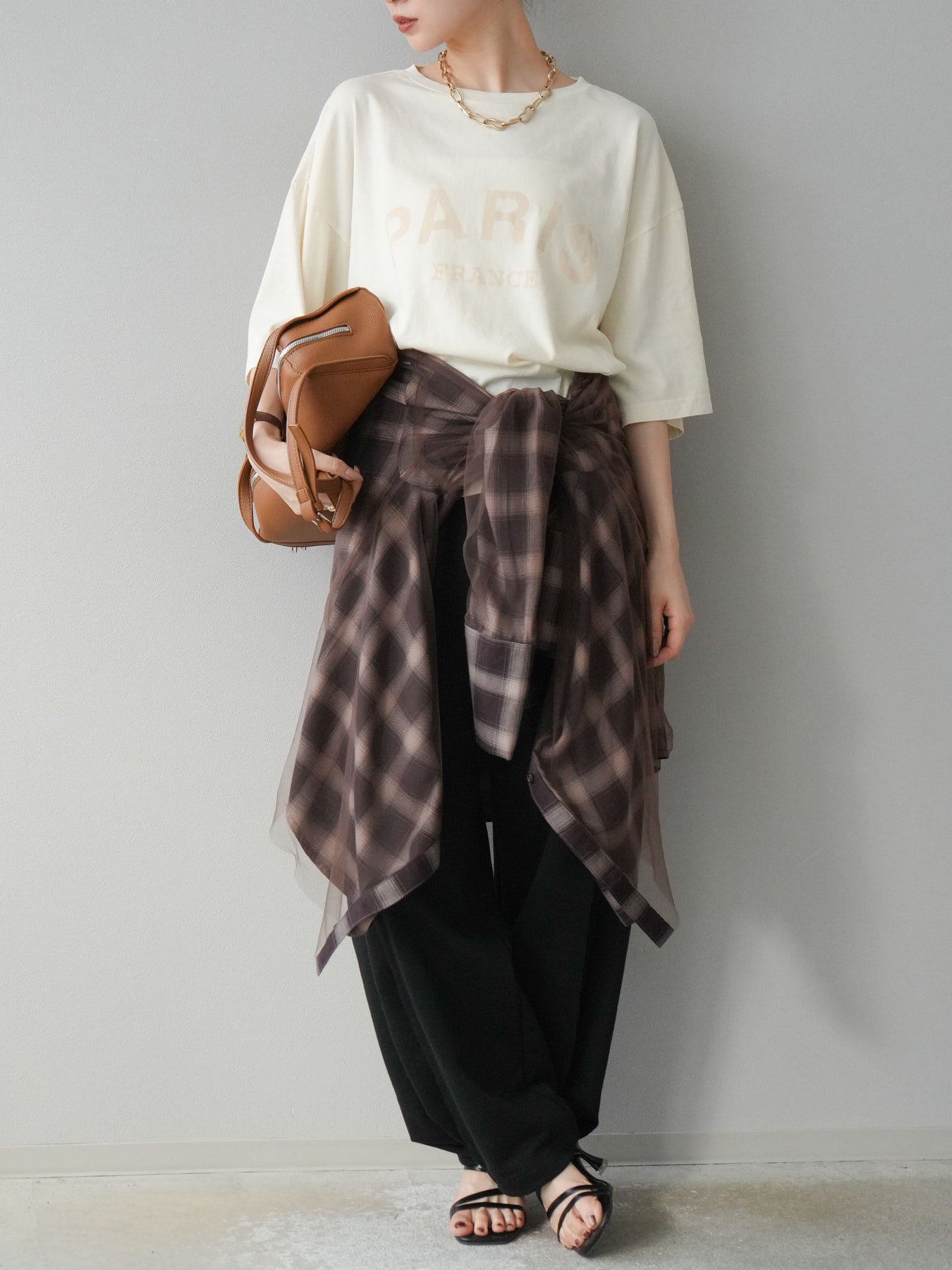 軽やかなチュールをドッキングしたチェック柄のオーバーサイズシャツ。透け感のある生地が抜け感を演出し、ゆったりとしたシルエットでリラックス感もプラス。ボタンを開けて羽織りとしても、閉じてトップス風にも着こなせる万能アイテムです。 ※ボトムス、キャミソール(インナー)以外の商品は一律でインナーは付属していません