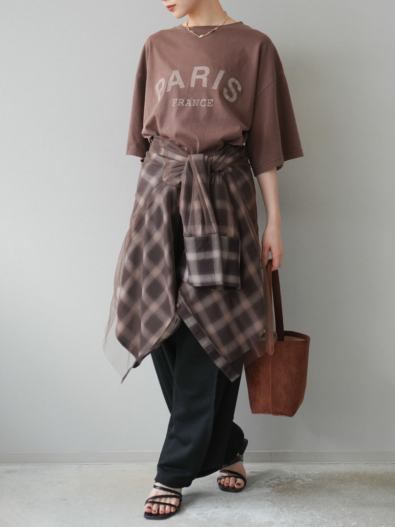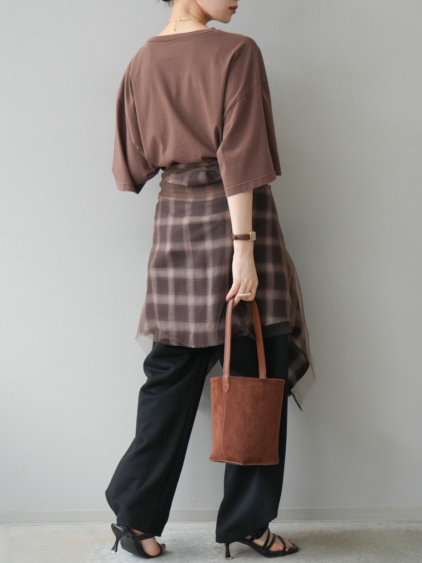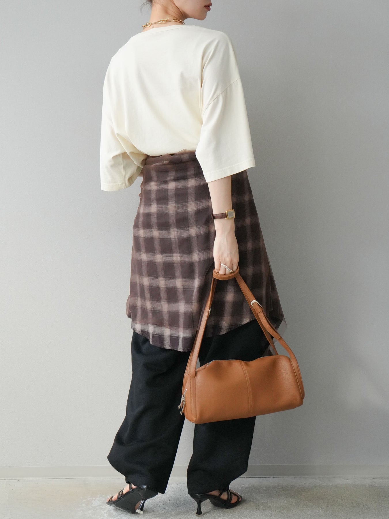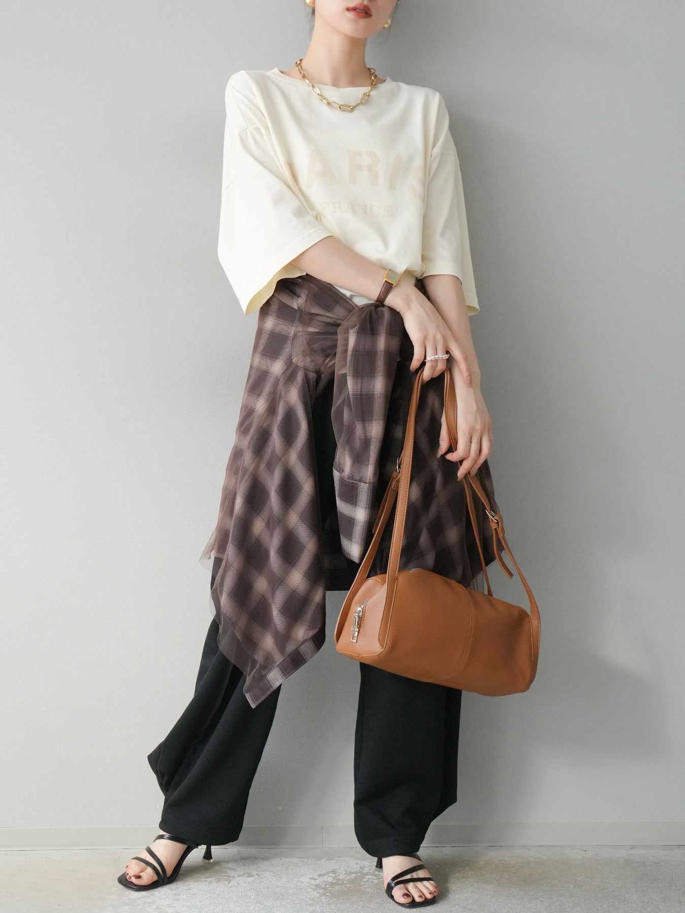 軽やかなチュールをドッキングしたチェック柄のオーバーサイズシャツ。透け感のある生地が抜け感を演出し、ゆったりとしたシルエットでリラックス感もプラス。ボタンを開けて羽織りとしても、閉じてトップス風にも着こなせる万能アイテムです。 ※ボトムス、キャミソール(インナー)以外の商品は一律でインナーは付属していません