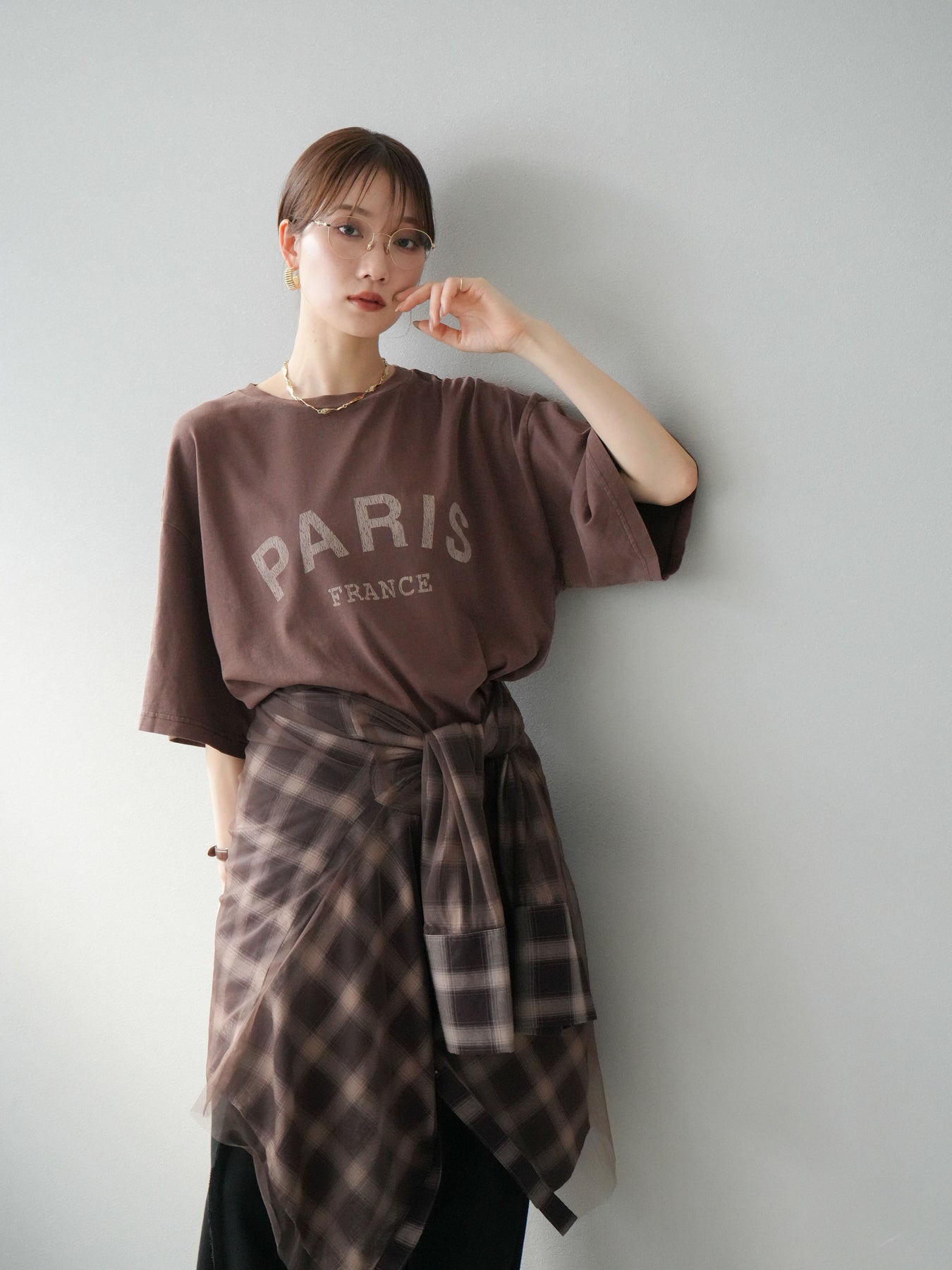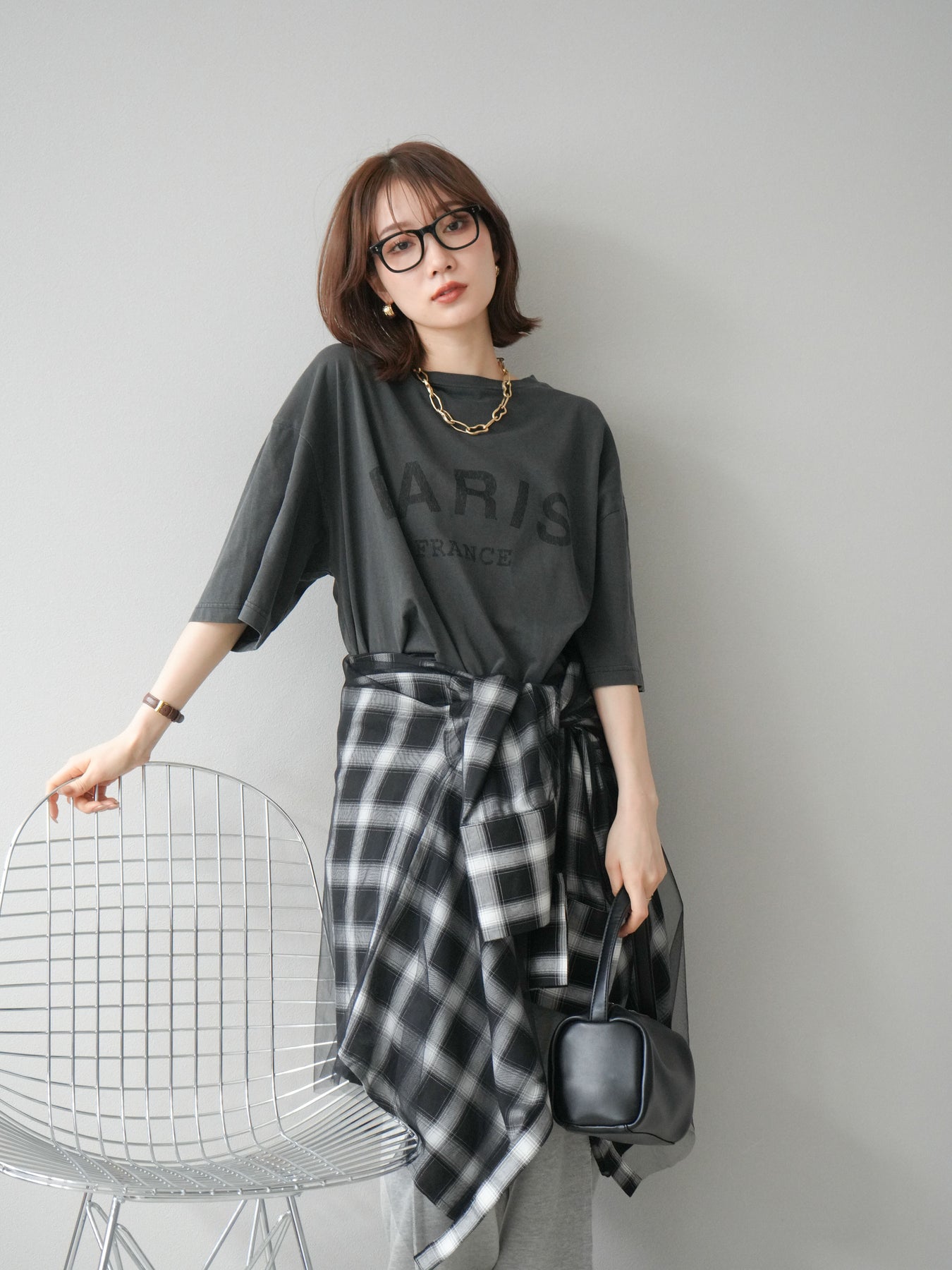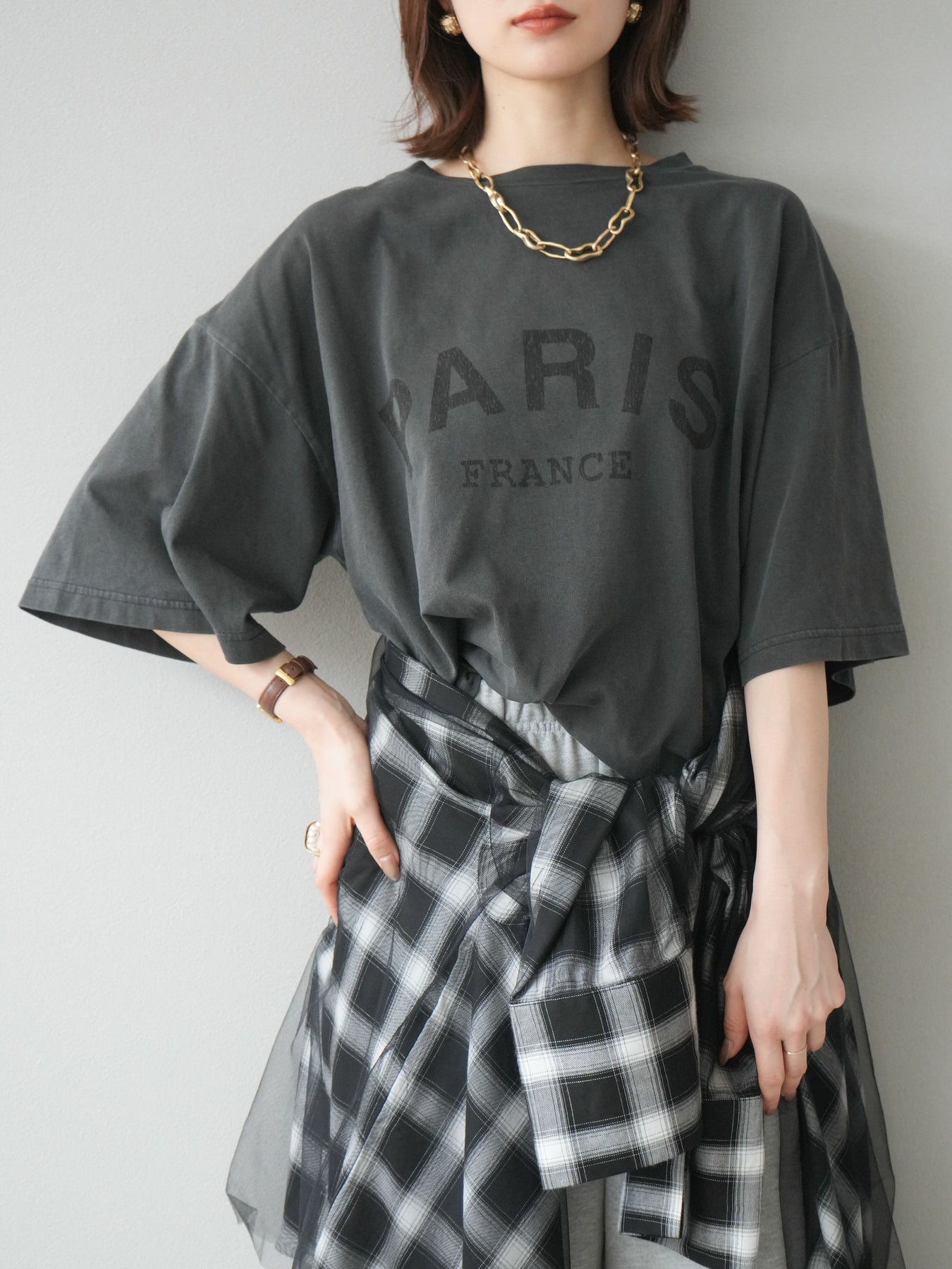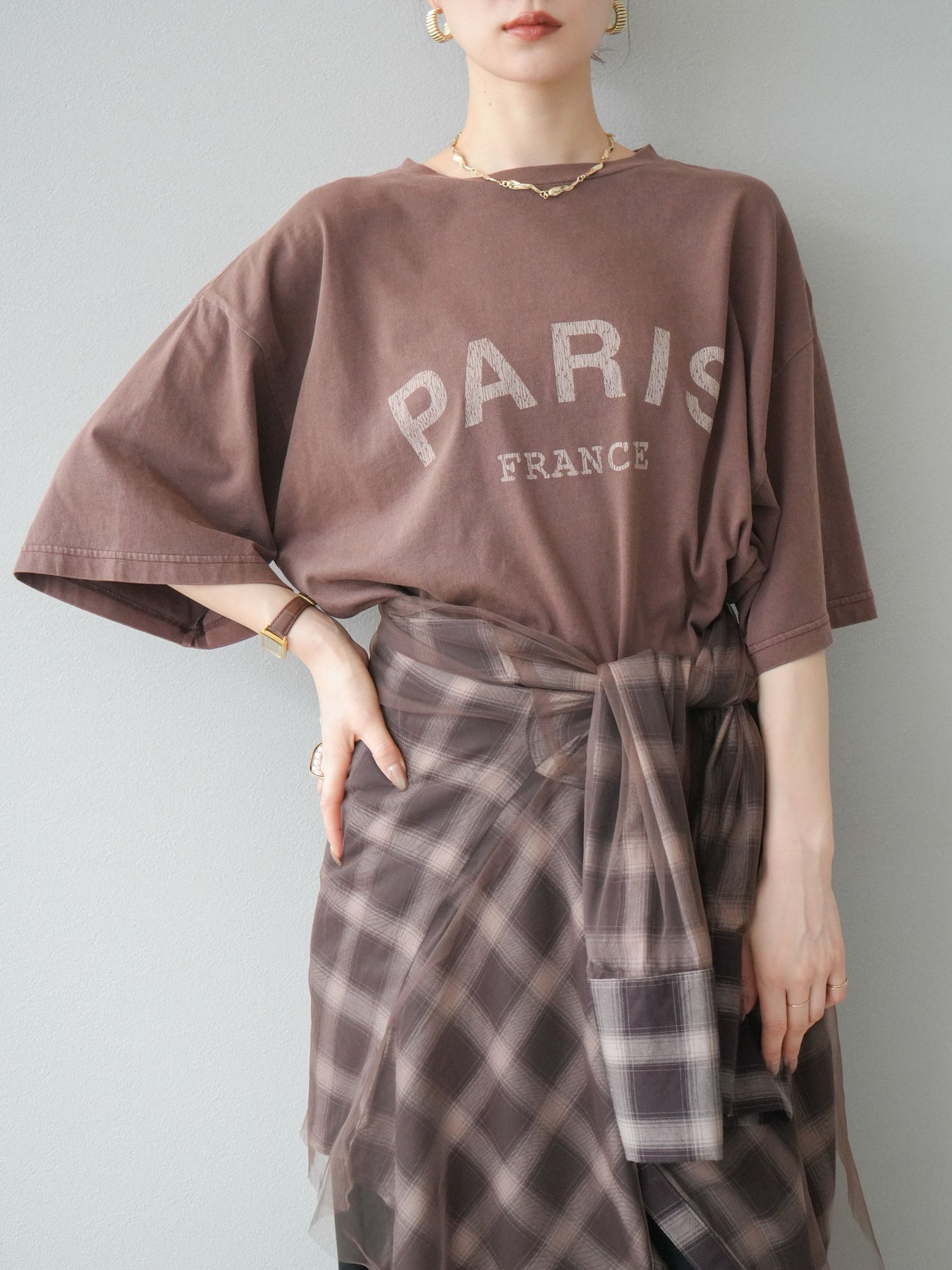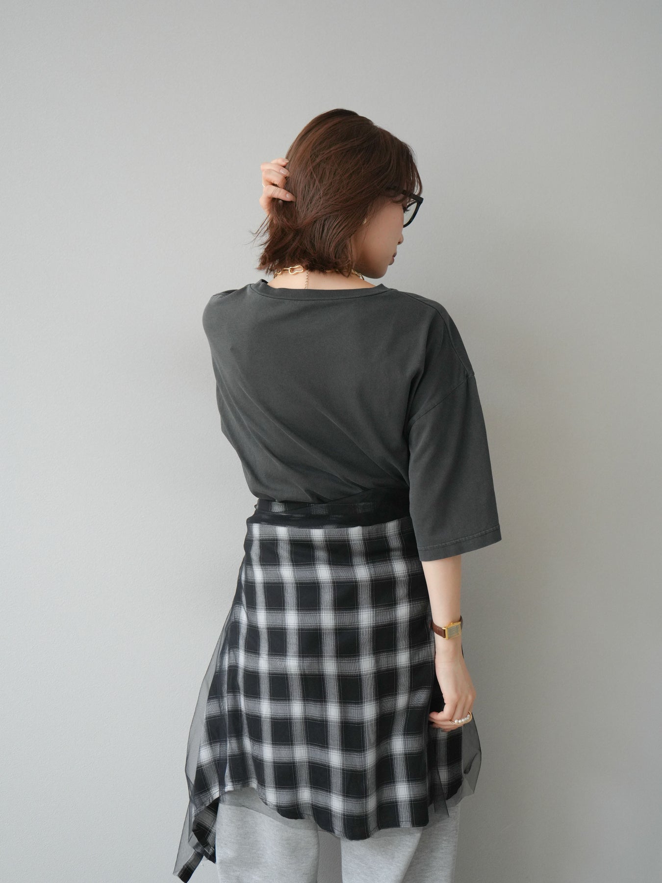 [予約]チュールドッキングチェック柄オーバーサイズシャツ