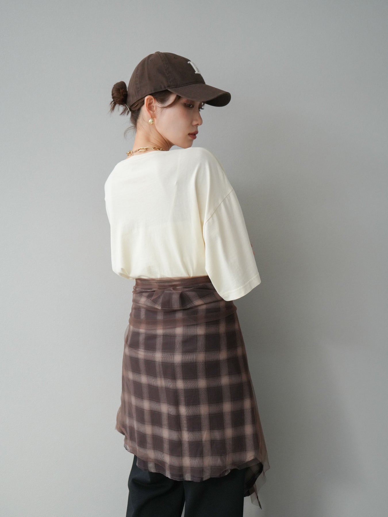 ◆ [予約]チュールドッキングチェック柄オーバーサイズシャツ