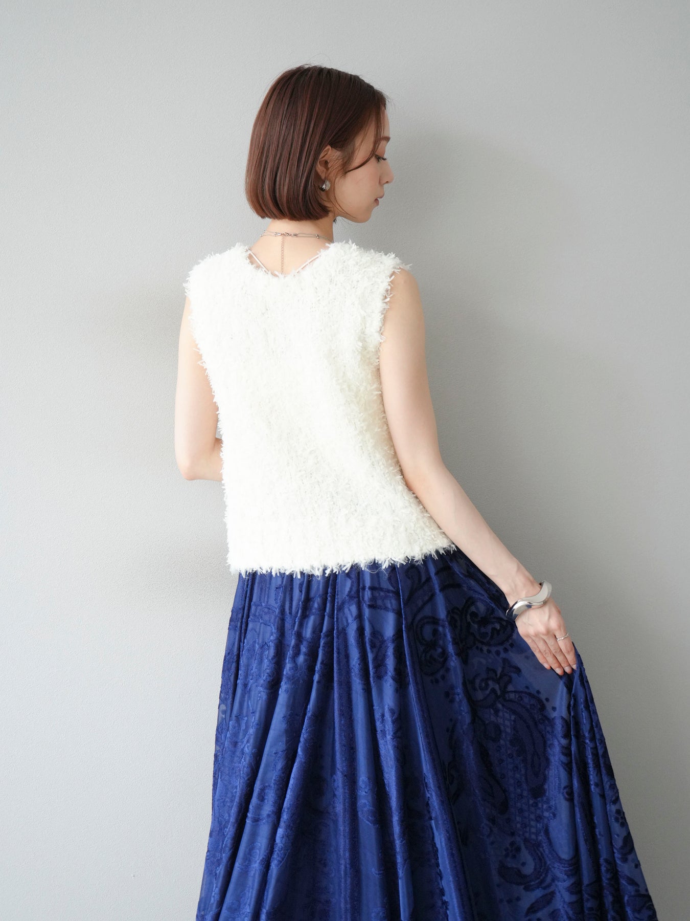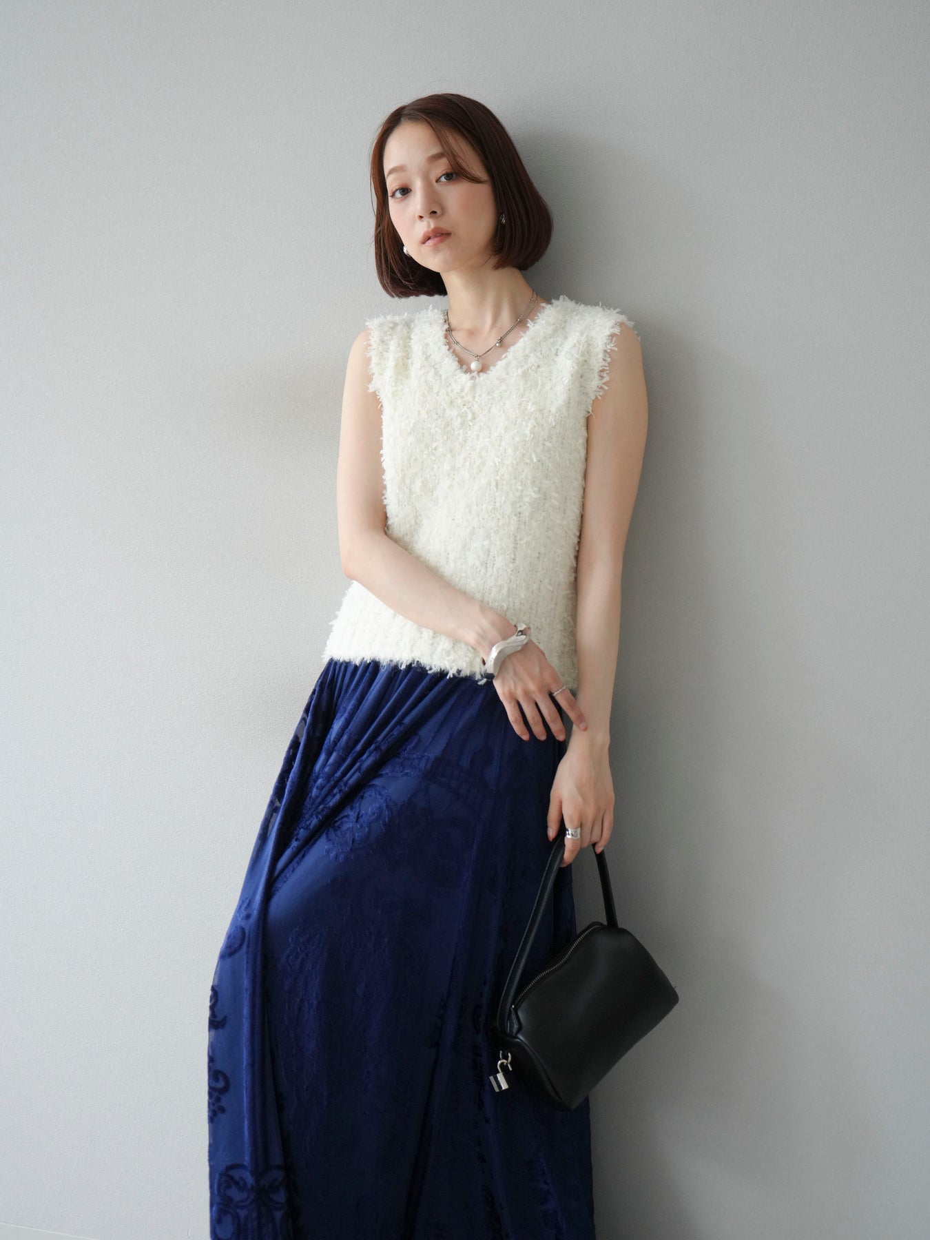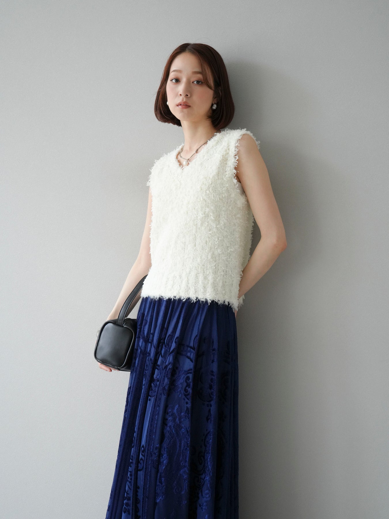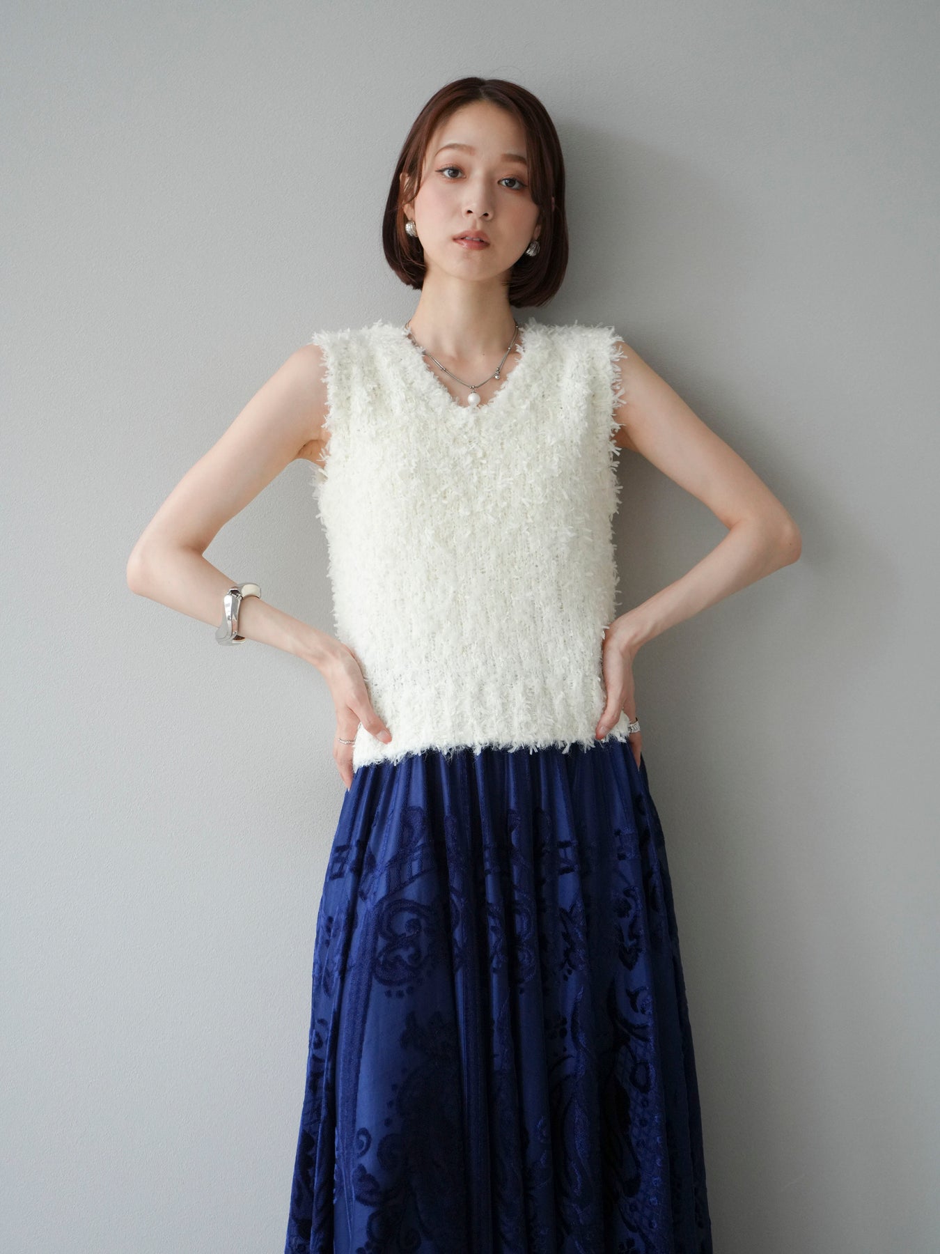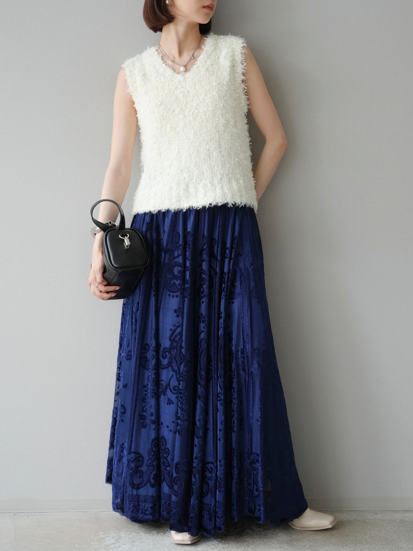 [SET]テープヤーンフリンジニットベスト+アンティーク柄フロッキーマキシスカート(2set)