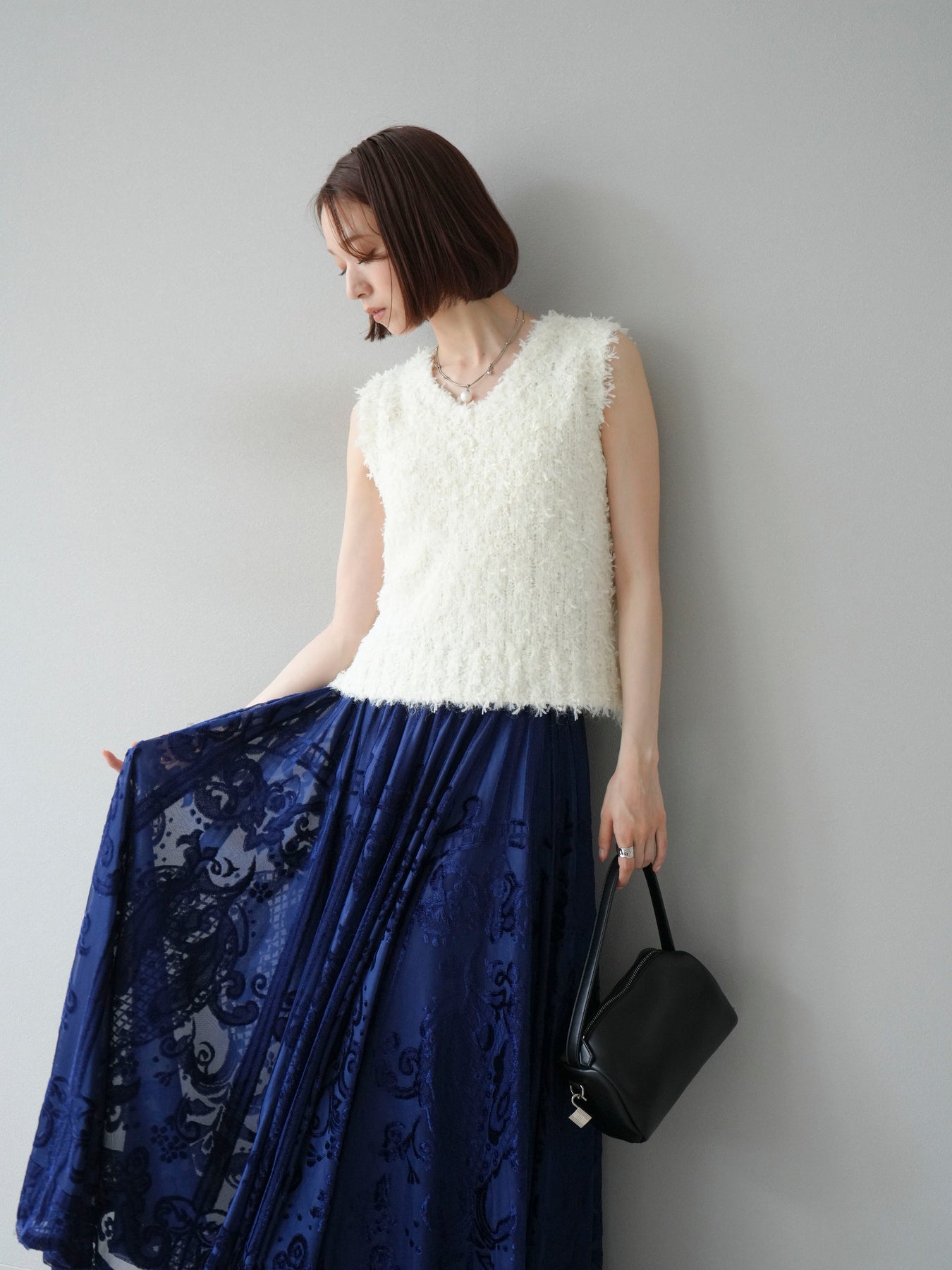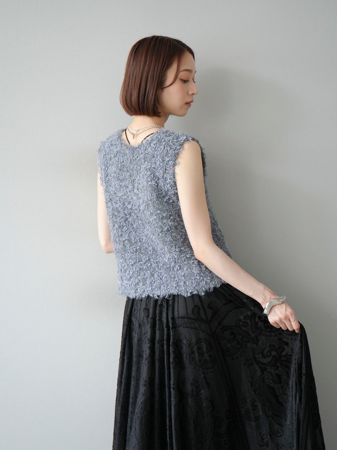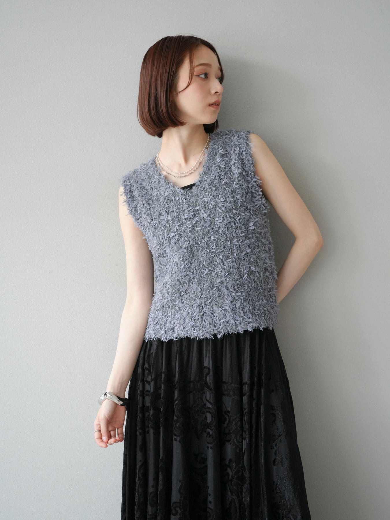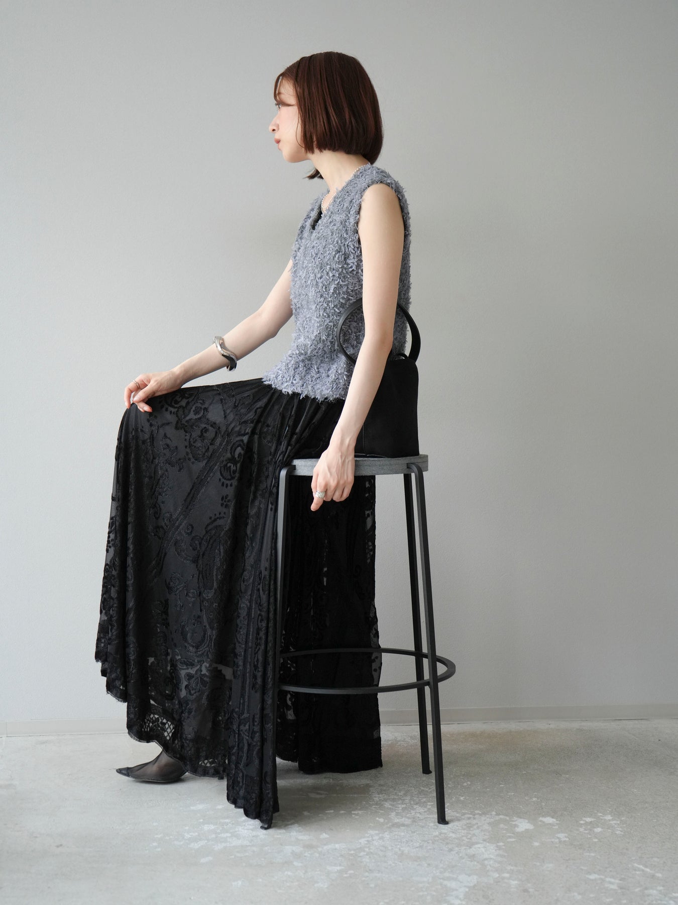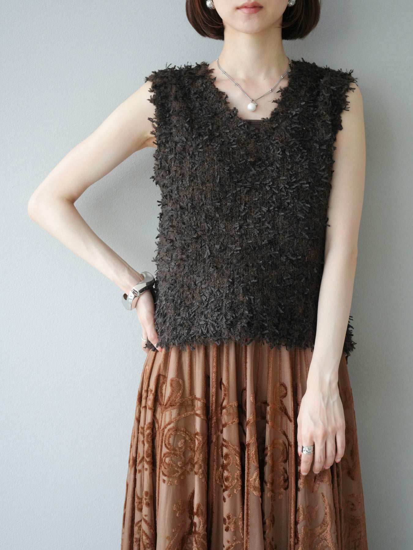 [SET]テープヤーンフリンジニットベスト+アンティーク柄フロッキーマキシスカート(2set)