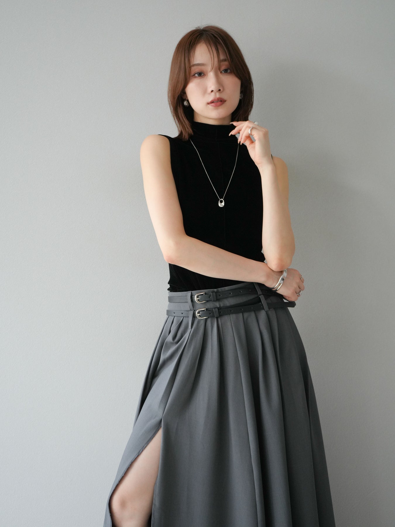 [SET]シアーベロアプチネックノースリーブトップス+選べるアクセセット(2set)
