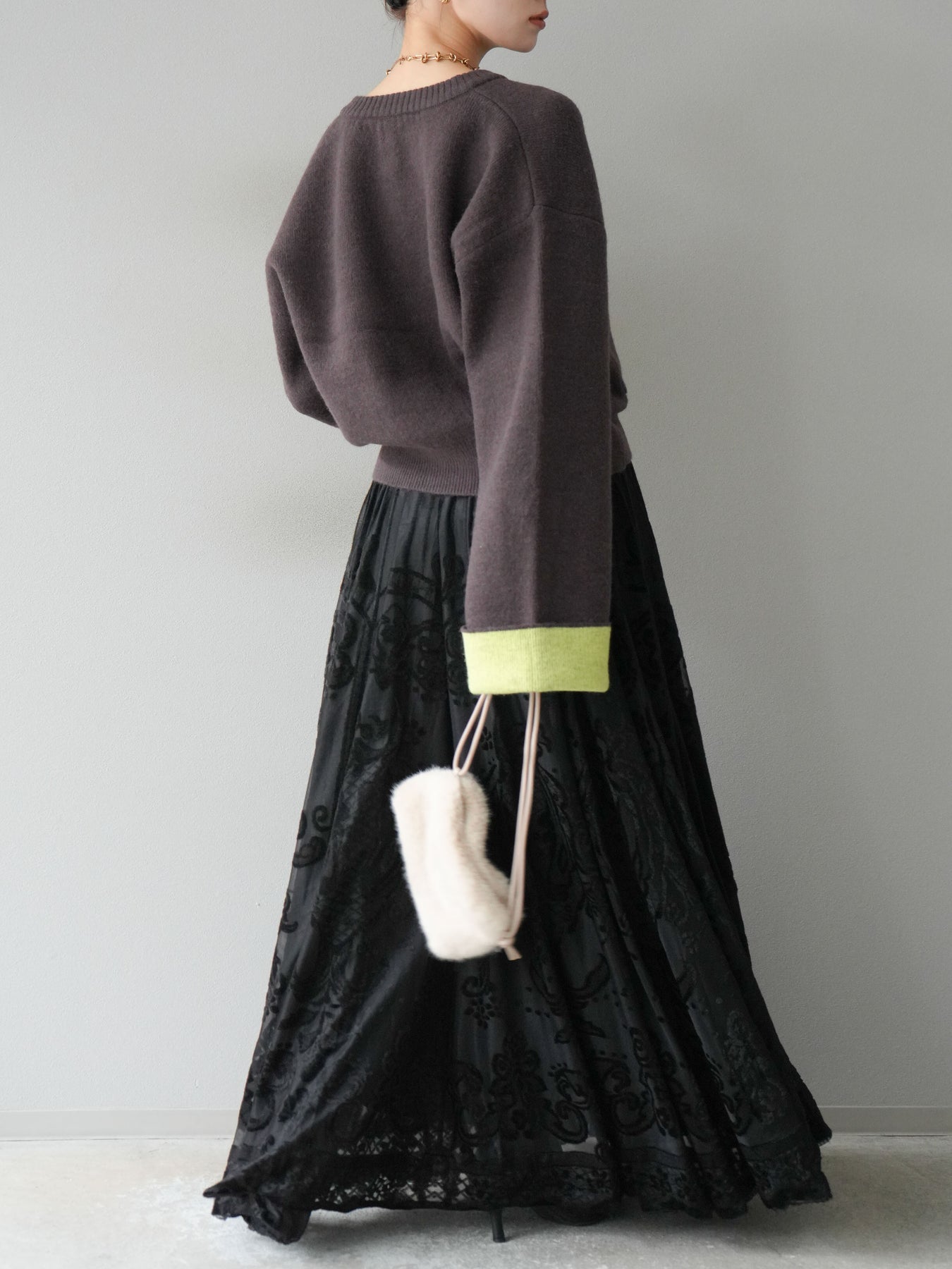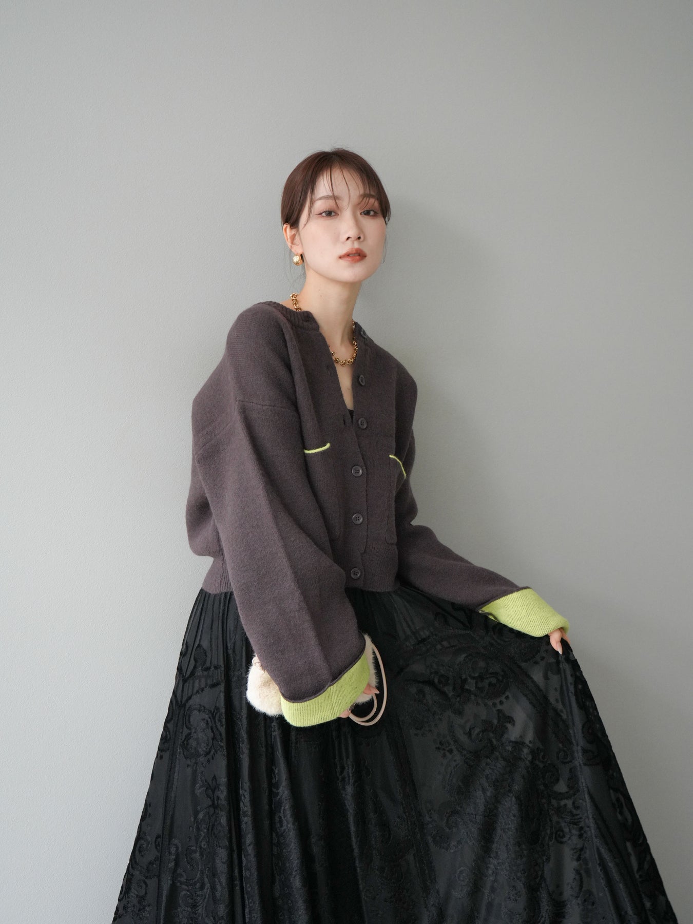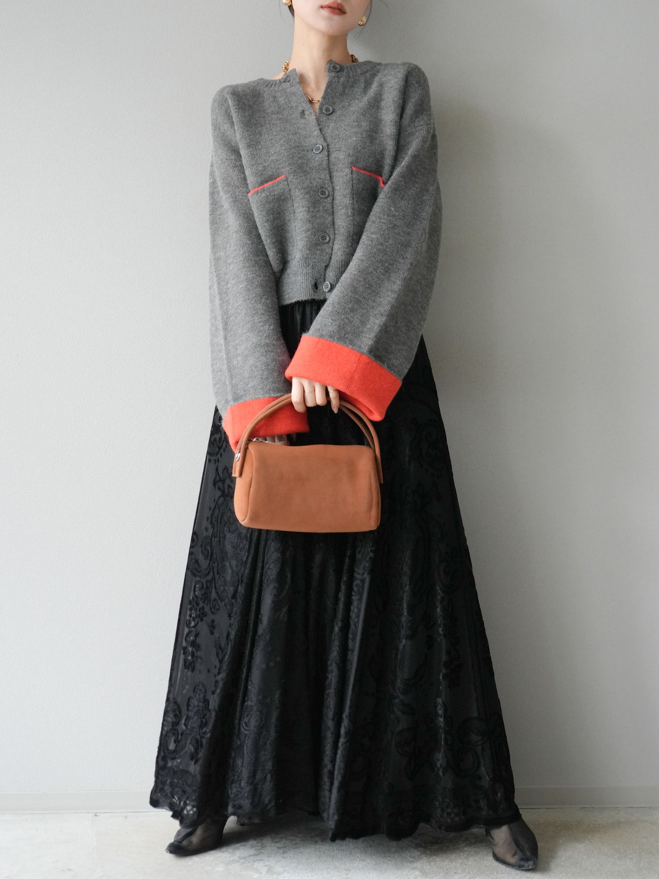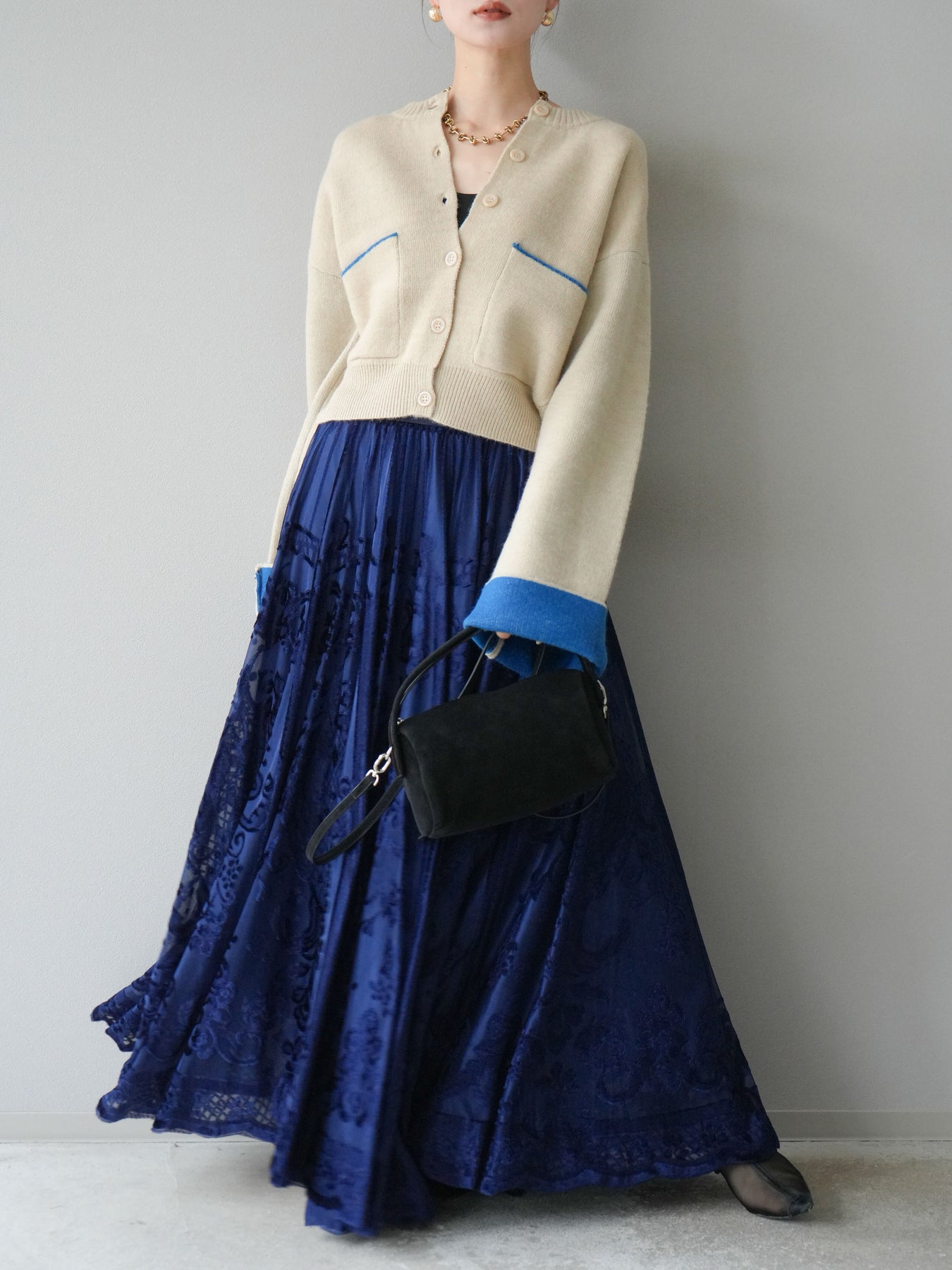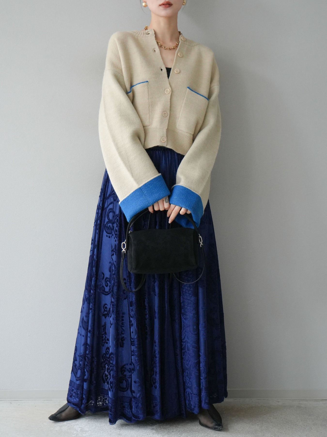 [SET]バイカラーオーバーニットカーディガン+アンティーク柄フロッキーマキシスカート(2set)