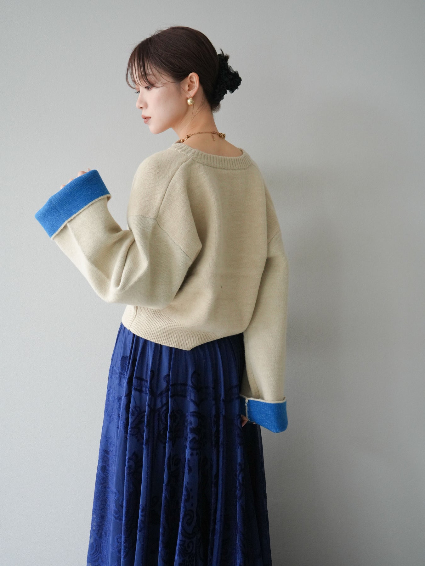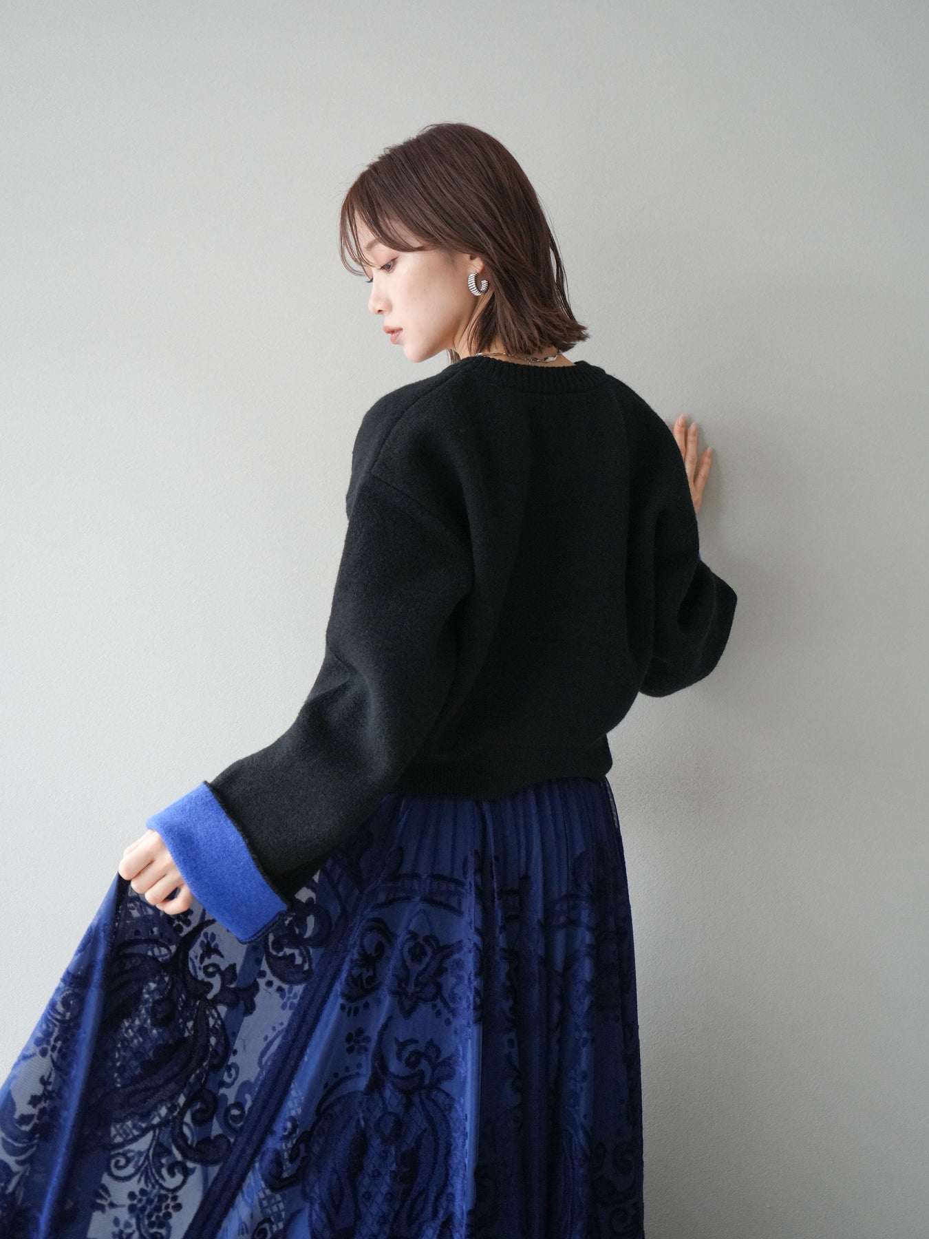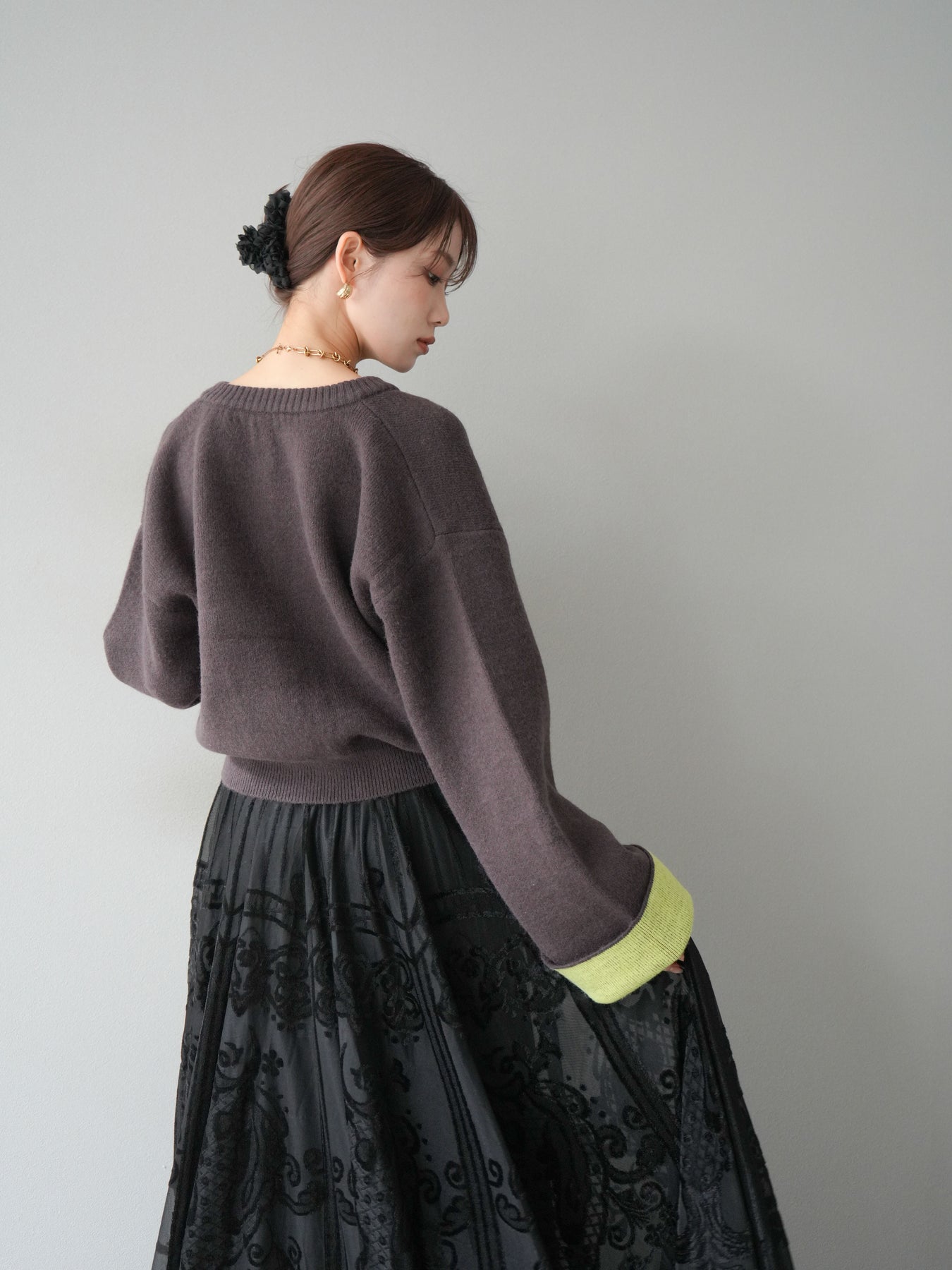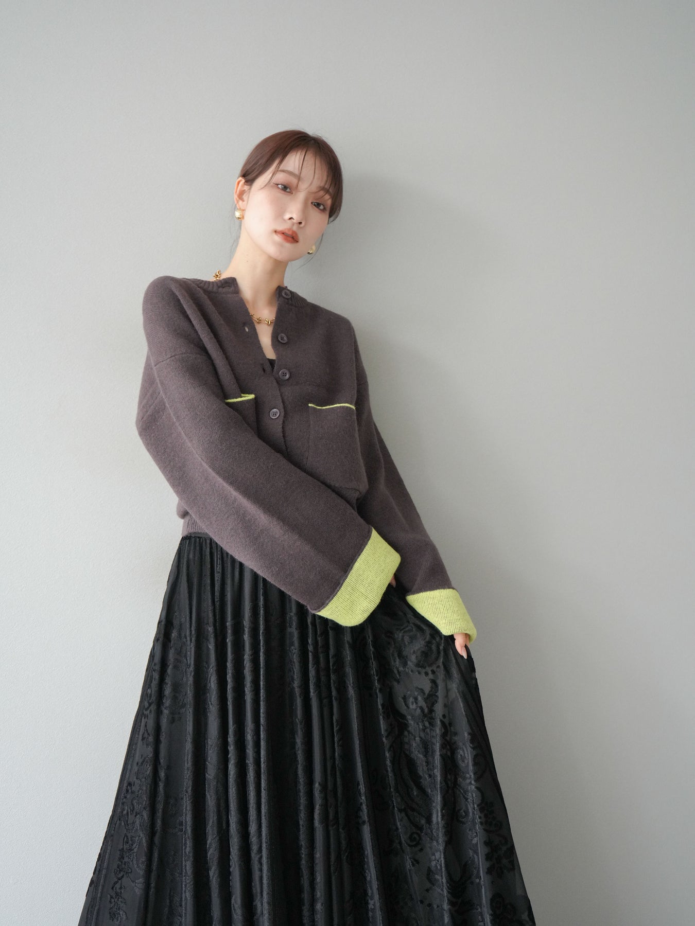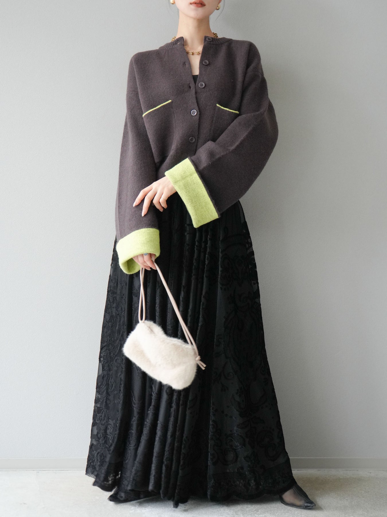 [SET]バイカラーオーバーニットカーディガン+アンティーク柄フロッキーマキシスカート(2set)